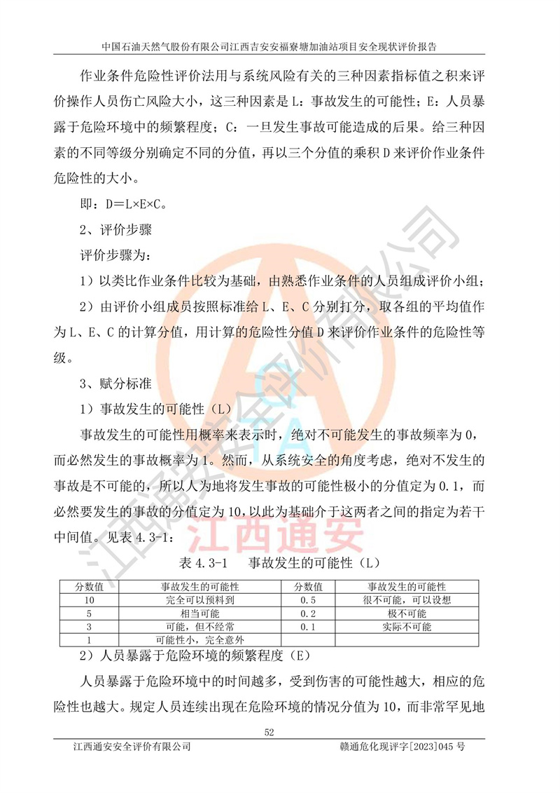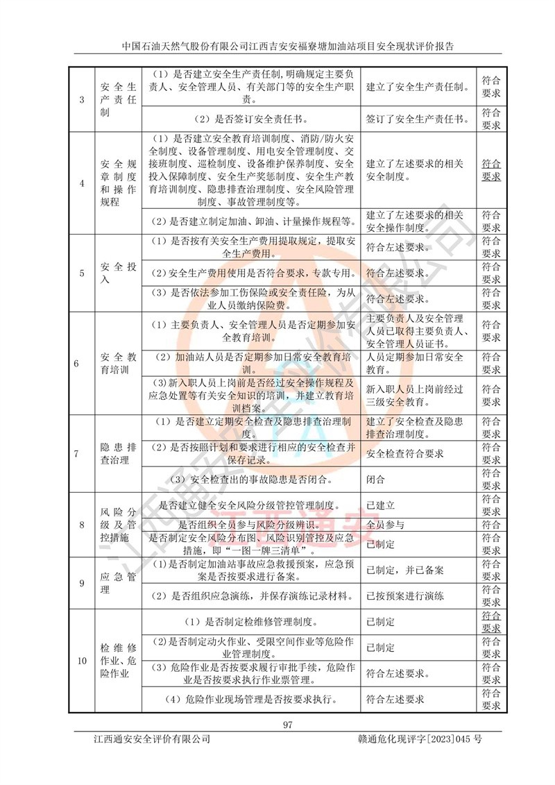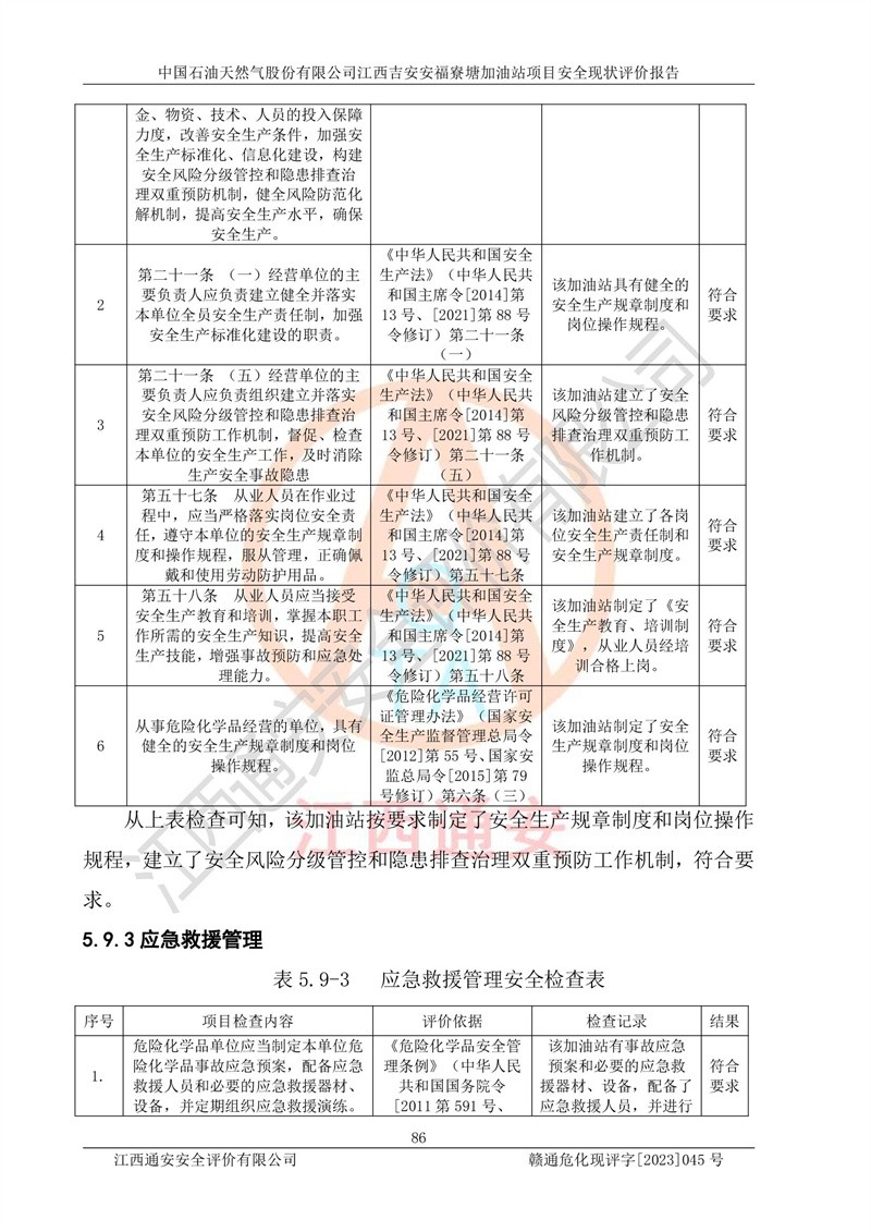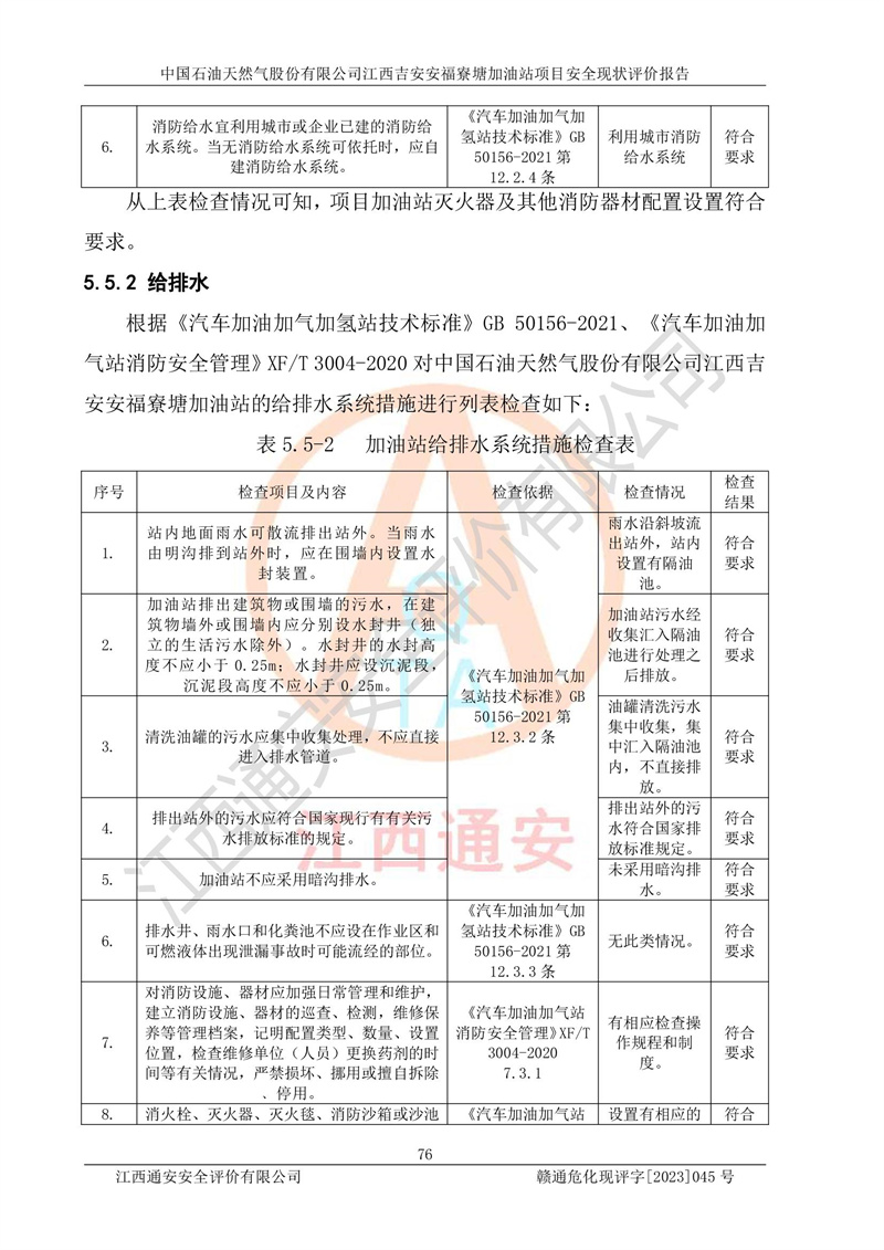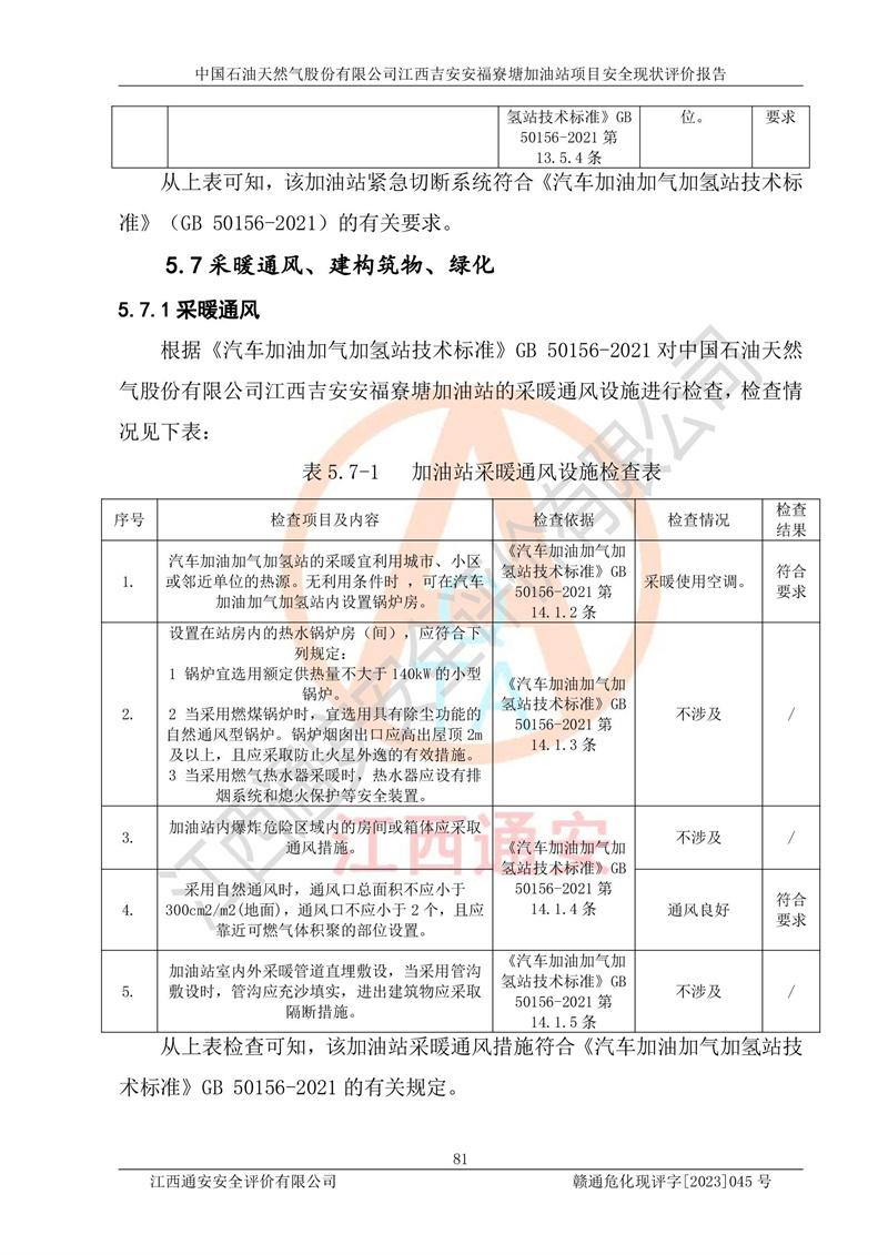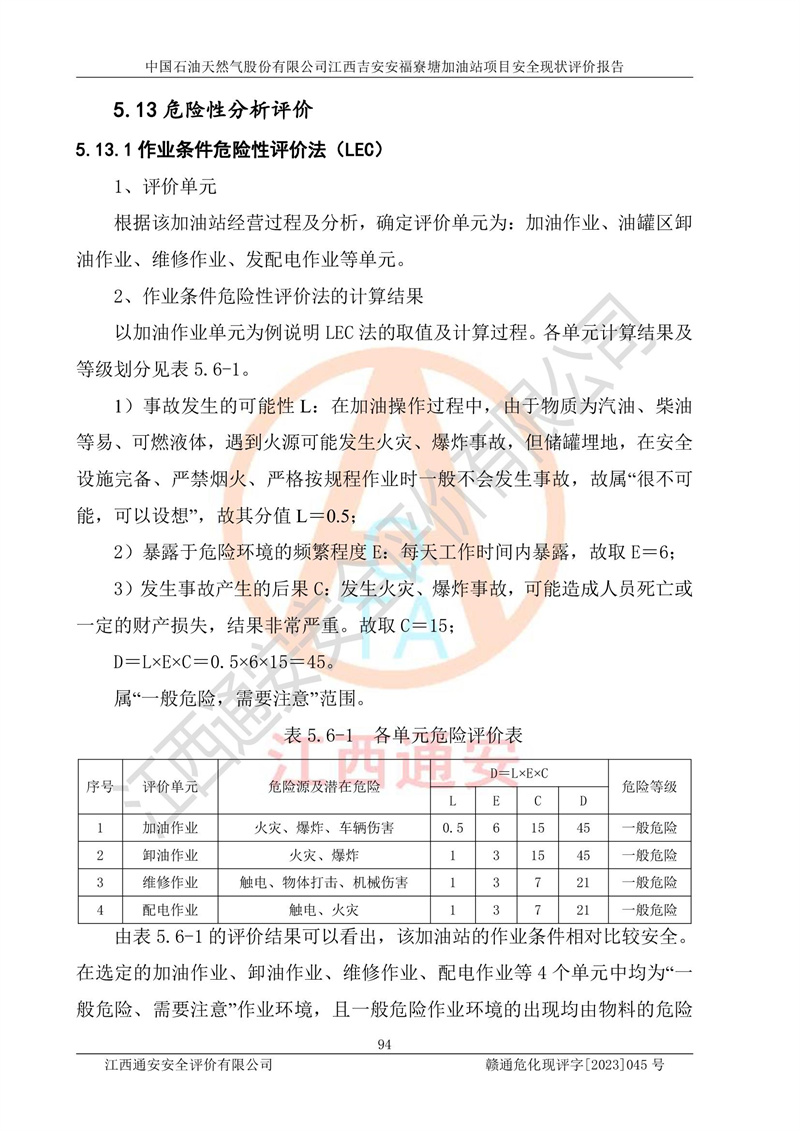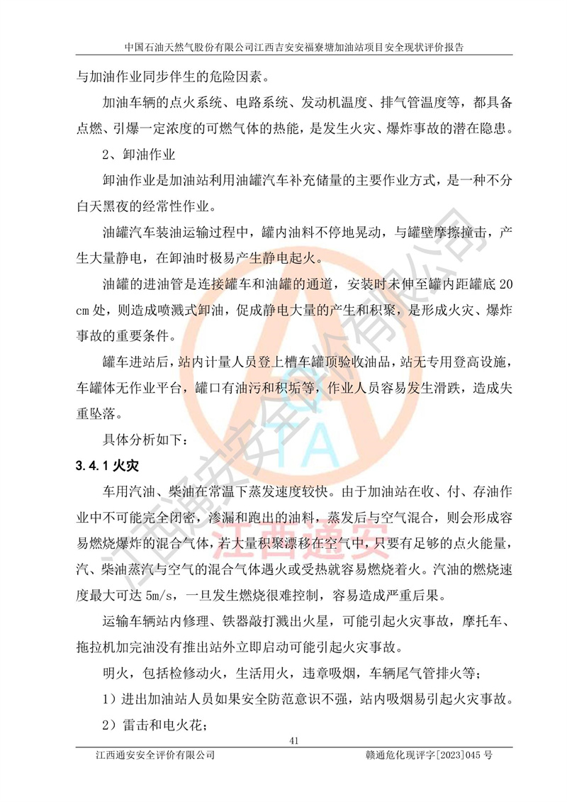 中国石油天然气股份有限公司江西吉安安福寮塘加油站是一家从事成品油批发、成品油零售经营的企业。该加油站成立于2011年5月4日,并获得安福县市场监督管理局颁发的营业执照,营业执照统一社会信用代码为:91360829573618262D,加油站类型为股份有限公司分公司(上市,国有控股),负责人为鄢**,经营范围:许可项目:成品油批发,成品油零售,住宿服务,餐饮服务,食品销售,烟草制品零售,***零售,农药零售,药品零售(依法须经批准的项目,经相关部门批准后在许可**期内方可开展经营活动,具体经营项目和许可期限以相关部门批准文件或许可证件为准)一般项目:润滑油销售,日用陶瓷制品销售,汽车销售,新能源汽车整车销售,新能源汽车换电设施销售,新能源汽车电附件销售,互联网销售(除销售需要许可的商品),汽车装饰用品销售,日用品销售单用途商业预付卡代理销售,日用化学产品销售,劳动保护用品销售,家用电器销售,塑料制品销售,婴幼儿配方乳粉及其他婴幼儿配方食品销售,食品用洗涤剂销售,饲料添加剂销售,肥料销售,洗车服务,农副产品销售,五金产品零售,办公用品销售,第二类医疗器械销售,充电桩销售农作物种子经营(**不再分装的包装种子),广告设计代理,电子过磅服务,化妆品零售,畜牧渔业饲料销售消毒剂销售 (不含危险化学品),汽车零配件零售,电车销售,机动车修理和维护,家具销售,日用百货销售,集中式**充电站,针纺织品销售,住房租赁 (除依法须经批/准的项目处,凭营业执照依法自主开展经营活动)。经营场所:江西省吉安市安福县寮塘乡龙佳村。 中国石油天然气股份有限公司江西吉安安福寮塘加油站占地面积1200㎡,加油站中设有0#柴油双枪加油机2台,92#汽油、95#汽油四枪加油机2台;该站设有4个30m³SF双层埋地卧式储罐,其中有2个30m³SF双层埋地卧式0#柴油罐、1个92#30m³SF双层埋地卧式汽油罐,1个95#30m³SF双层埋地卧式汽油罐,油品折算总容量为90m³(柴油罐容积折半计入油罐总容积),属三级加油站,汽油卸油、加油设置了油气回收系统。 中国石油天然气股份有限公司江西吉安安福寮塘加油站于2020年11月04日经安福县应急管理局核准,换发了新的《危险化学品经营许可证》,证书编号:赣安安经(甲)[2014]000007,许可经营范围:成品油。**期2020年11月04日至2023年11月03日。 中国石油天然气股份有限公司江西吉安安福寮塘加油站2023年05月11日经吉安市商务局核准,换取了新的《成品油零售经营批准证书》,证书编号:油零售证书第吉0256号,批准从事成品油(汽油、柴油)零售业务。证书**期至2023年5月11日至2028年05月10日。 |