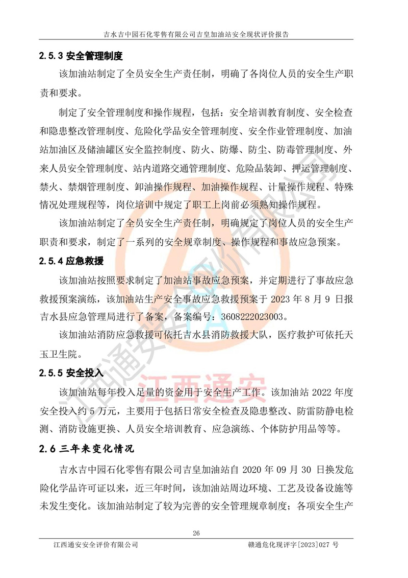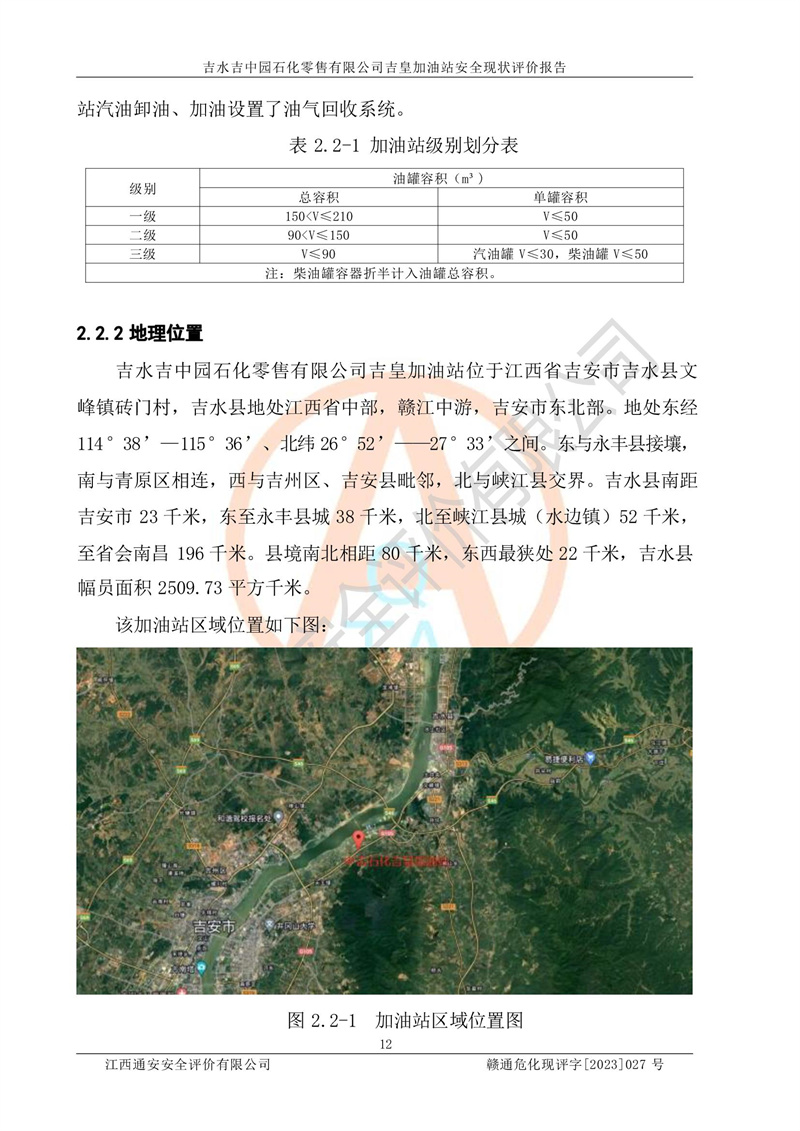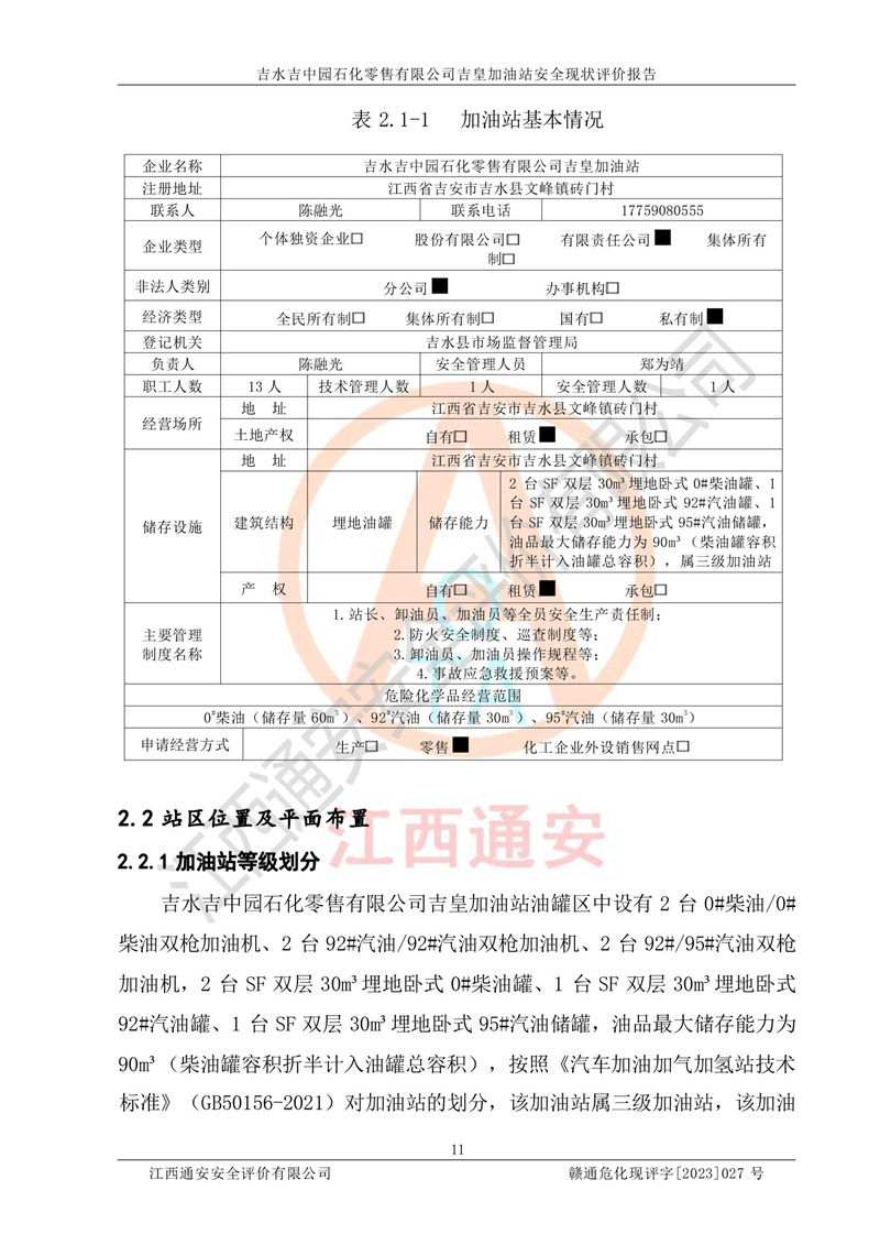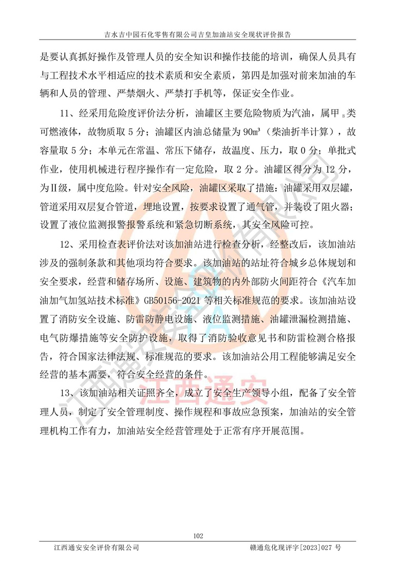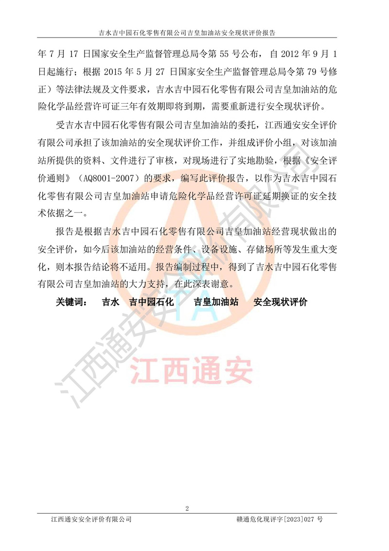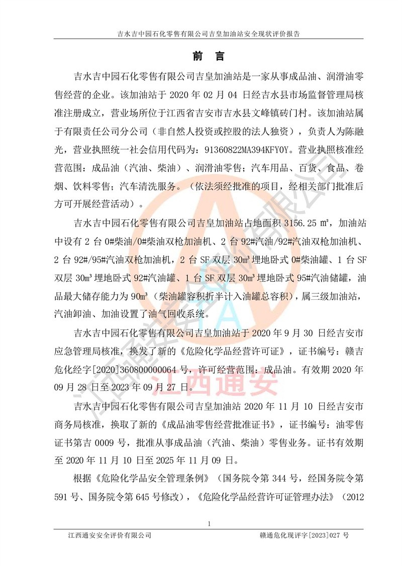 吉水吉中园石化零售有限公司吉皇加油站安全现状评价报告