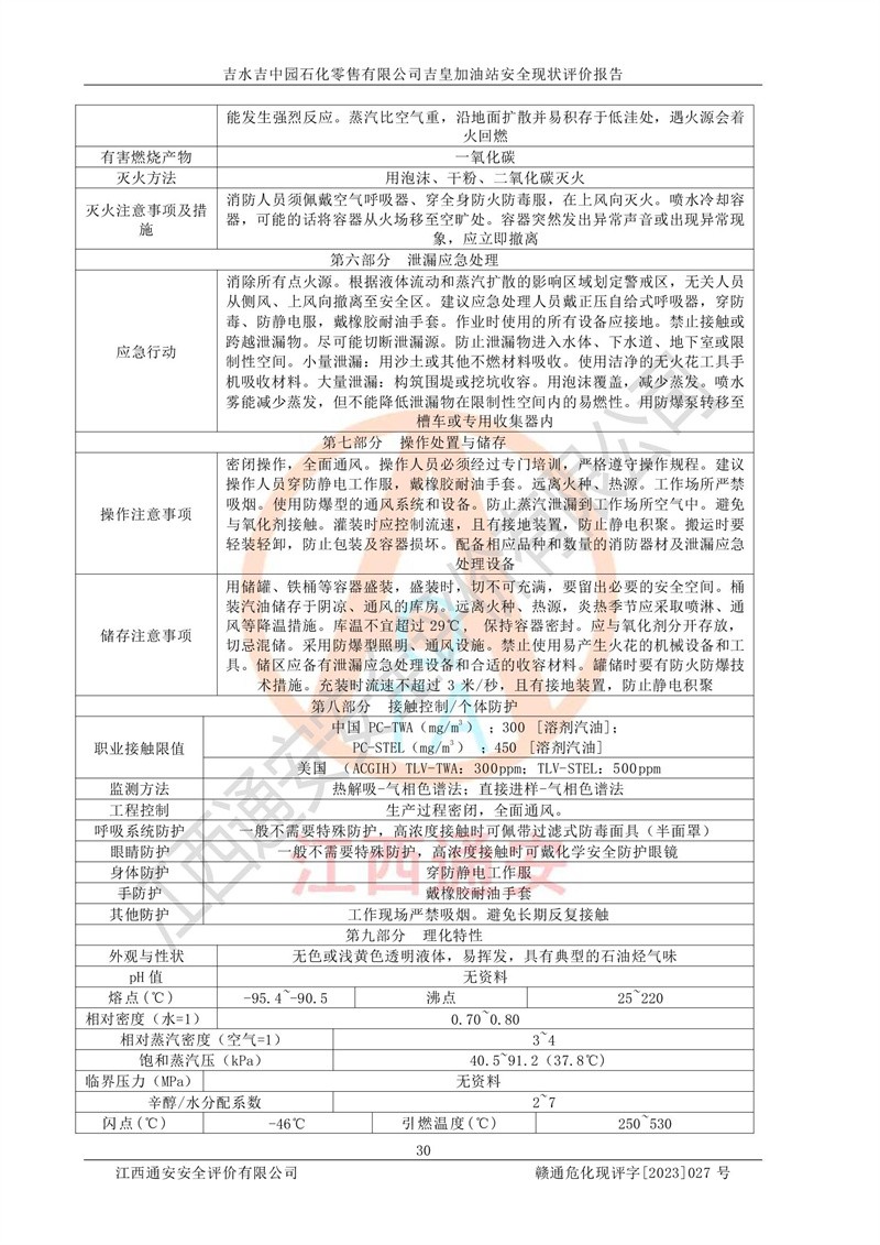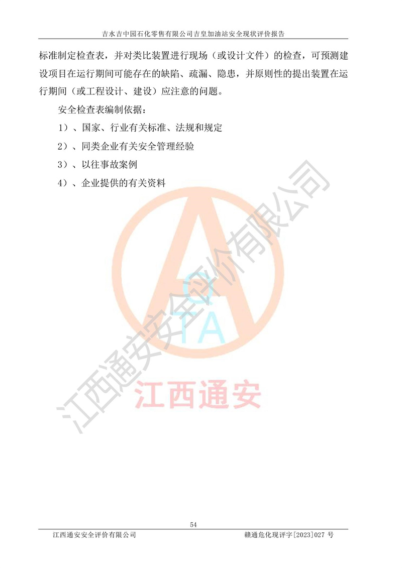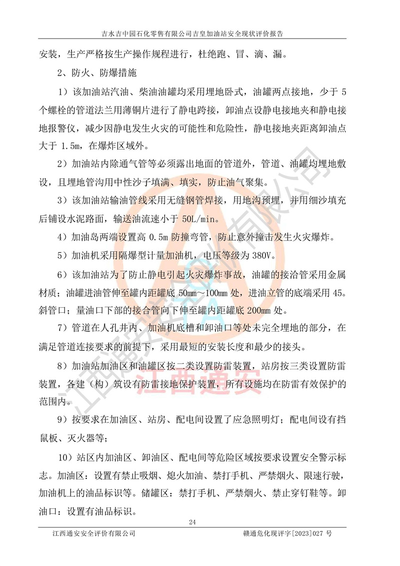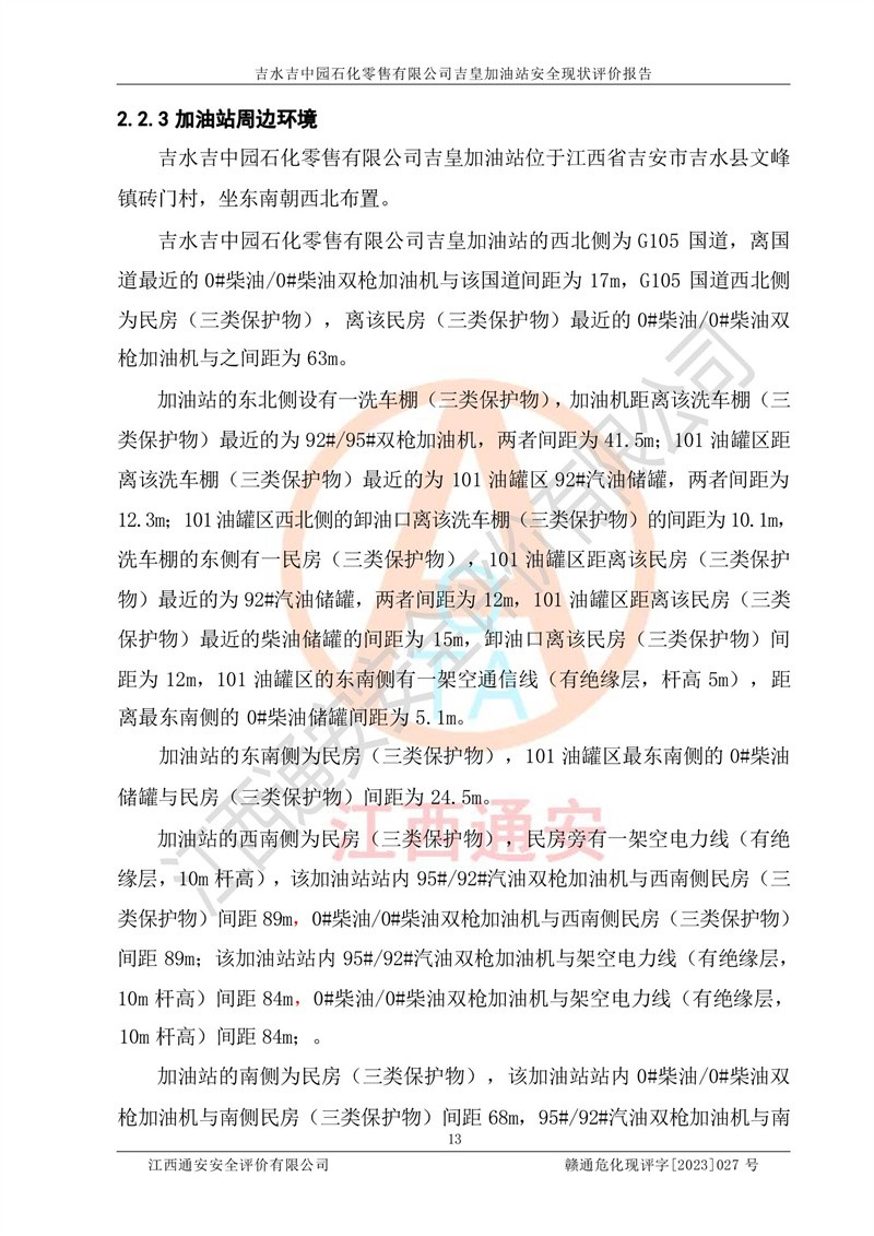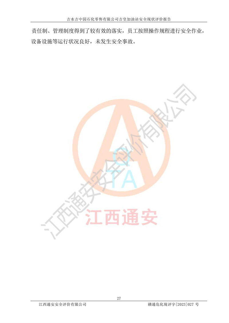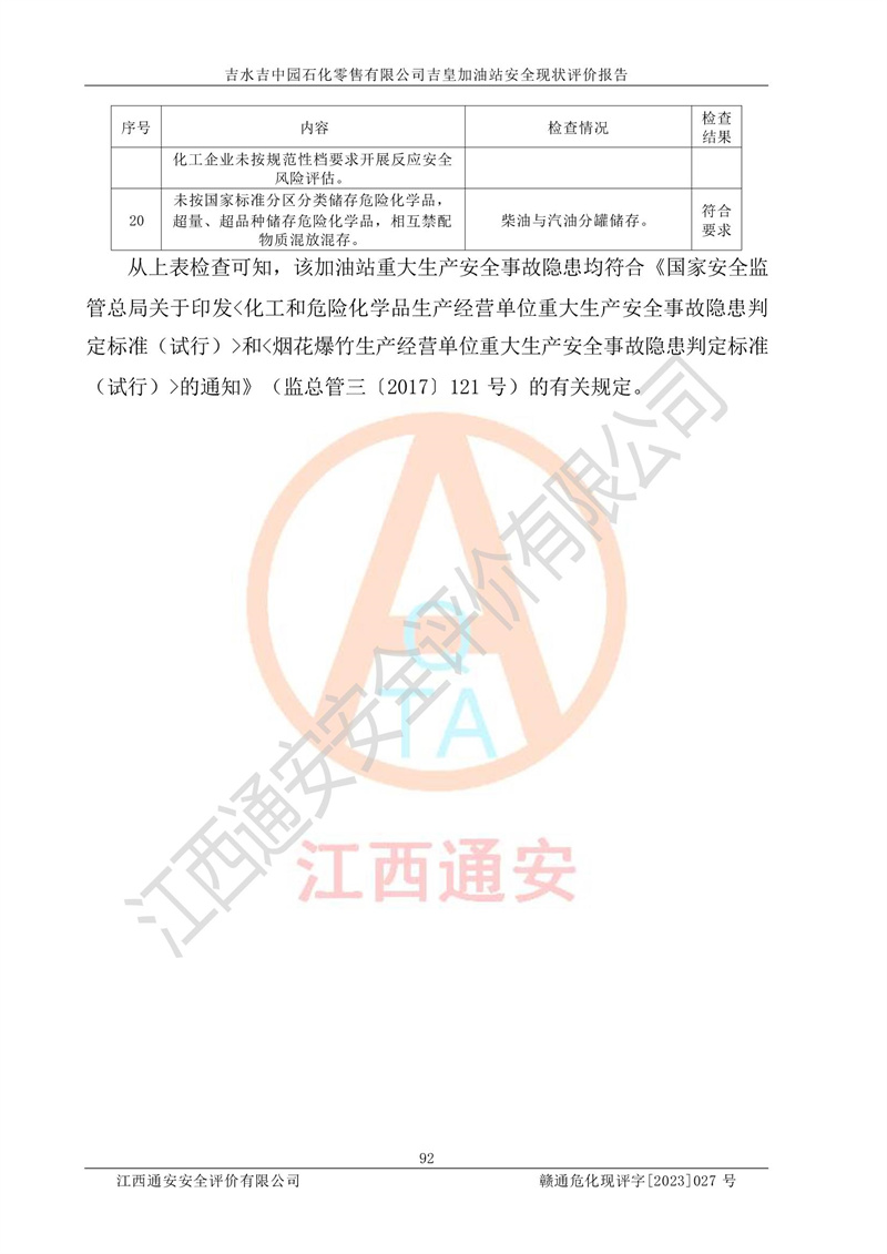 吉水吉中园石化零售有限公司吉皇加油站安全现状评价报告