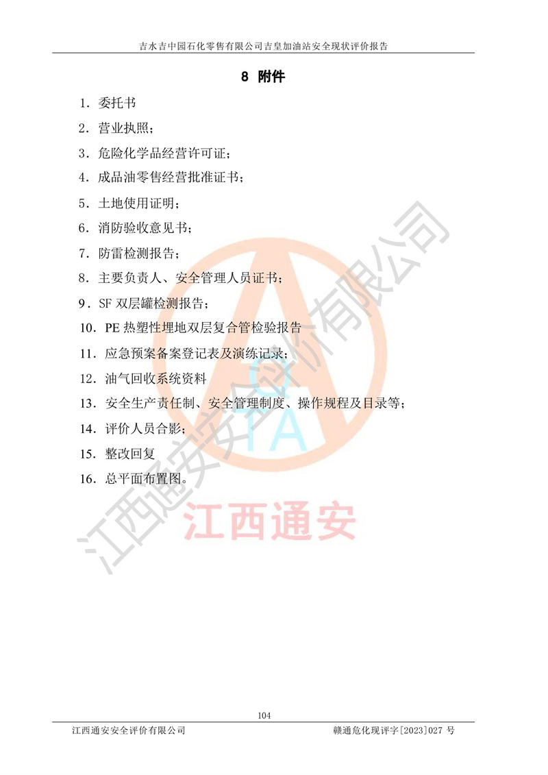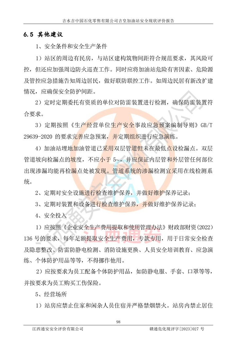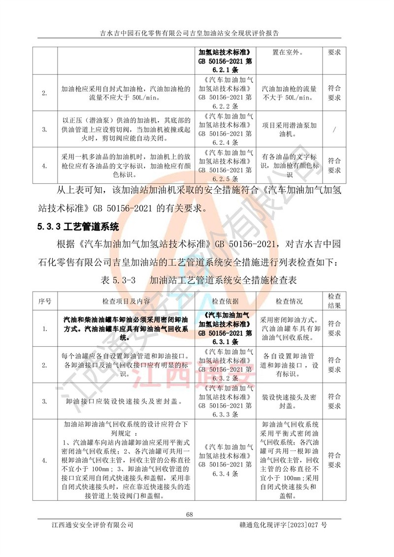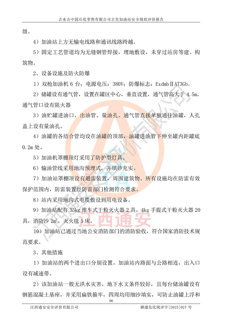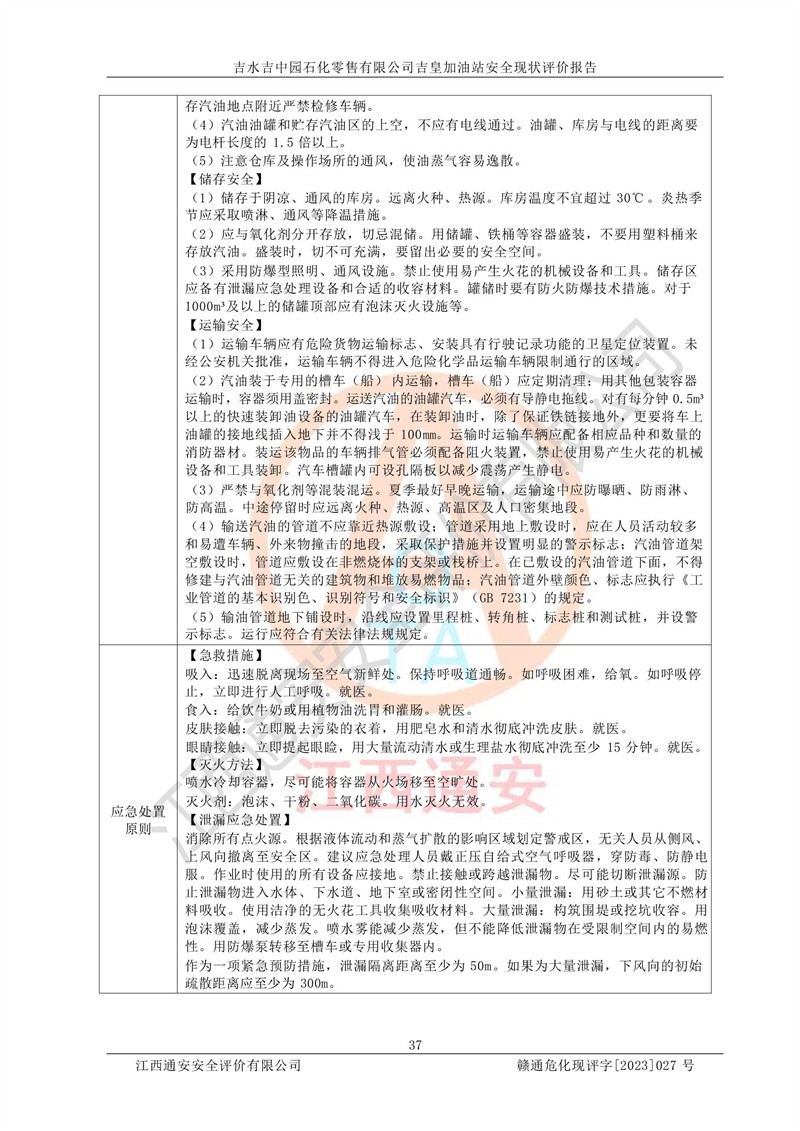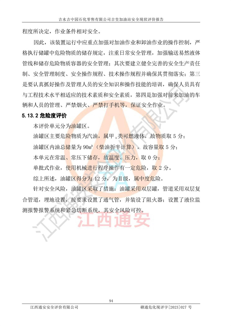 吉水吉中园石化零售有限公司吉皇加油站安全现状评价报告