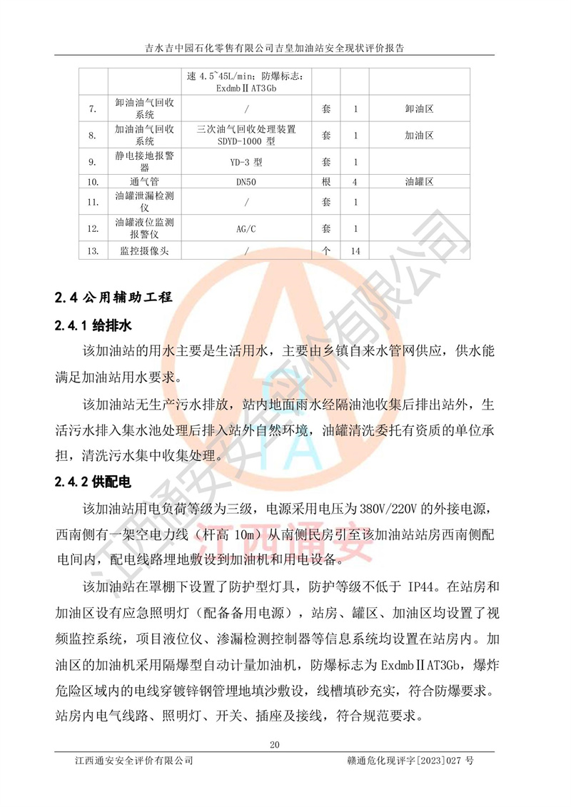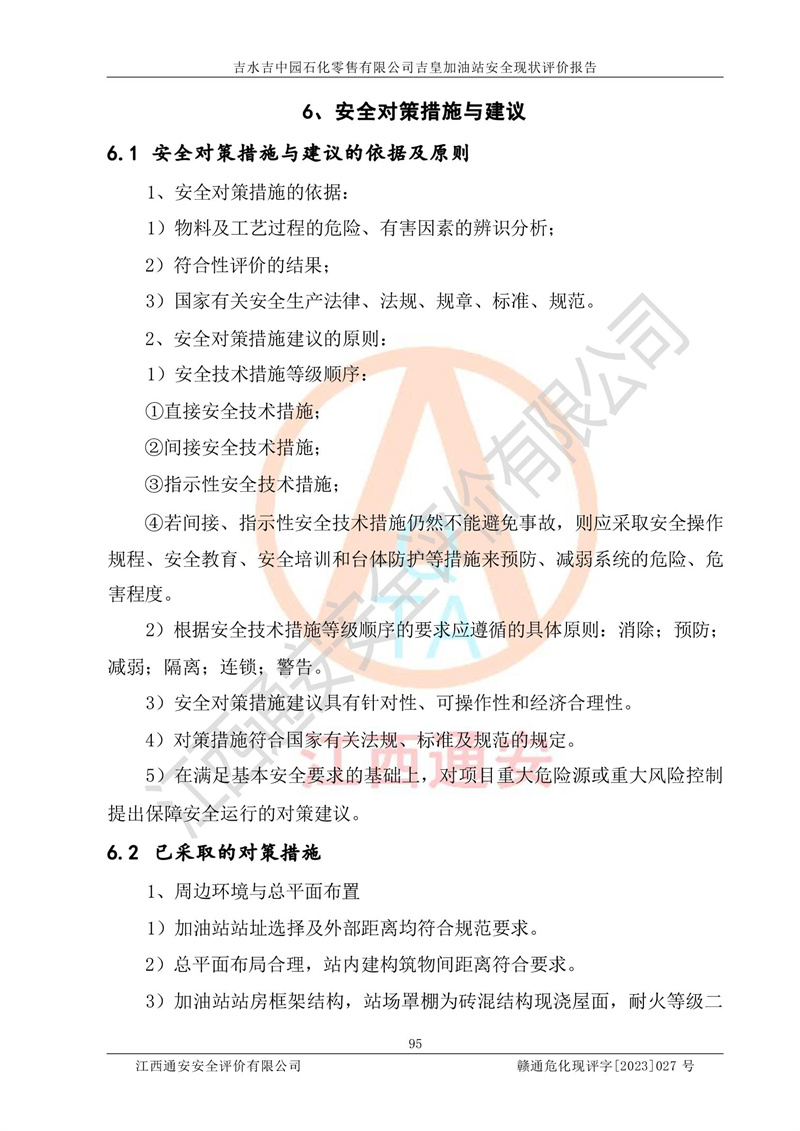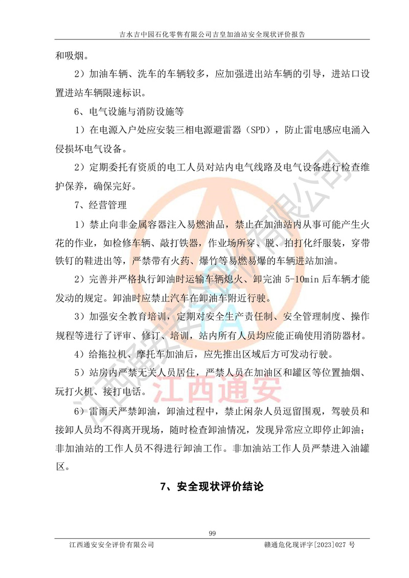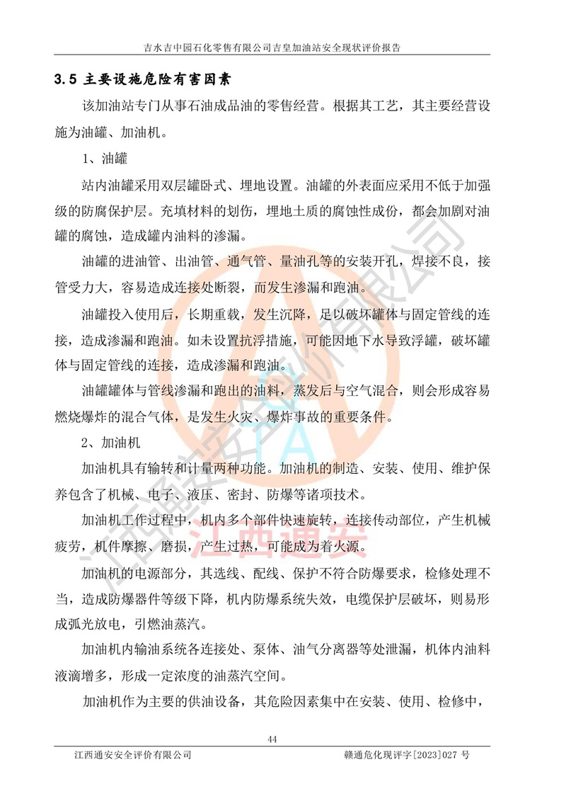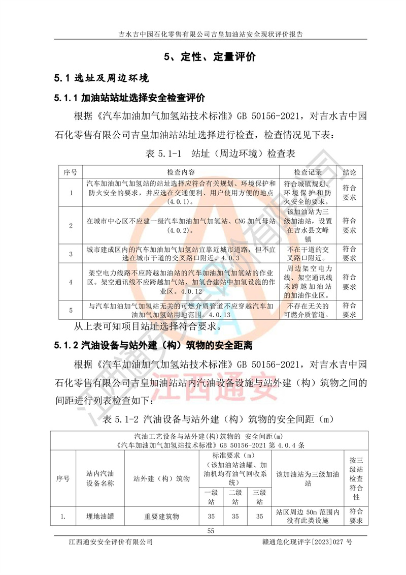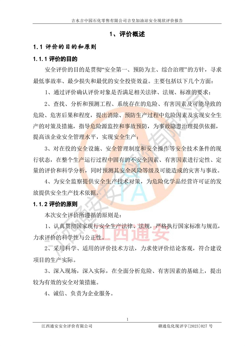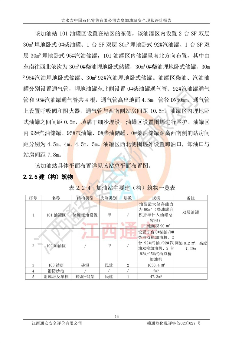 吉水吉中园石化零售有限公司吉皇加油站安全现状评价报告