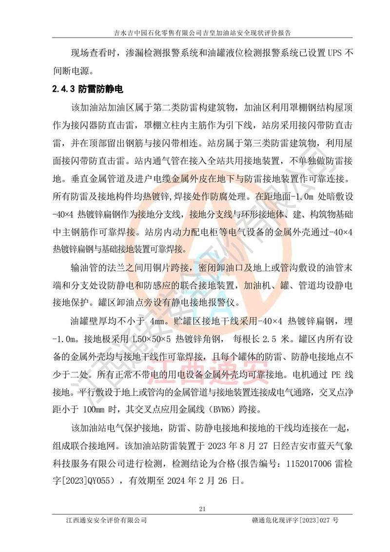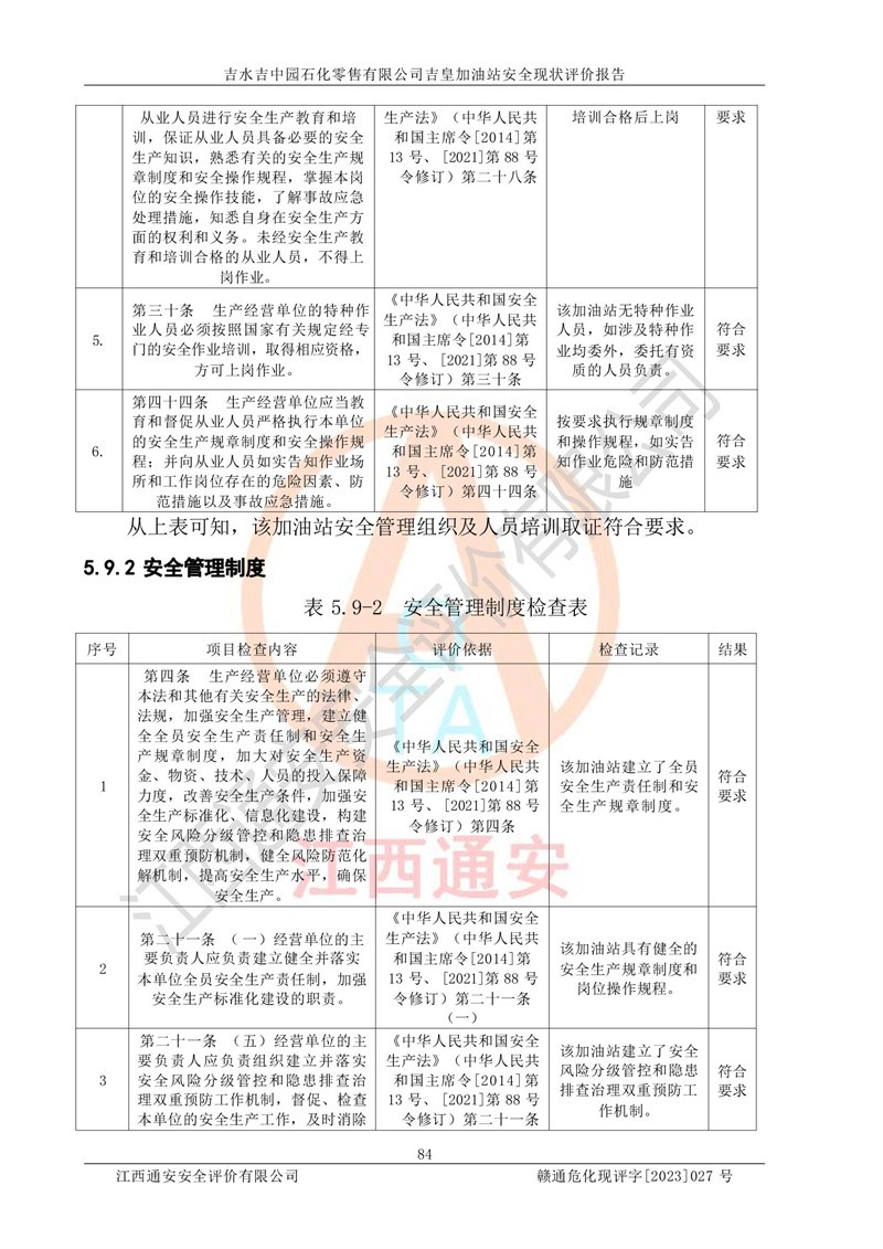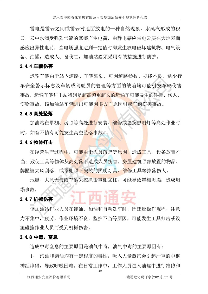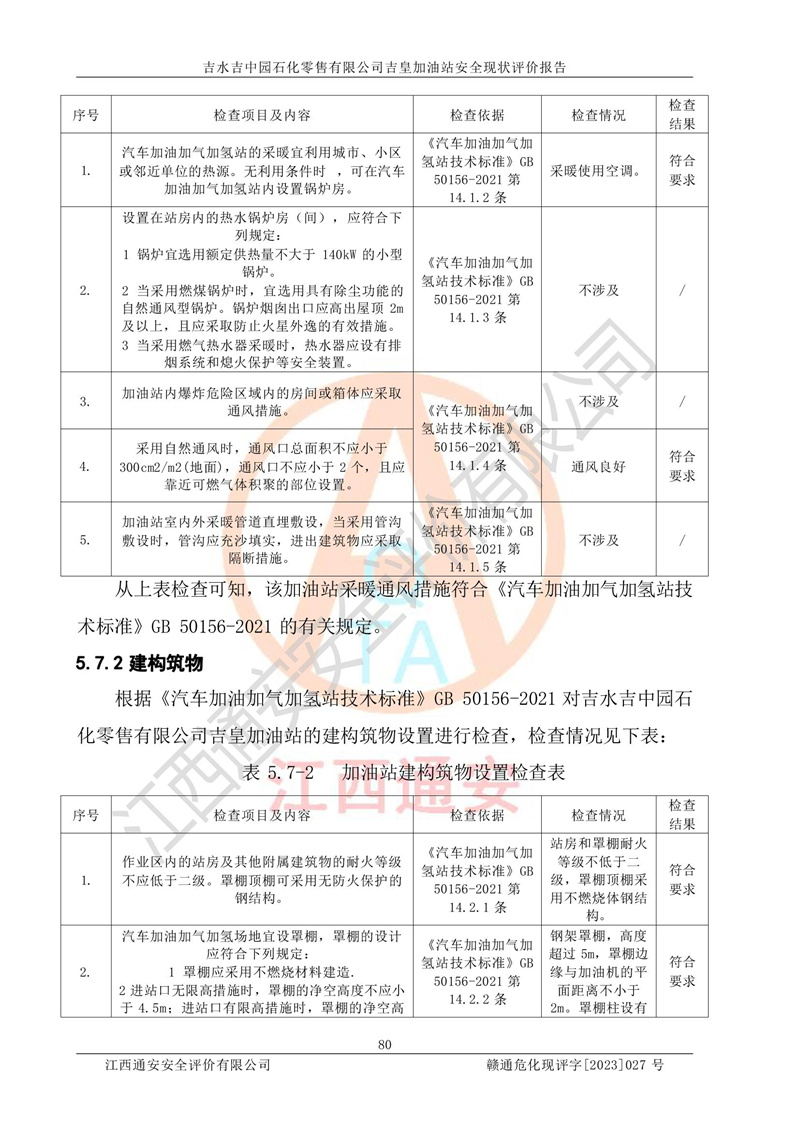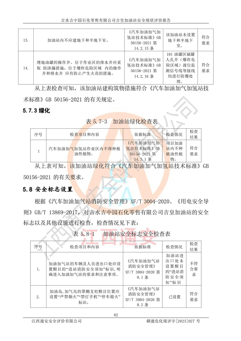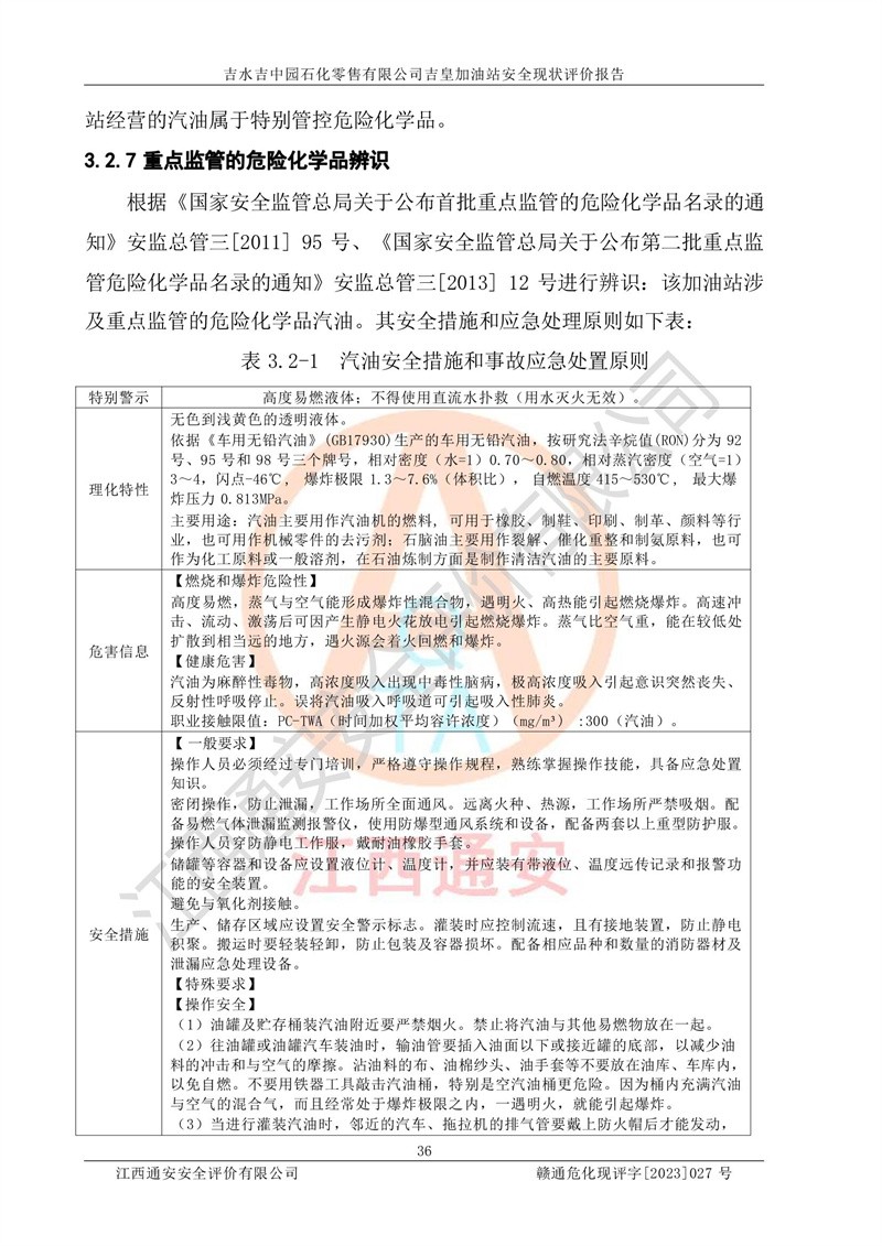 吉水吉中园石化零售有限公司吉皇加油站安全现状评价报告