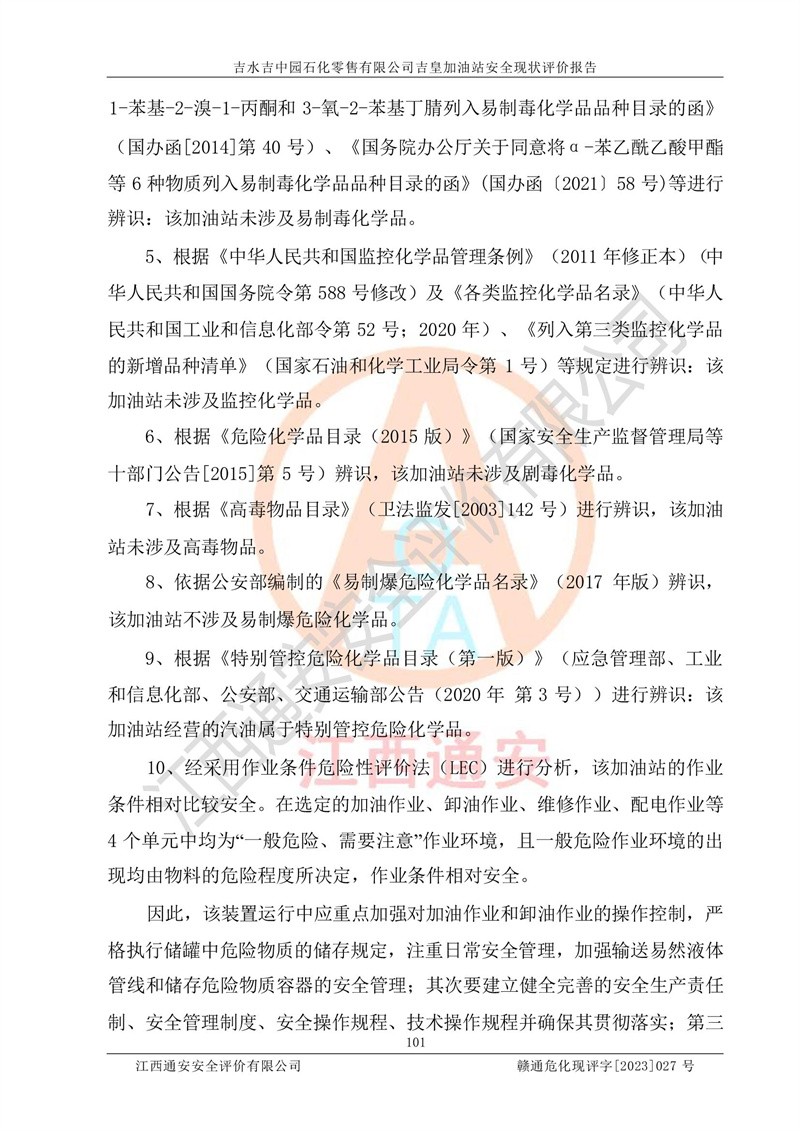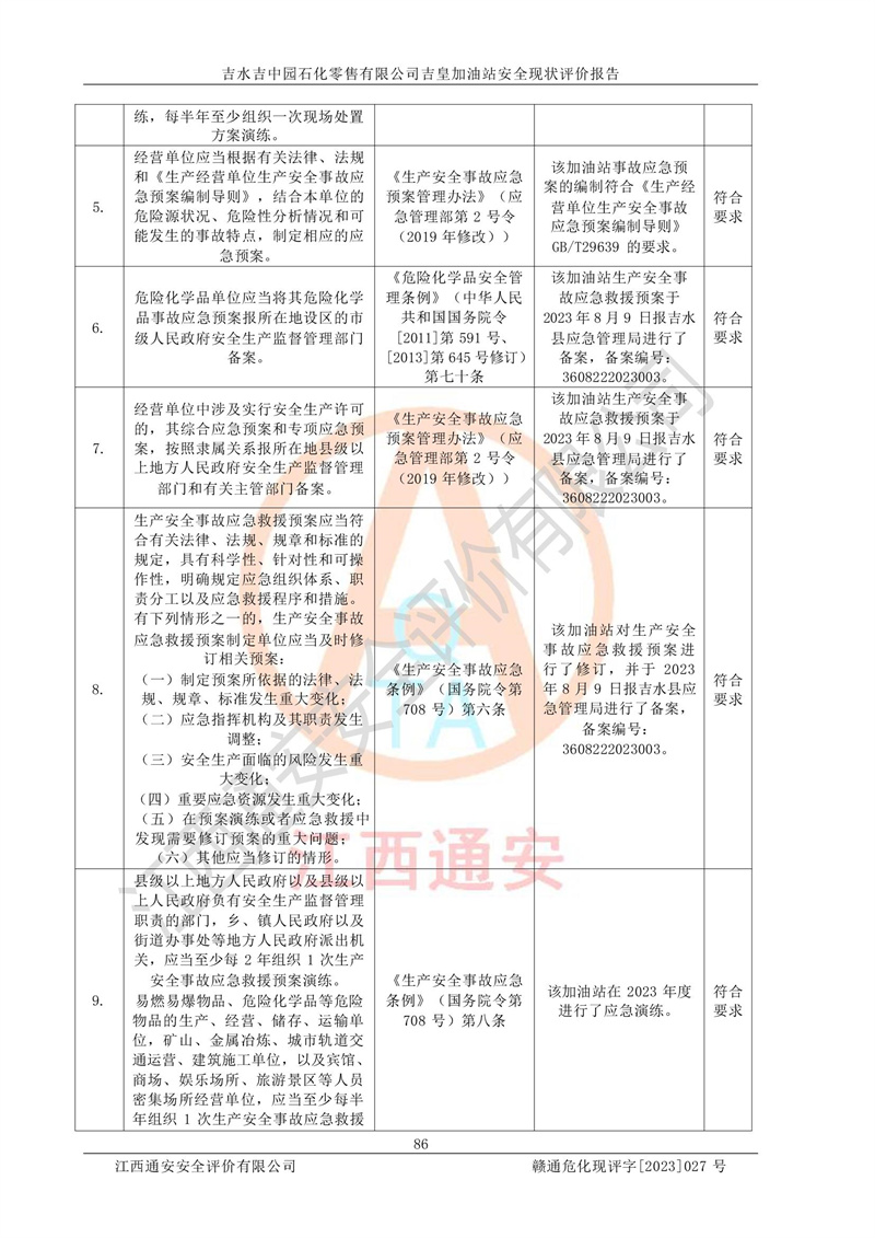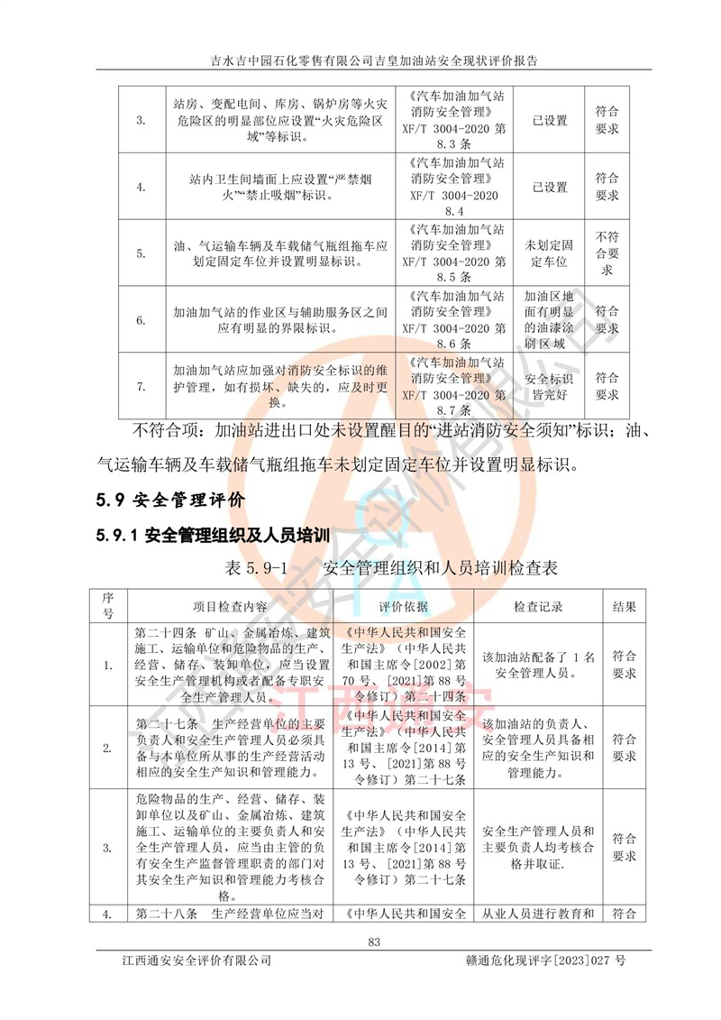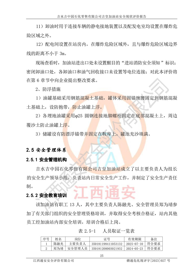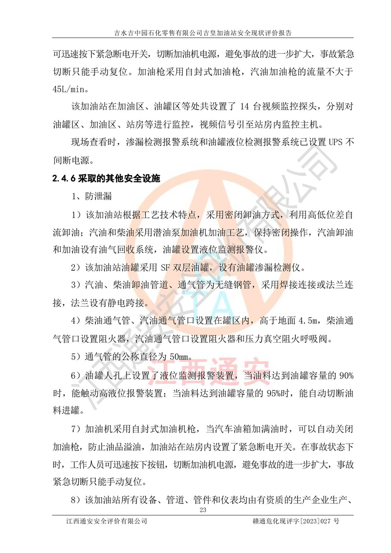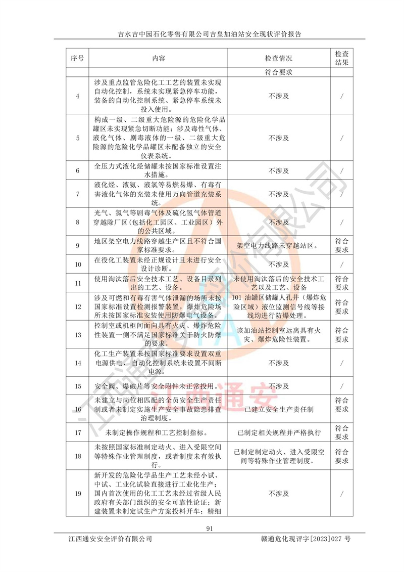 吉水吉中园石化零售有限公司吉皇加油站安全现状评价报告