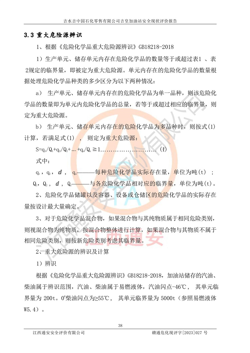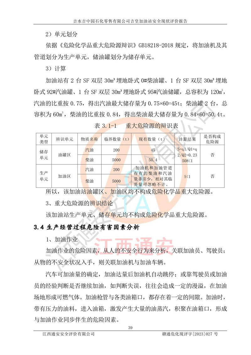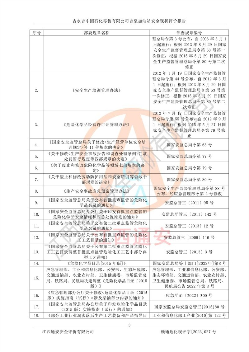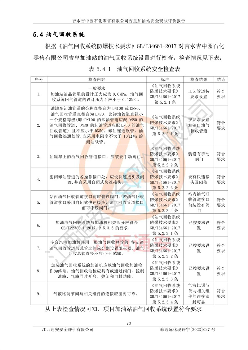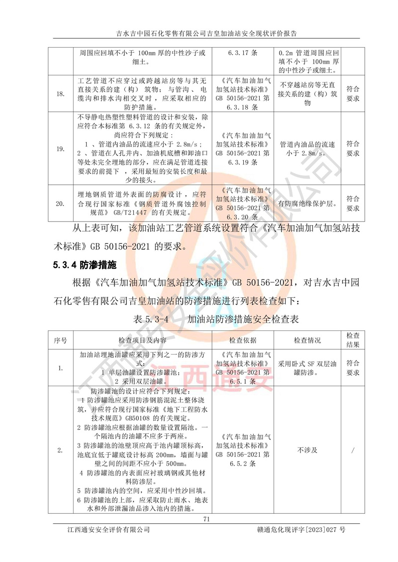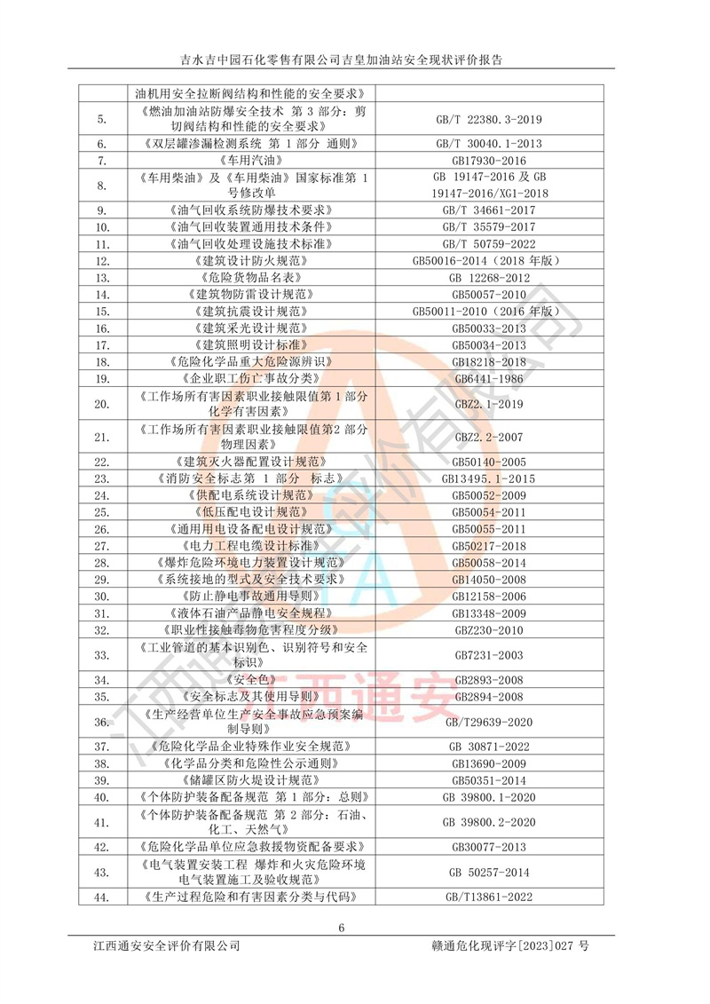 吉水吉中园石化零售有限公司吉皇加油站安全现状评价报告