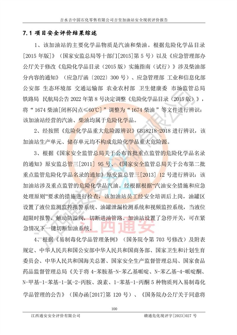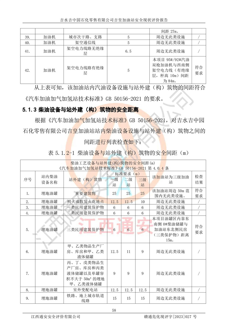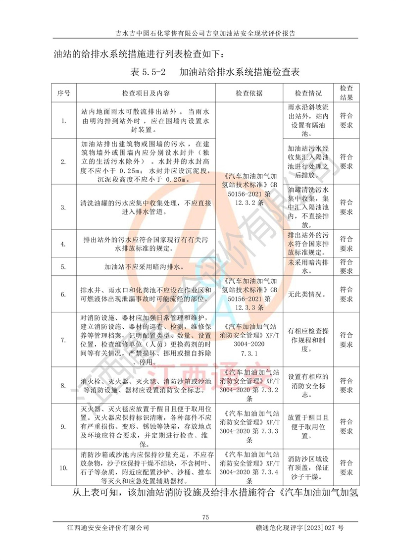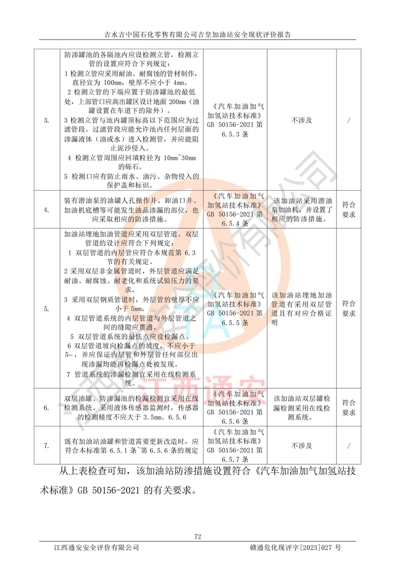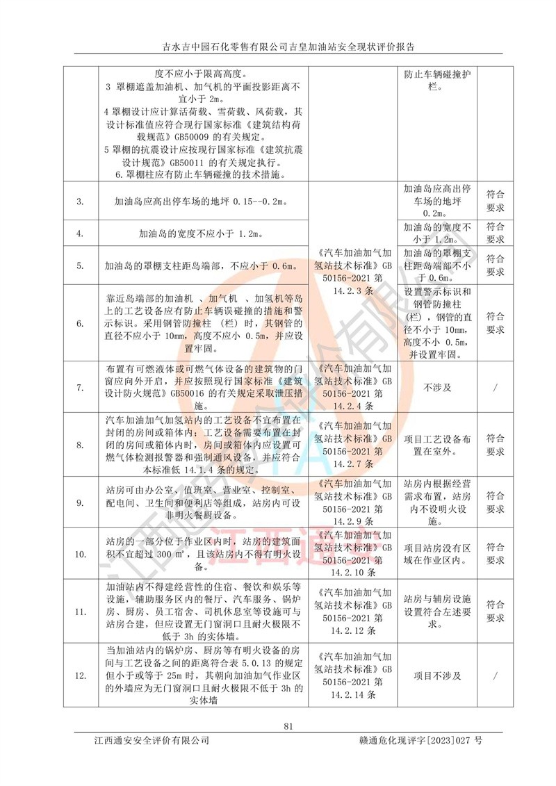 综上:吉水吉中园石化零售有限公司吉皇加油站符合《汽车加油加气加氢站技术标准》GB50156-2021等标准规范的要求,安全风险可控,满足危险化学品经营的安全条件。