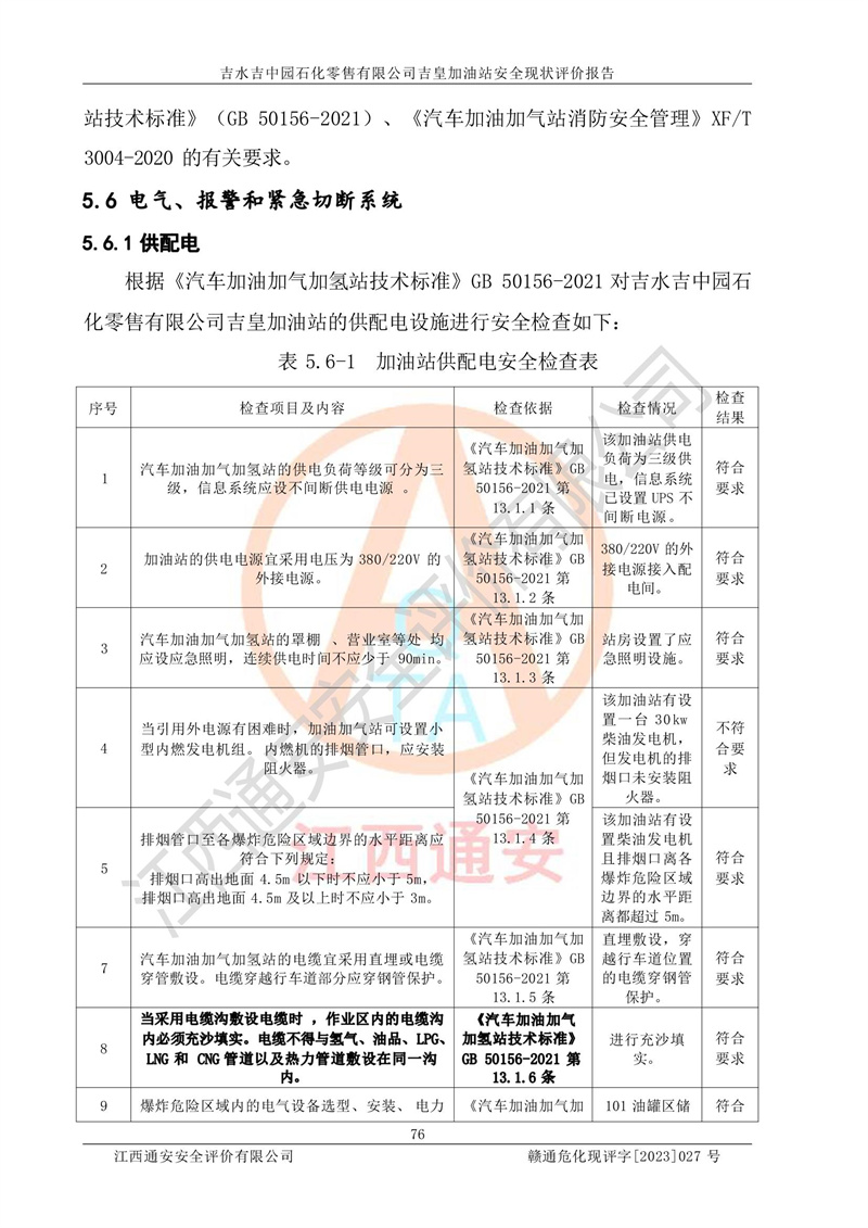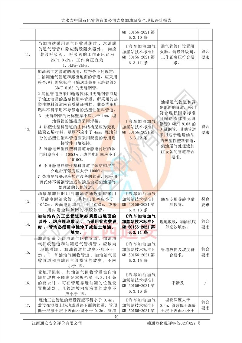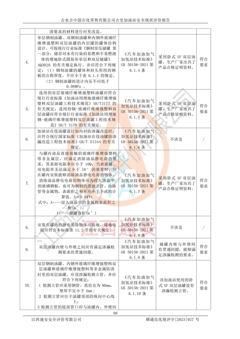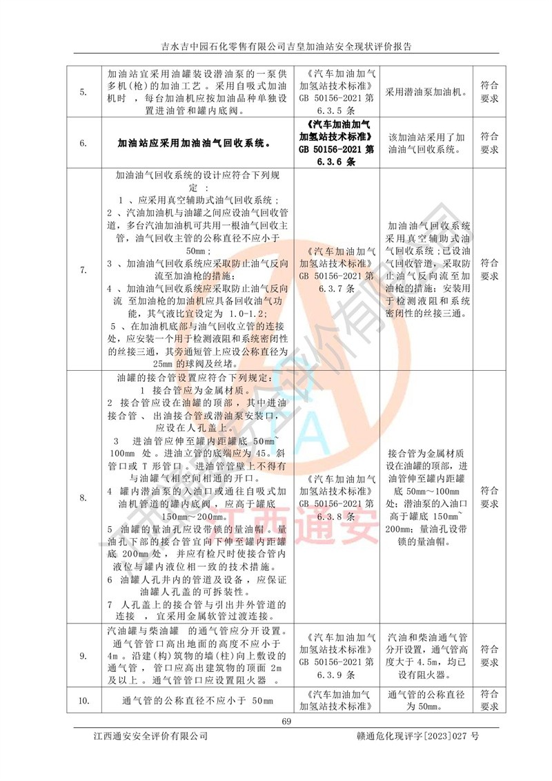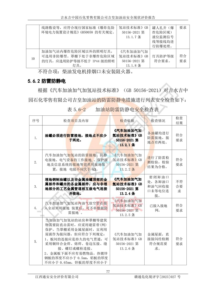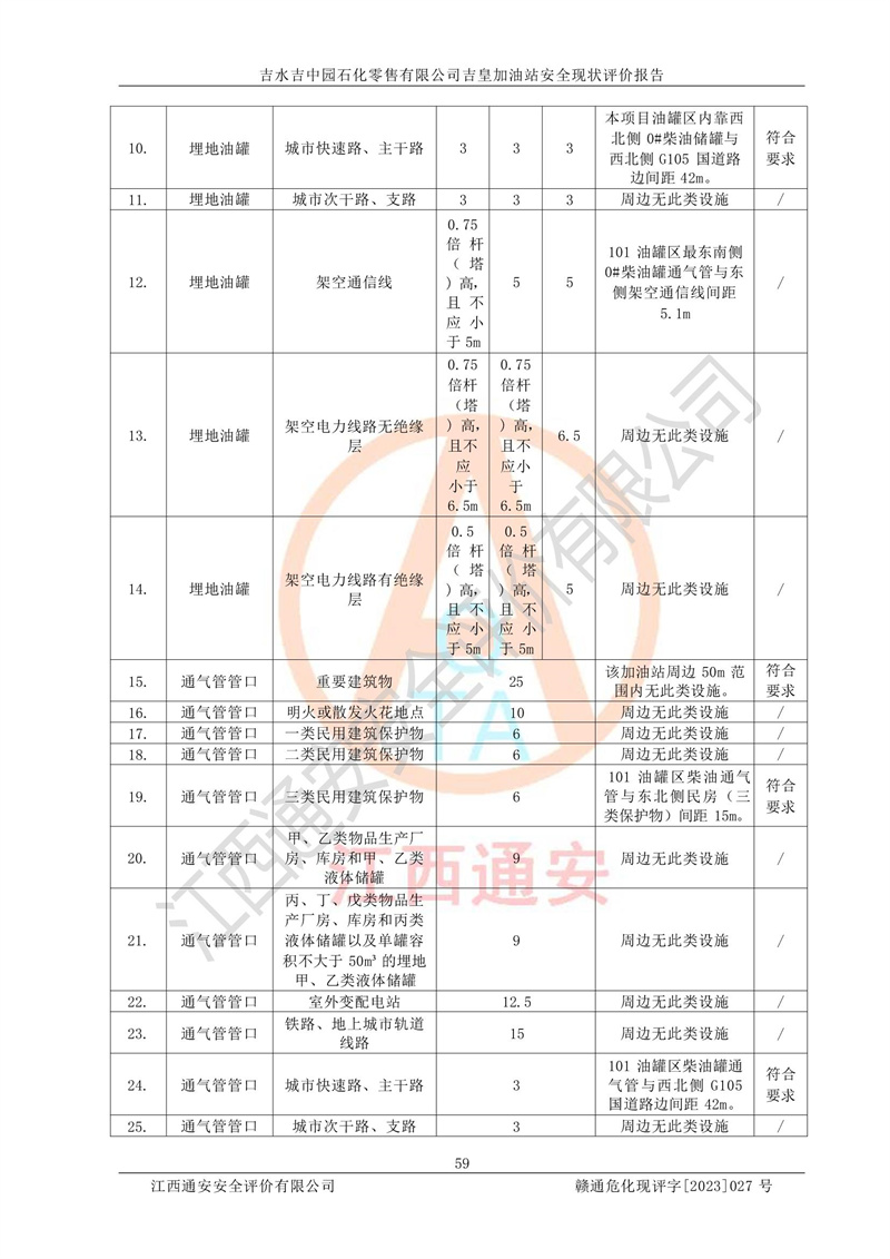综上:吉水吉中园石化零售有限公司吉皇加油站符合《汽车加油加气加氢站技术标准》GB50156-2021等标准规范的要求,安全风险可控,满足危险化学品经营的安全条件。