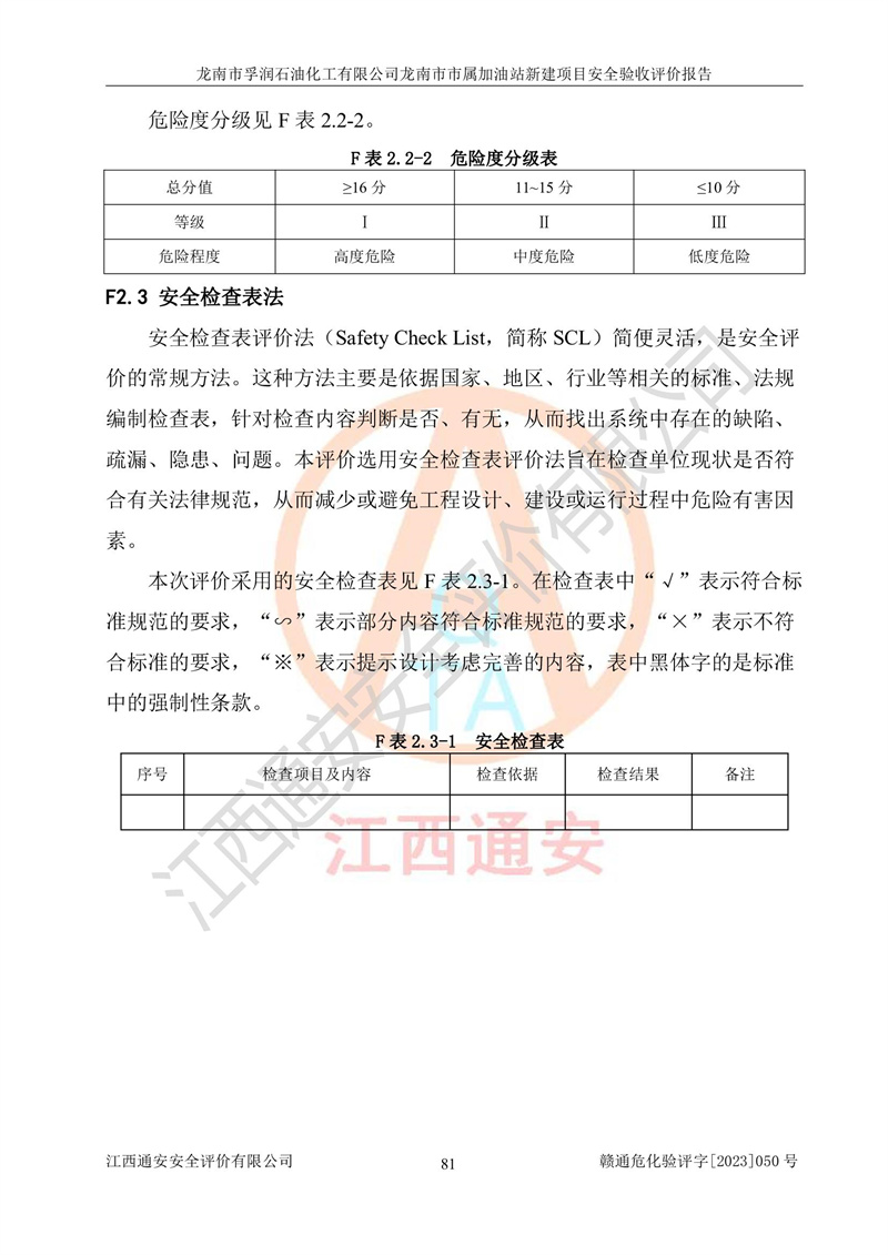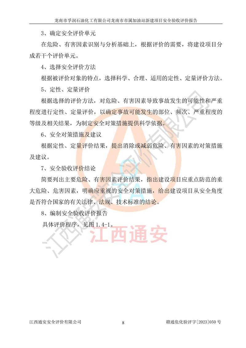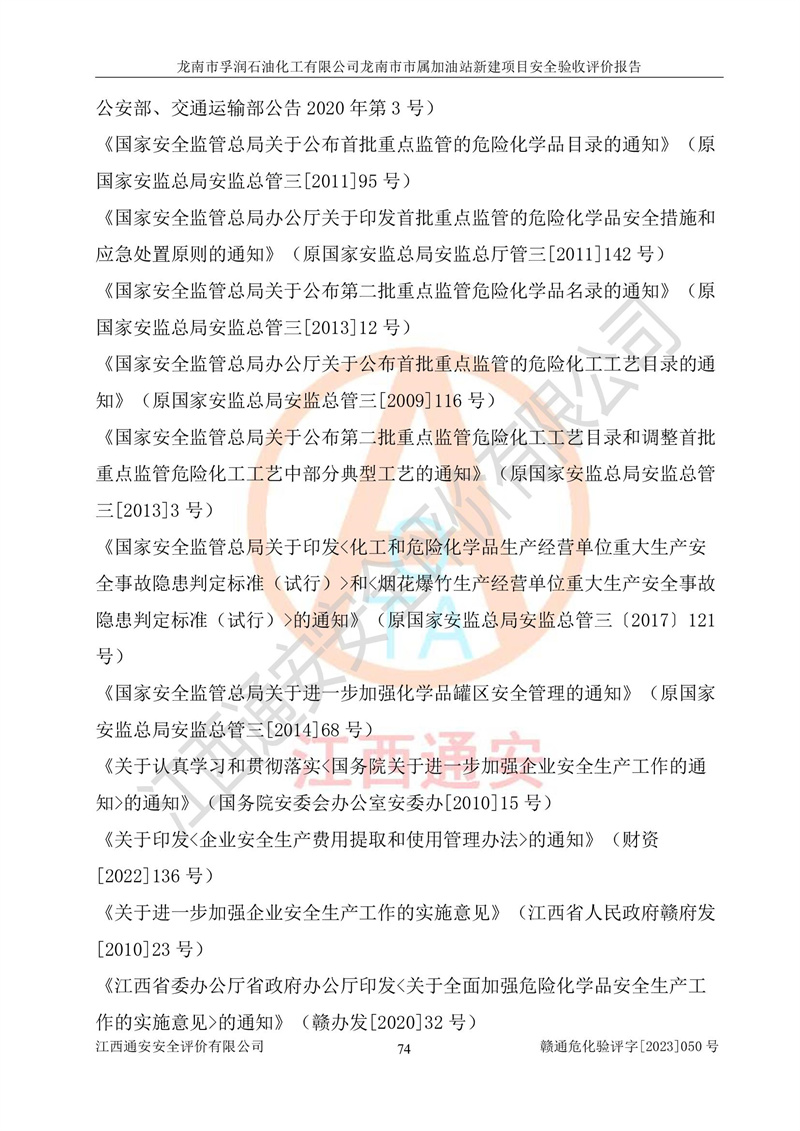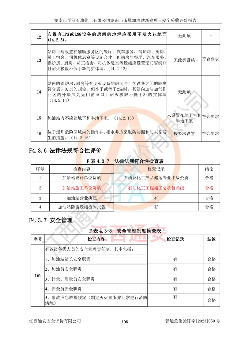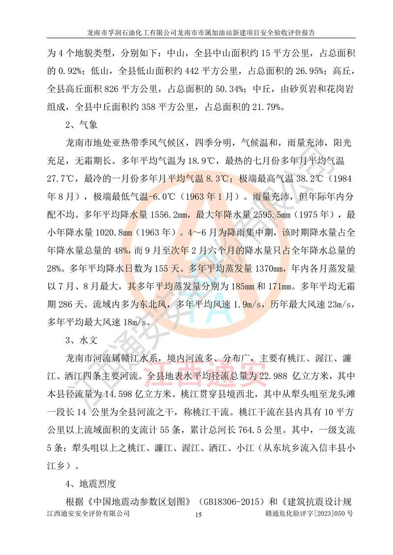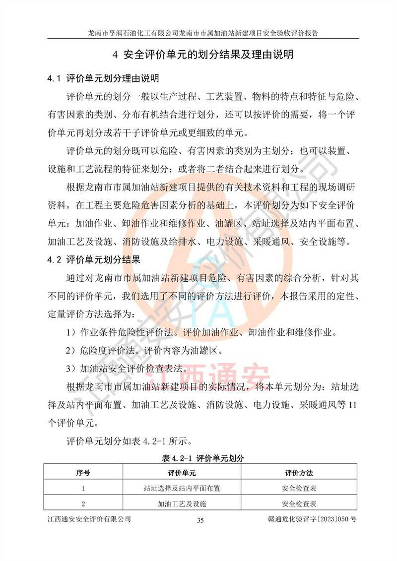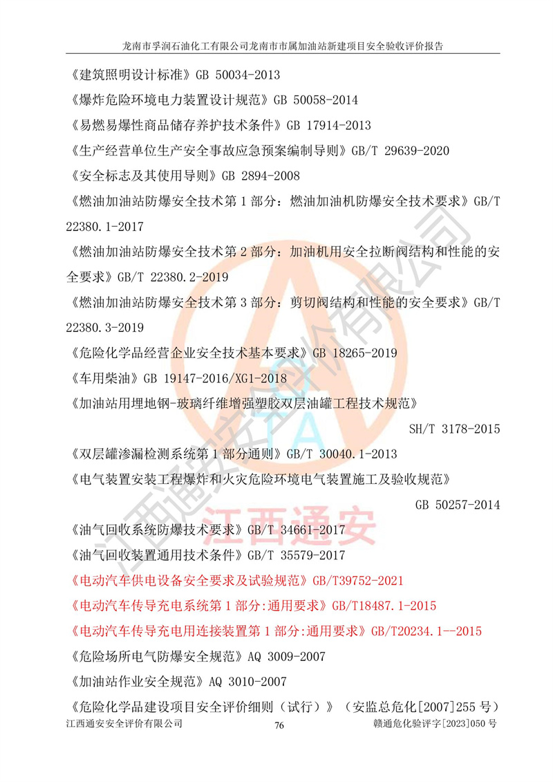 1、龙南市市属加油站新建项目为成品油零售企业,属于二级加油站,油罐区为主要危险源。该加油站不构成危险化学品重大危险源。 2、龙南市市属加油站新建项目所经营的汽油属于重点监管危险化学品,应加强安全管理,根据“汽油安全措施和应急处理原则”要求的措施进行检查,加油站设置了视频监控系统、具有液位报警功能的液位监测系统、渗漏检测,并制定各种管理制度和操作规程,已落实到位。 3、通过本报告分析,该项目投入经营后仍将面对多种危险因素,如火灾,爆炸、中毒、电气伤害、**伤害、噪声等危险有害因素。而项目*主要的危险、有害因素是火灾、爆炸,对此,加油站全体员工**保持**的安全防护意识。 4、项目公用工程能够满足安全经营的基本需要。 5、该加油站内部平面布置符合**和行业相关标准、规范的要求。建筑结构、消防、安全设施等布置明确、合理,符合各相关规范的要求。 6、加油站取得了雷电防护装置检测报告。 7、项目油罐、通气管口和加油机与外部环境的防火距离、平面布置、消防安全设施和措施满足法律法规、标准规范的要求。电气防爆保护、机械设备的安全保护等方面的安全设施建立**。 8、作业条件危险性评价结果:在选定的3个单元的危险程度为“一般危险、需要注意”或“稍有危险,可以接受”,且一般危险或稍有危险作业环境的出现均由物料的危险程度所决定,作业条件相对安全。 9、危险度评价结果:油罐区得分为17分,为Ⅰ级,属于**危险。加油站油罐安装高液位报警功能的液位监测系统,当油料达到油罐容量90%时,触动高液位报警装置,油料达到油罐容量95%时,自动停止油料继续进罐。同时,也采取了防止油品渗漏的保护措施,降低火灾爆炸危险,满足安全经营条件要求。 10、加油站建立了安全责任制,制定了安全管理制度、操作规程,编制了事故应急预案,配备了应急救援器材,按要求定期进行相关培训及演练。 11、该项目不涉及重大生产安全事故隐患,安全经营条件符合《危险化学品经营许可证管理办法》的要求。 龙南市孚润石油化工有限公司龙南市市属加油站新建项目具备**有关安全生产法律、法规、部门规章及标准规范要求的安全条件,符合经营和储存危险化学品(汽油、柴油)的安全条件要求,具备安全验收的条件。 |