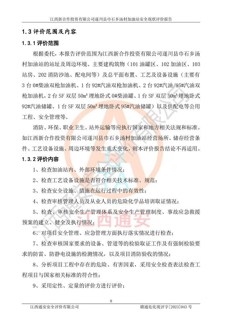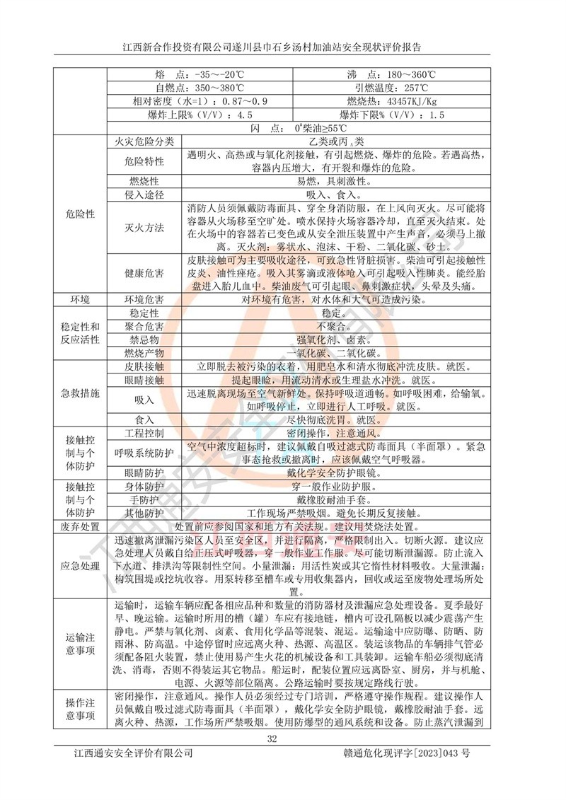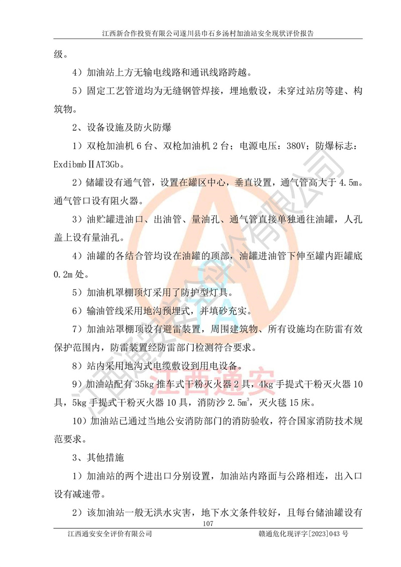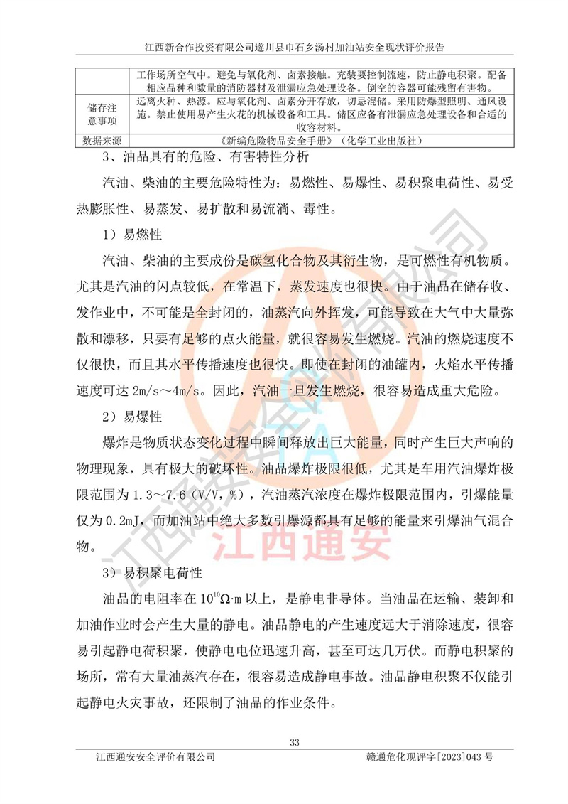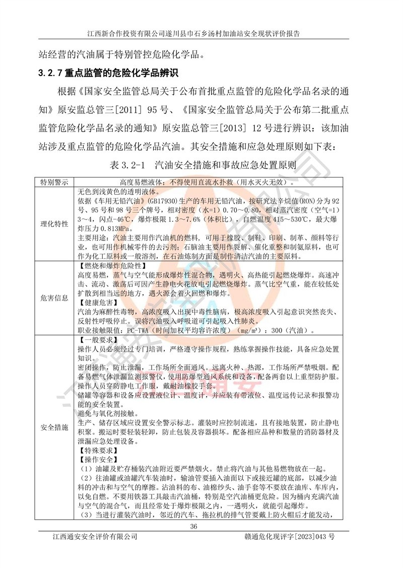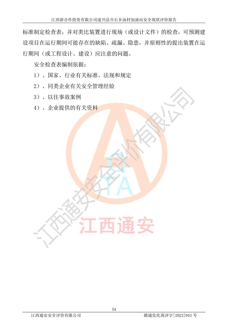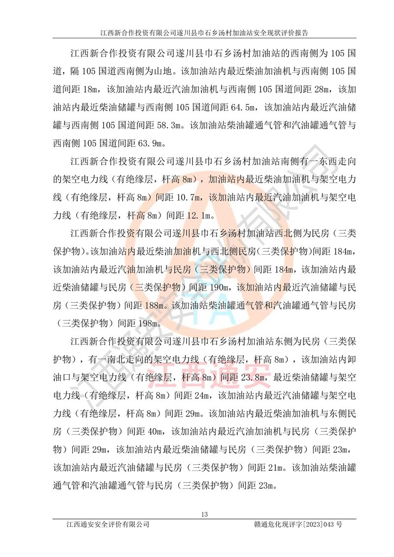 评价报告名称 | 江西新合作投资有限公司遂川县巾石乡汤村加油站安全现状评价报告 | |||