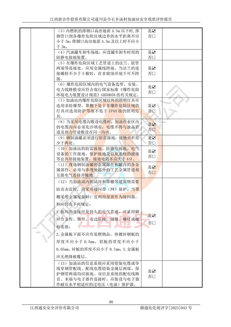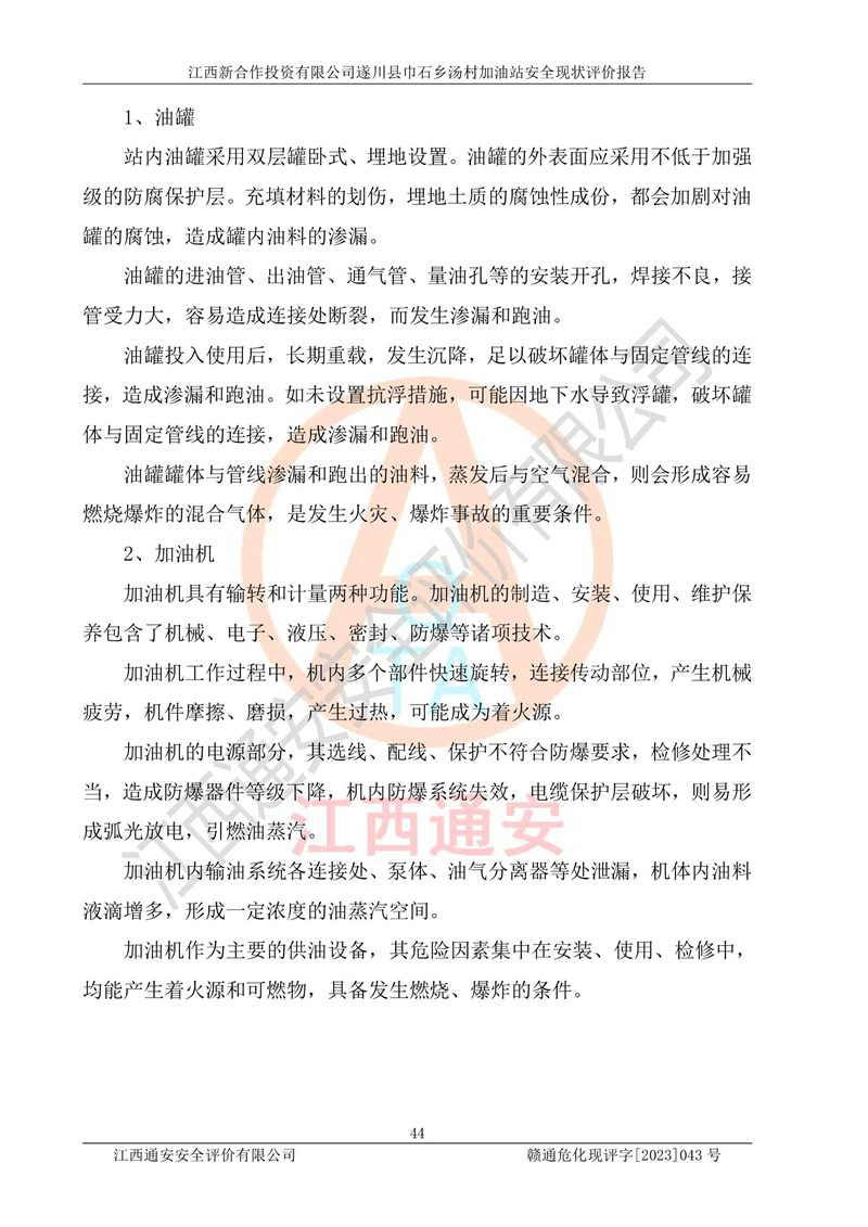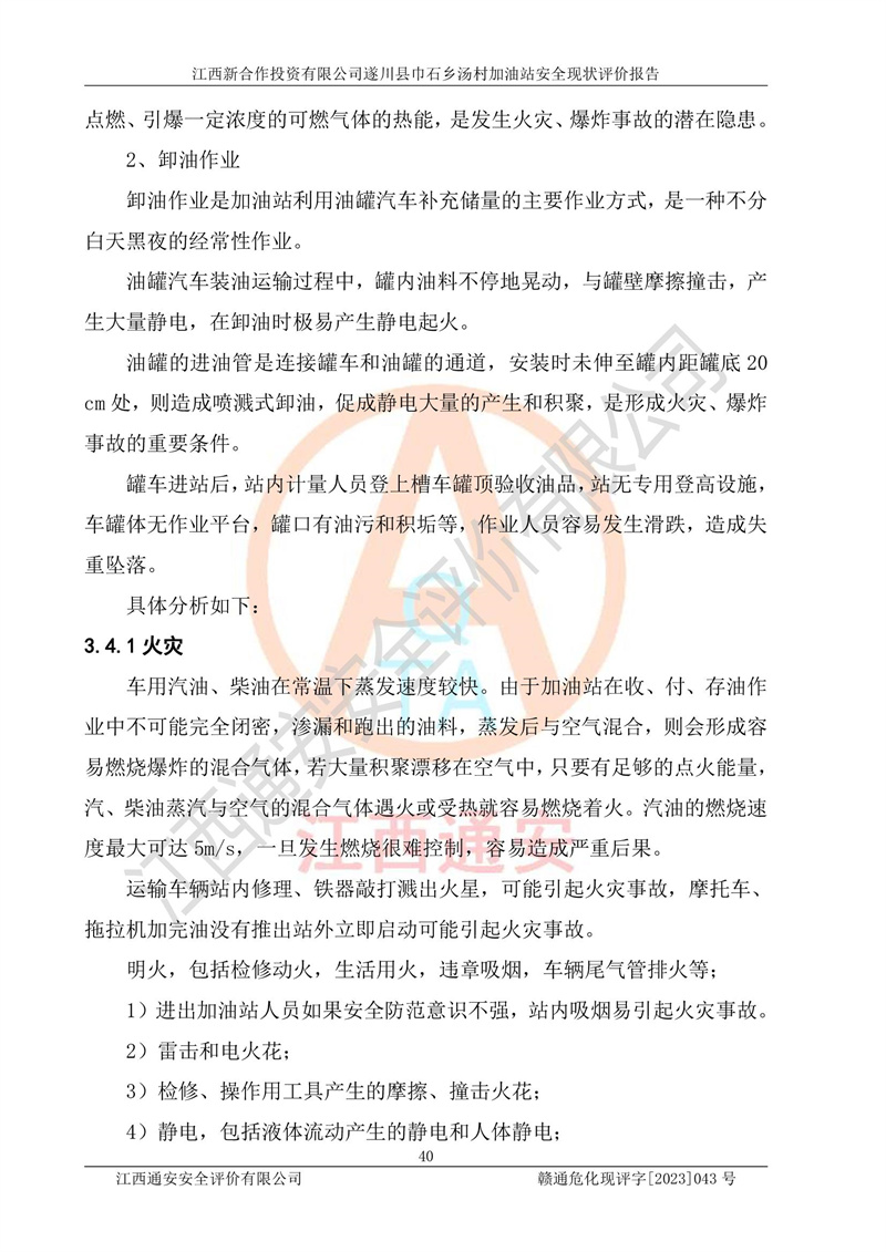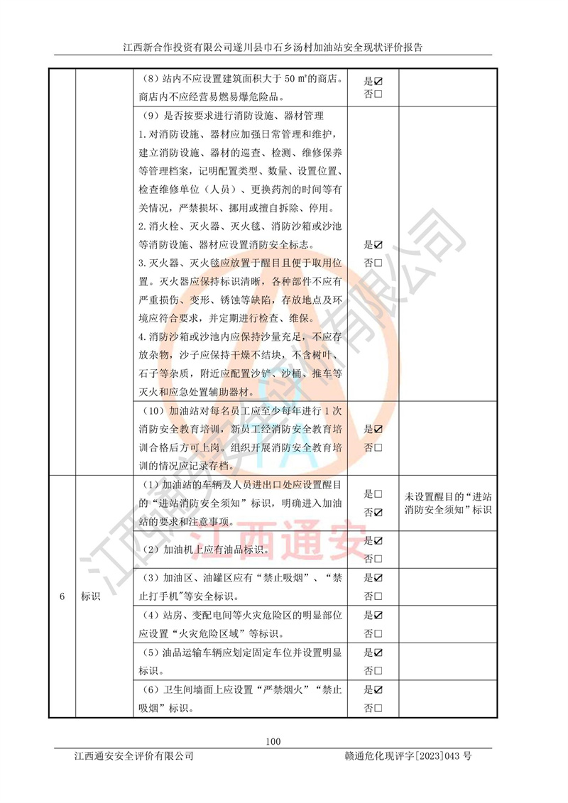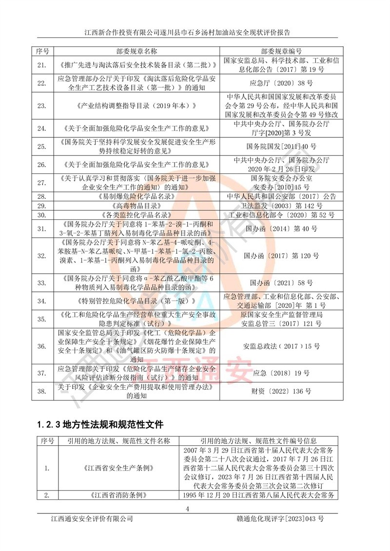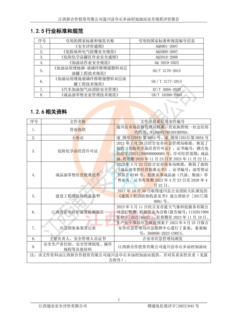 评价报告名称 | 江西新合作投资有限公司遂川县巾石乡汤村加油站安全现状评价报告 | |||