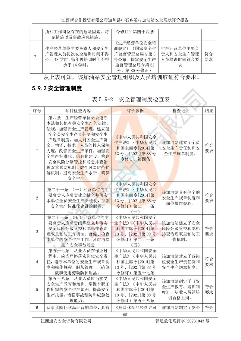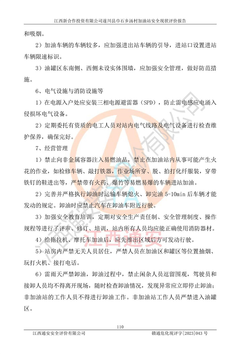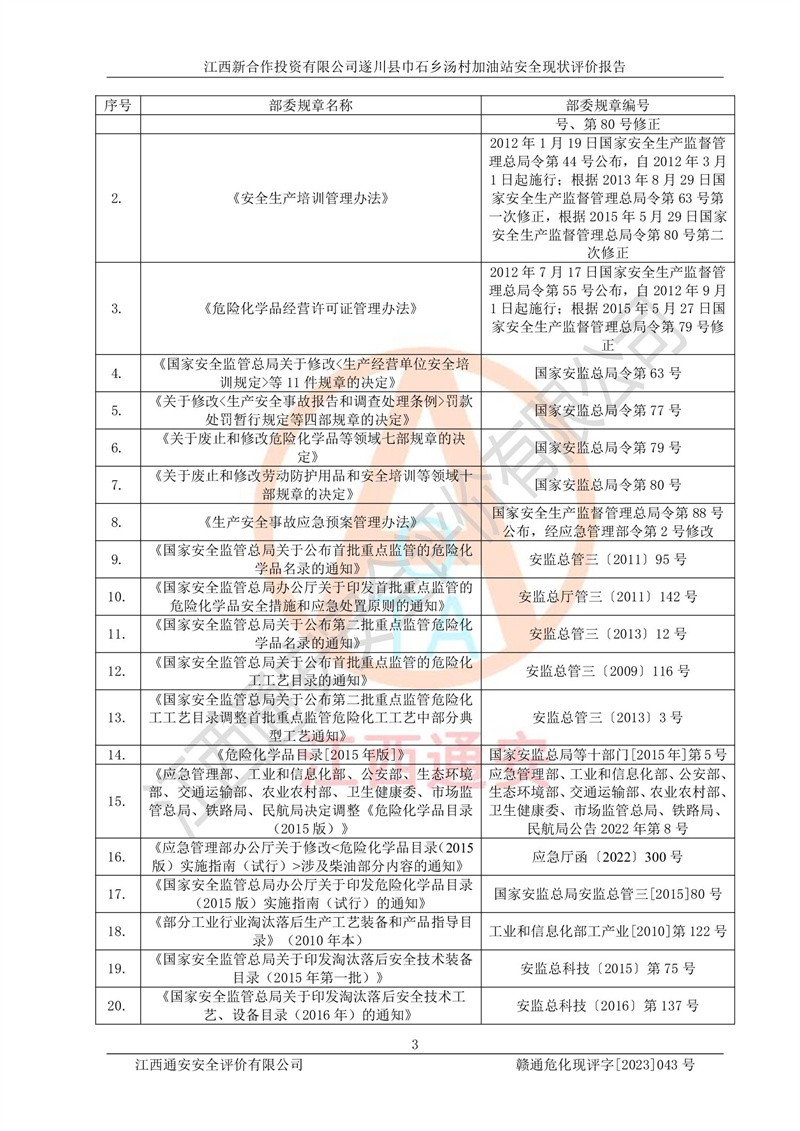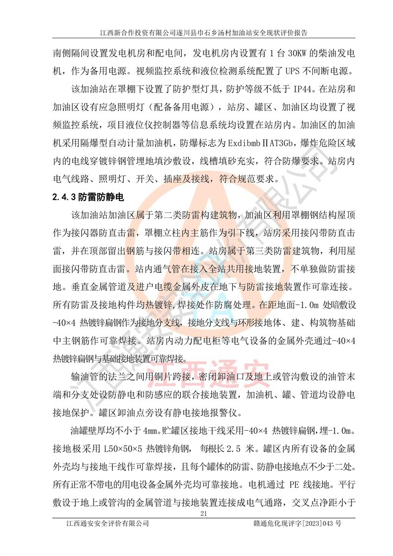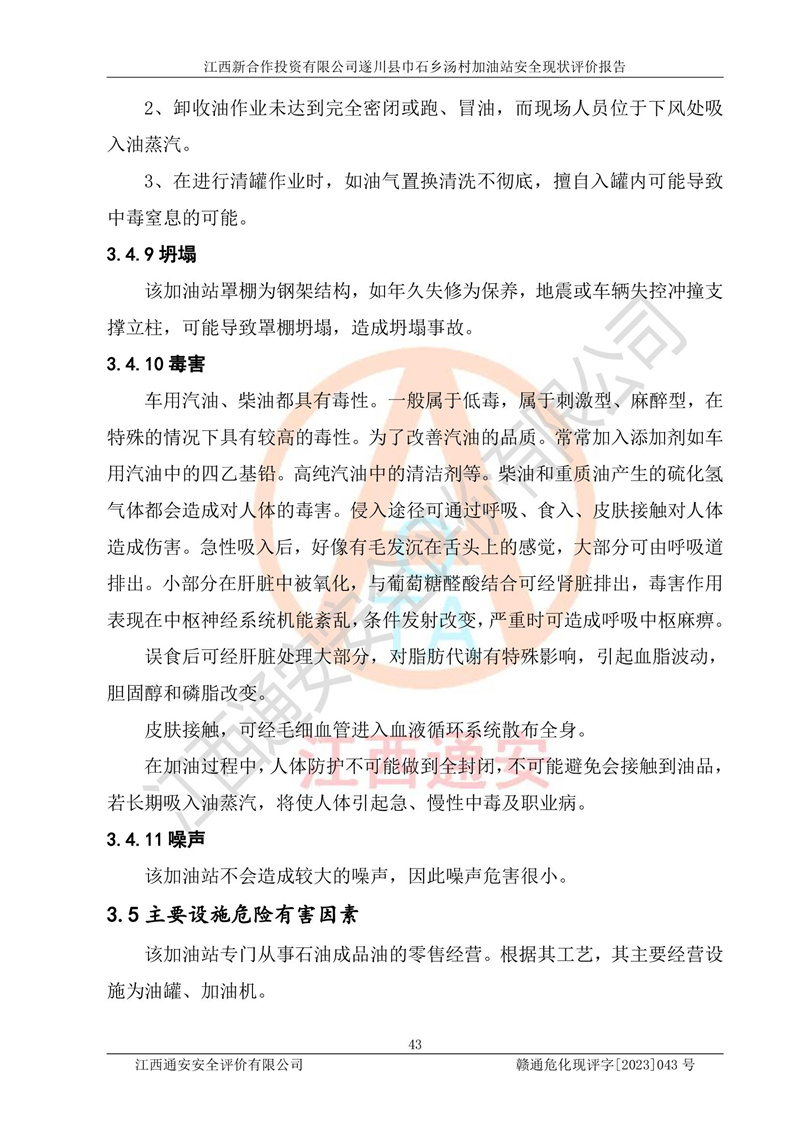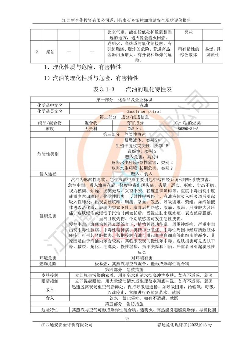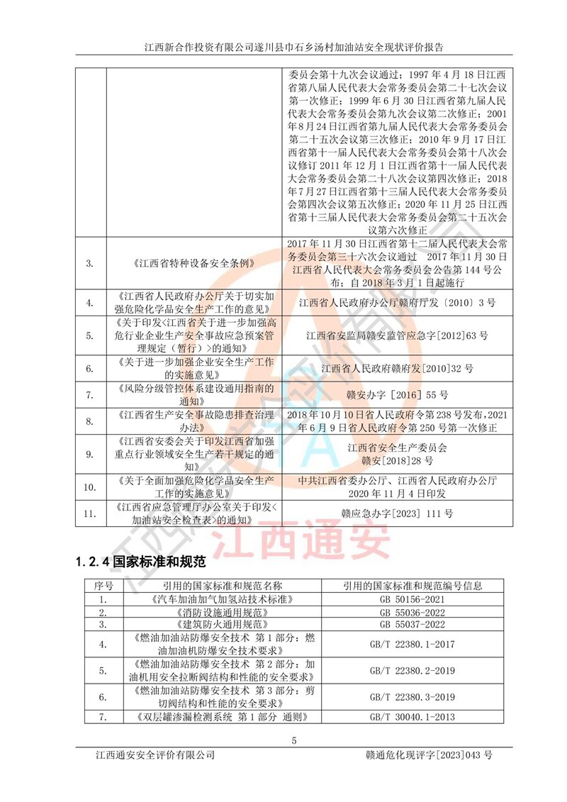 评价报告名称 | 江西新合作投资有限公司遂川县巾石乡汤村加油站安全现状评价报告 | |||