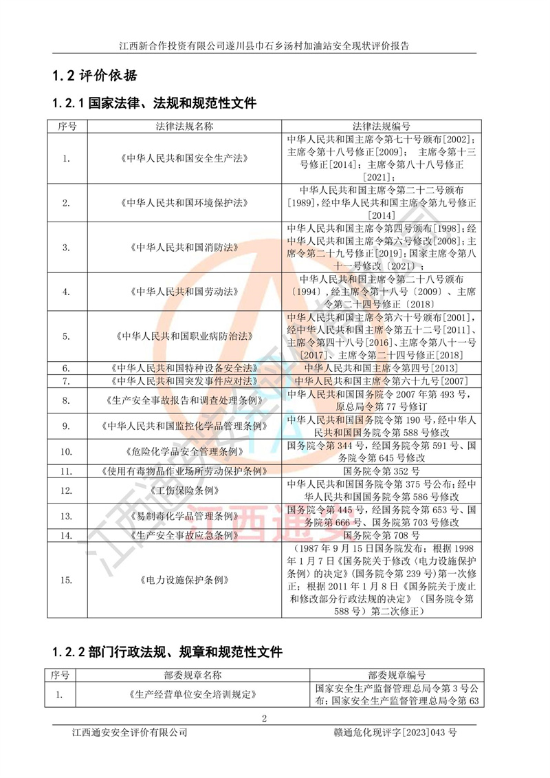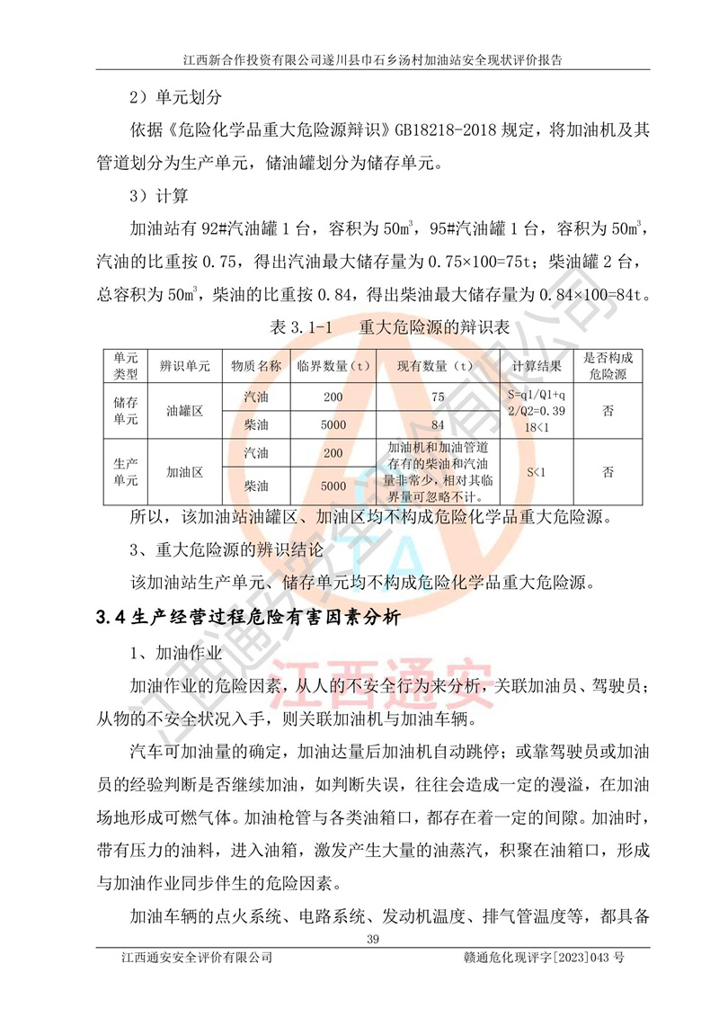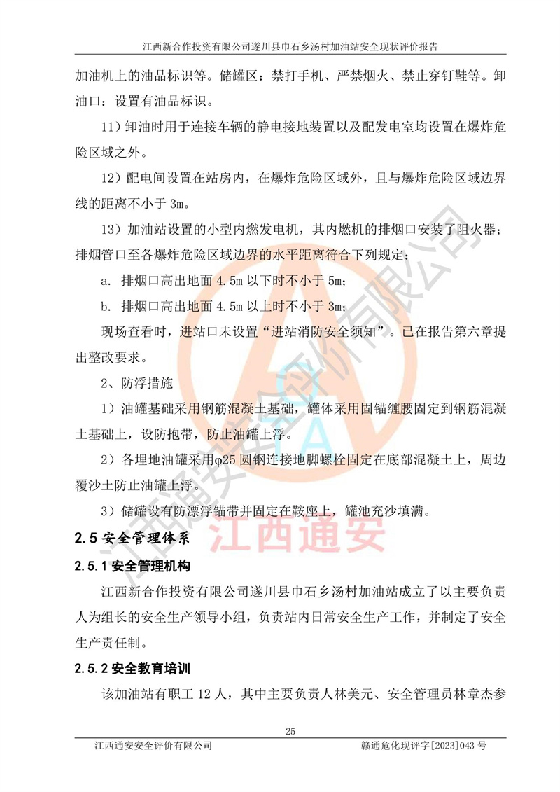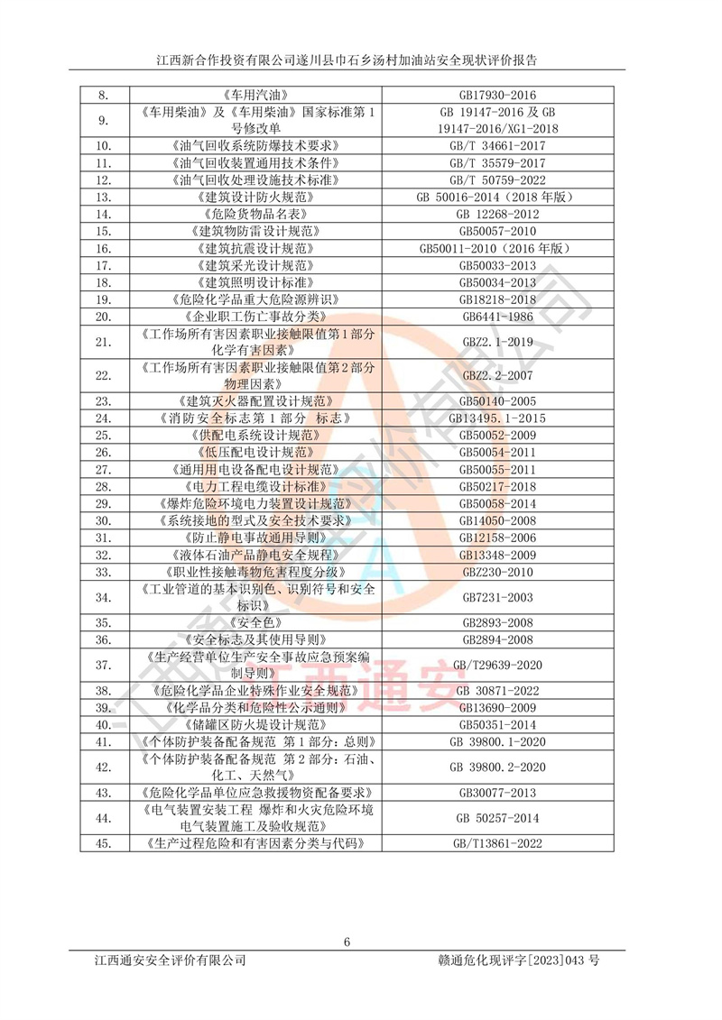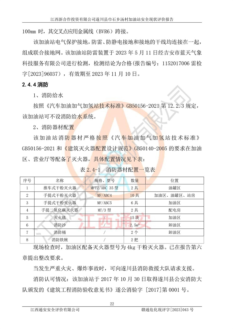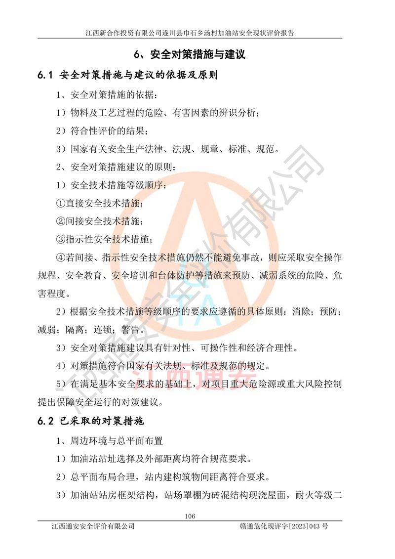 评价报告名称 | 江西新合作投资有限公司遂川县巾石乡汤村加油站安全现状评价报告 | |||