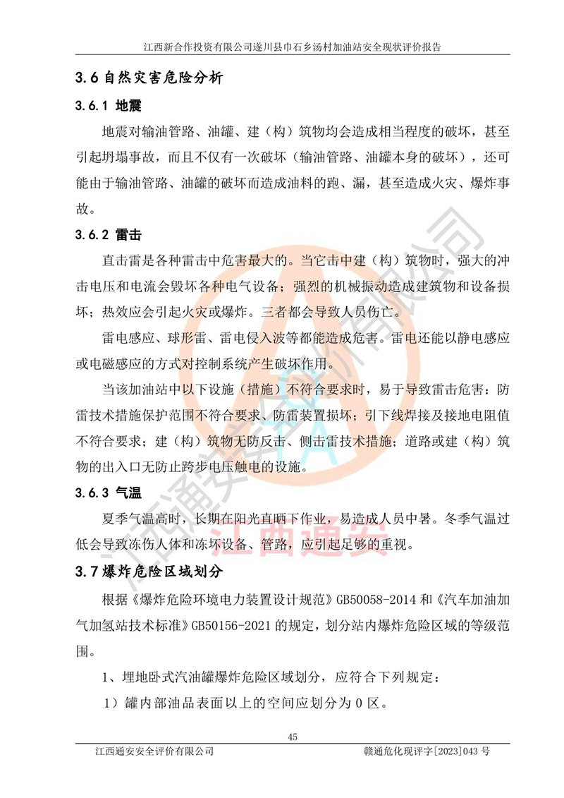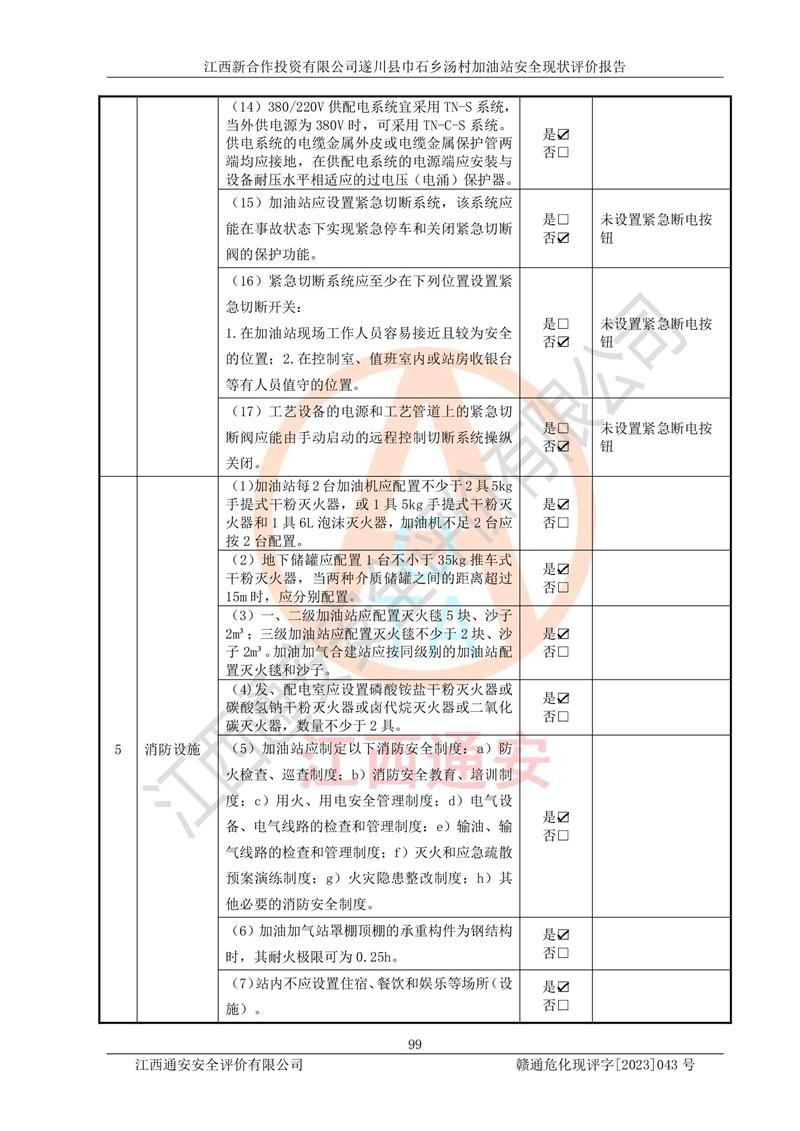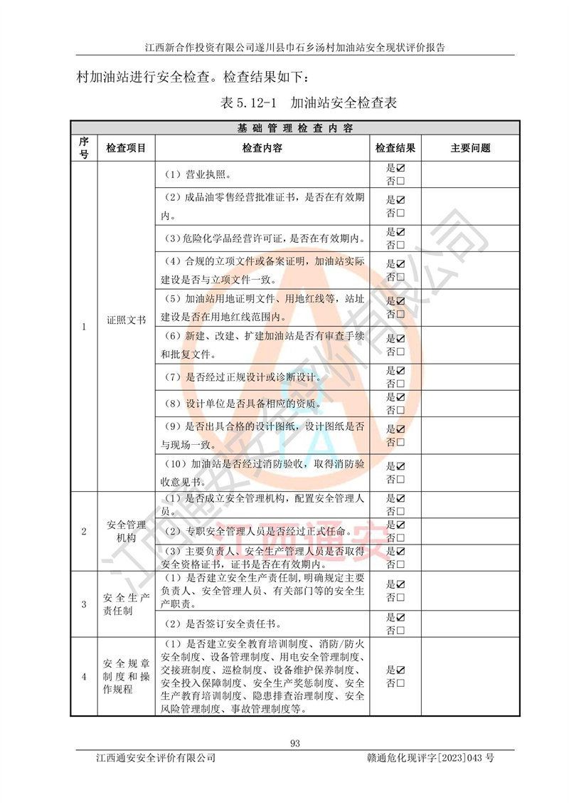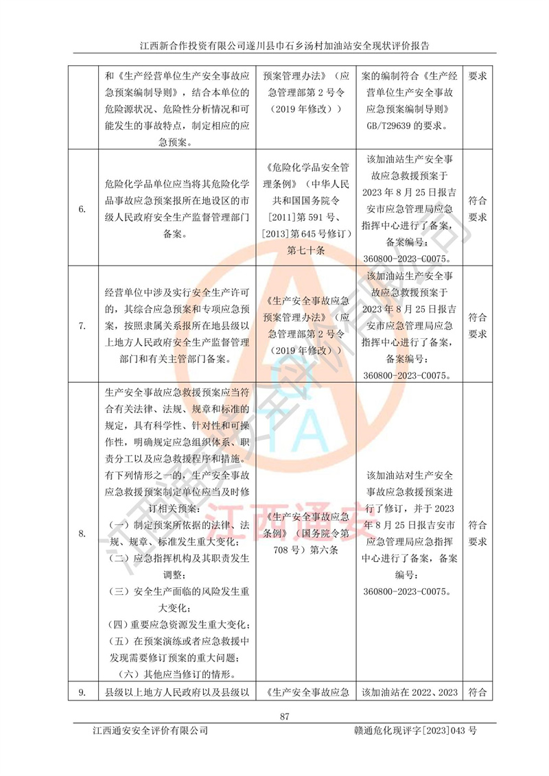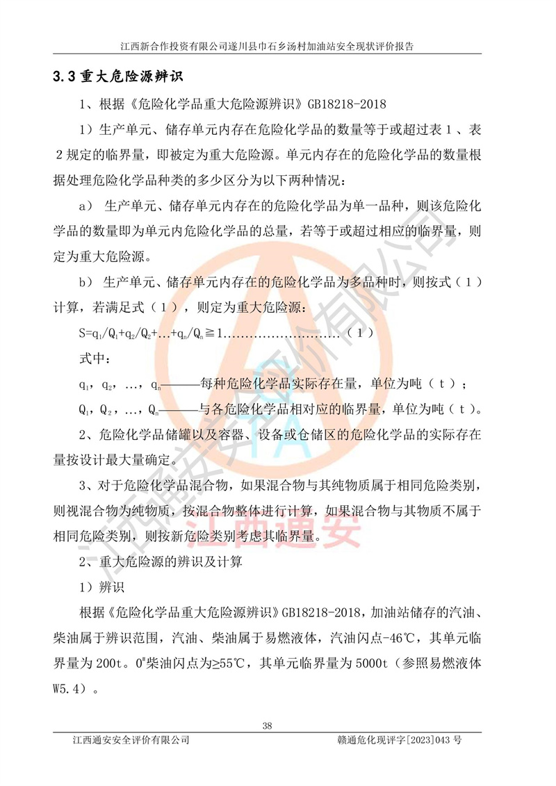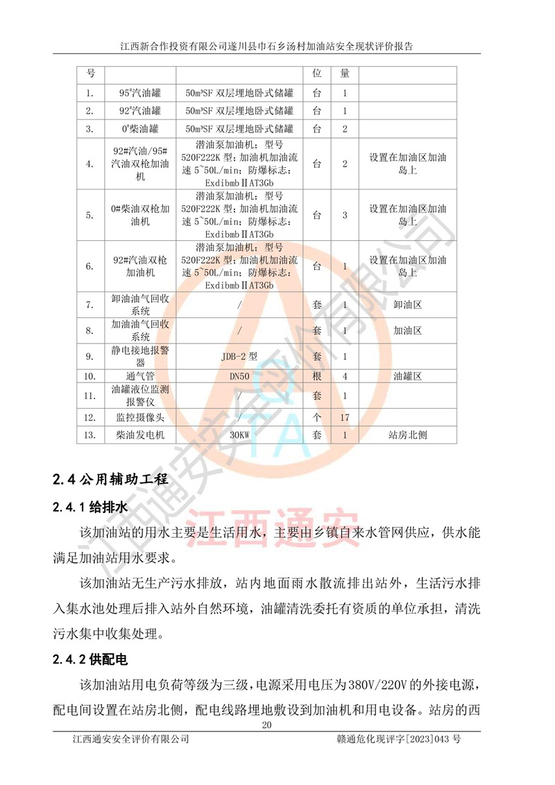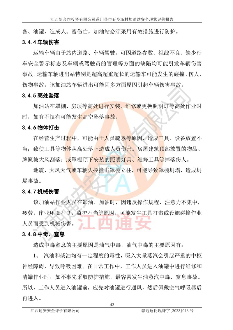 评价报告名称 | 江西新合作投资有限公司遂川县巾石乡汤村加油站安全现状评价报告 | |||