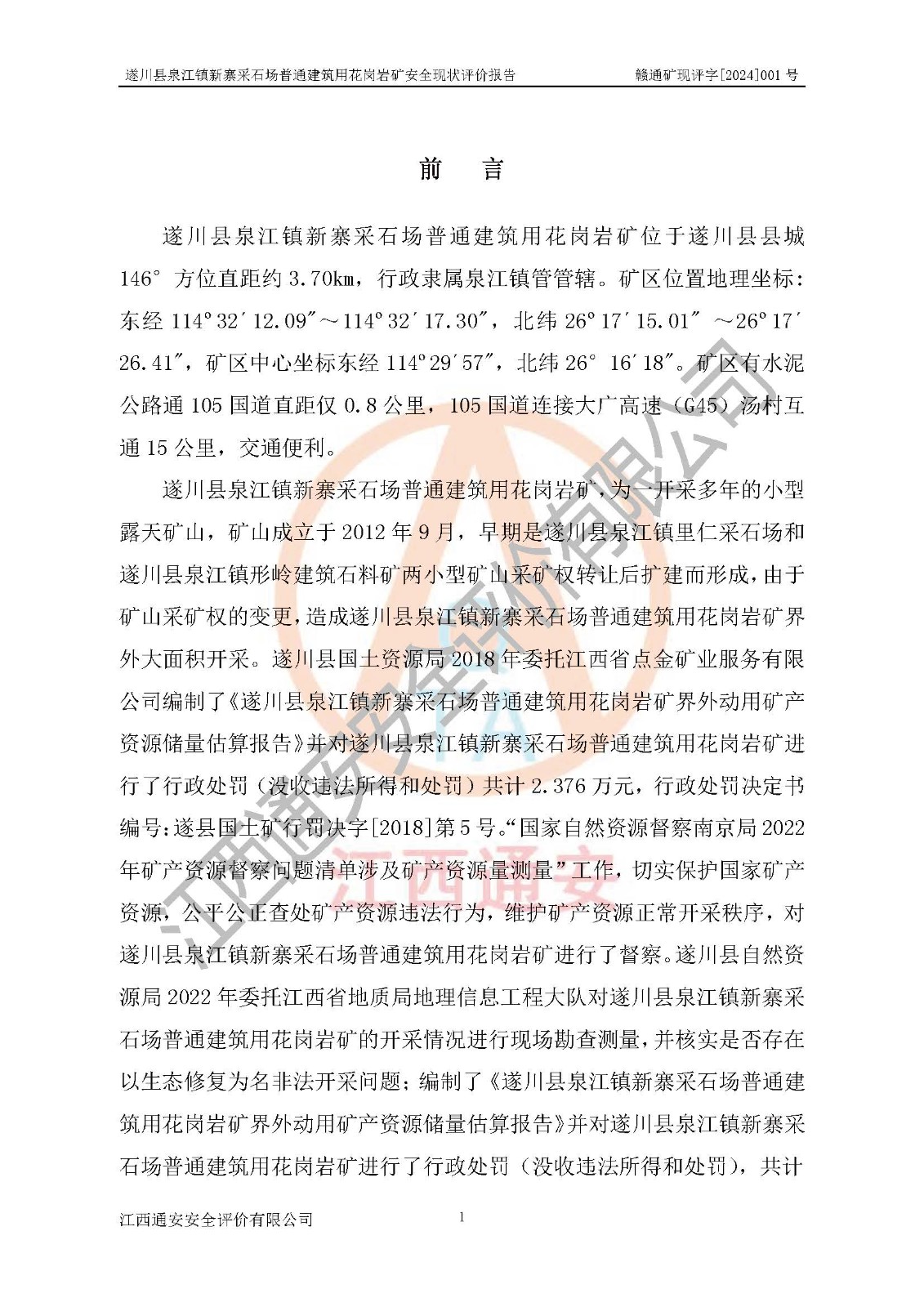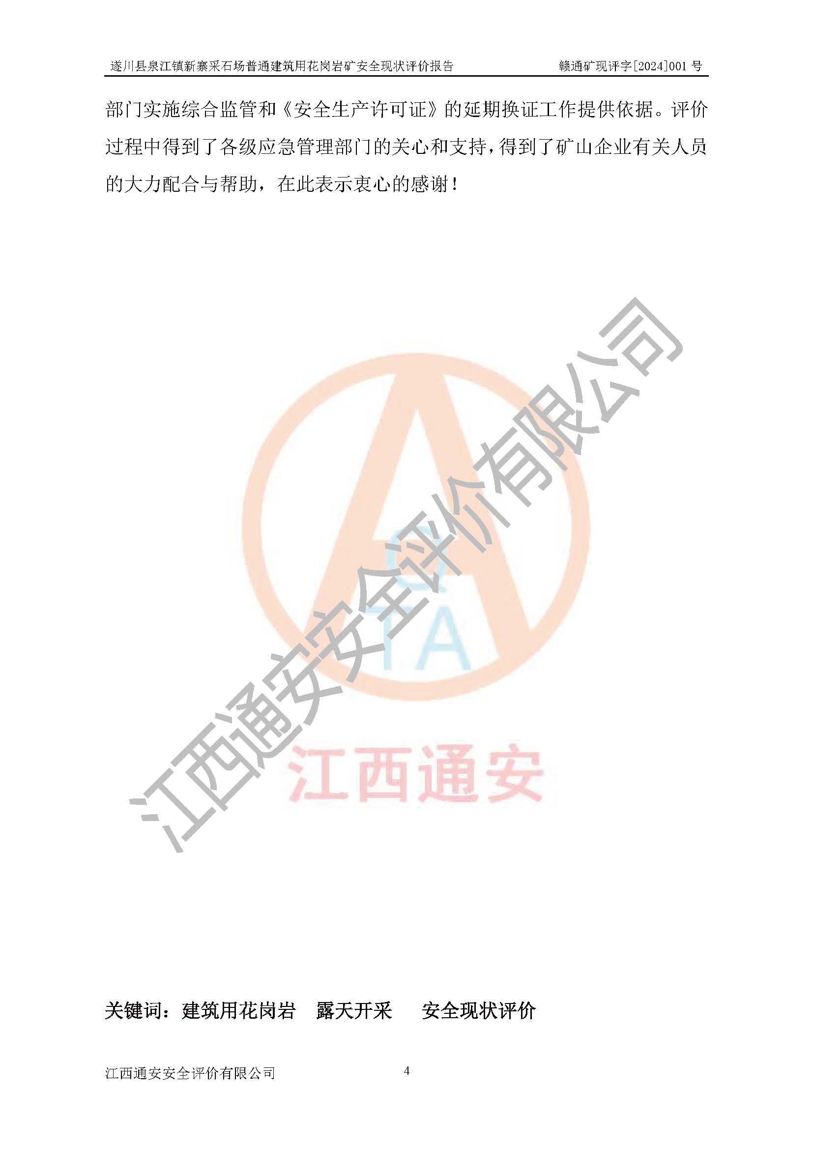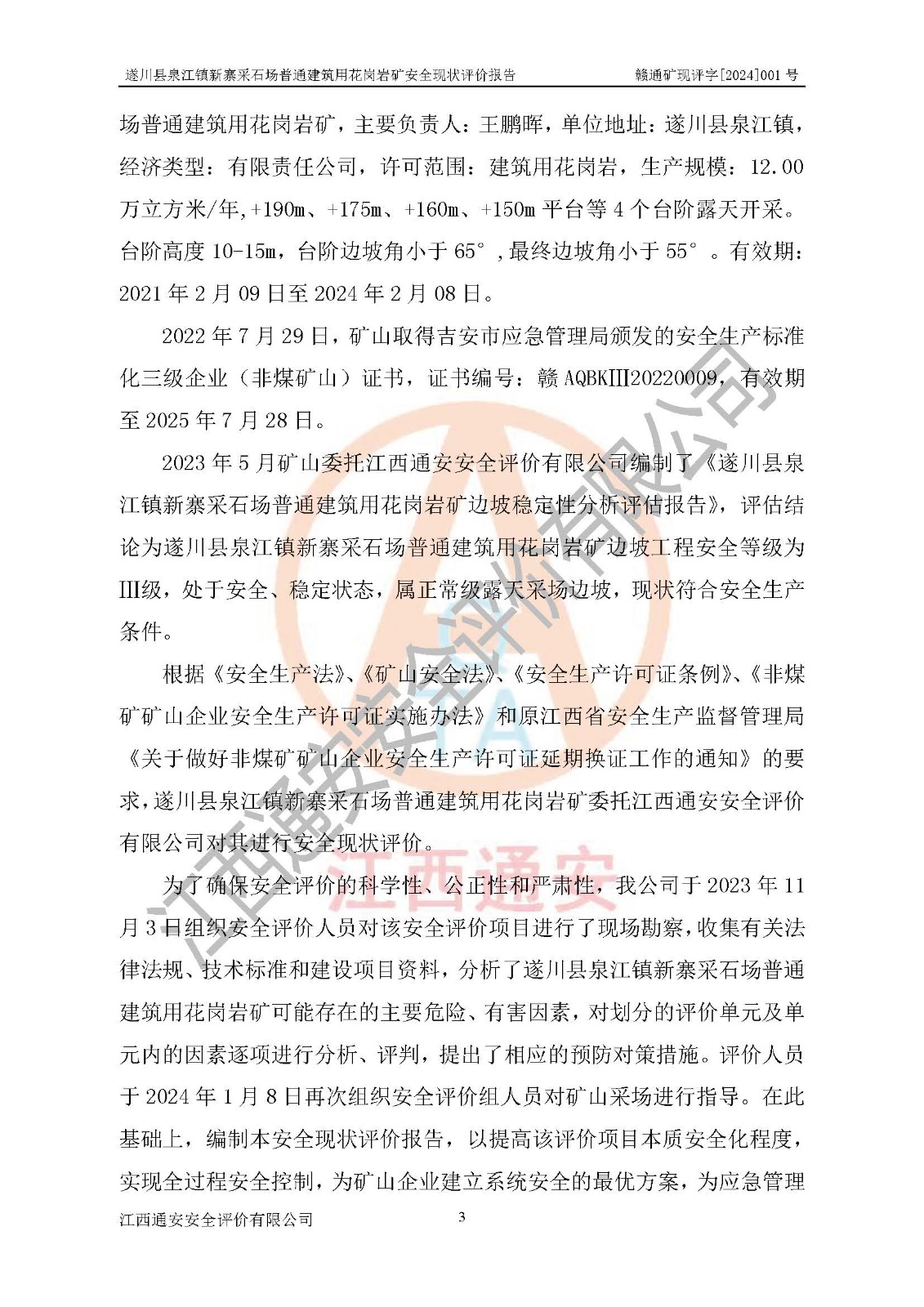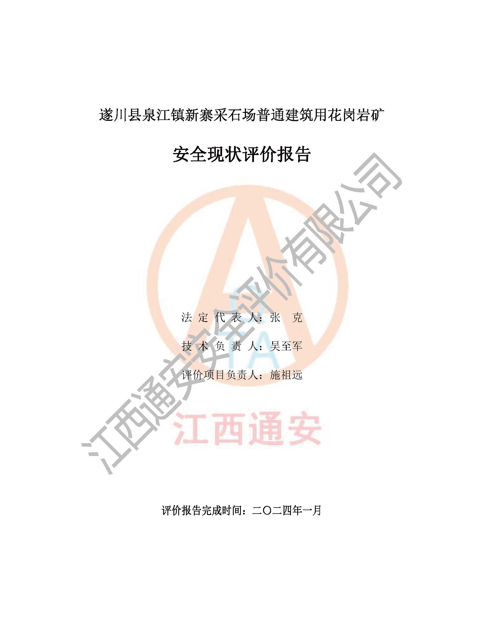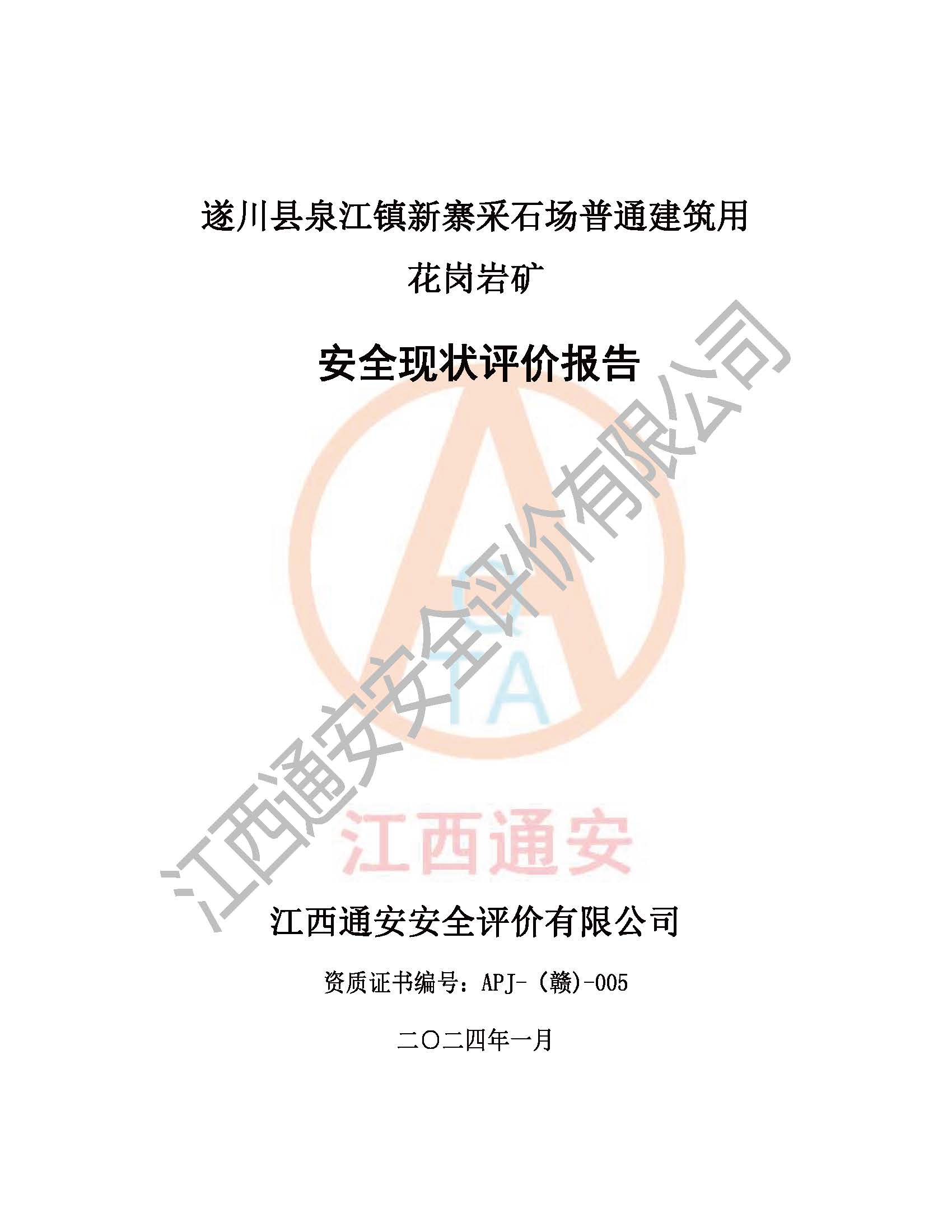 项目名称 | 遂川县泉江镇新寨采石场普通建筑用花岗岩矿安全现状评价报告 | ||||