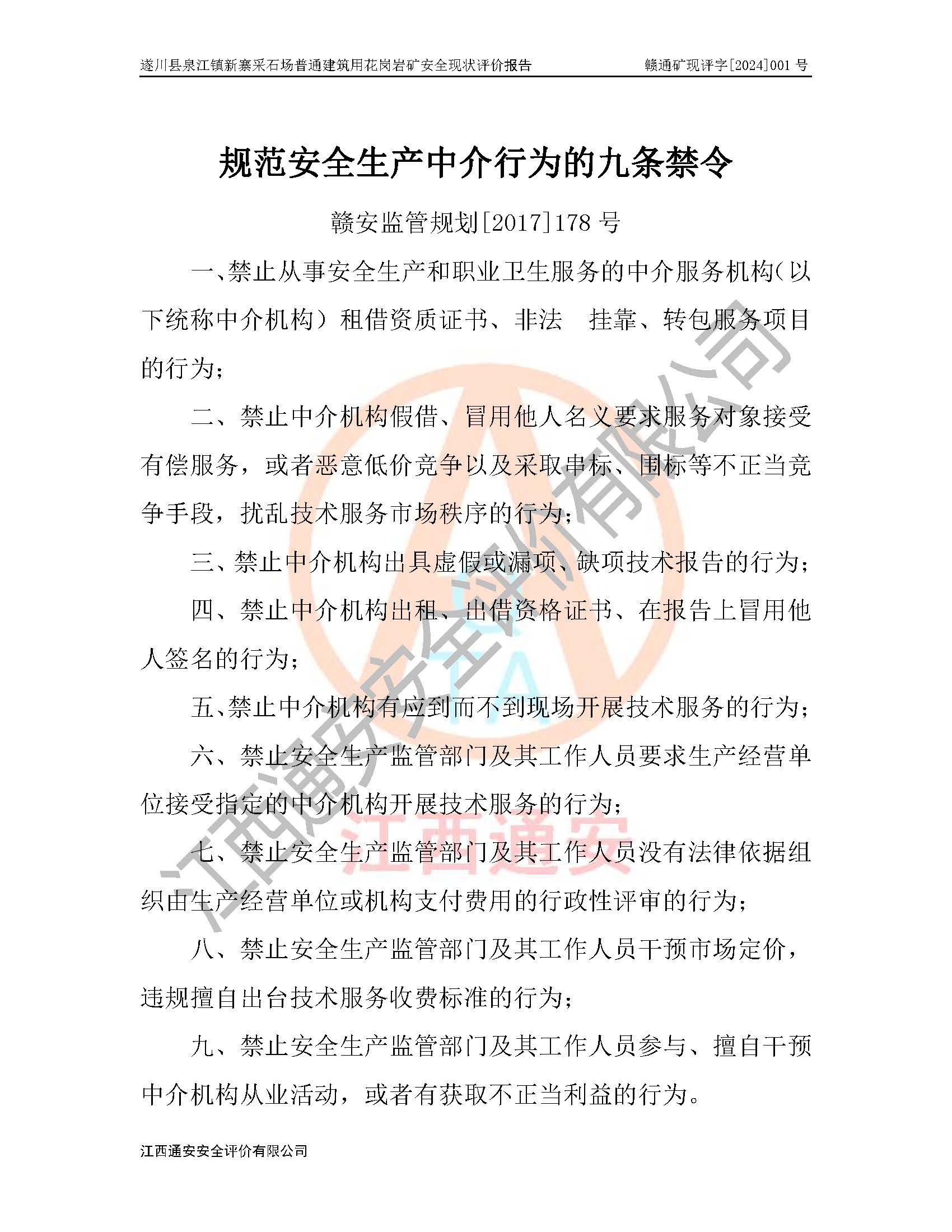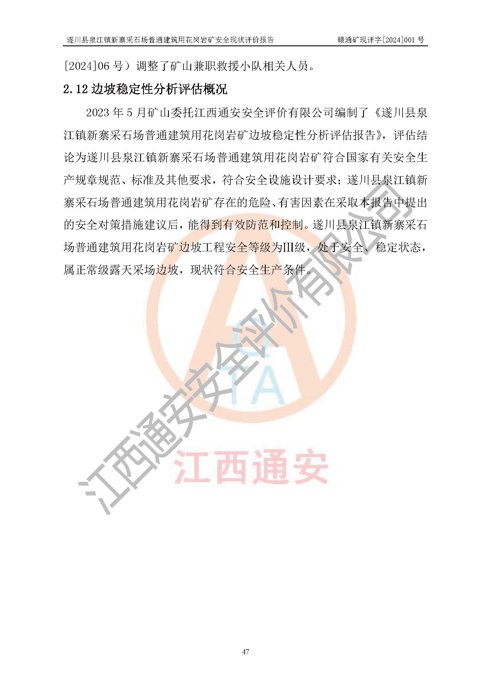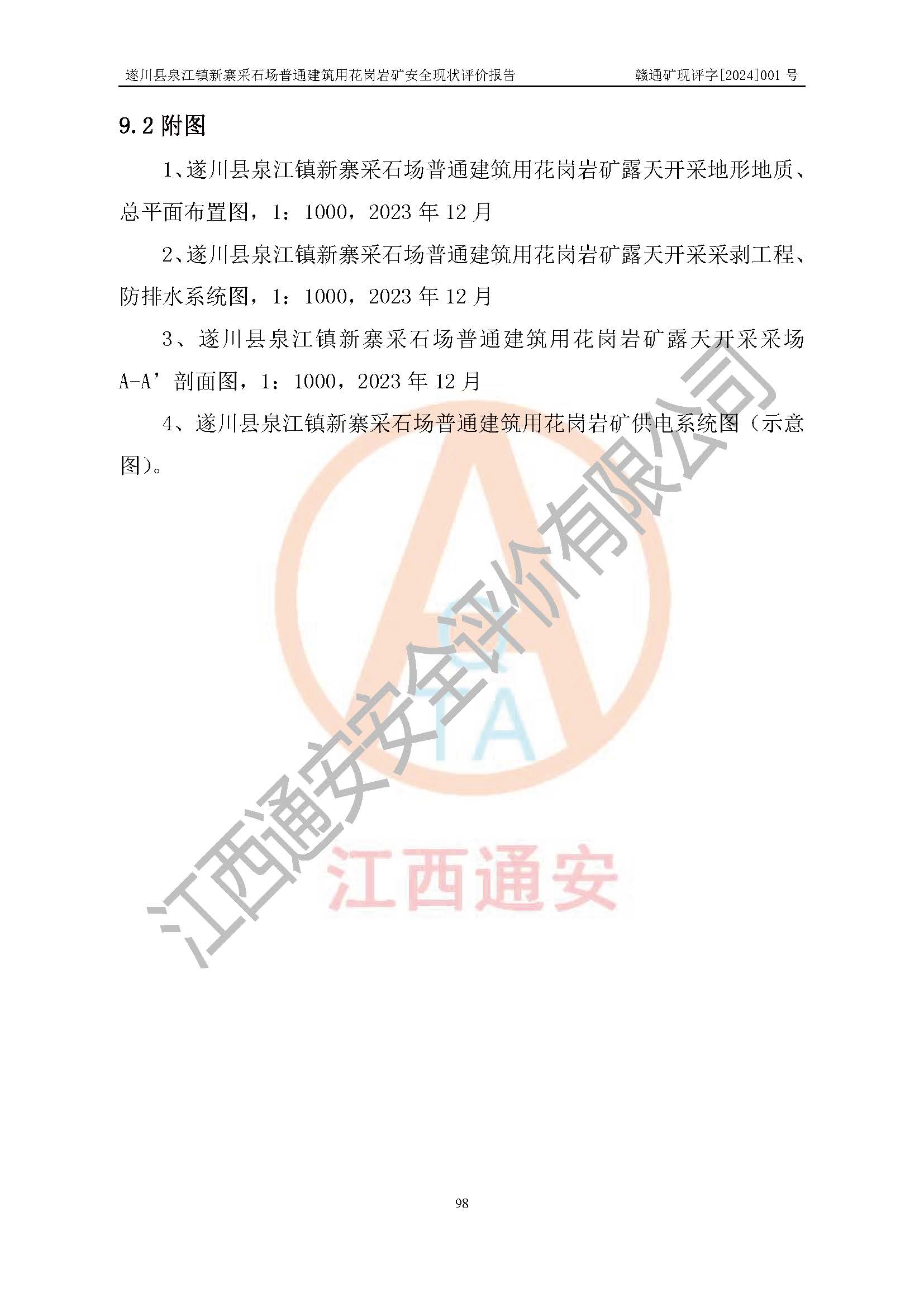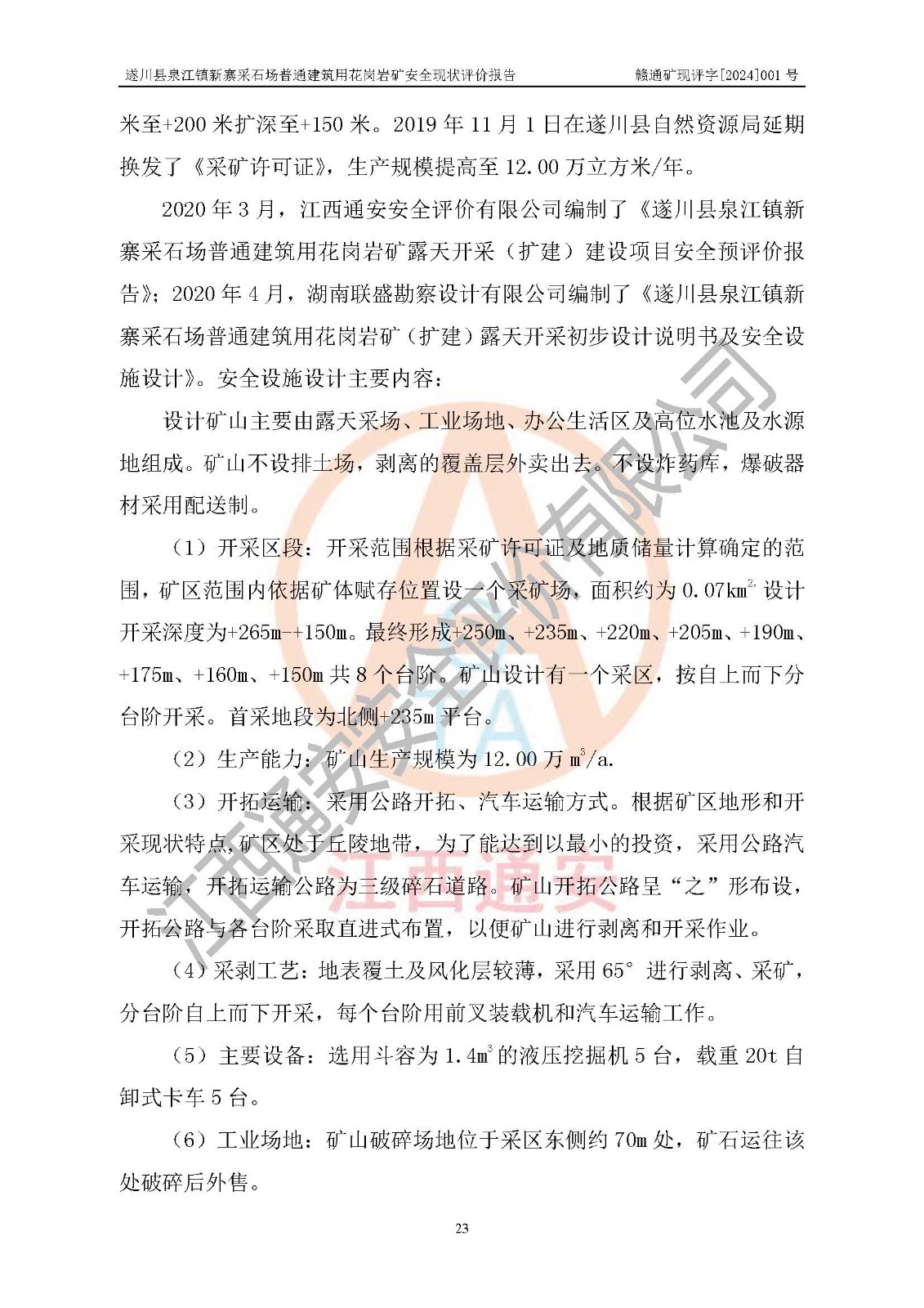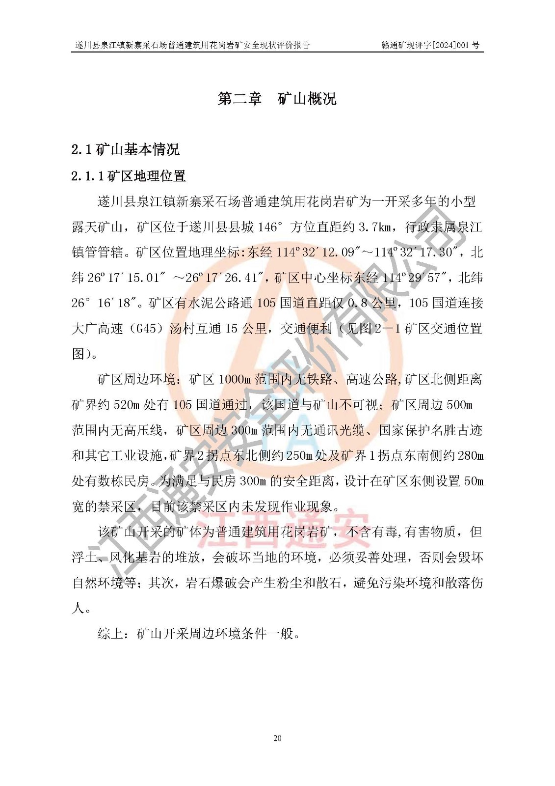 项目名称 | 遂川县泉江镇新寨采石场普通建筑用花岗岩矿安全现状评价报告 | ||||
