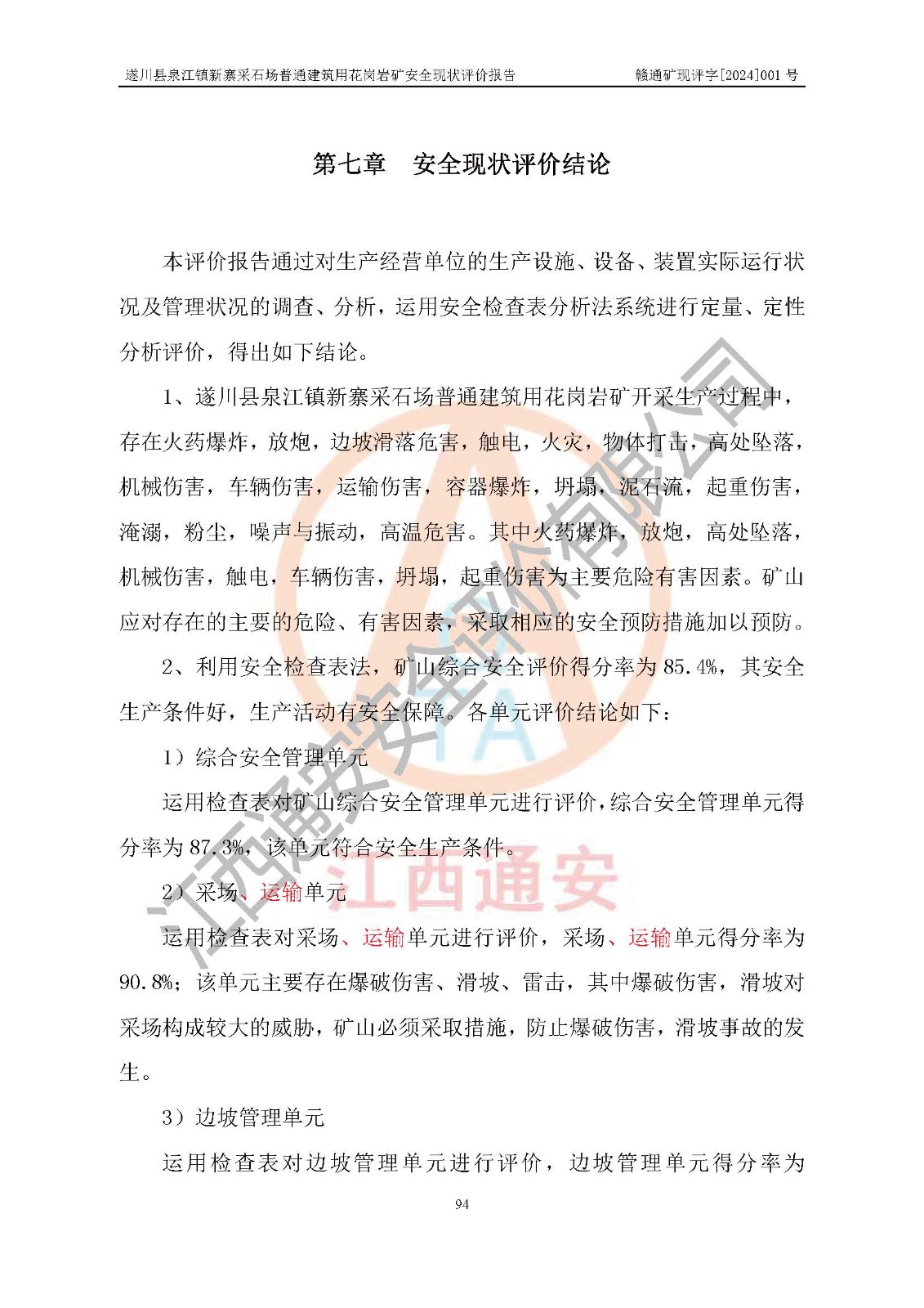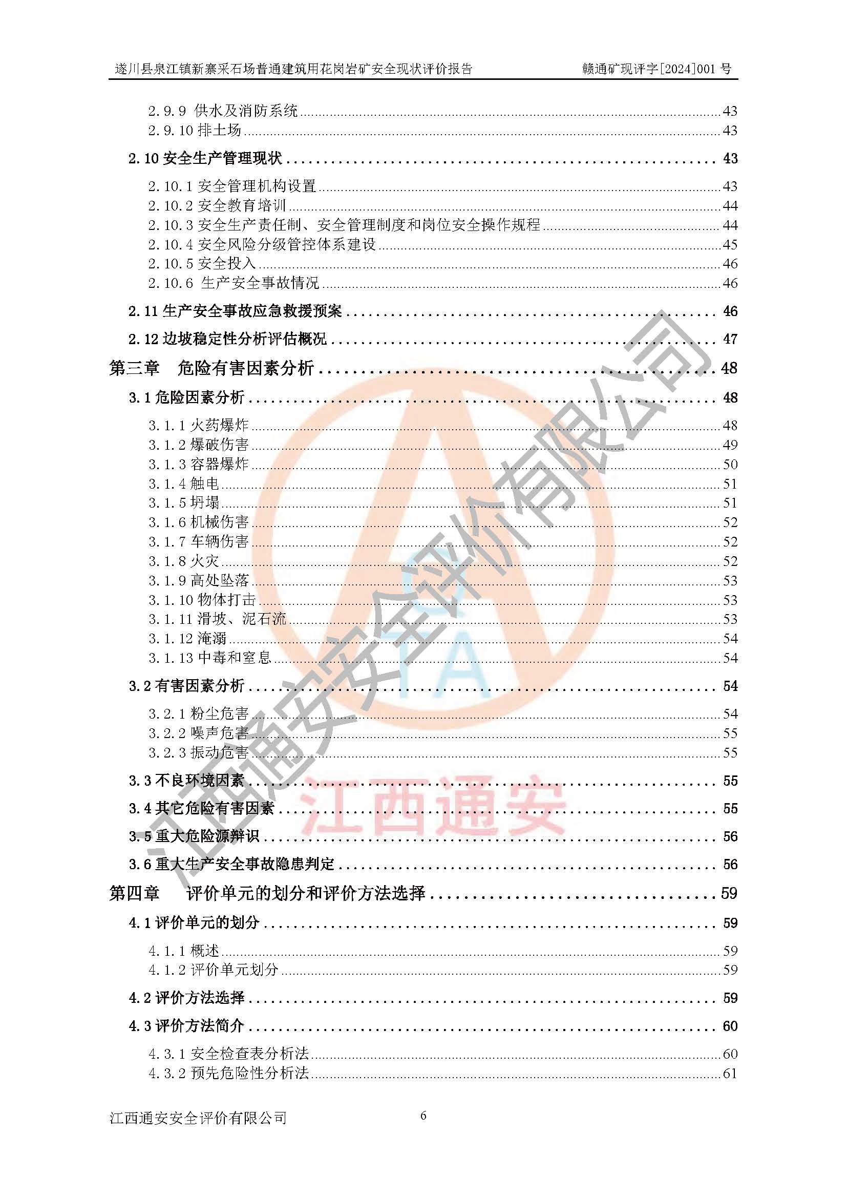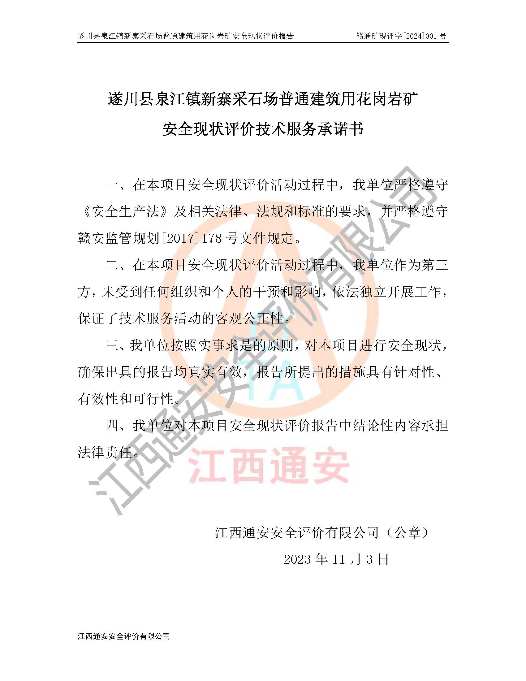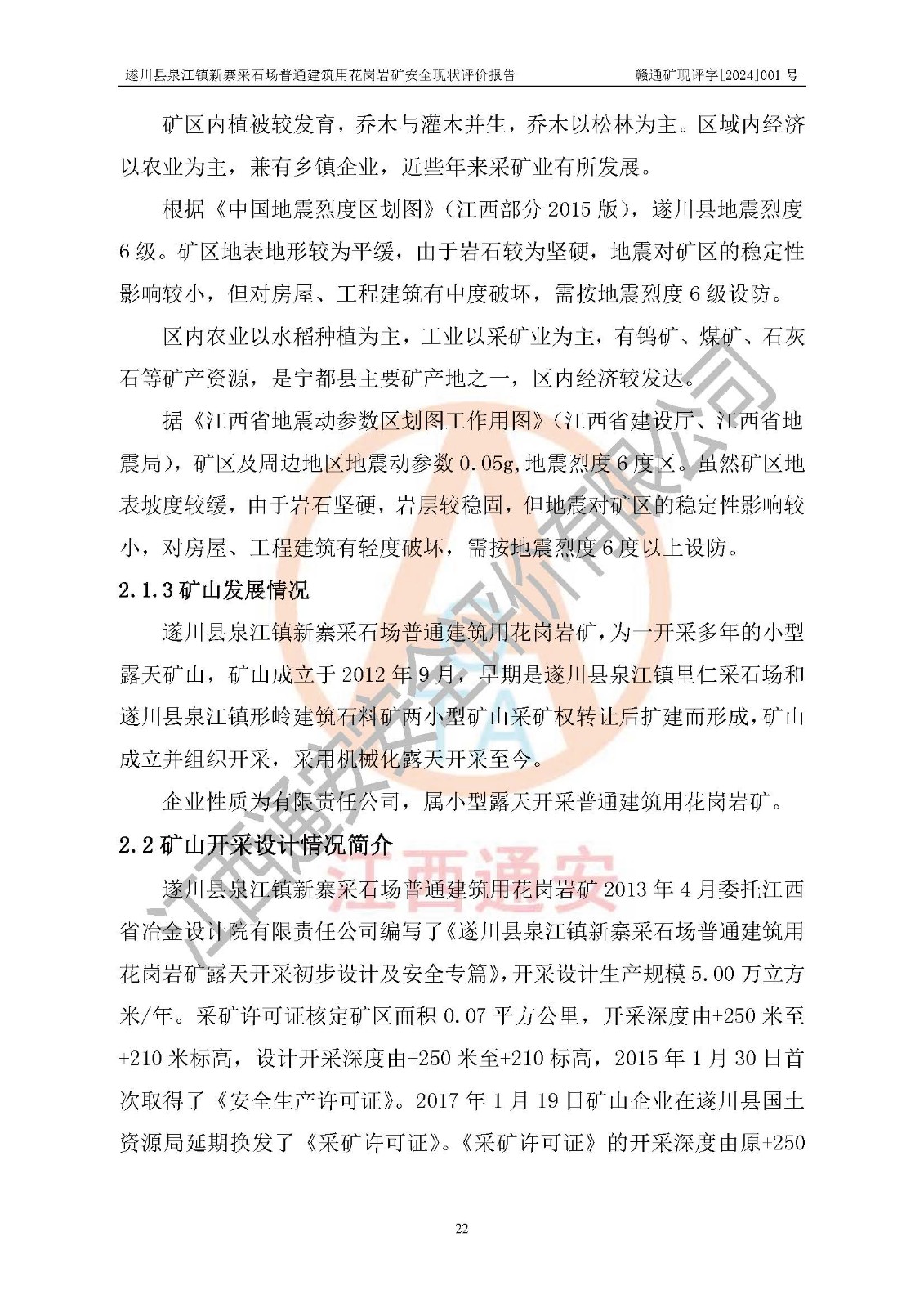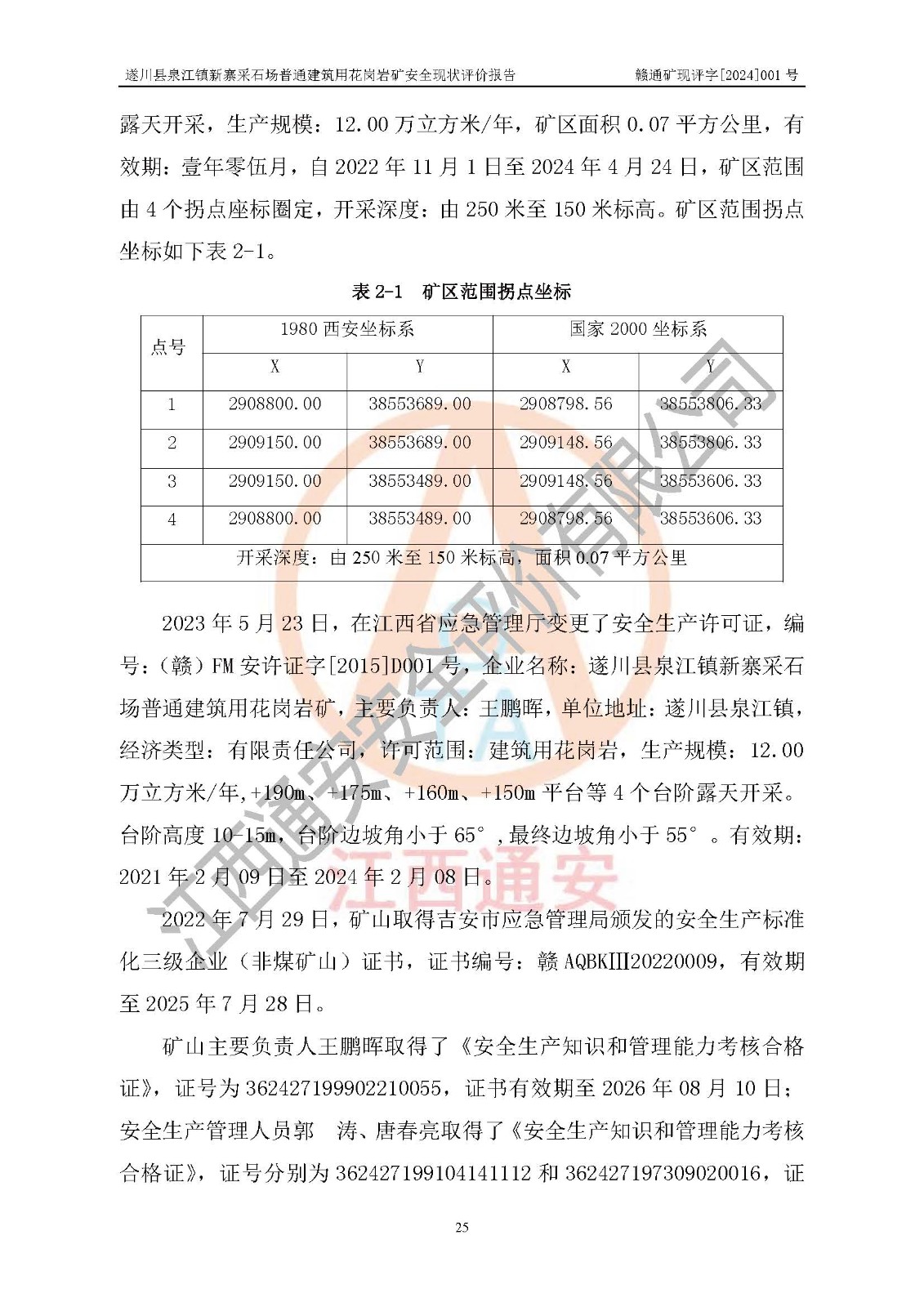 项目名称 | 遂川县泉江镇新寨采石场普通建筑用花岗岩矿安全现状评价报告 | ||||