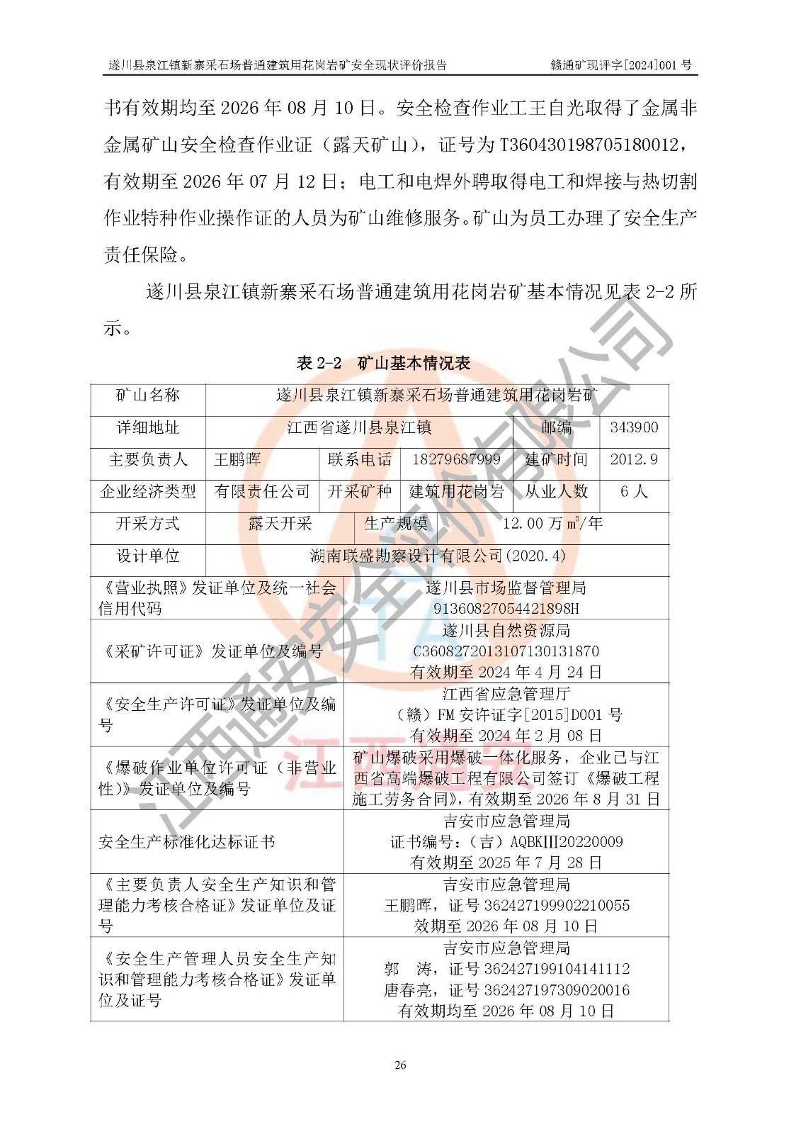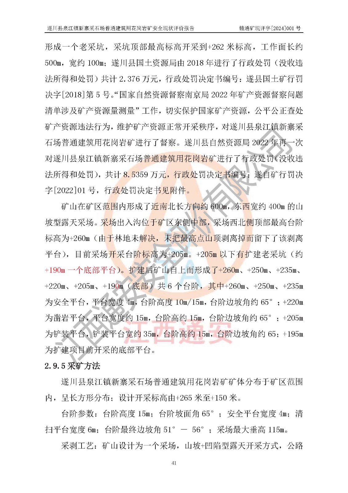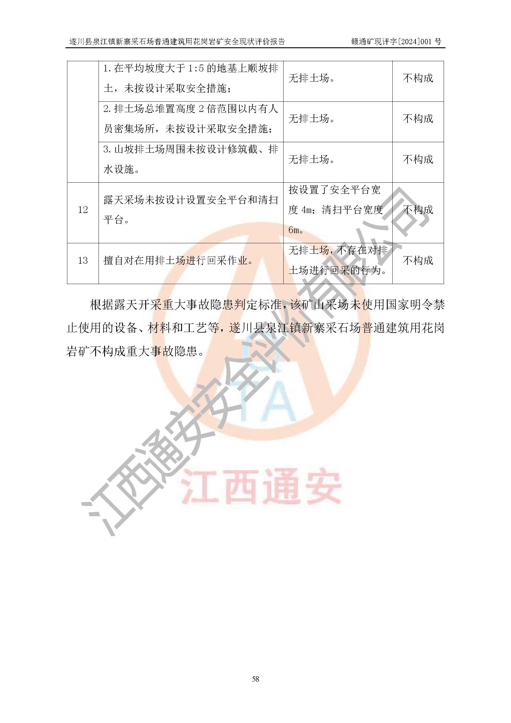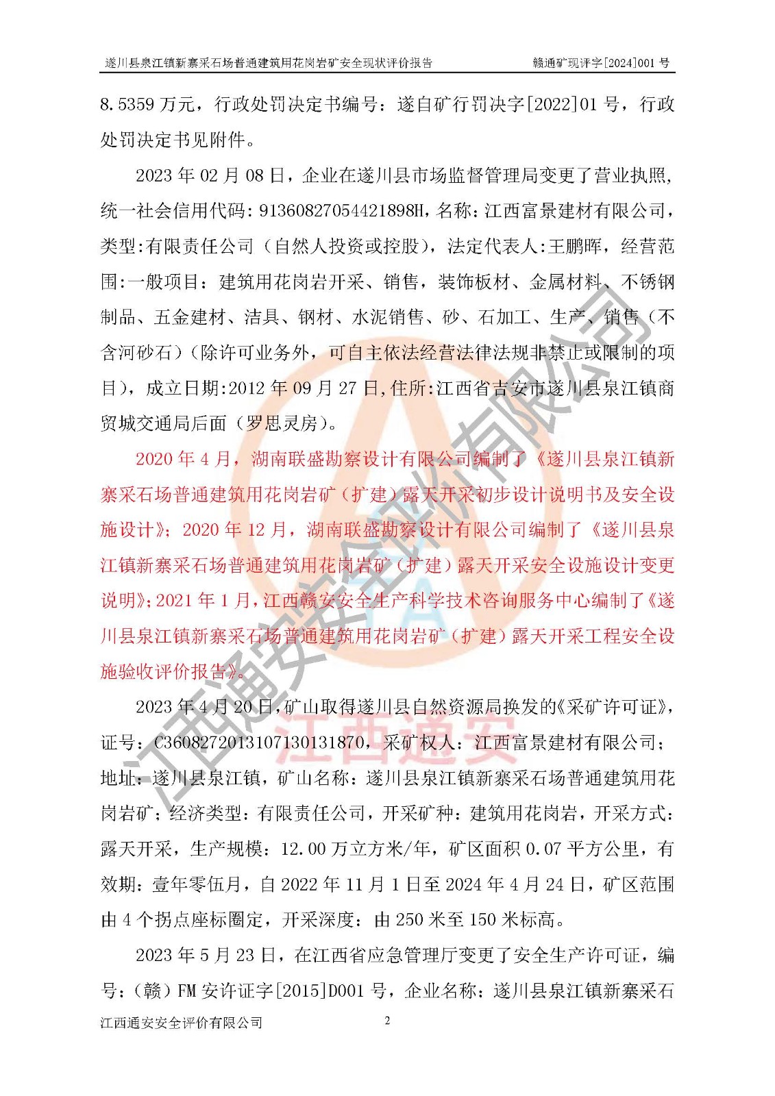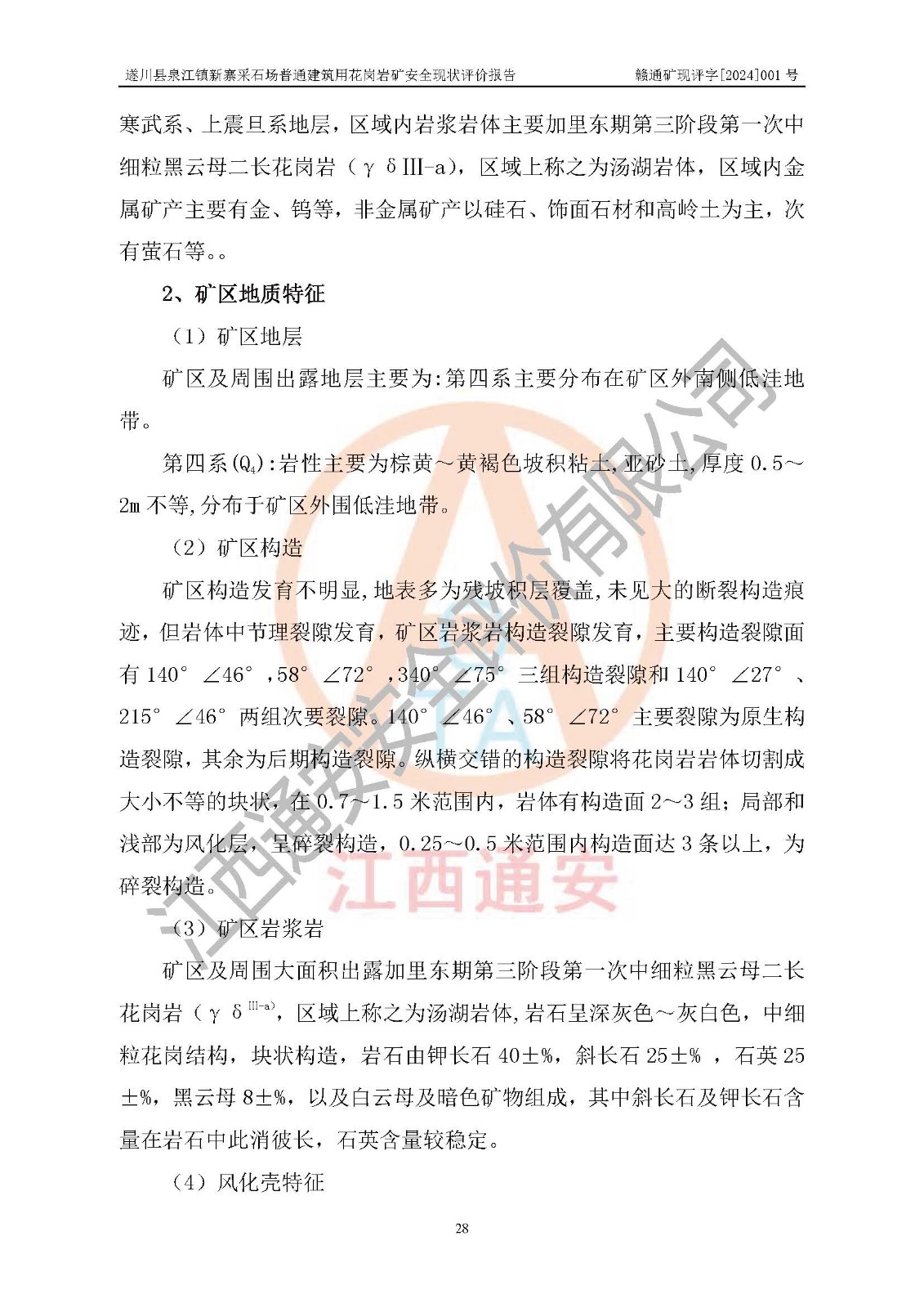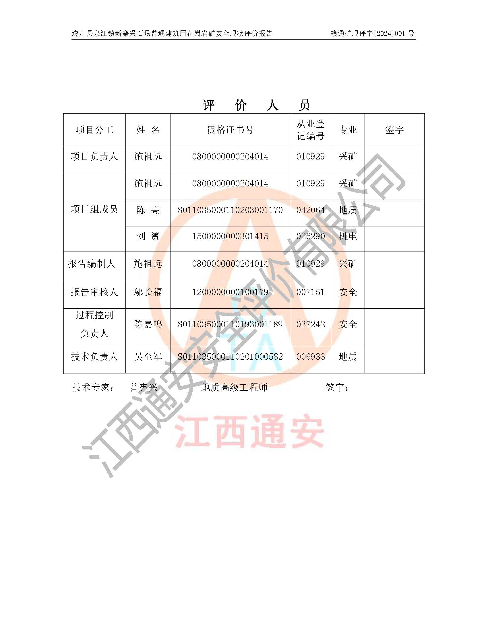 项目名称 | 遂川县泉江镇新寨采石场普通建筑用花岗岩矿安全现状评价报告 | ||||