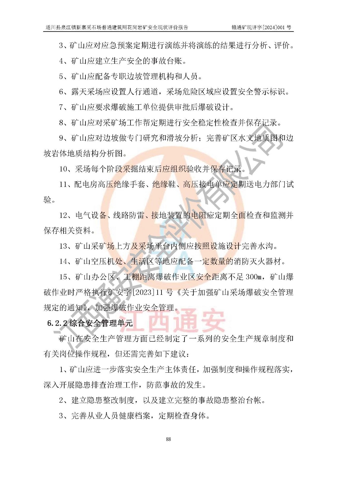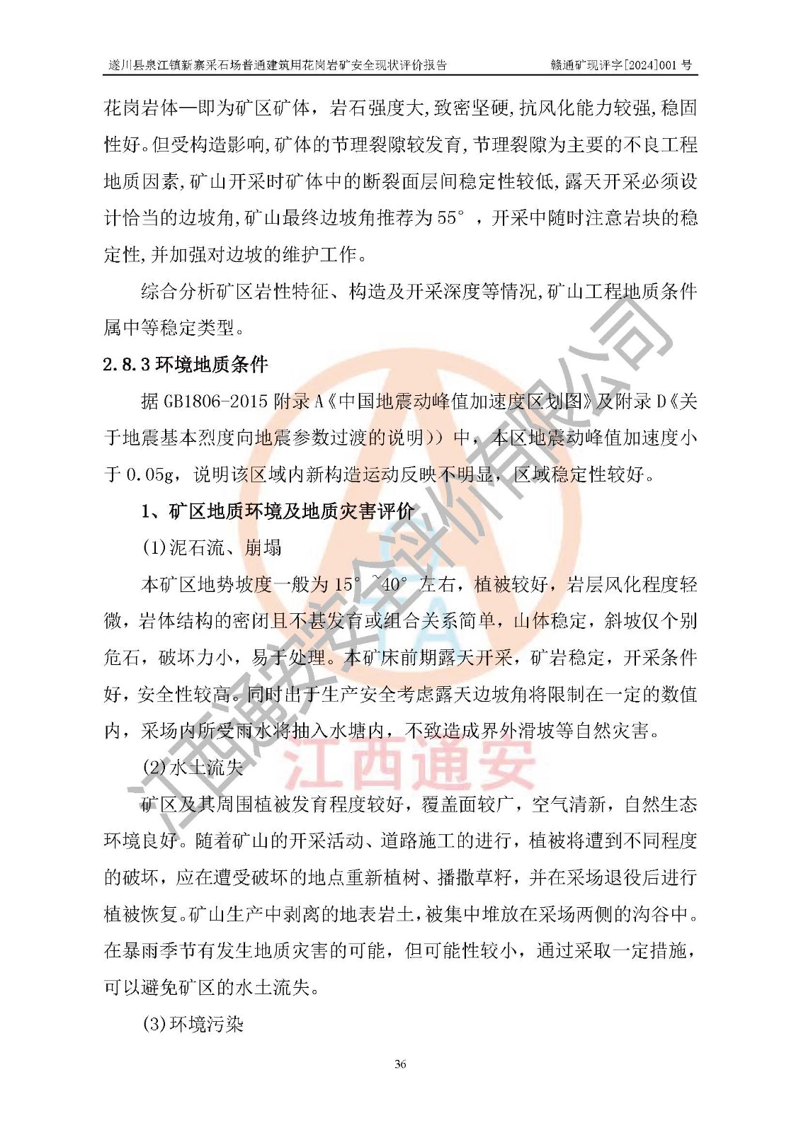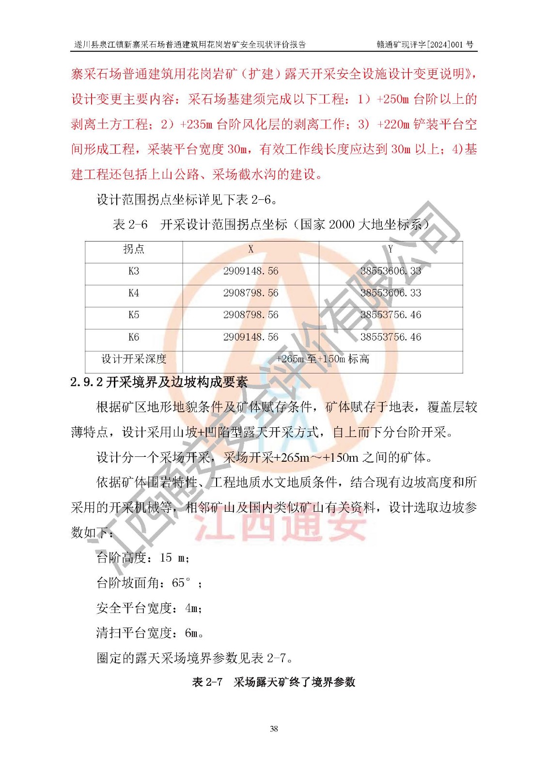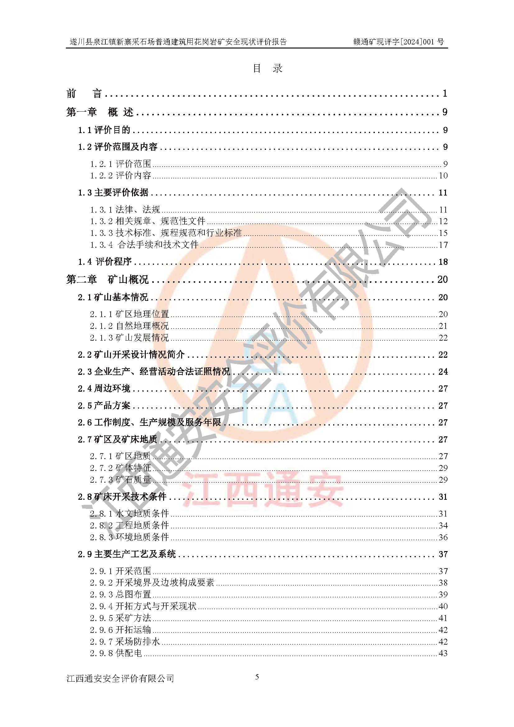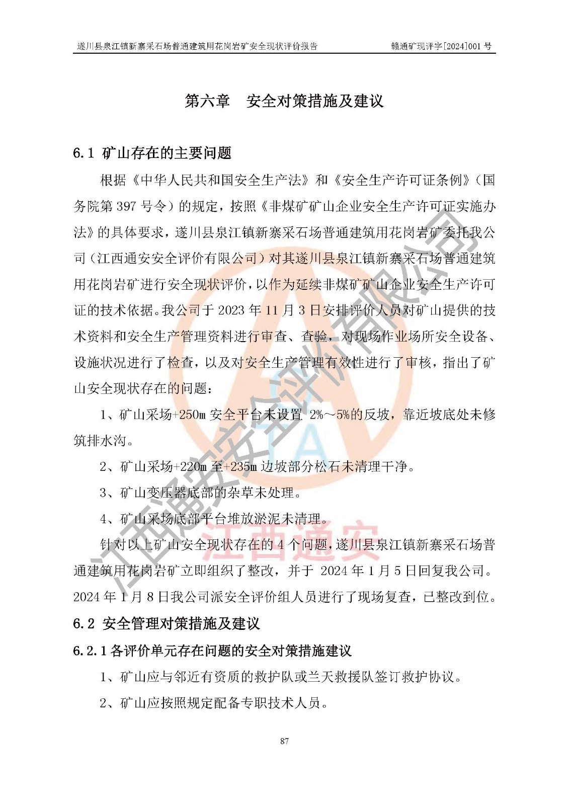 项目名称 | 遂川县泉江镇新寨采石场普通建筑用花岗岩矿安全现状评价报告 | ||||