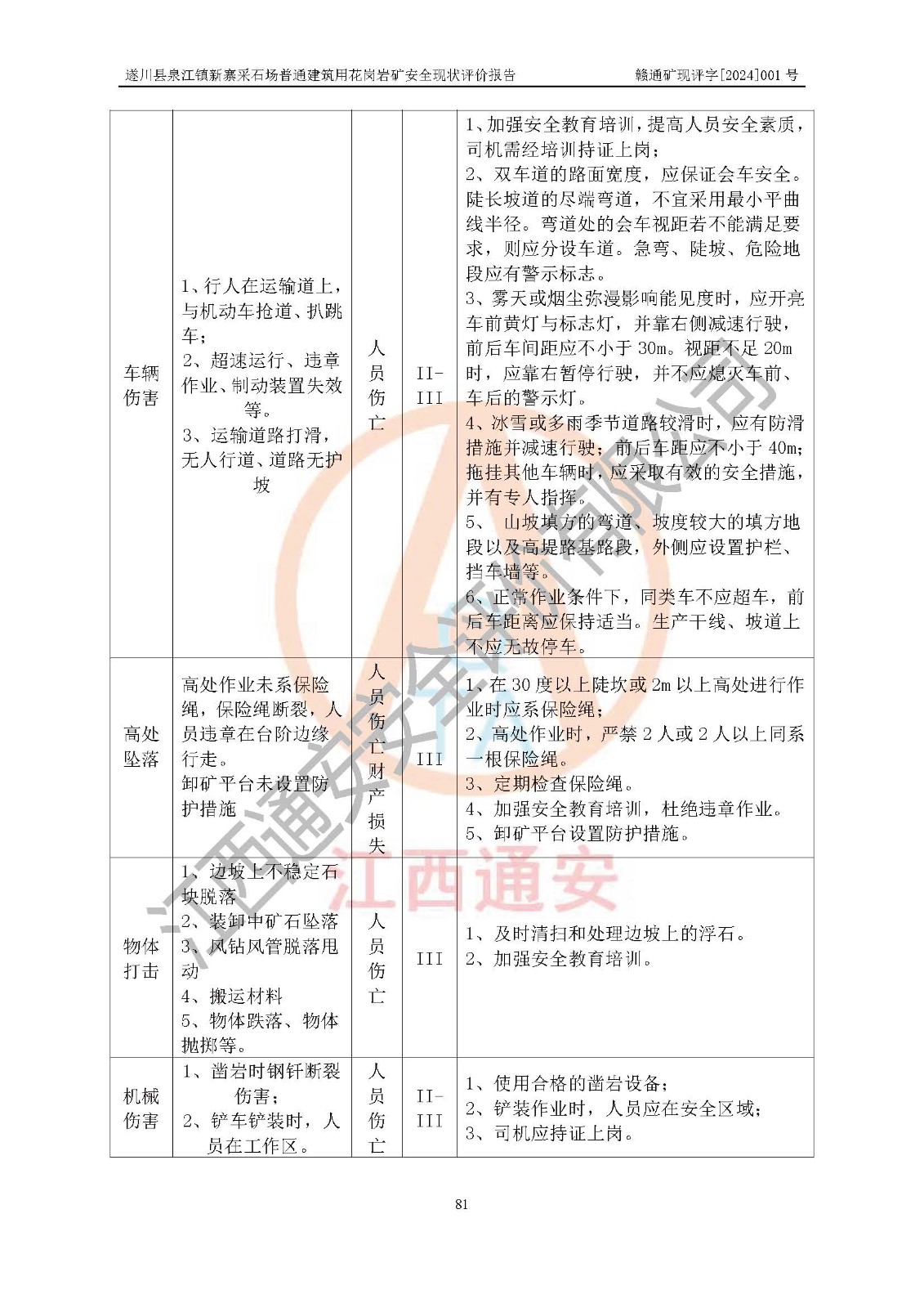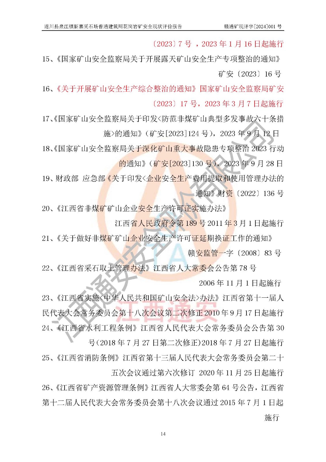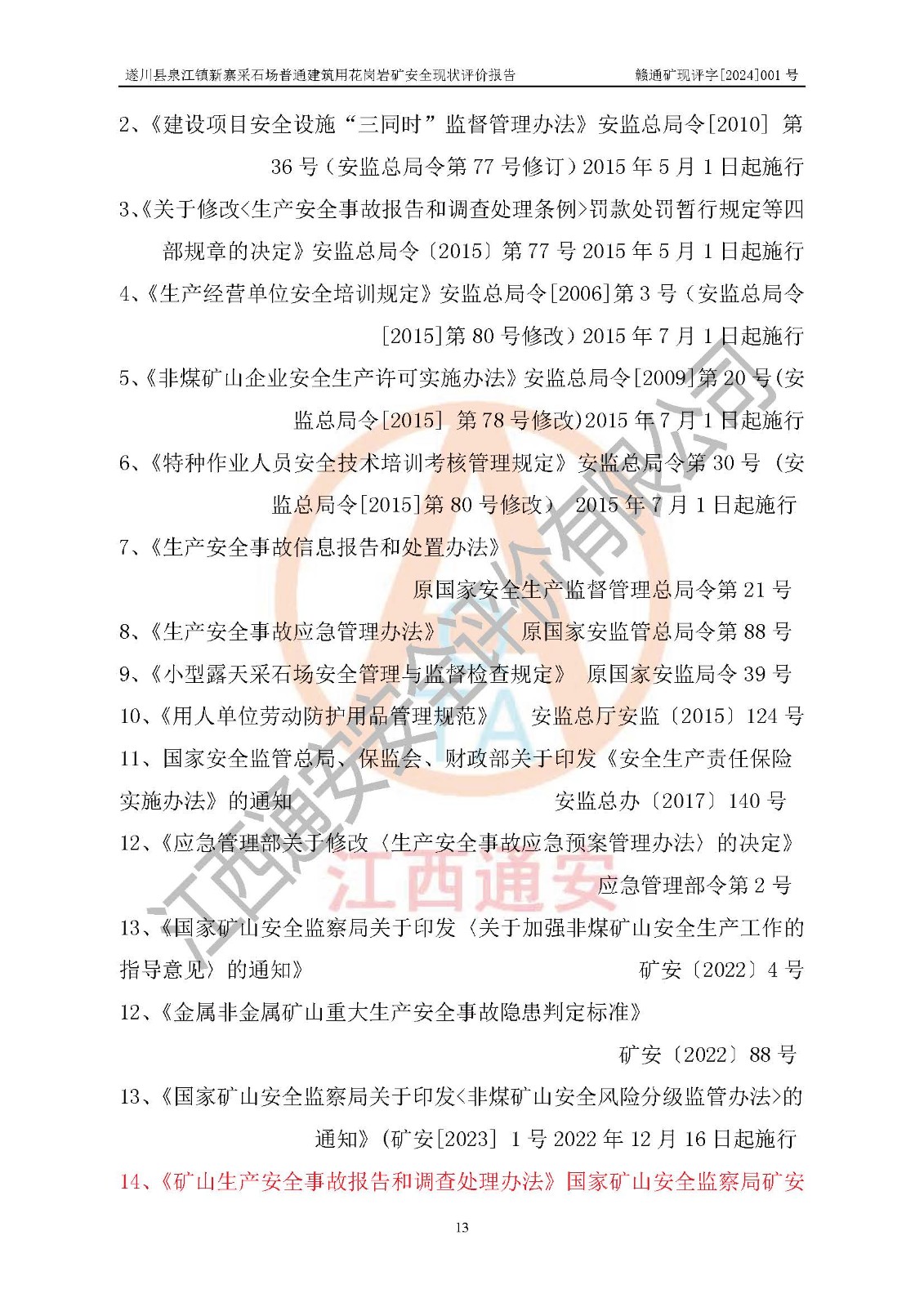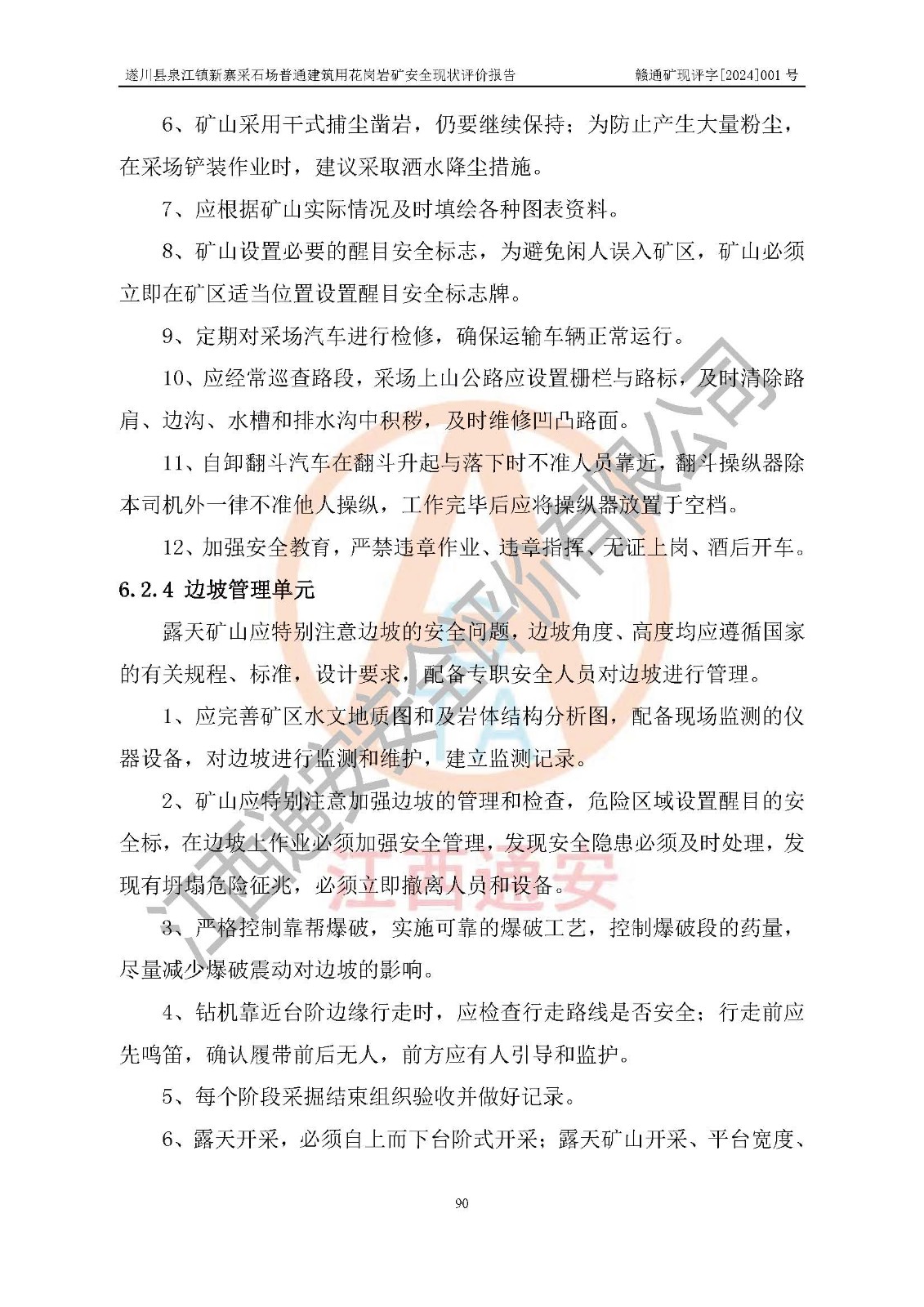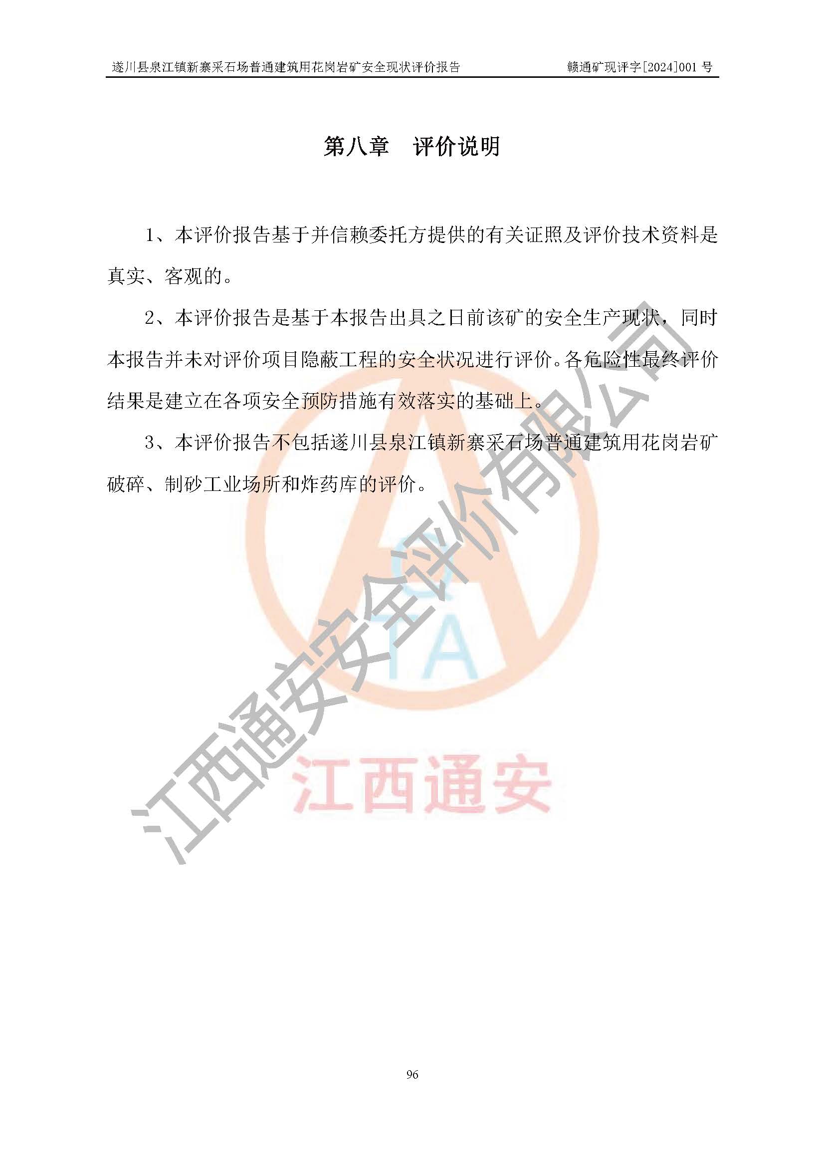 项目名称 | 遂川县泉江镇新寨采石场普通建筑用花岗岩矿安全现状评价报告 | ||||