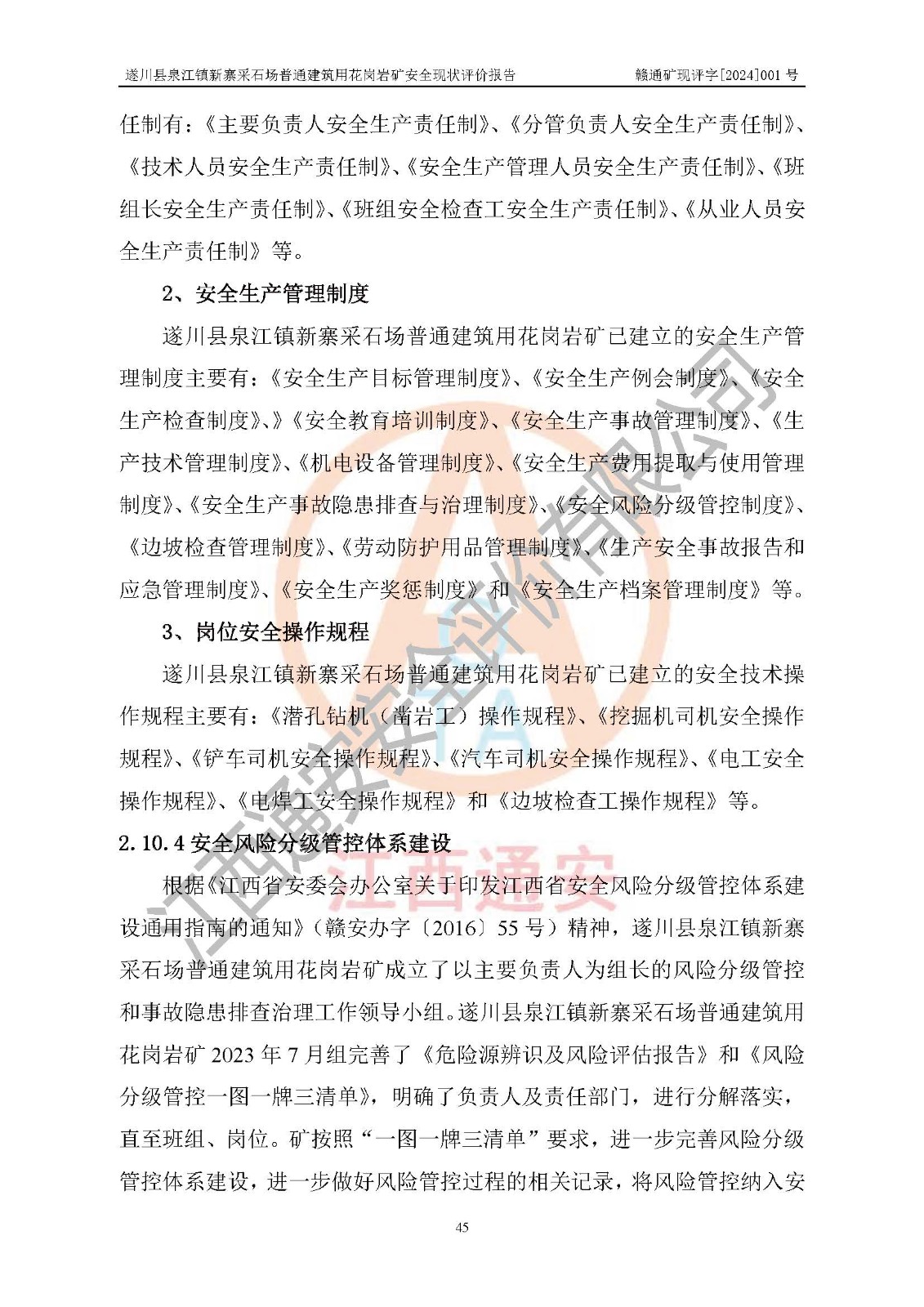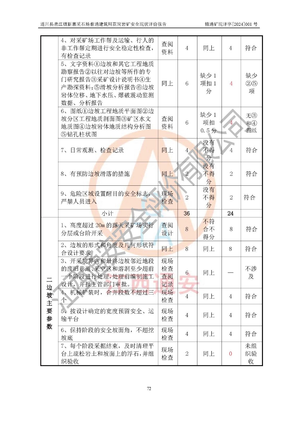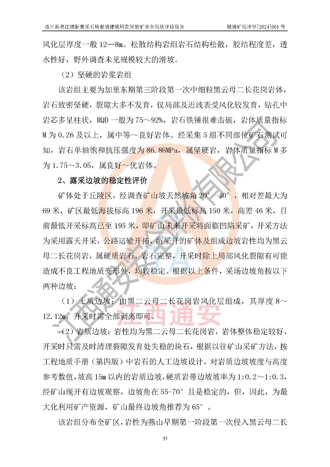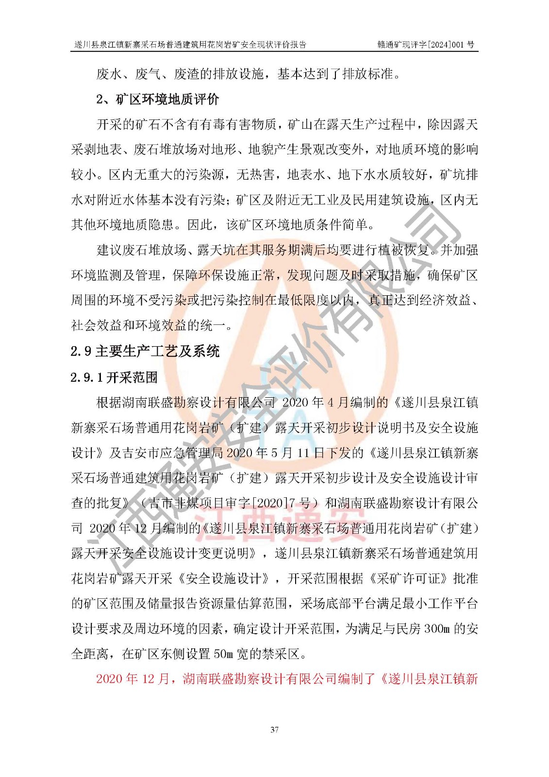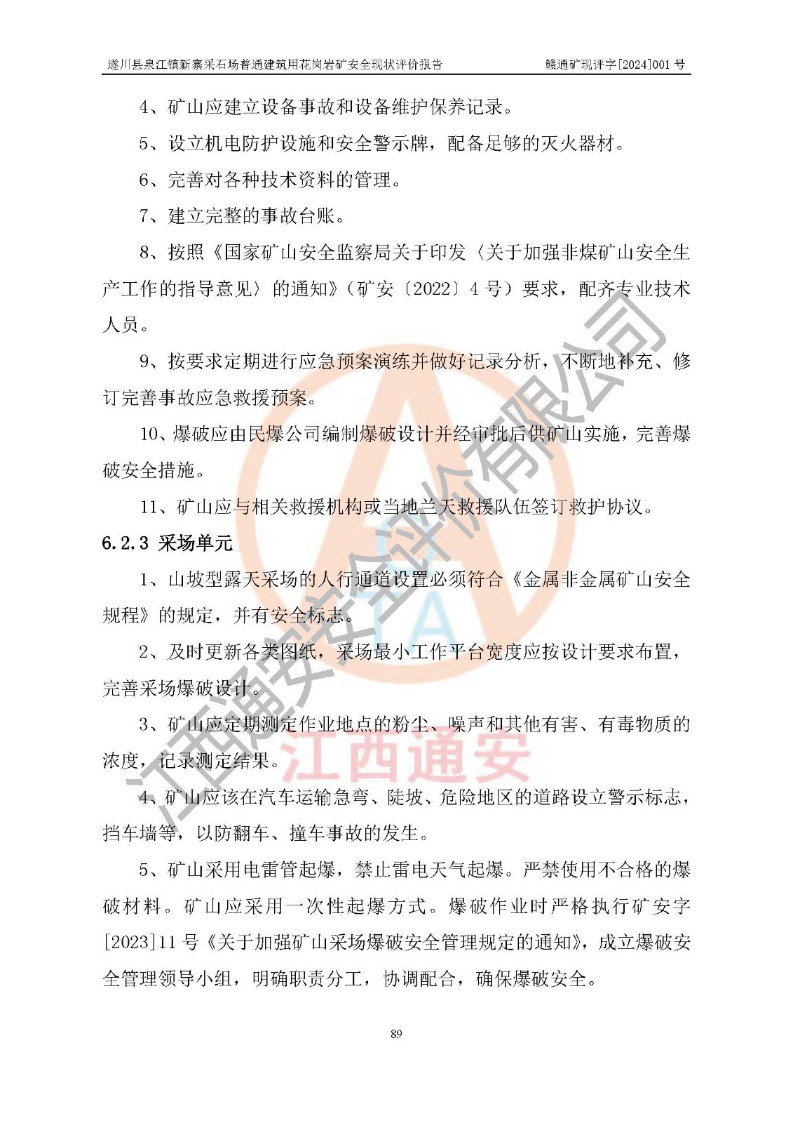 项目名称 | 遂川县泉江镇新寨采石场普通建筑用花岗岩矿安全现状评价报告 | ||||