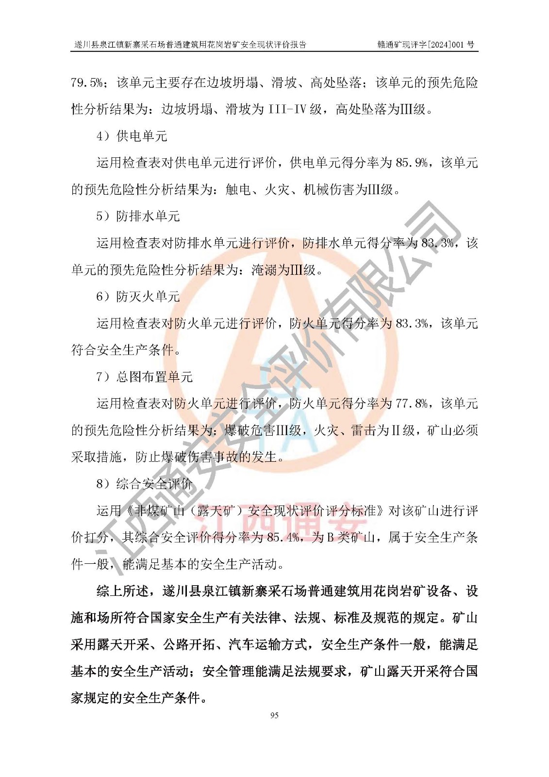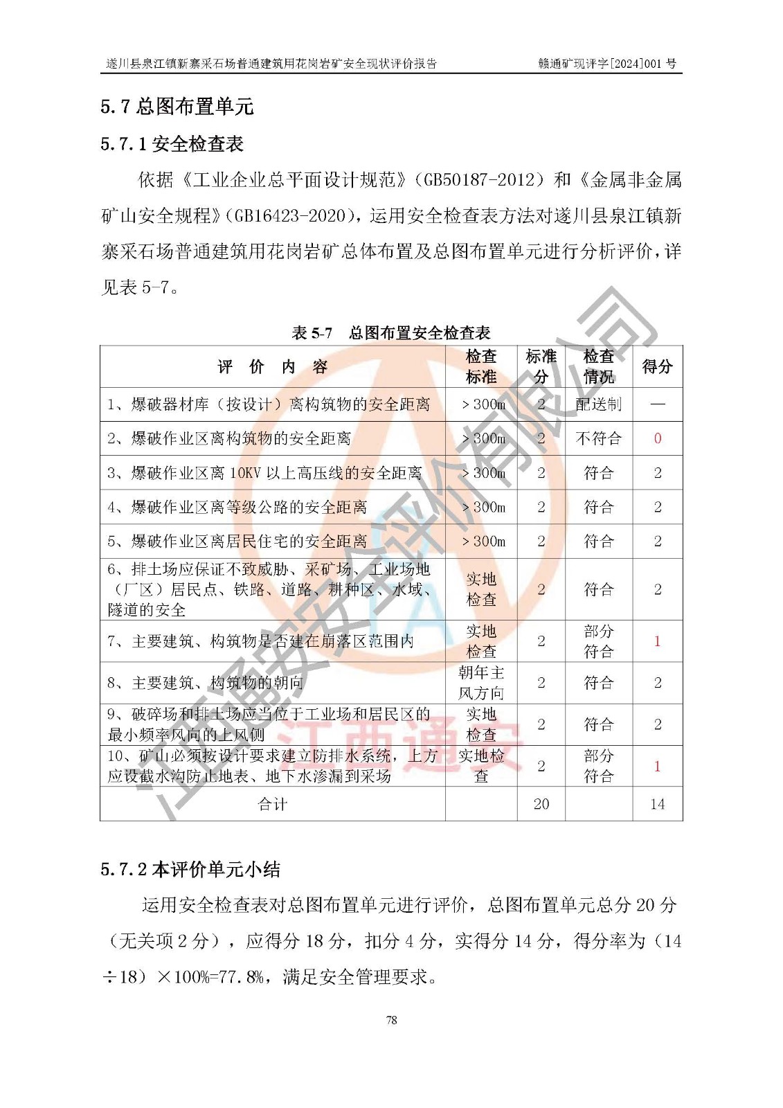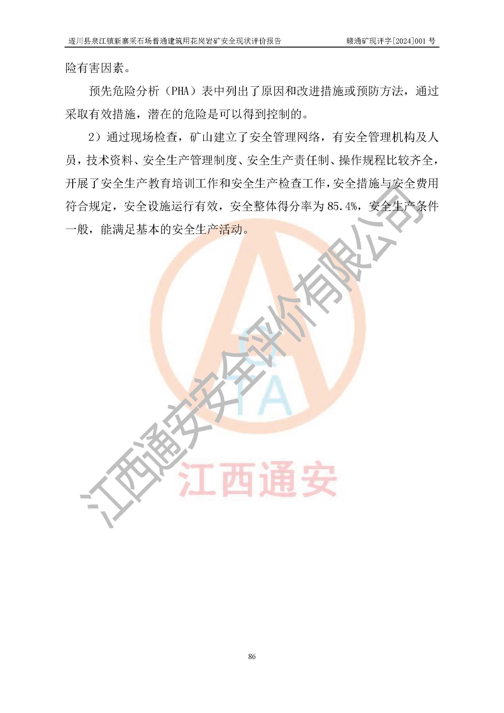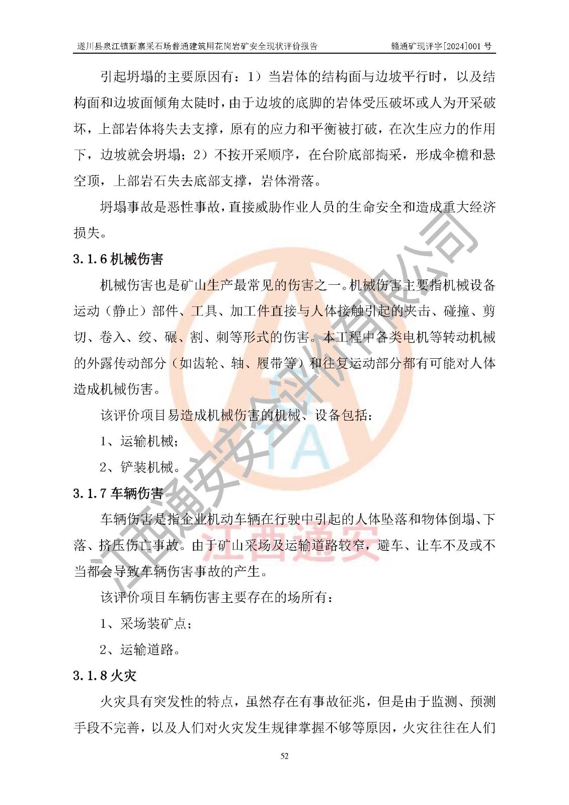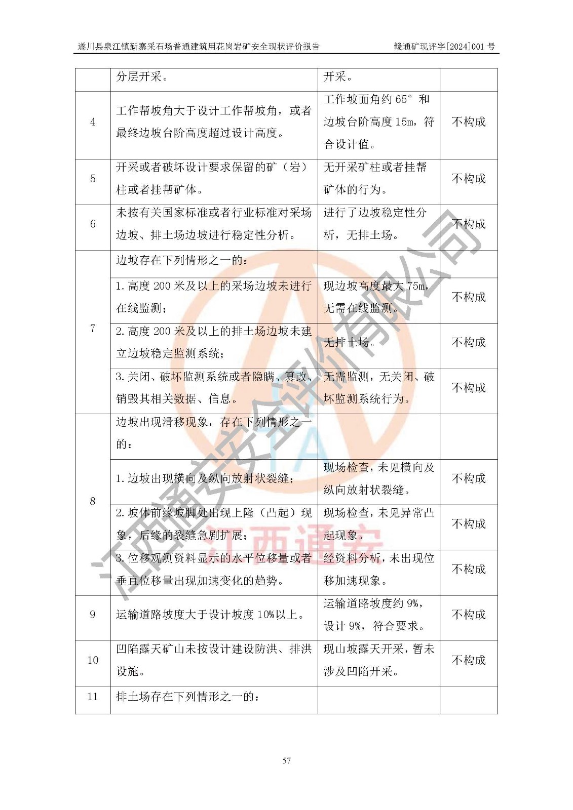项目名称 | 遂川县泉江镇新寨采石场普通建筑用花岗岩矿安全现状评价报告 | ||||