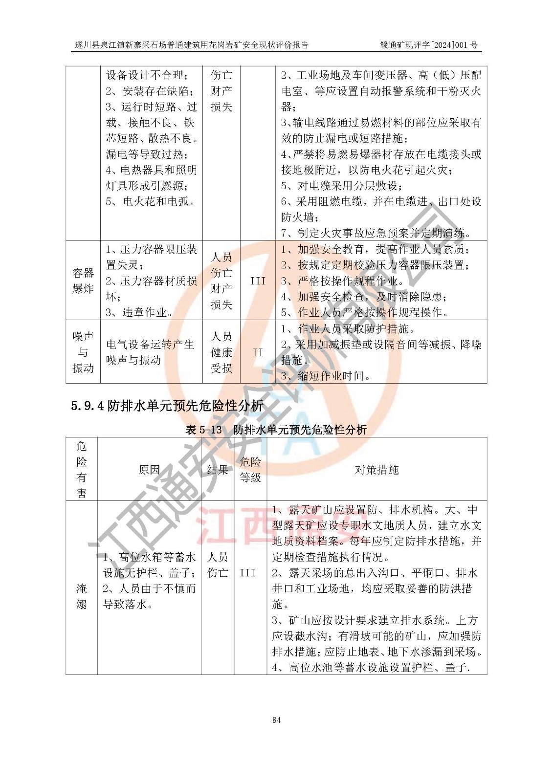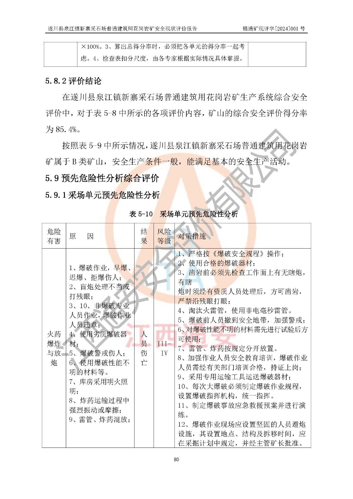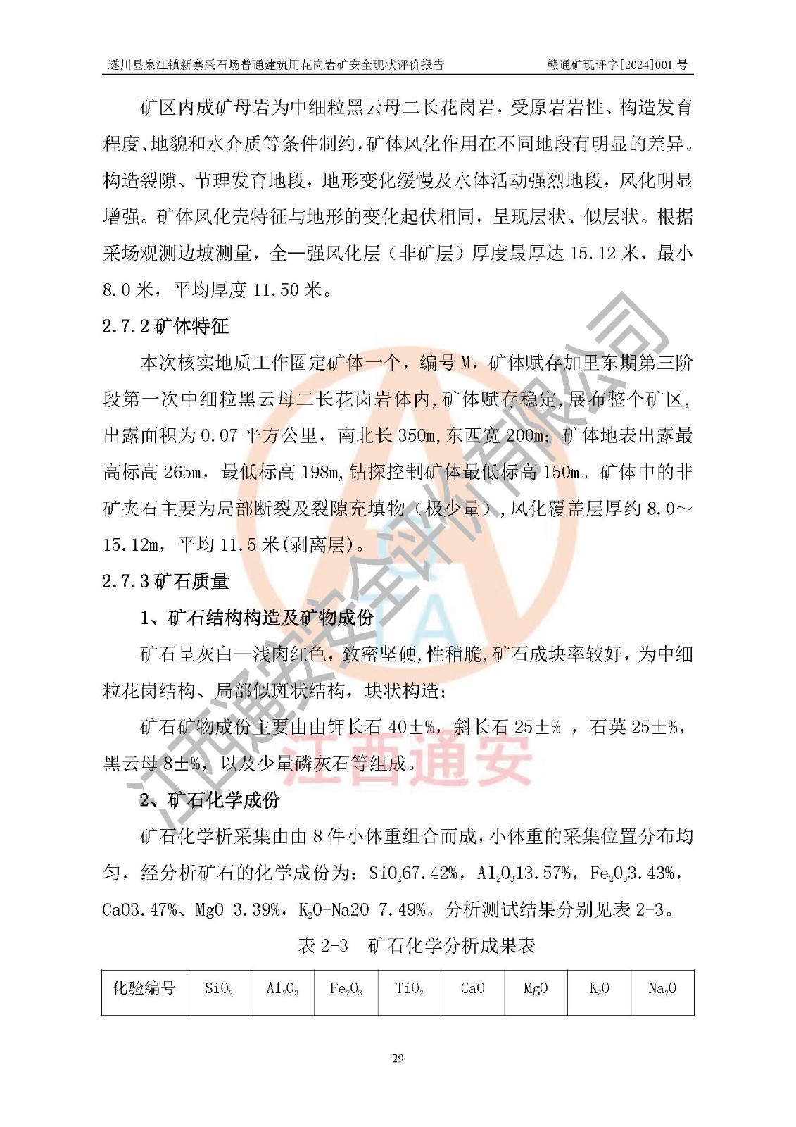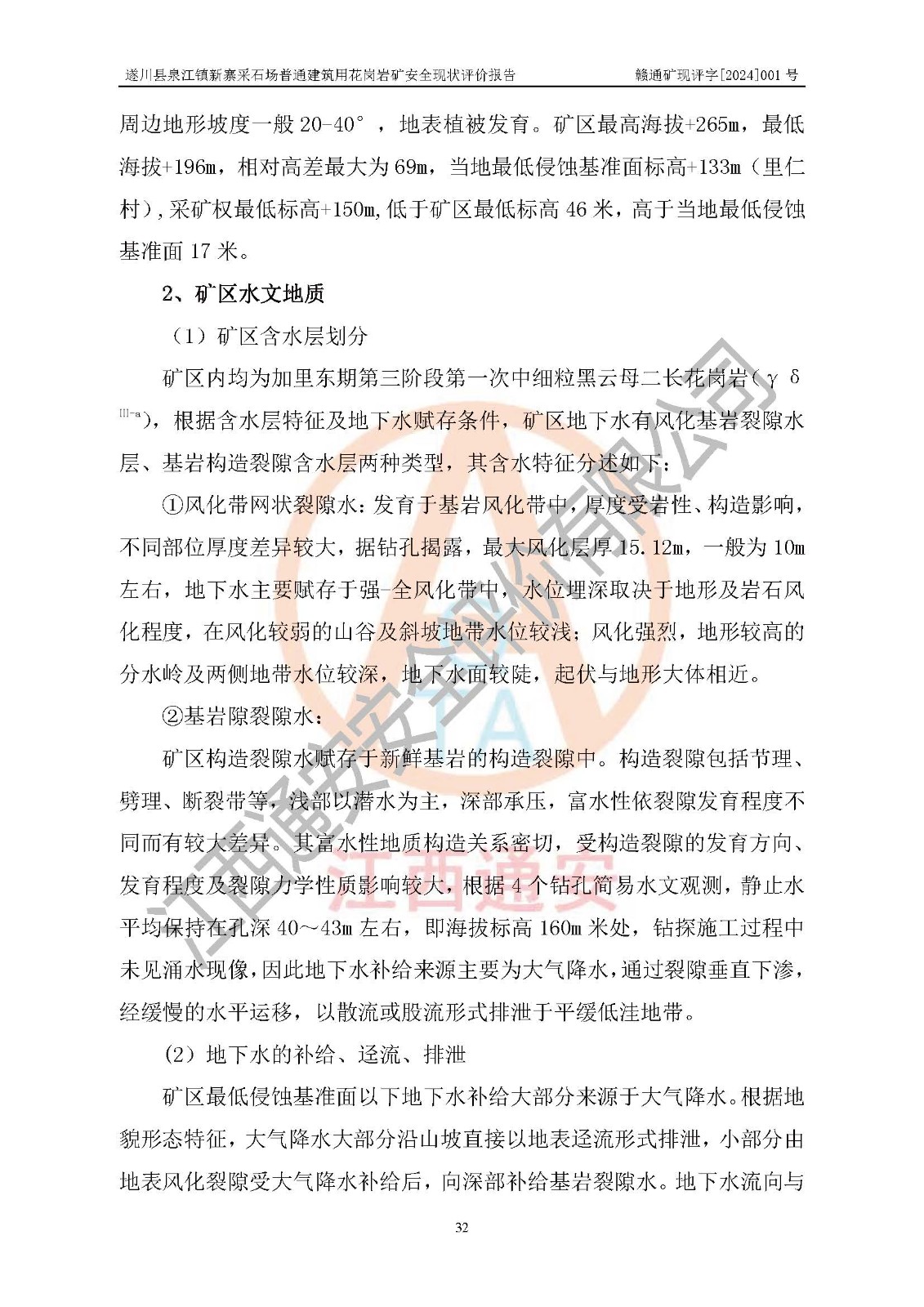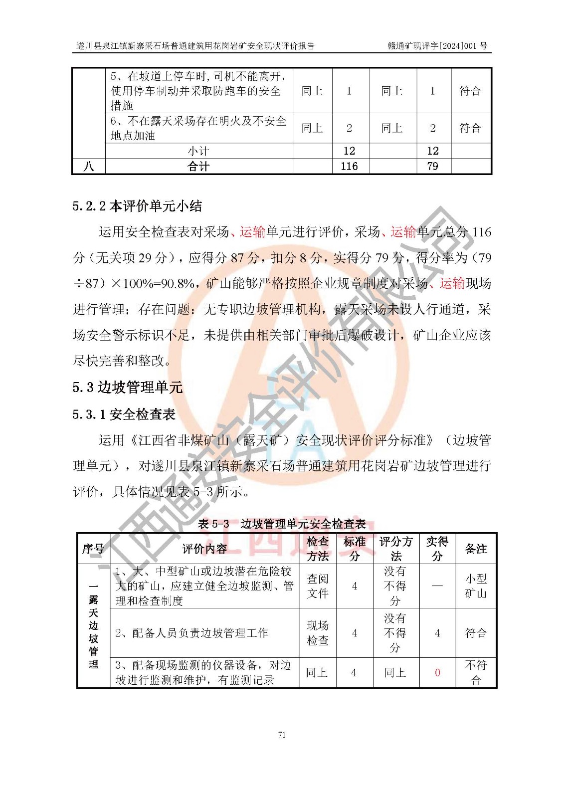 项目名称 | 遂川县泉江镇新寨采石场普通建筑用花岗岩矿安全现状评价报告 | ||||