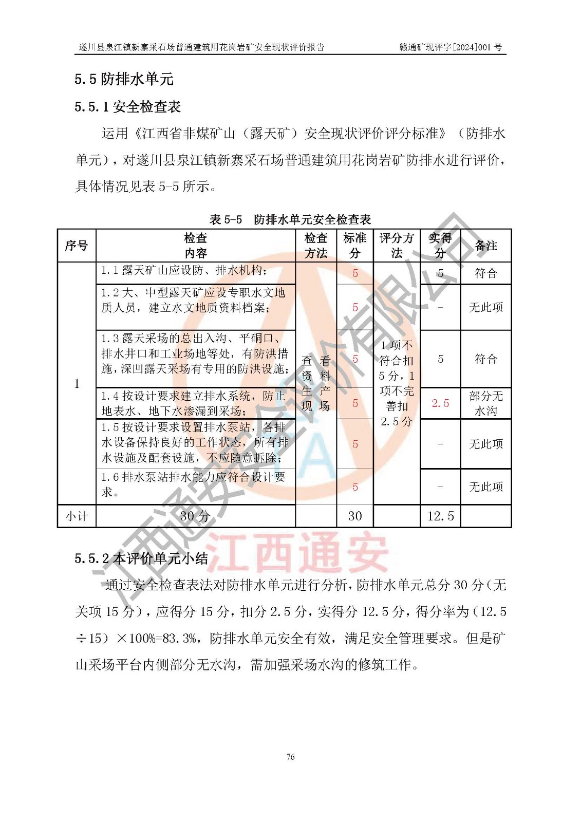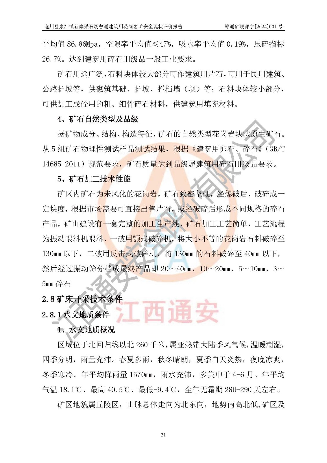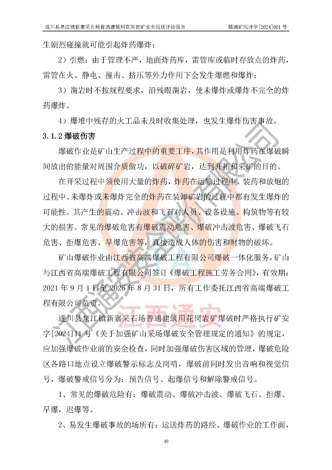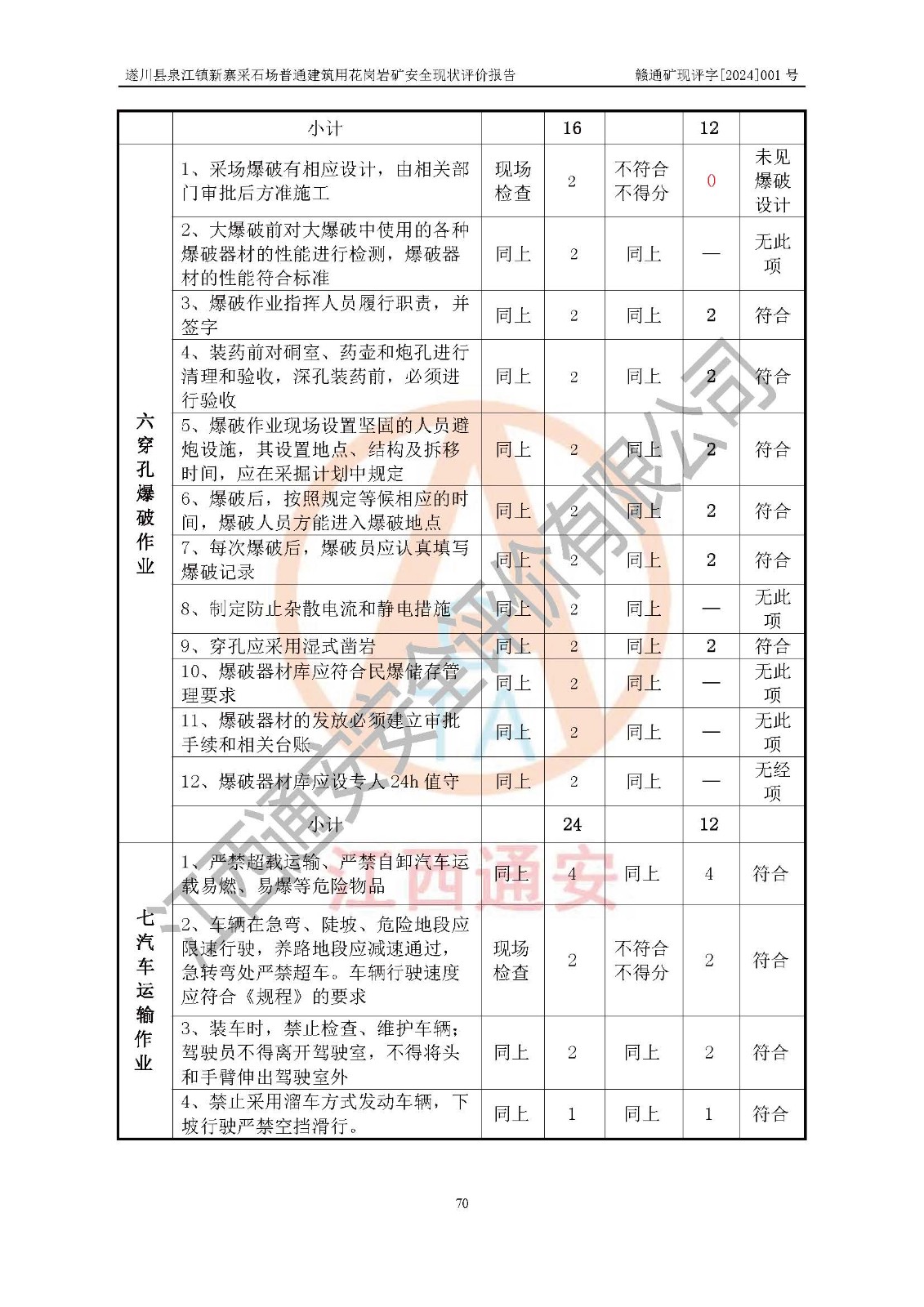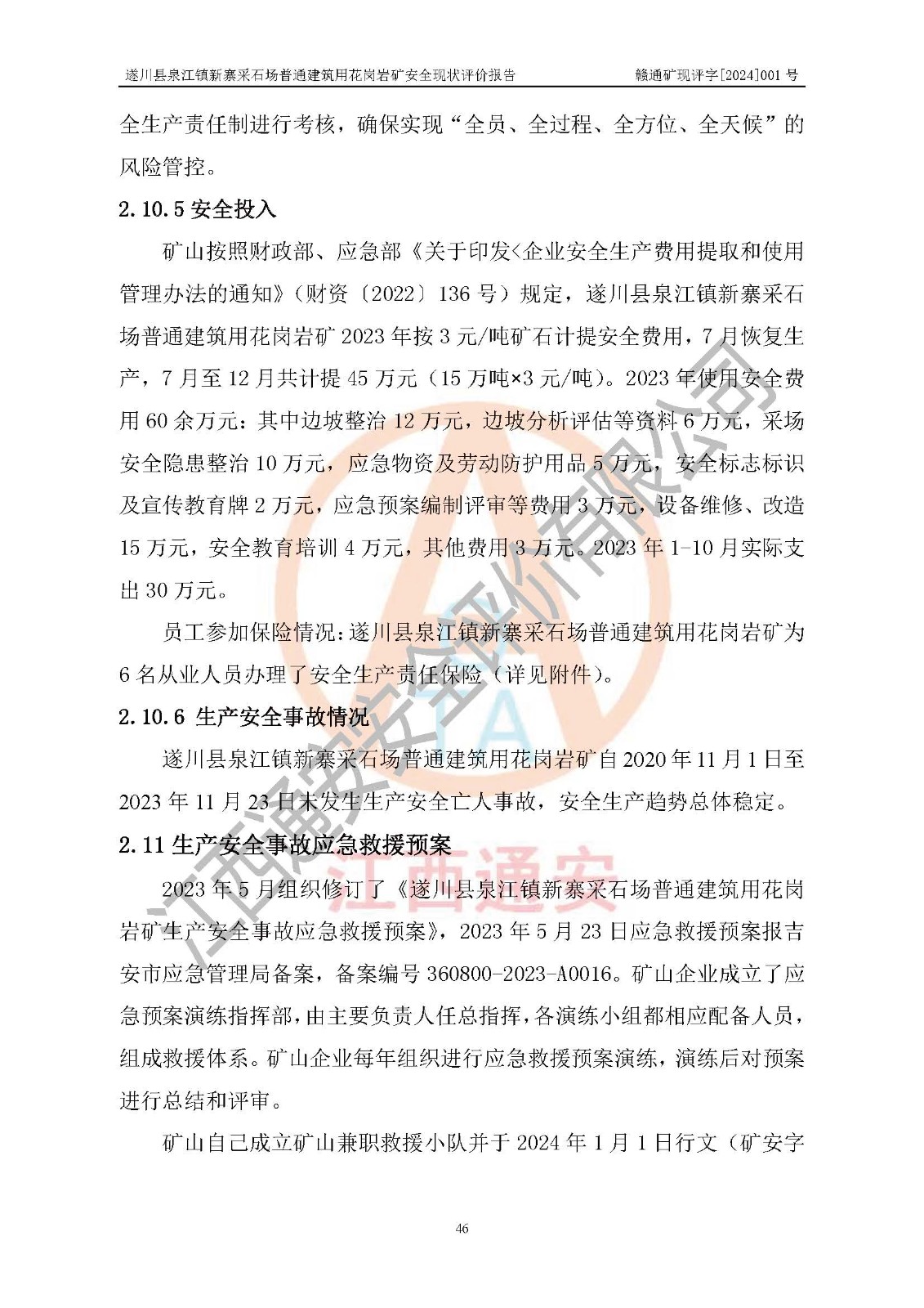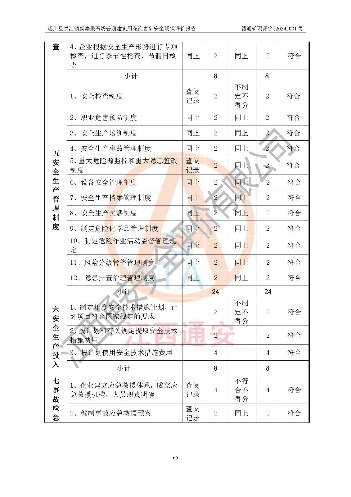 项目名称 | 遂川县泉江镇新寨采石场普通建筑用花岗岩矿安全现状评价报告 | ||||