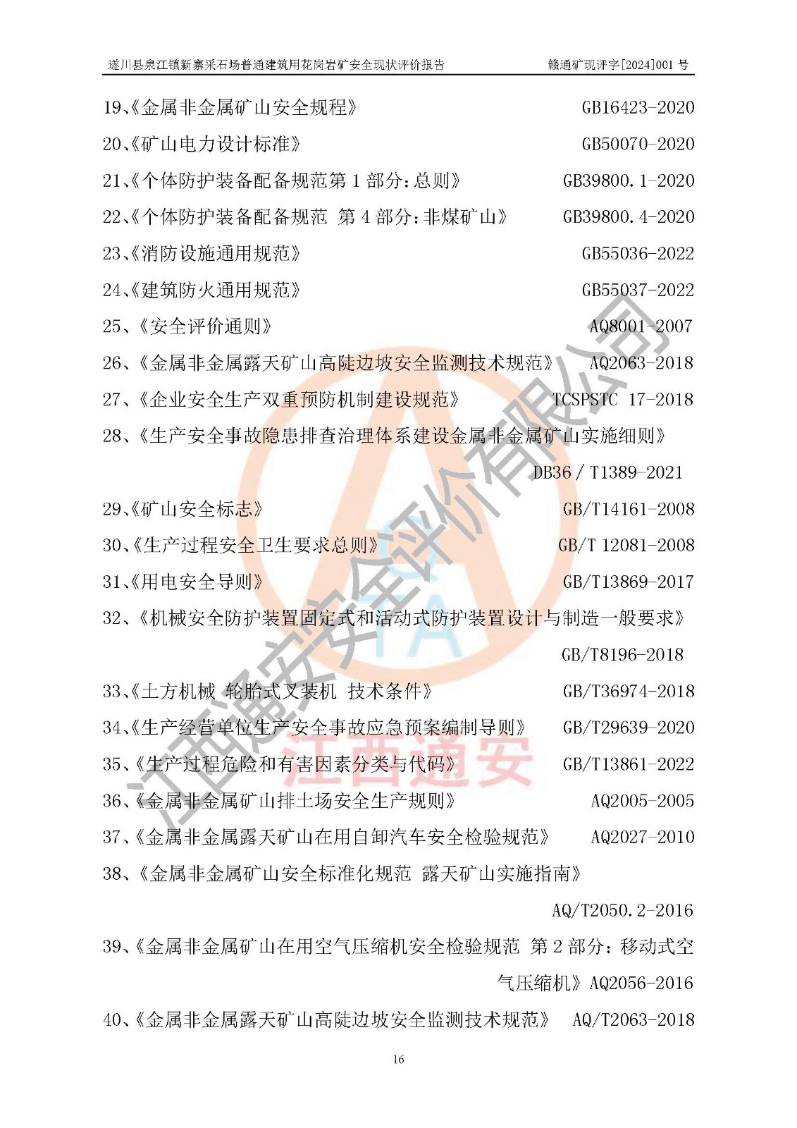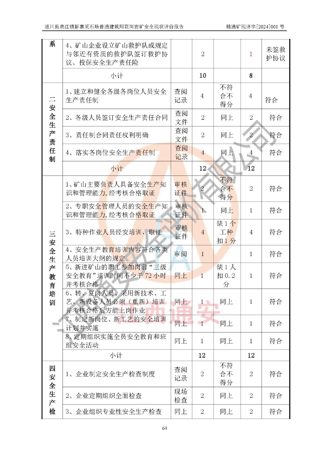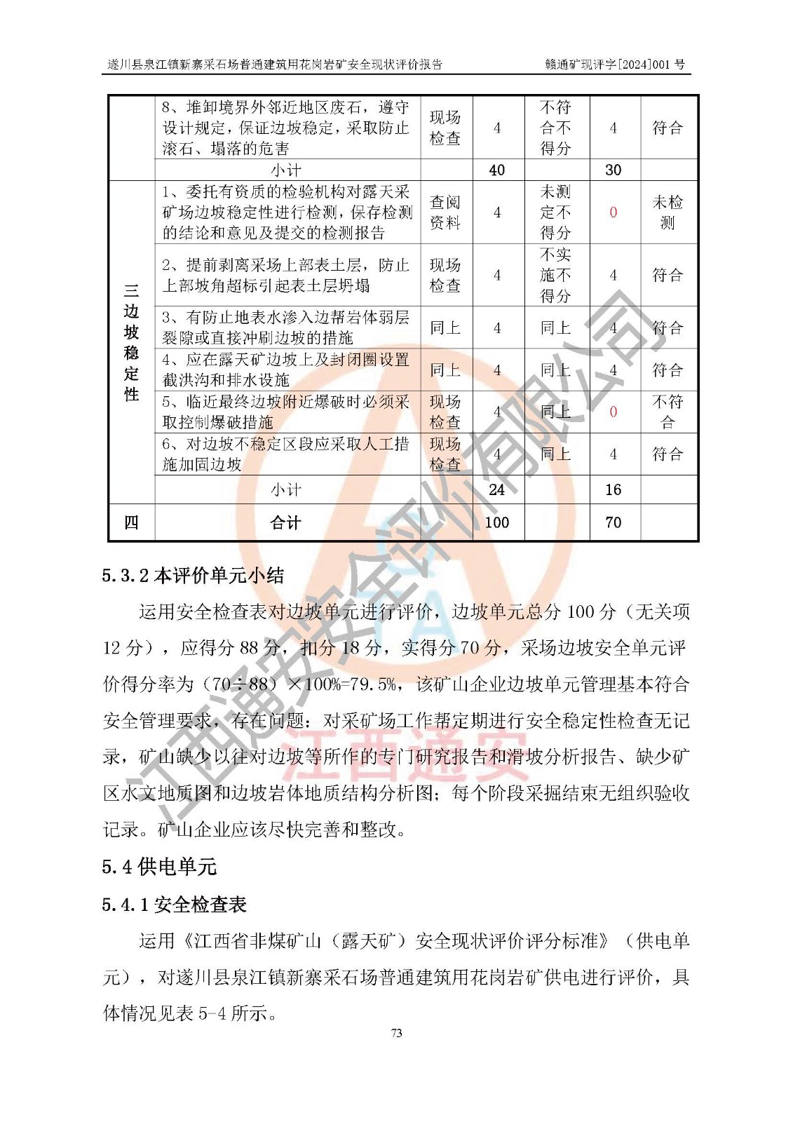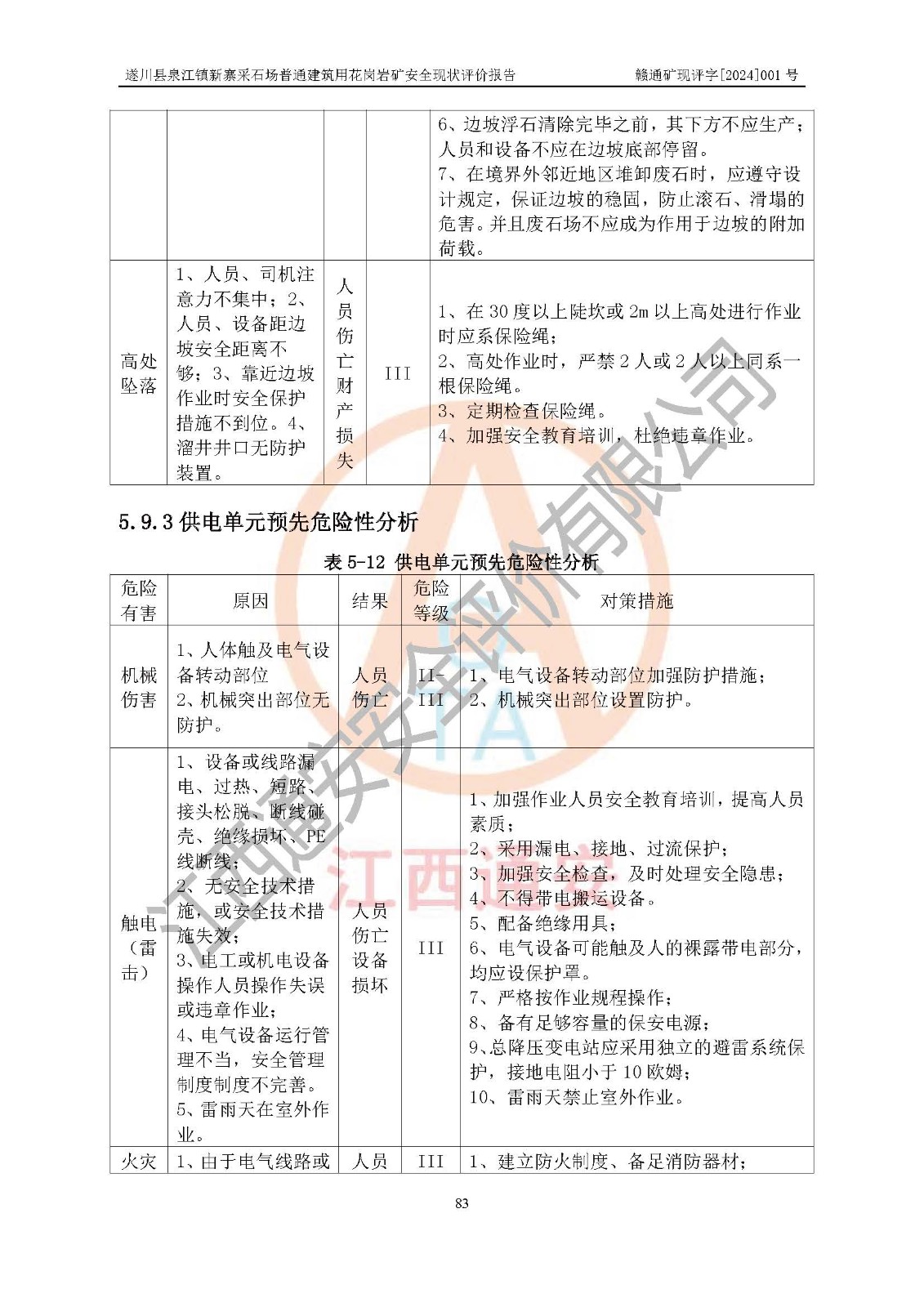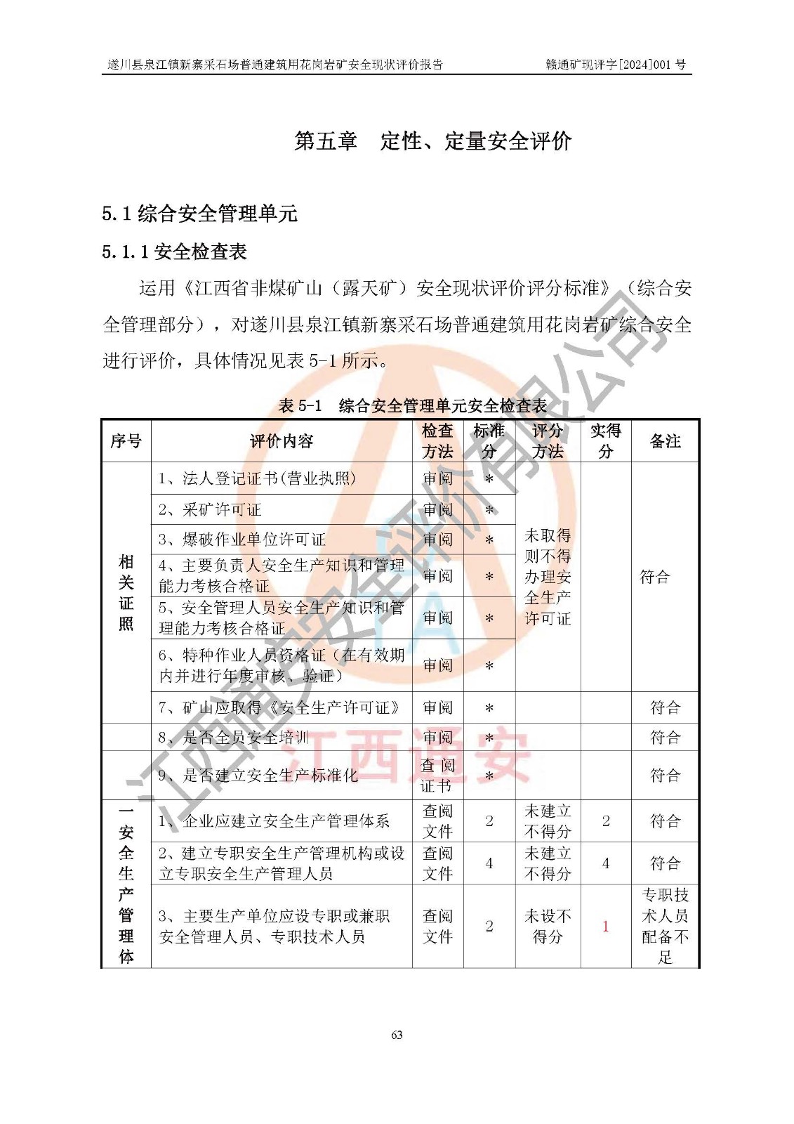 项目名称 | 遂川县泉江镇新寨采石场普通建筑用花岗岩矿安全现状评价报告 | ||||