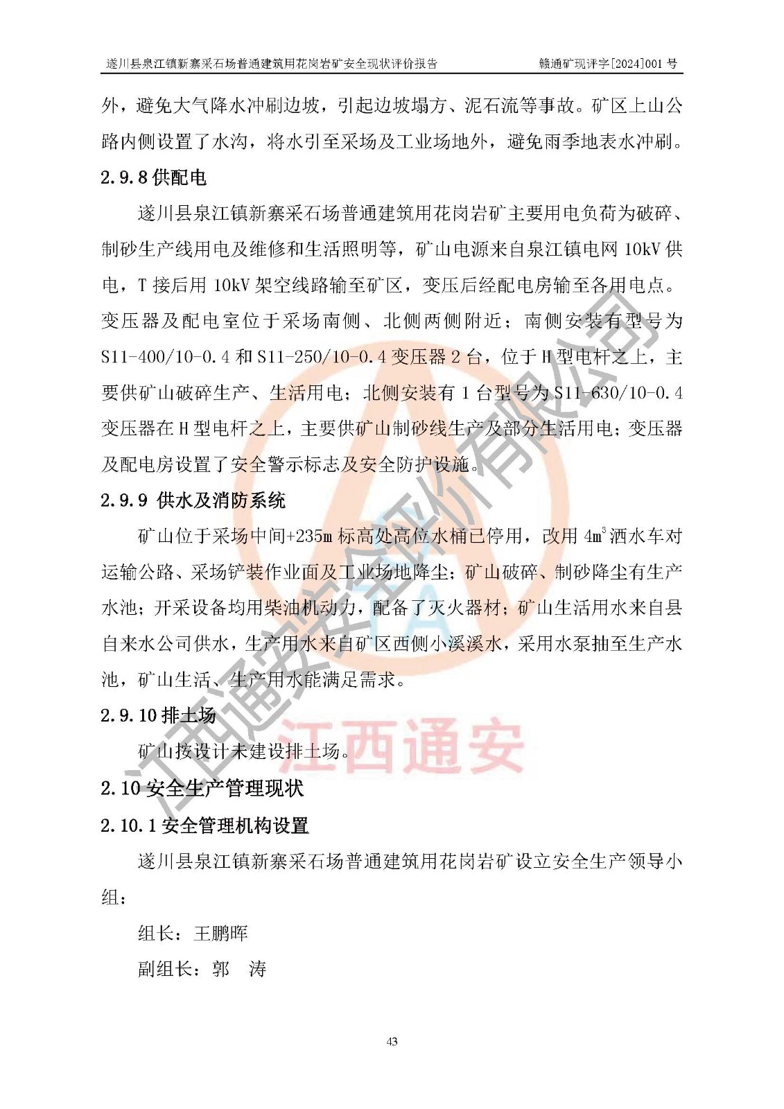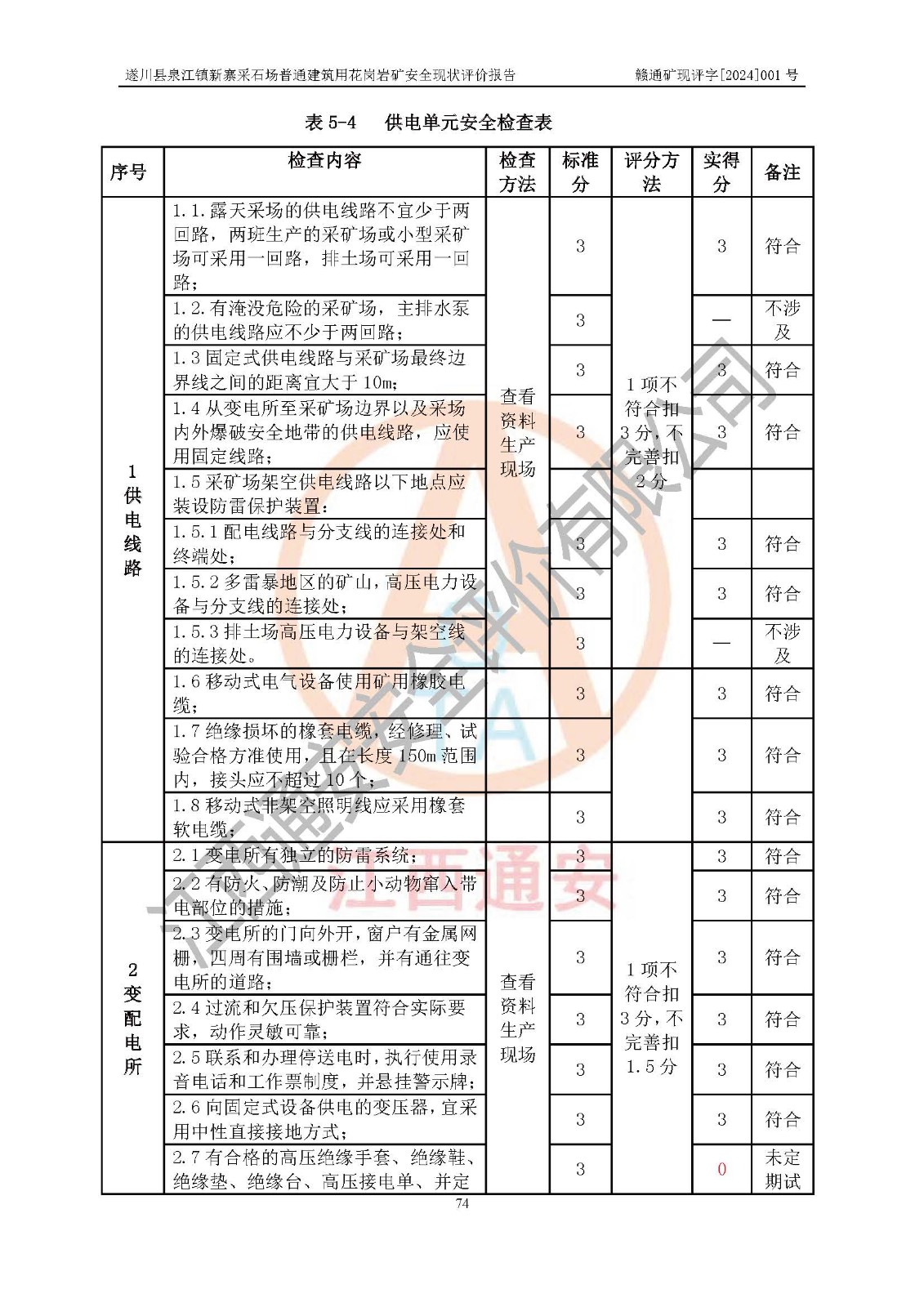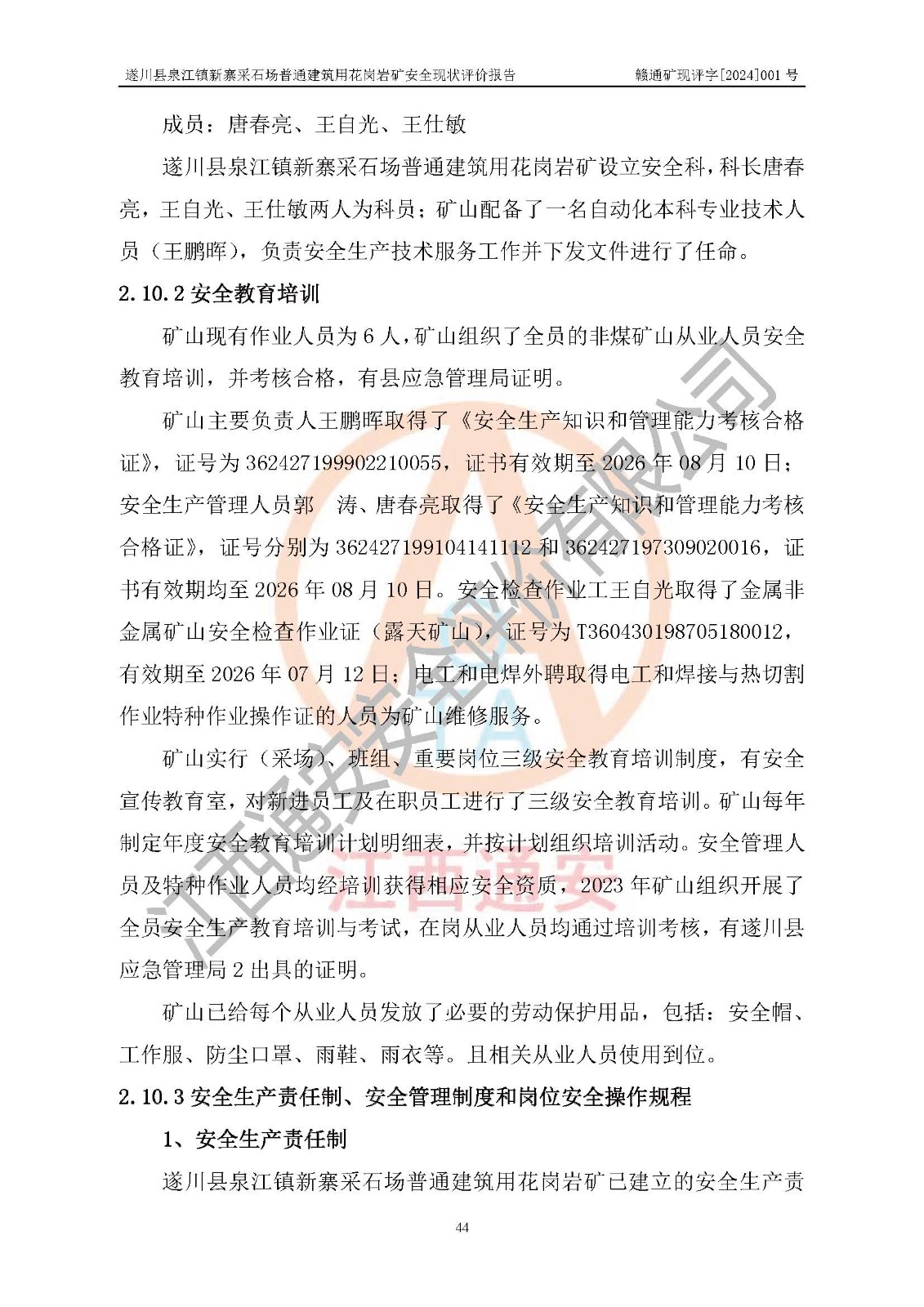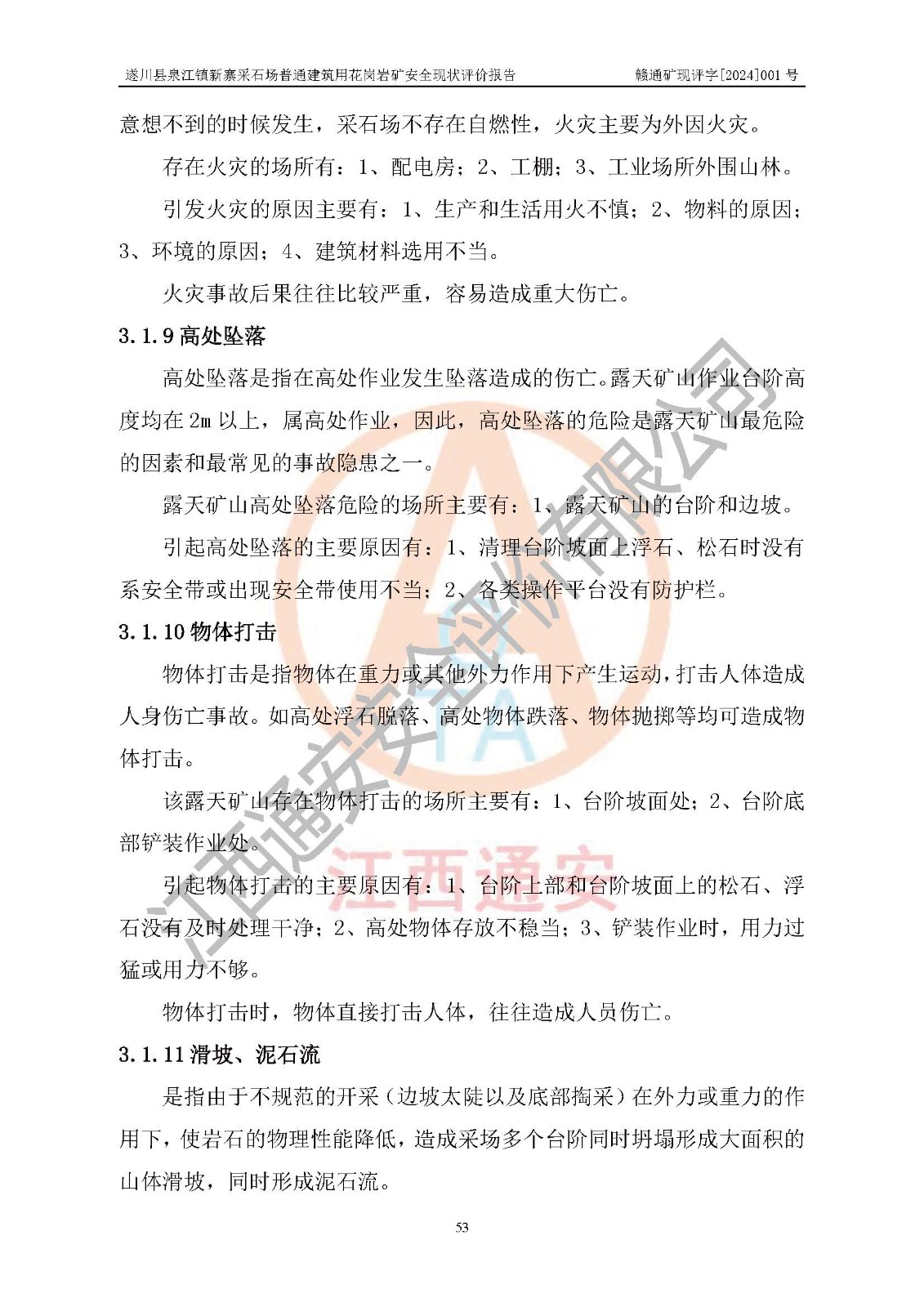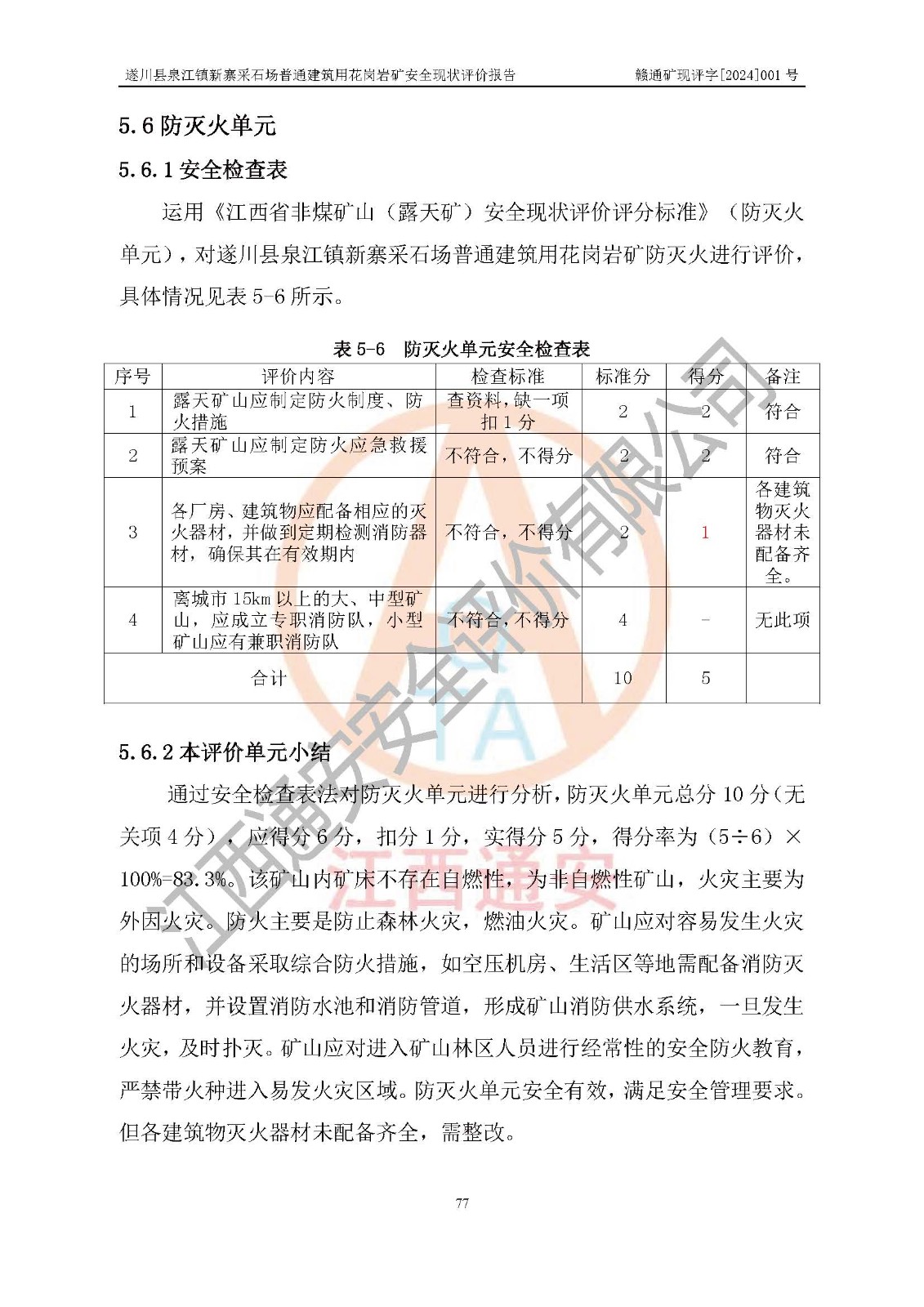 项目名称 | 遂川县泉江镇新寨采石场普通建筑用花岗岩矿安全现状评价报告 | ||||