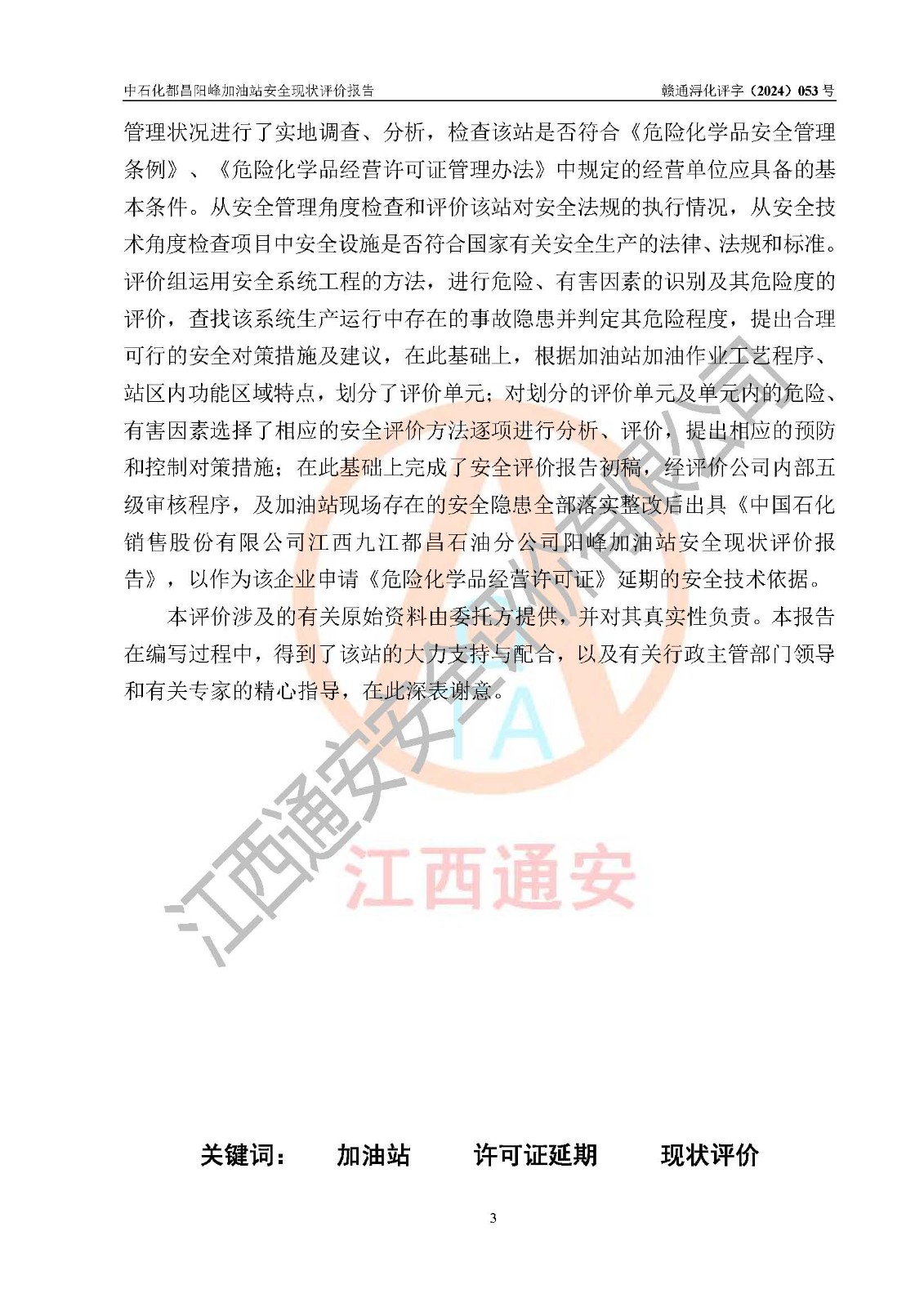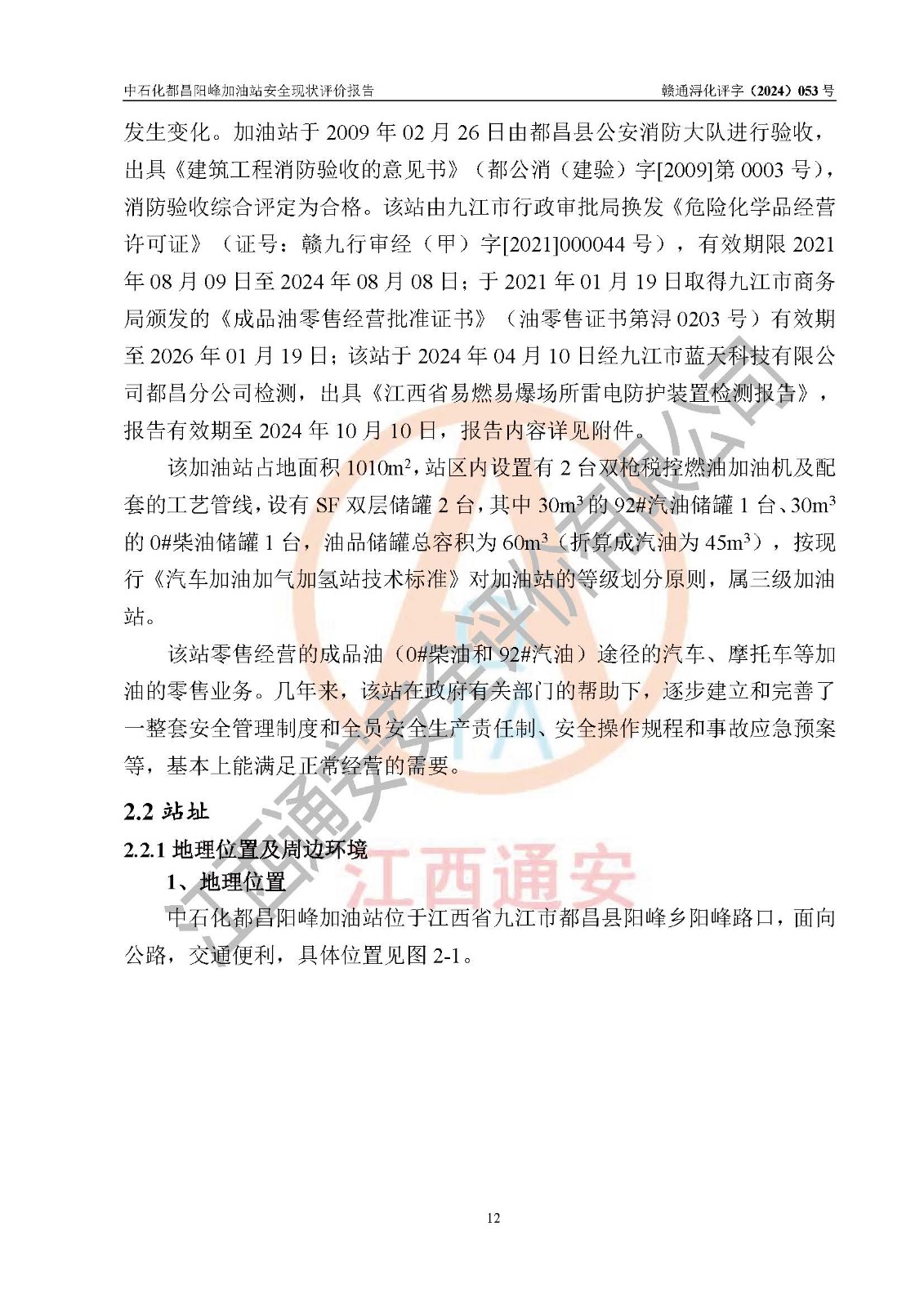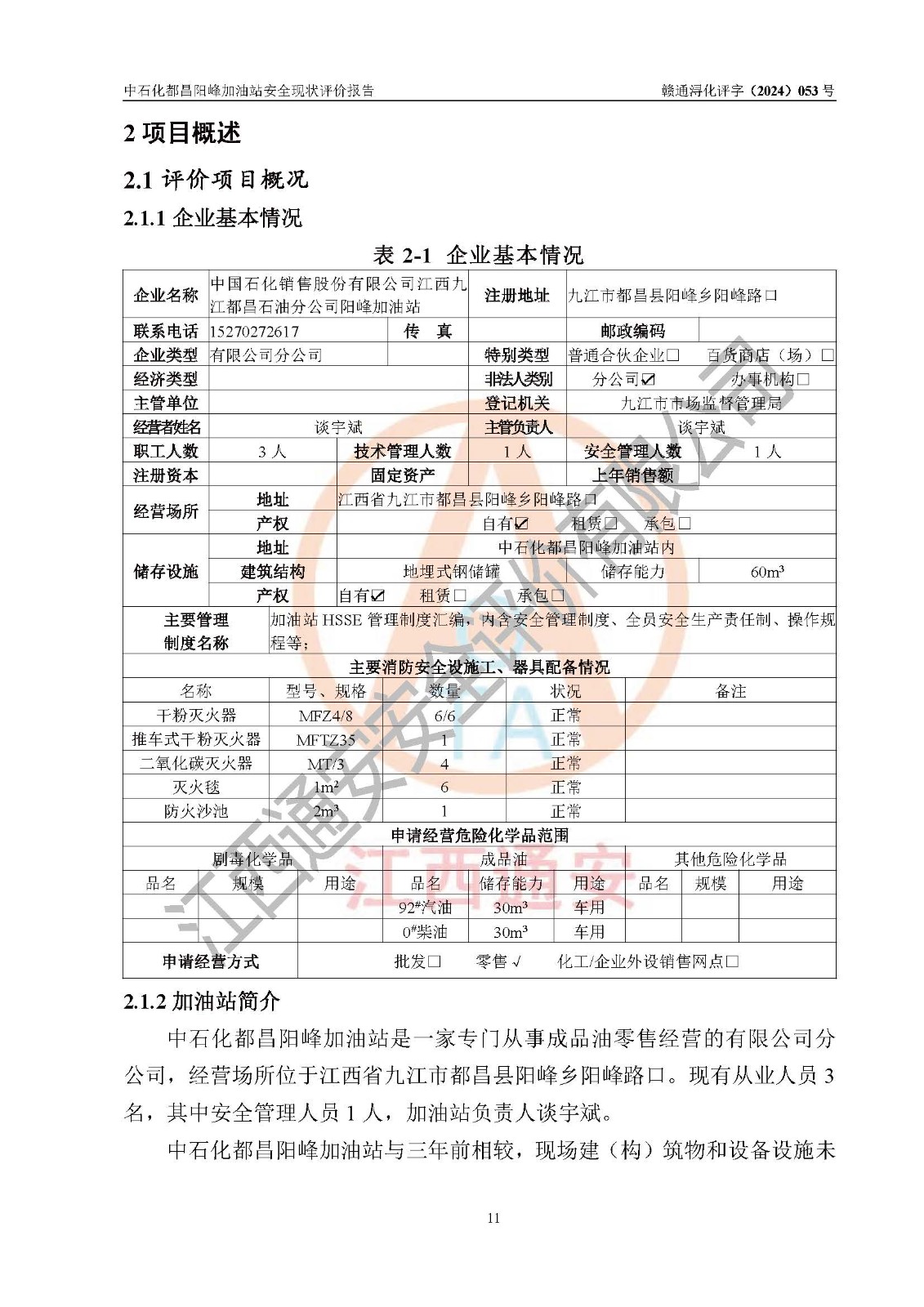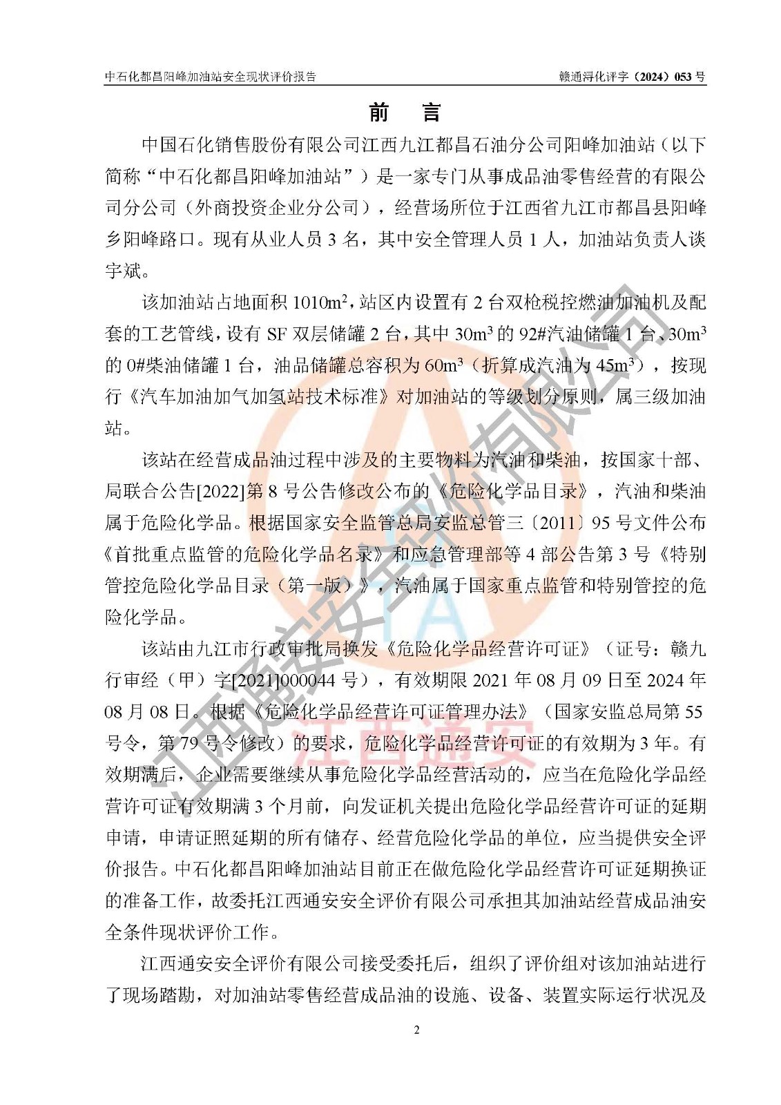 评价报告名称 | 中国石化销售股份有限公司江西九江都昌石油分公司阳峰加油站安全现状评价报告 | |||