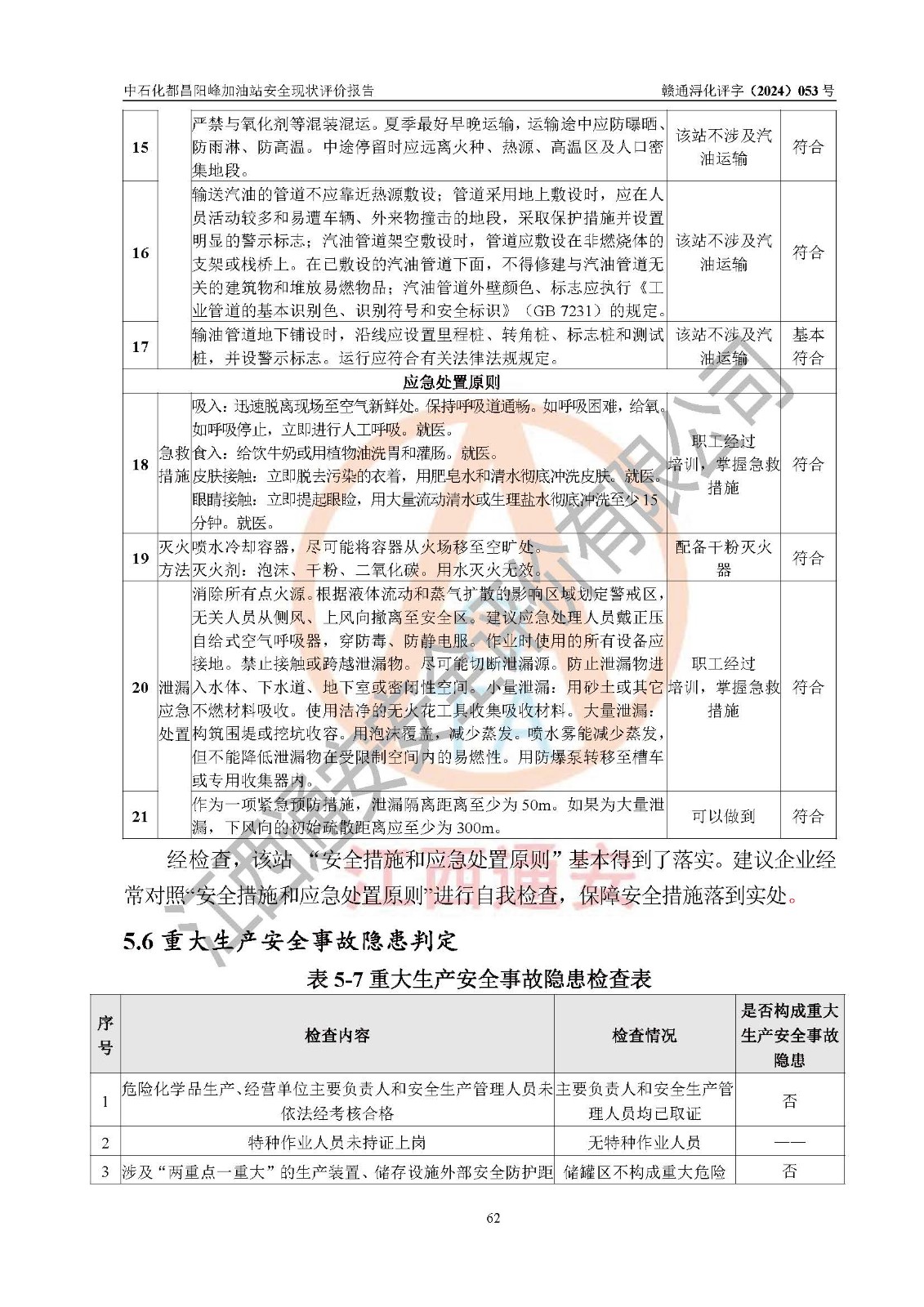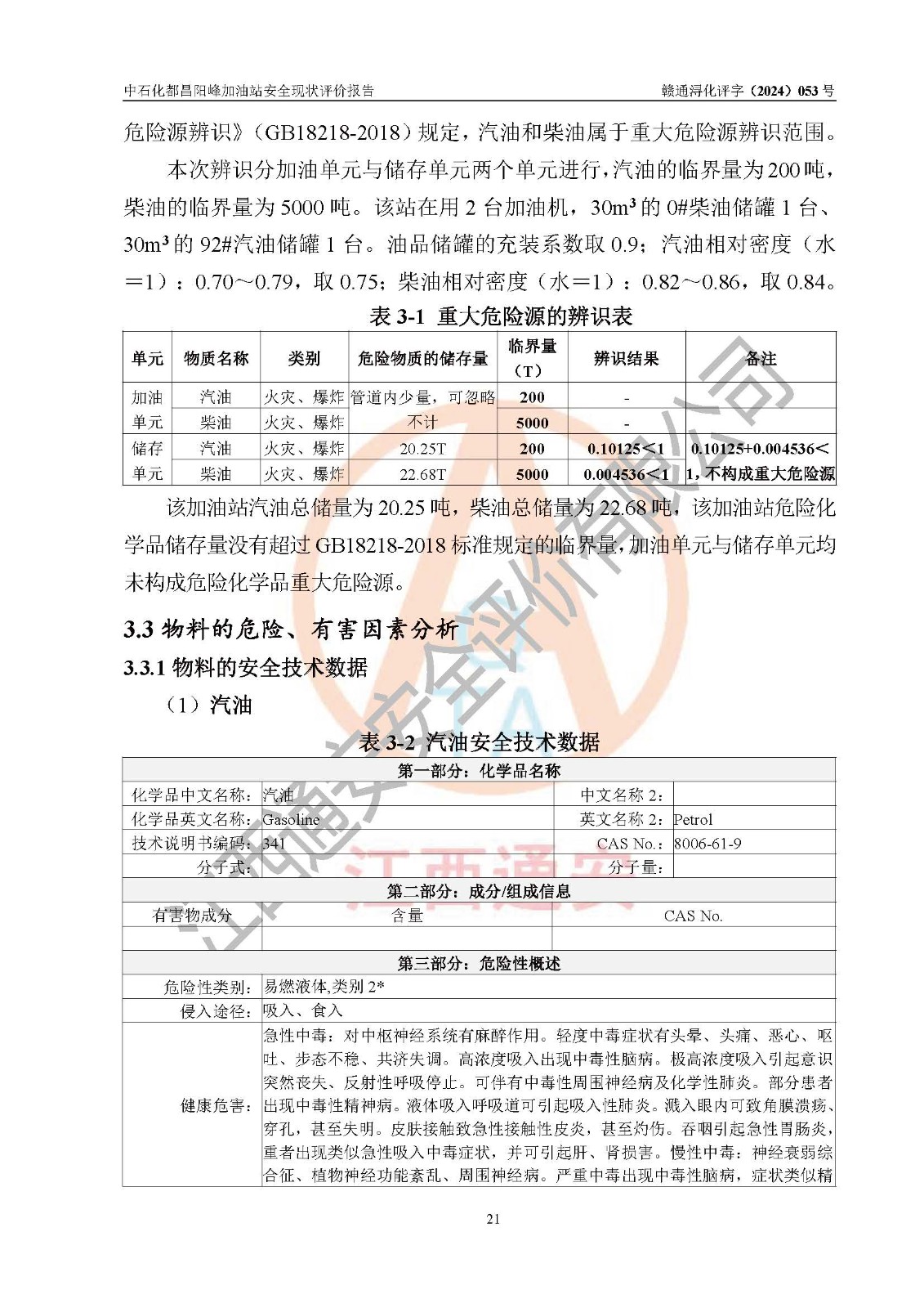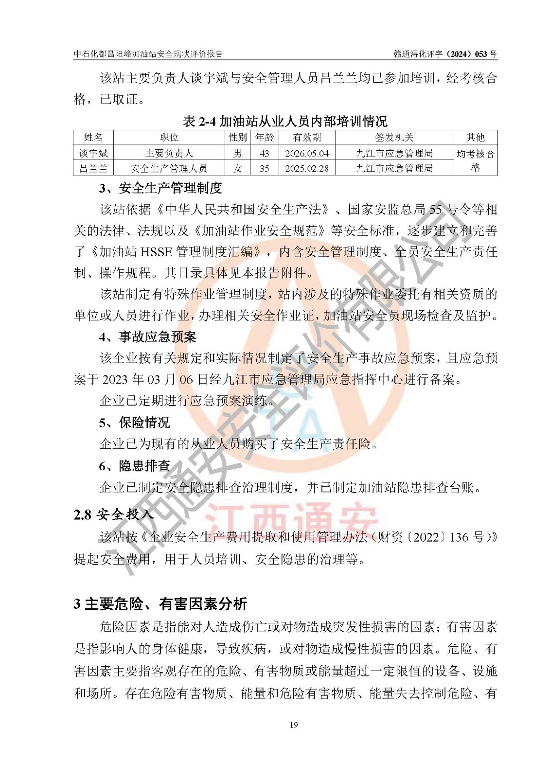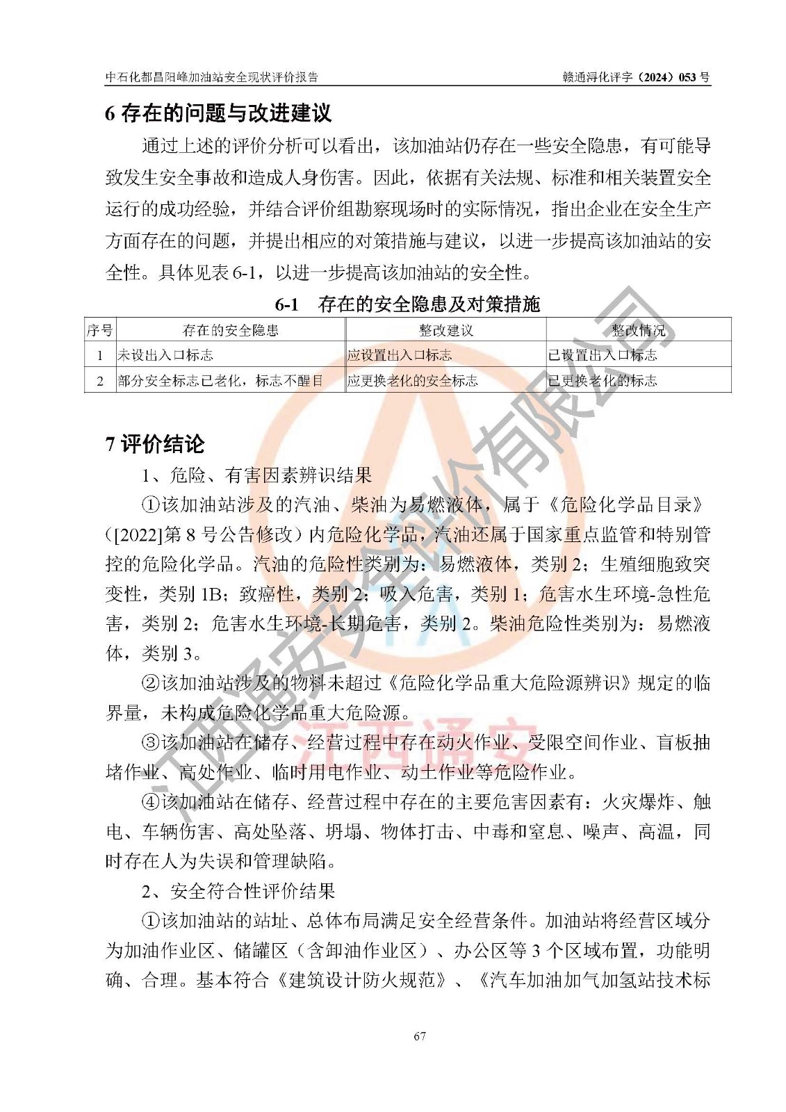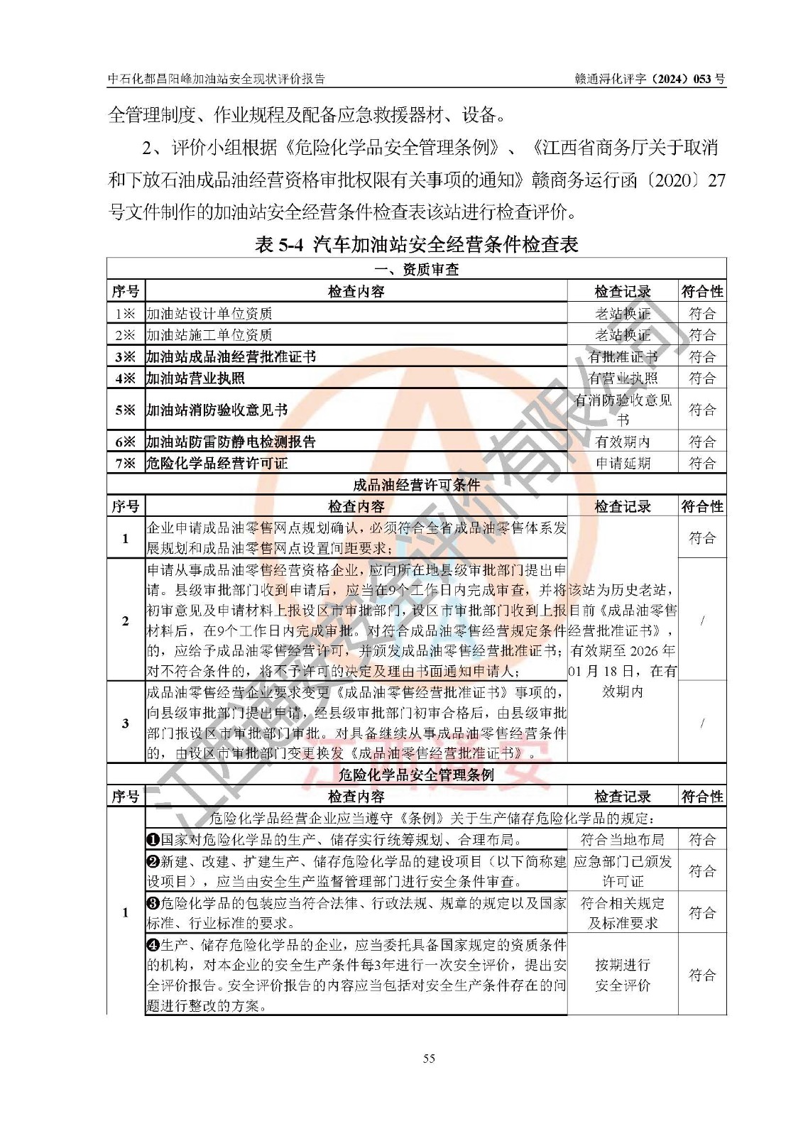 评价报告名称 | 中国石化销售股份有限公司江西九江都昌石油分公司阳峰加油站安全现状评价报告 | |||