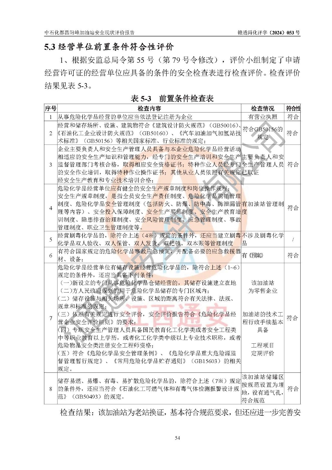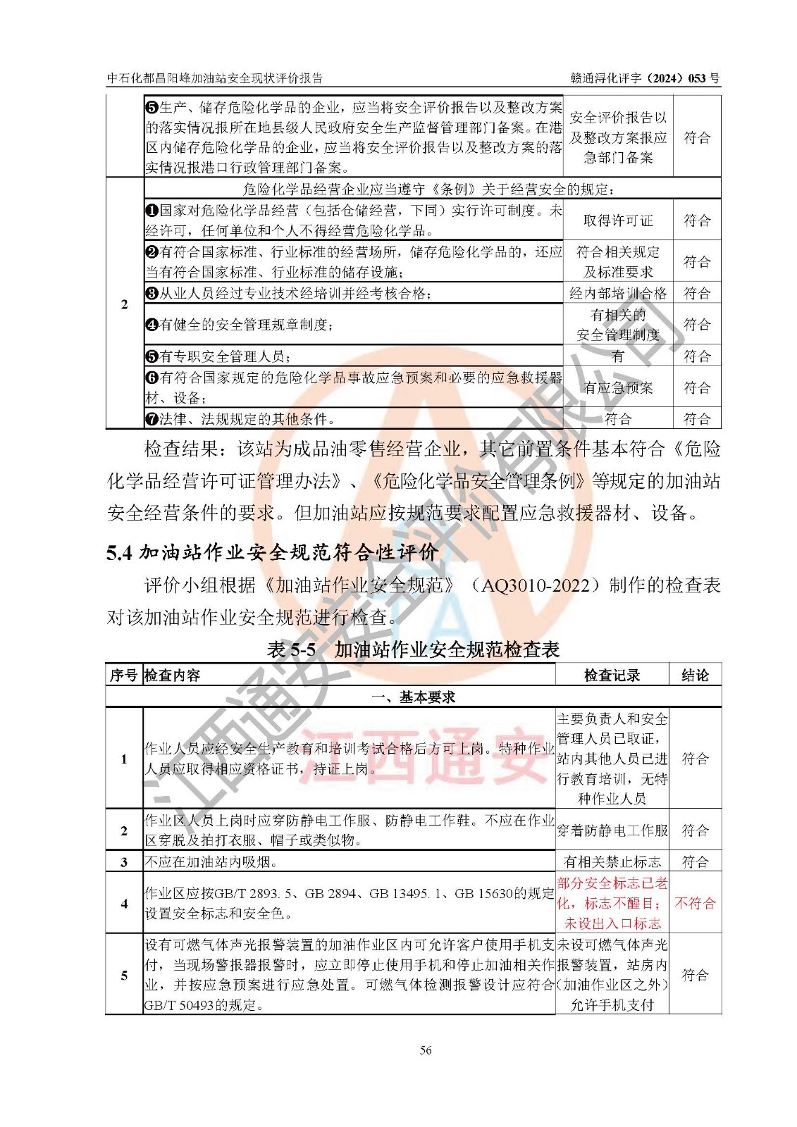 评价结论 | 中国石化销售股份有限公司江西九江都昌石油分公司阳峰加油站涉及的安全条件、安全经营条件、安全生产管理符合《危险化学品经营许可证管理办法》、《汽车加油加气加氢站技术标准》等**有关法规、标准、规范要求,能满足危险化学品经营安全条件。 | |||