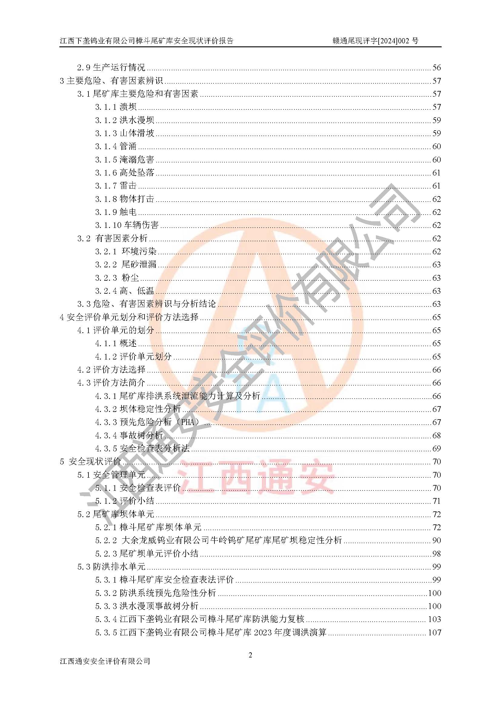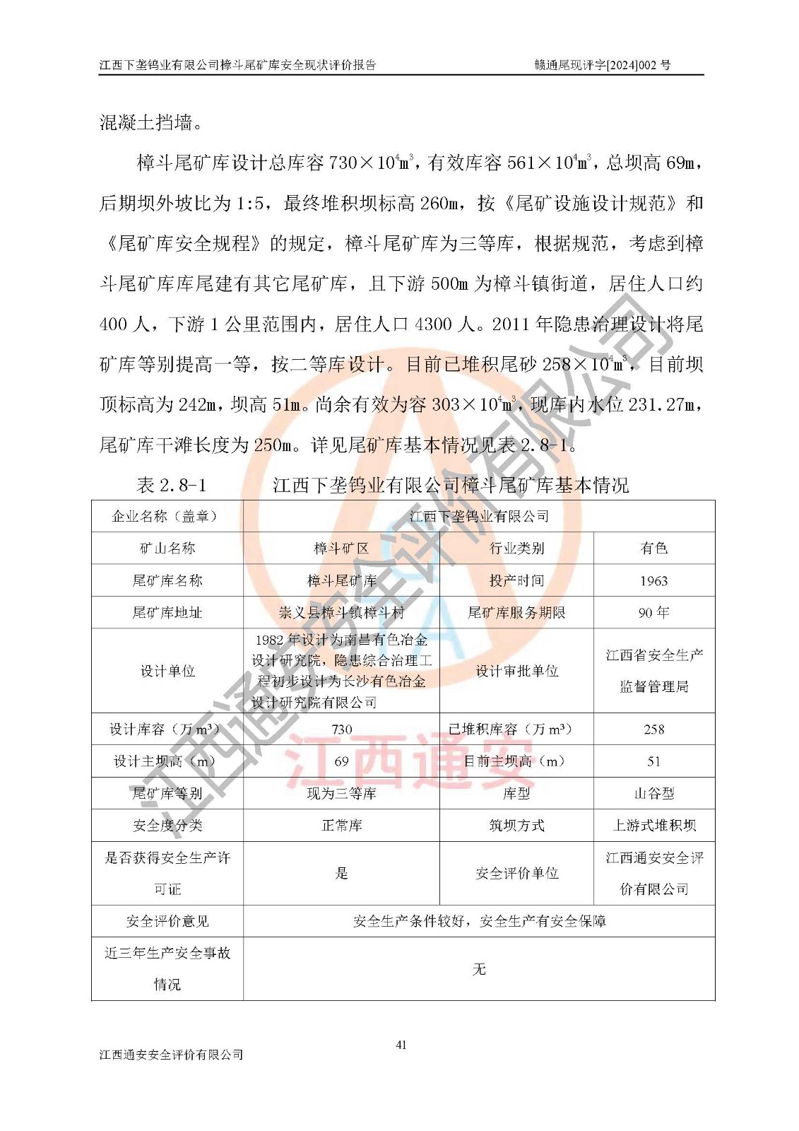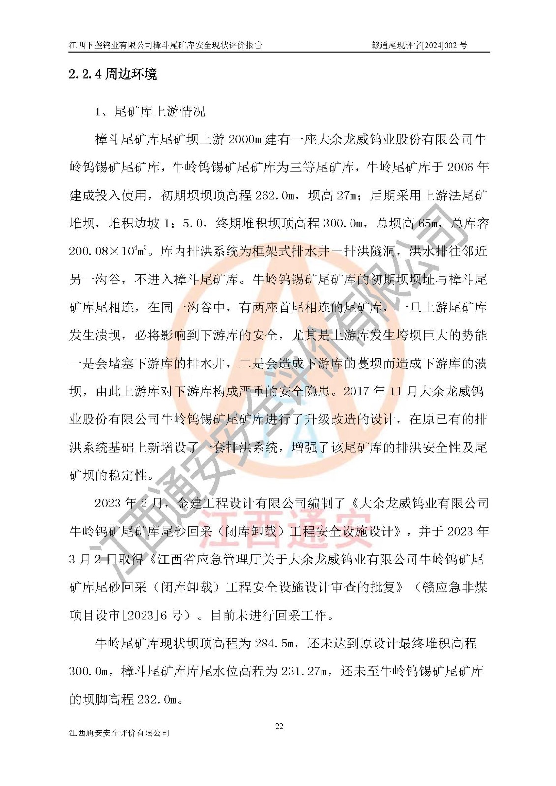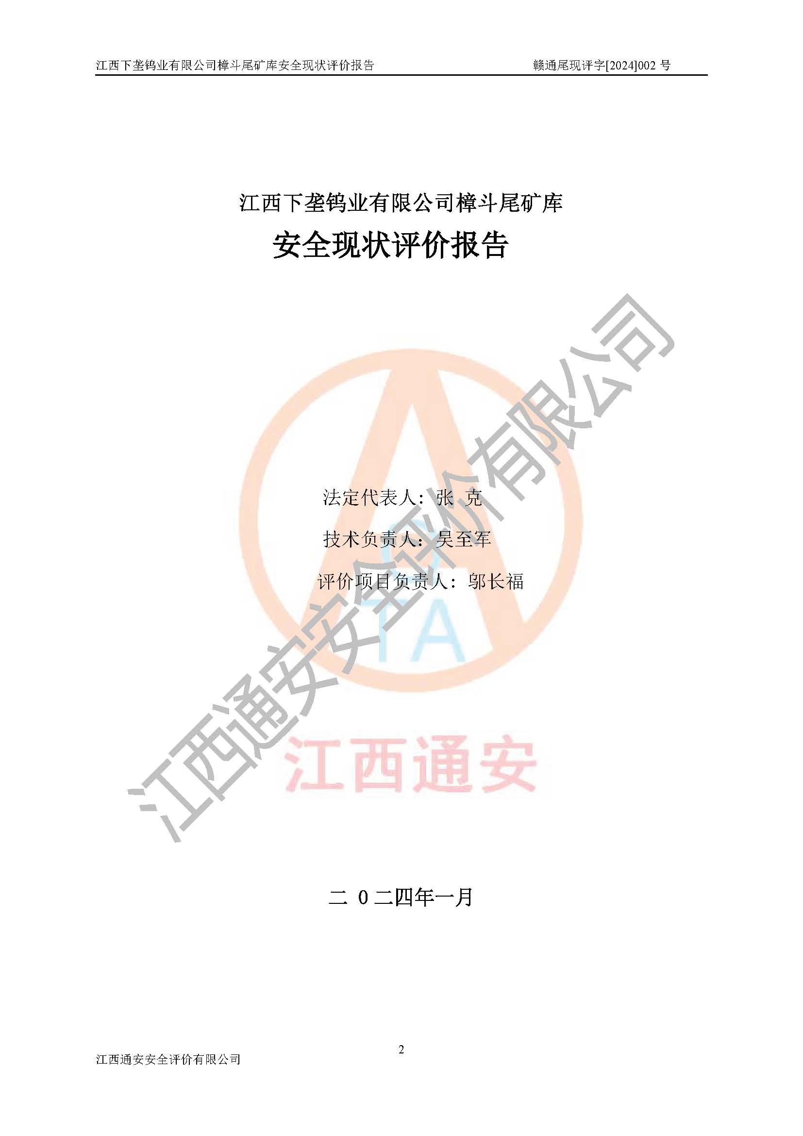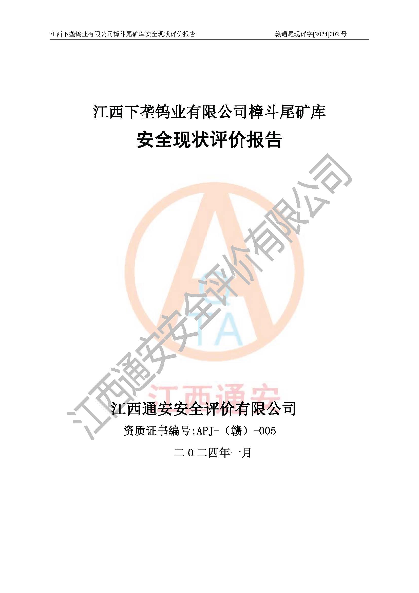 评价报告名称 | 江西下垄钨业有限公司樟斗尾矿库安全现状评价报告 | |||