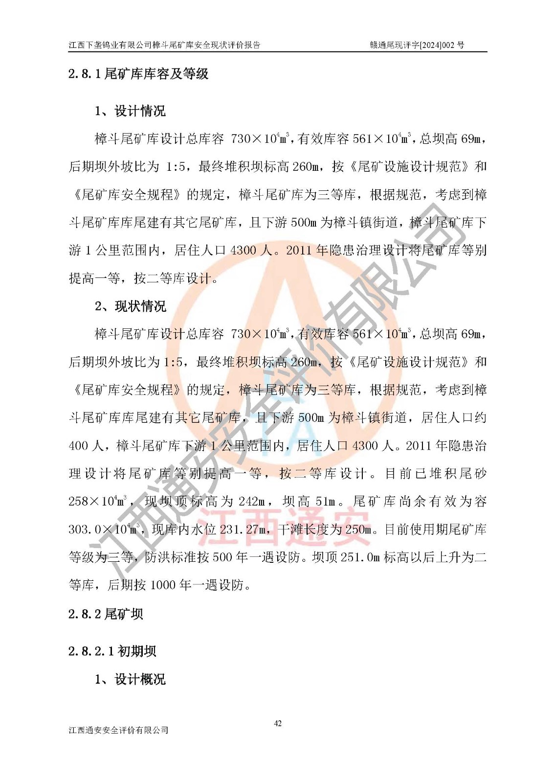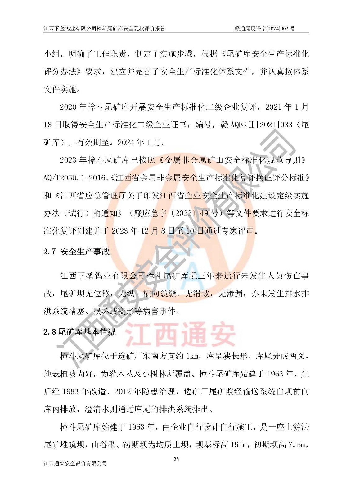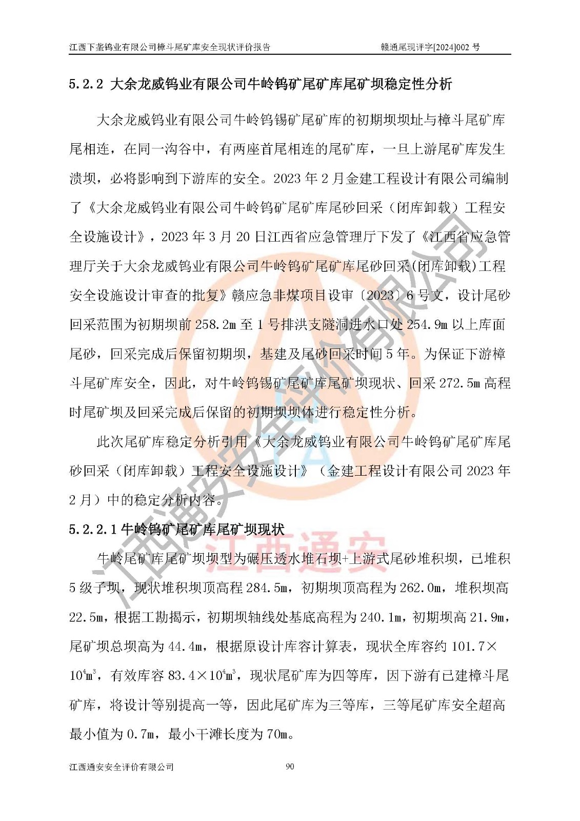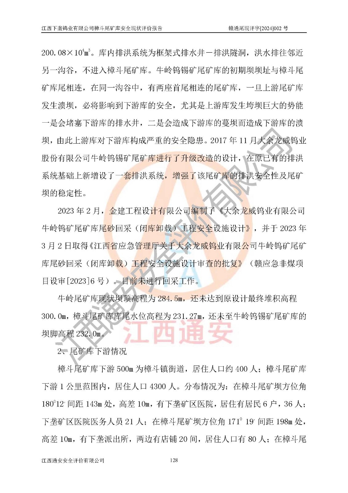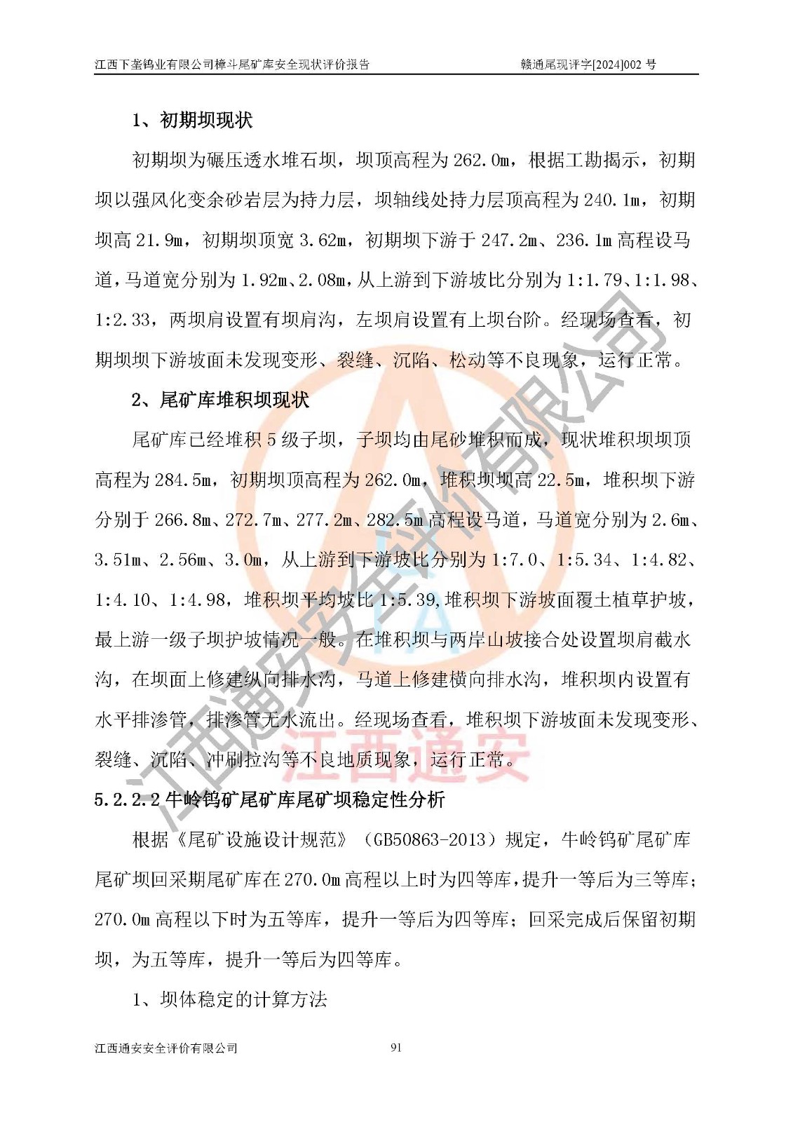 评价报告名称 | 江西下垄钨业有限公司樟斗尾矿库安全现状评价报告 | |||