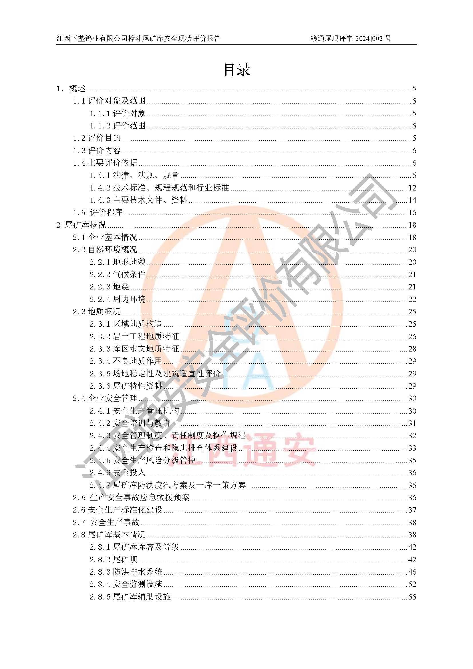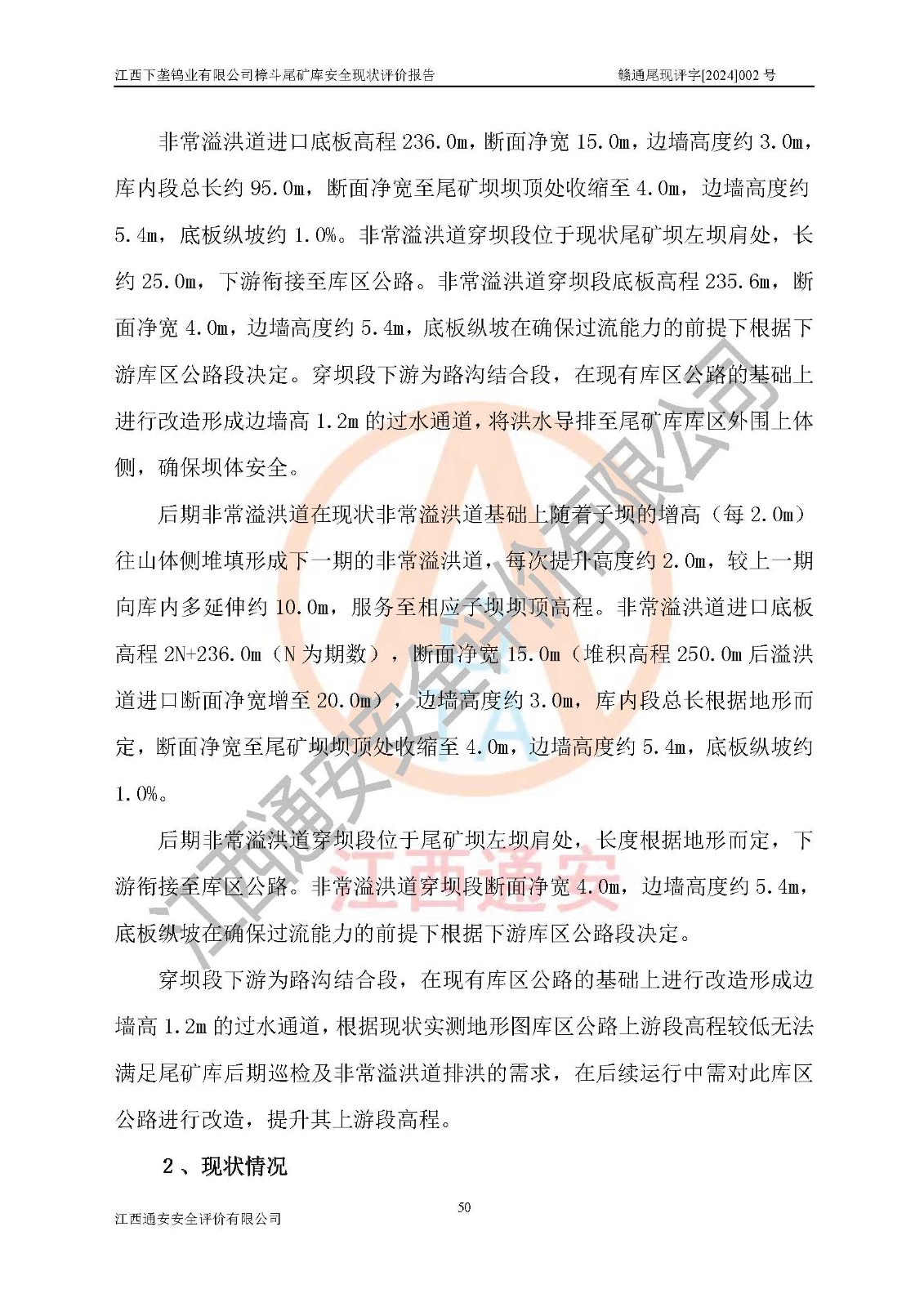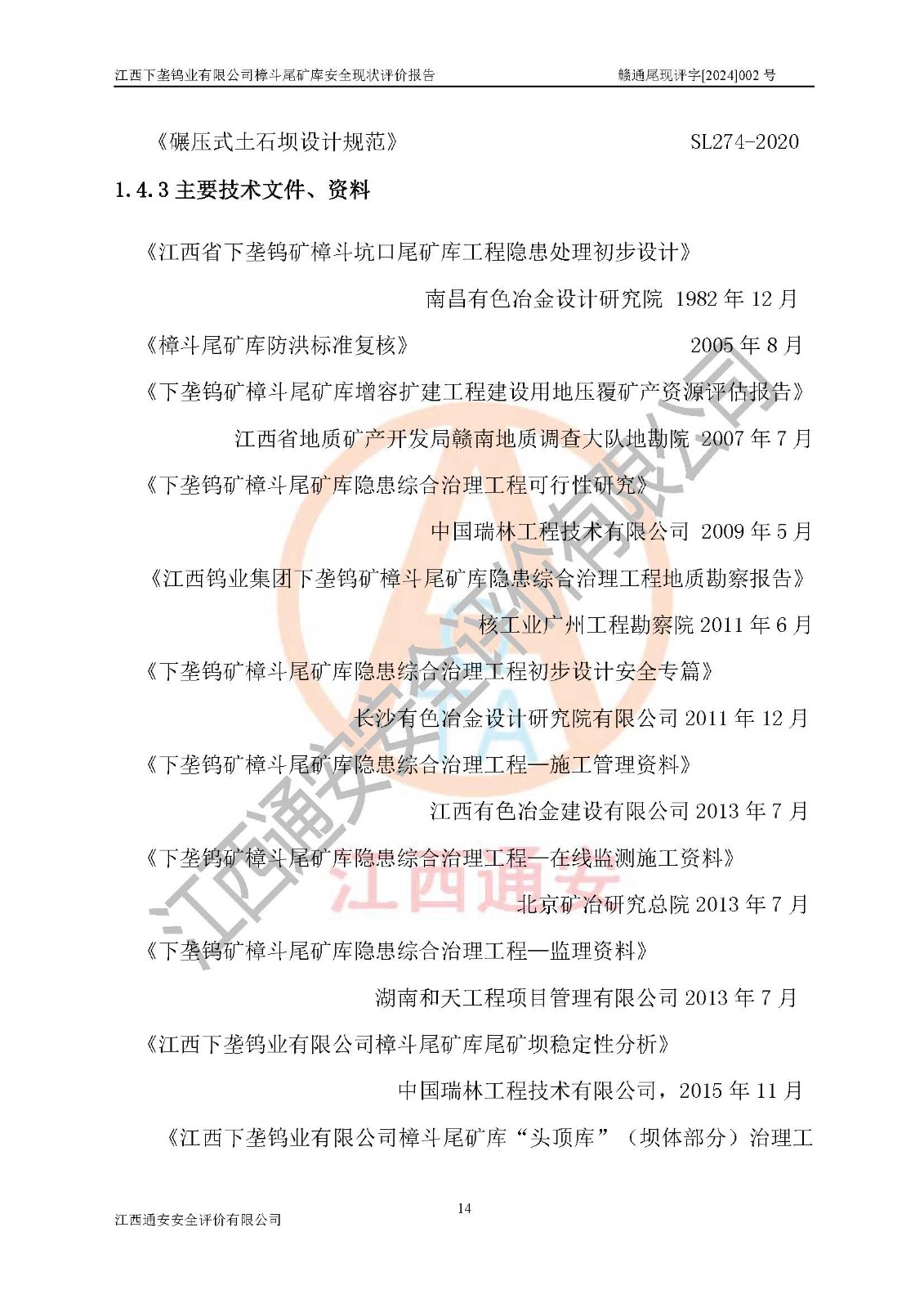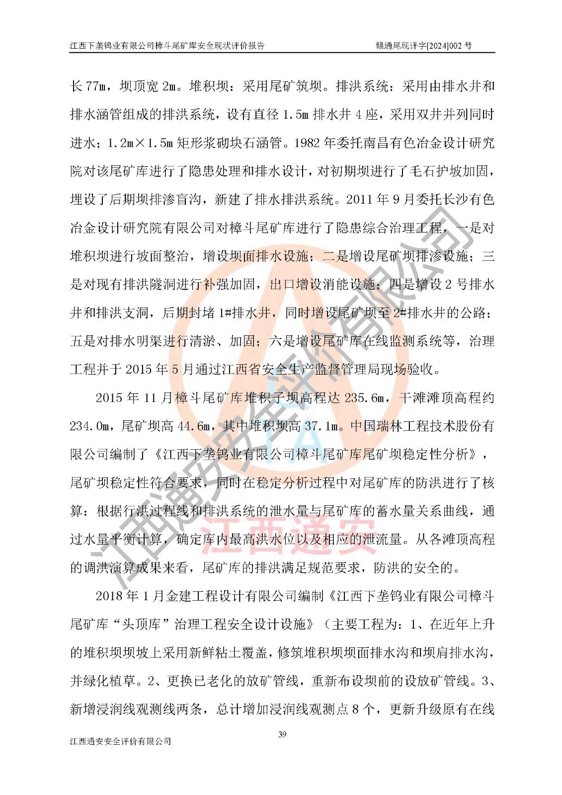 评价报告名称 | 江西下垄钨业有限公司樟斗尾矿库安全现状评价报告 | |||