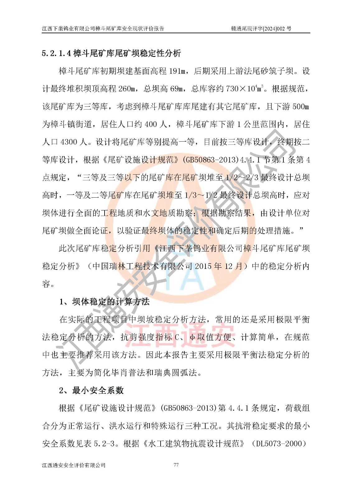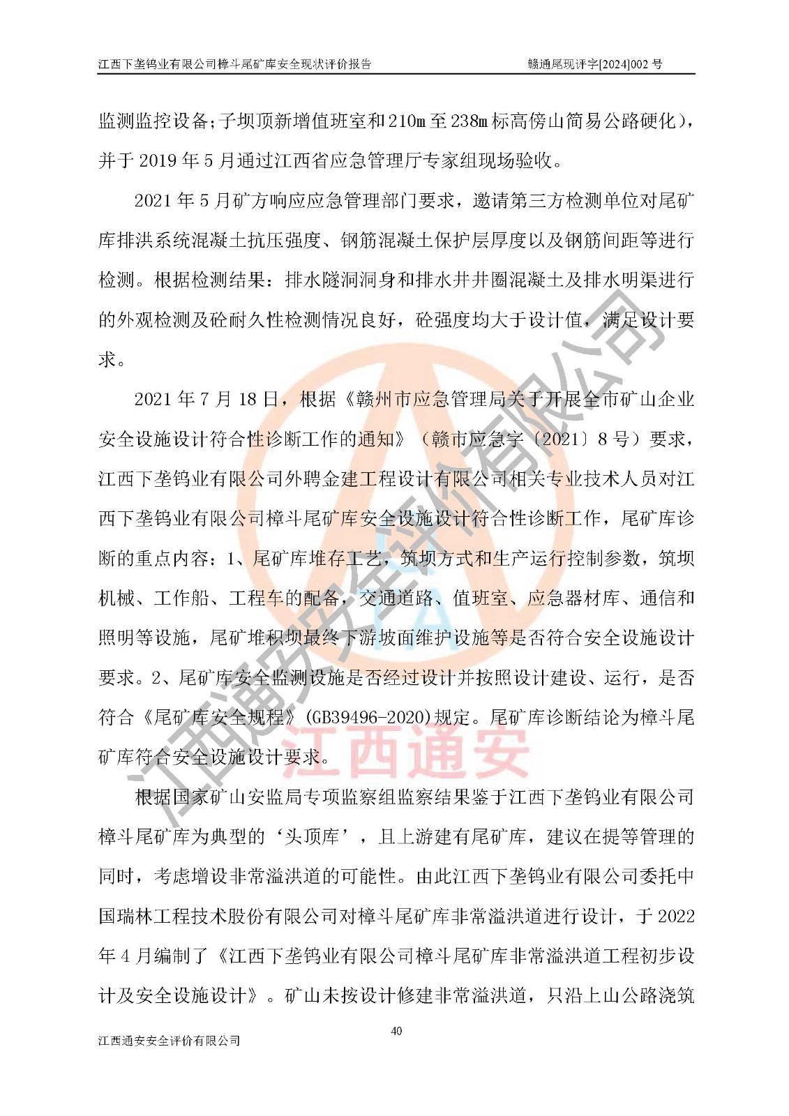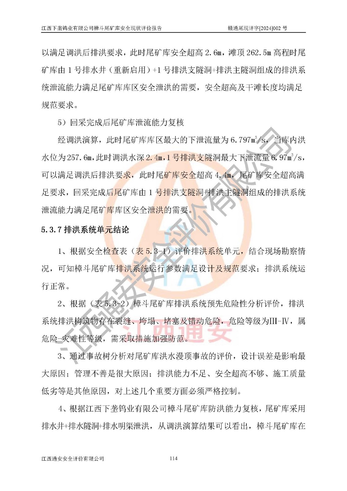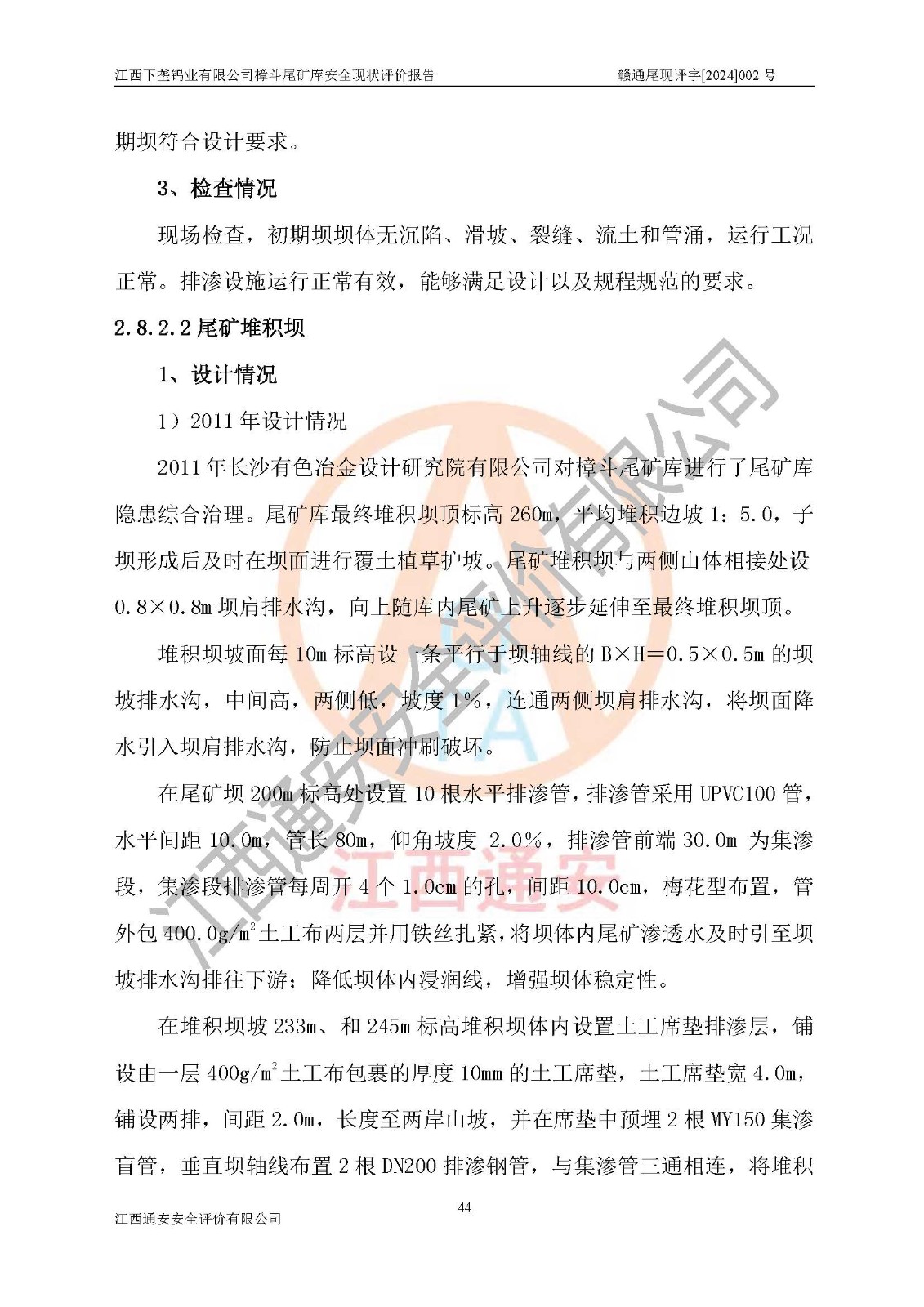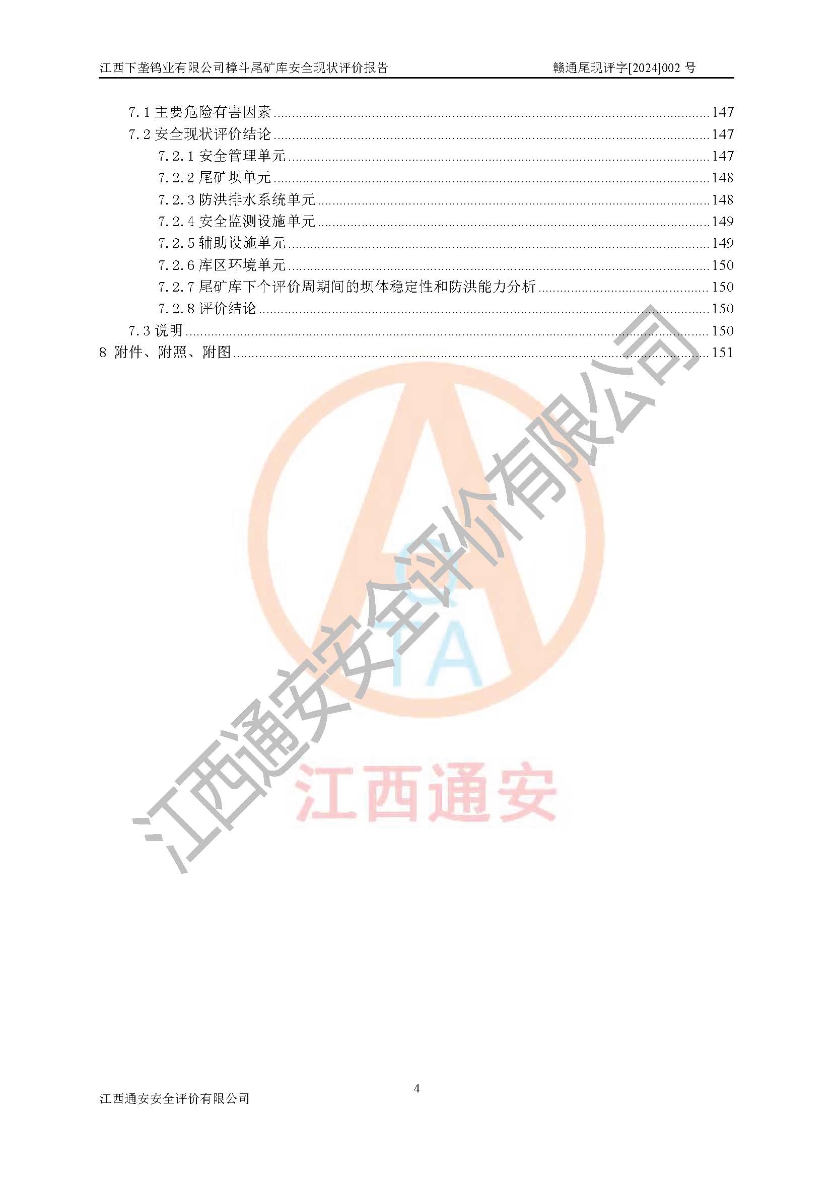 评价报告名称 | 江西下垄钨业有限公司樟斗尾矿库安全现状评价报告 | |||