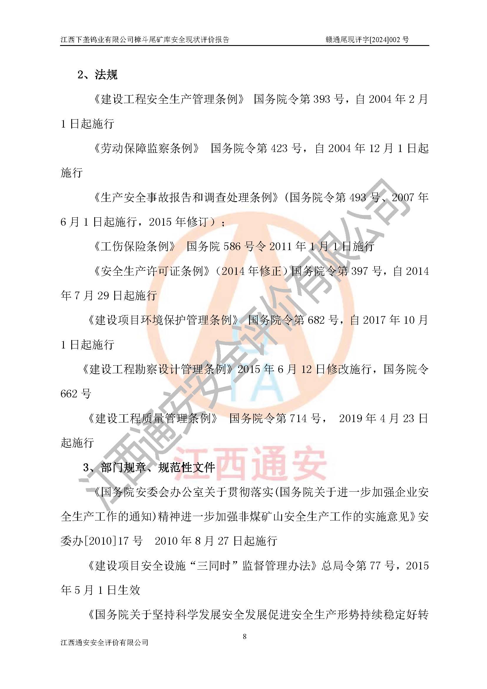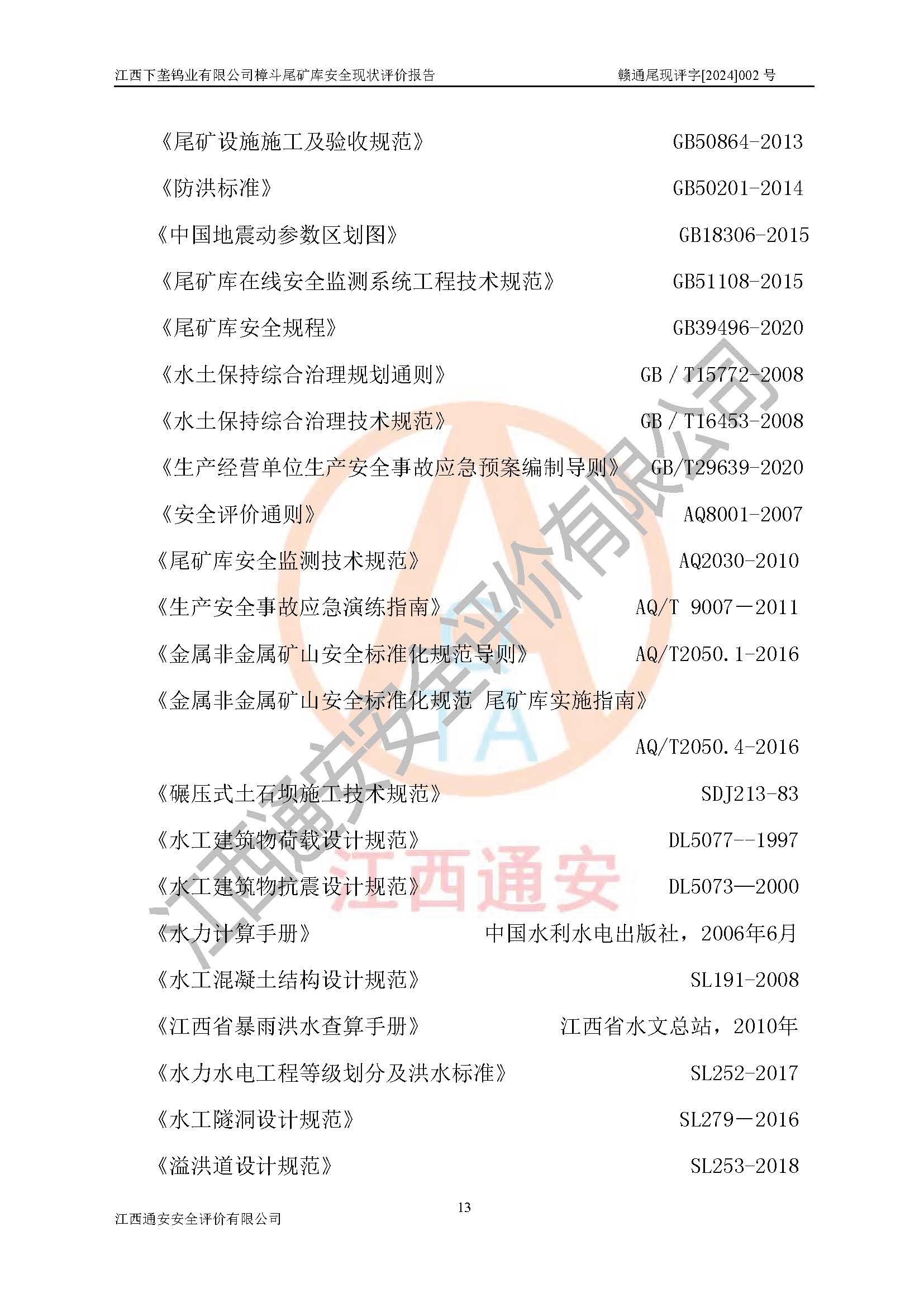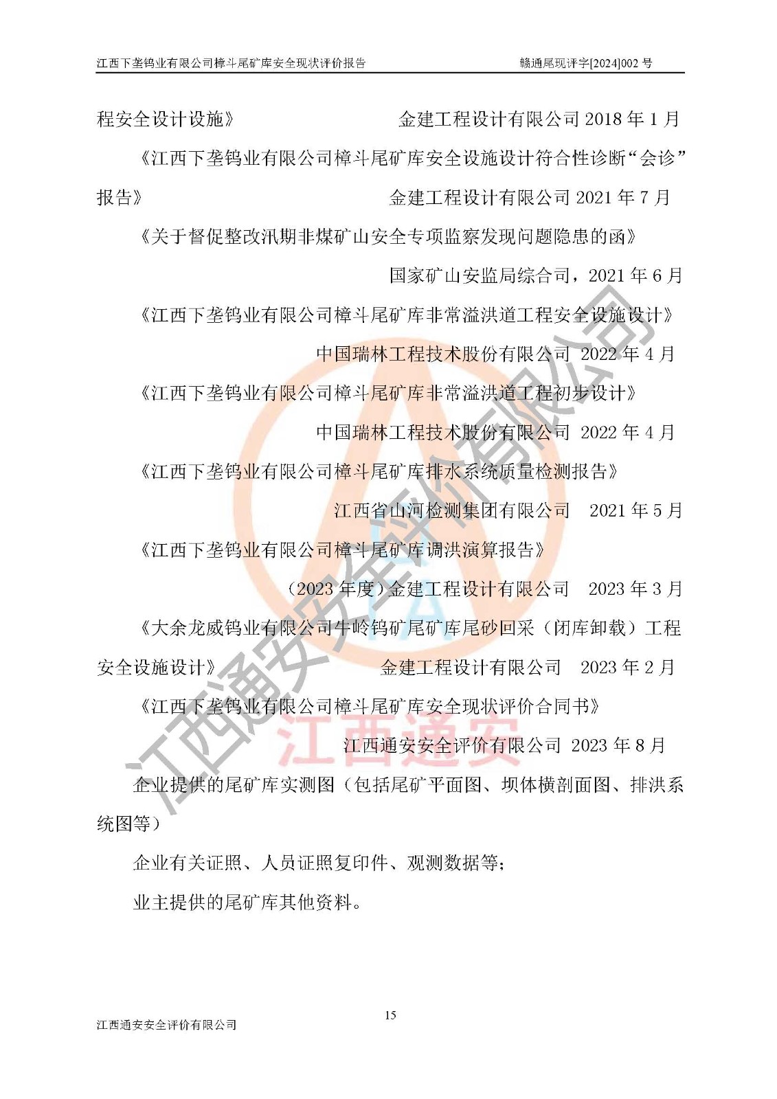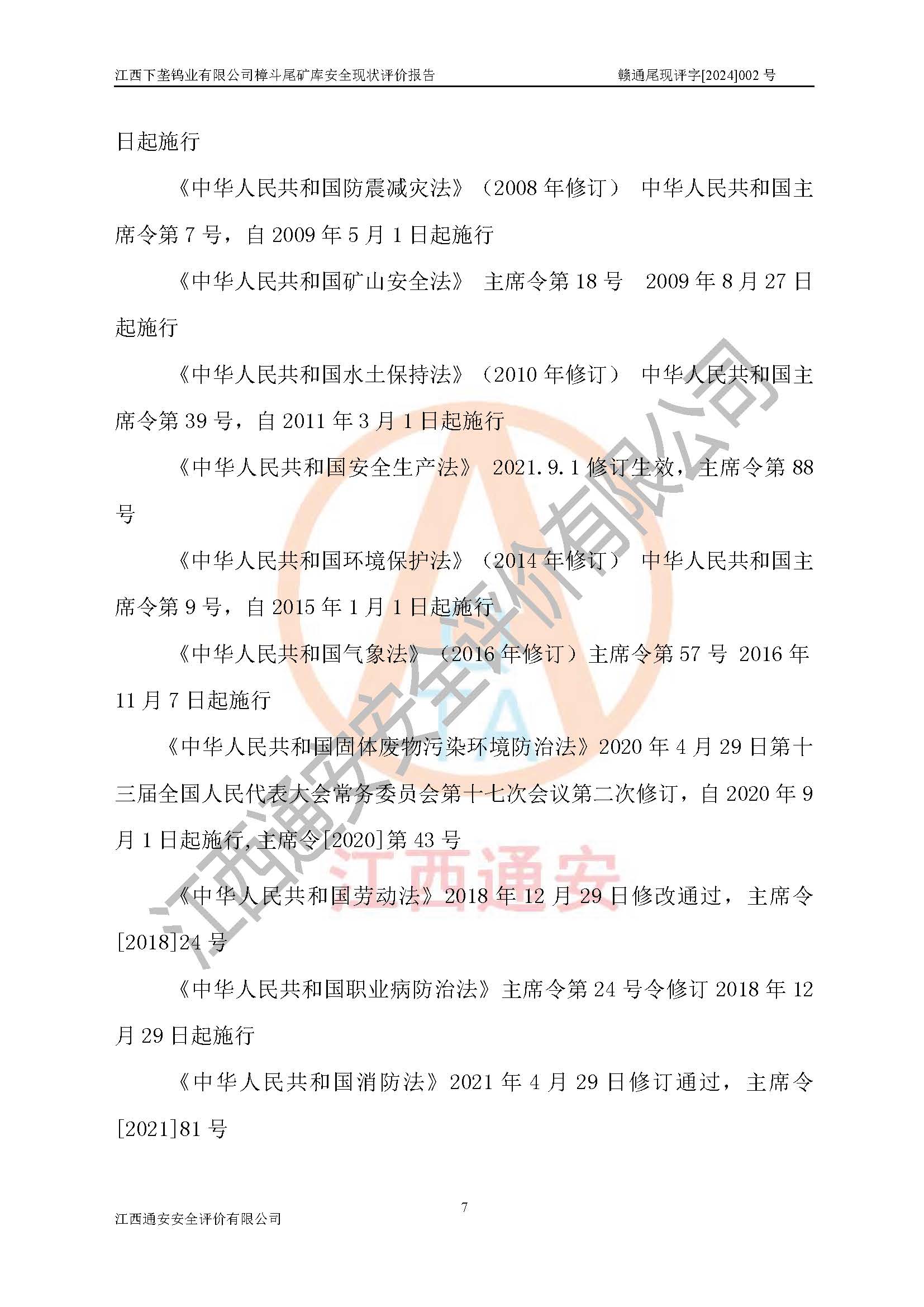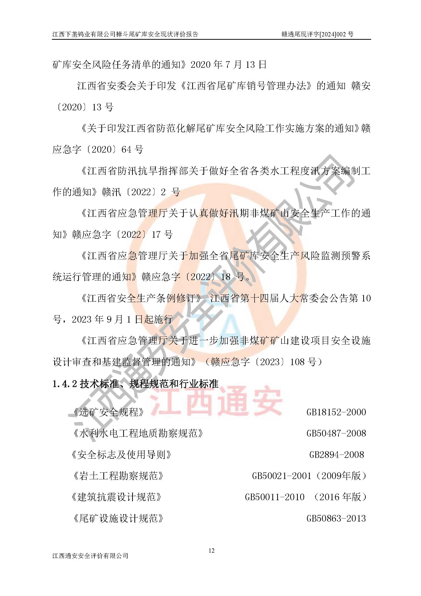 评价报告名称 | 江西下垄钨业有限公司樟斗尾矿库安全现状评价报告 | |||