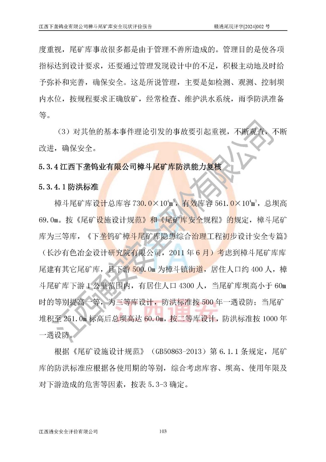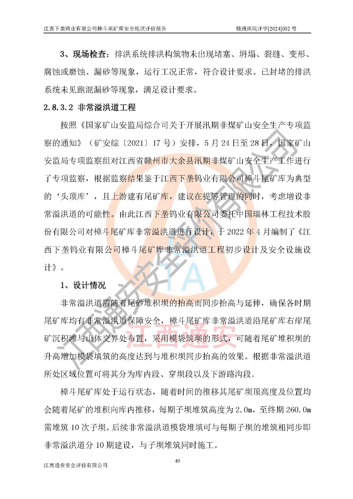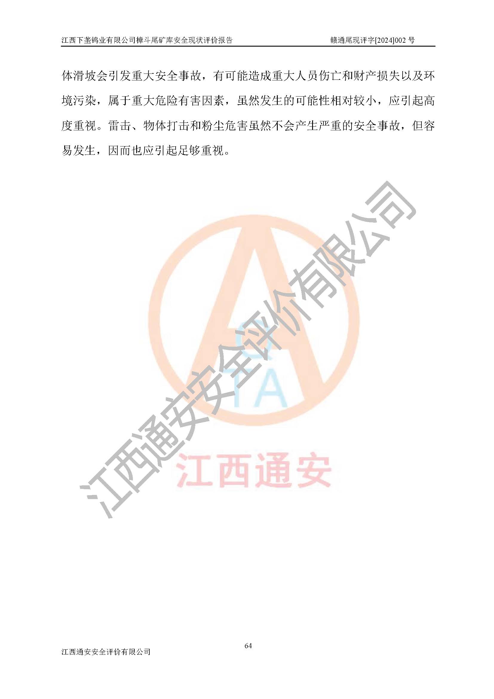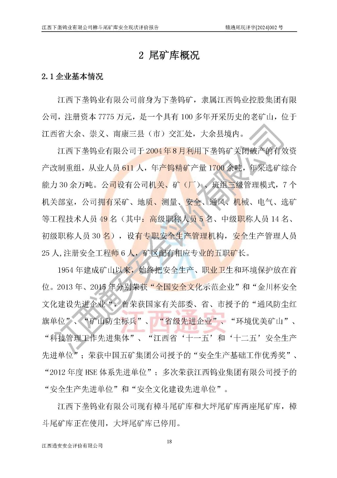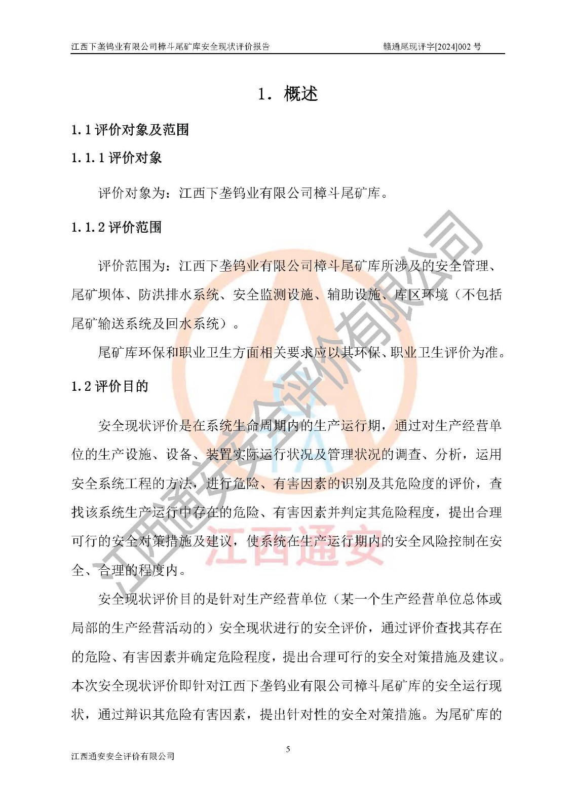 评价报告名称 | 江西下垄钨业有限公司樟斗尾矿库安全现状评价报告 | |||