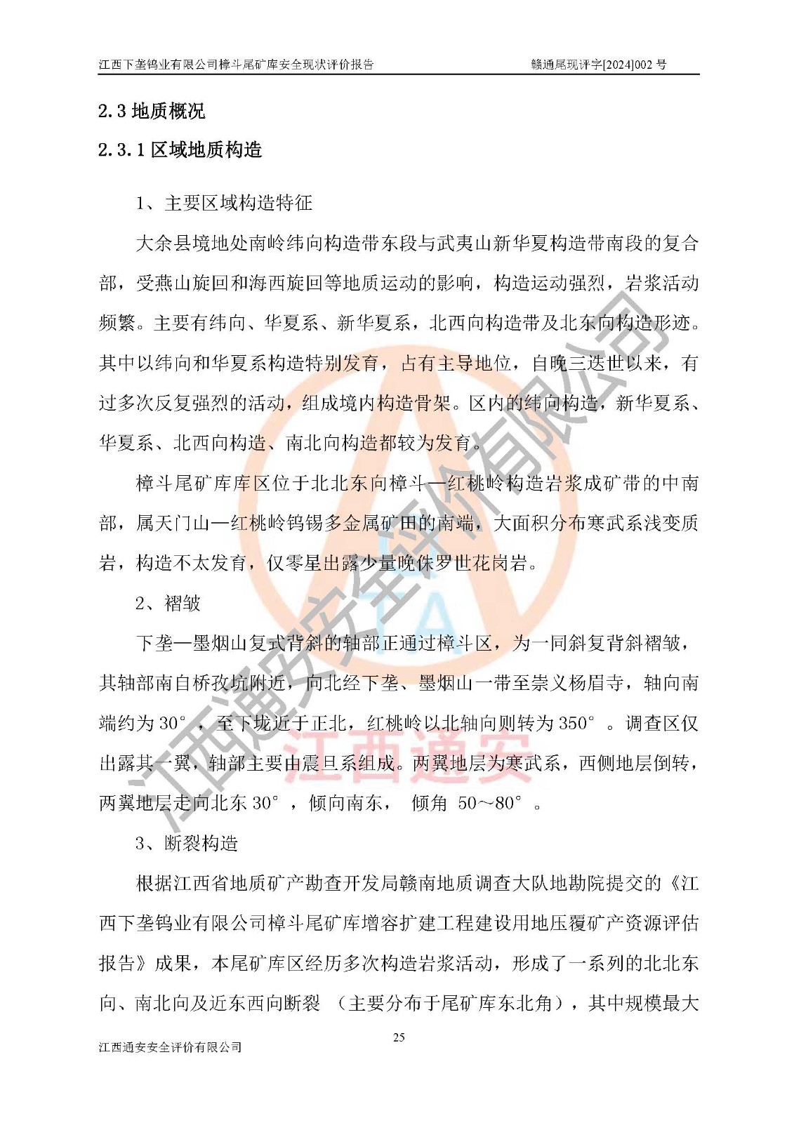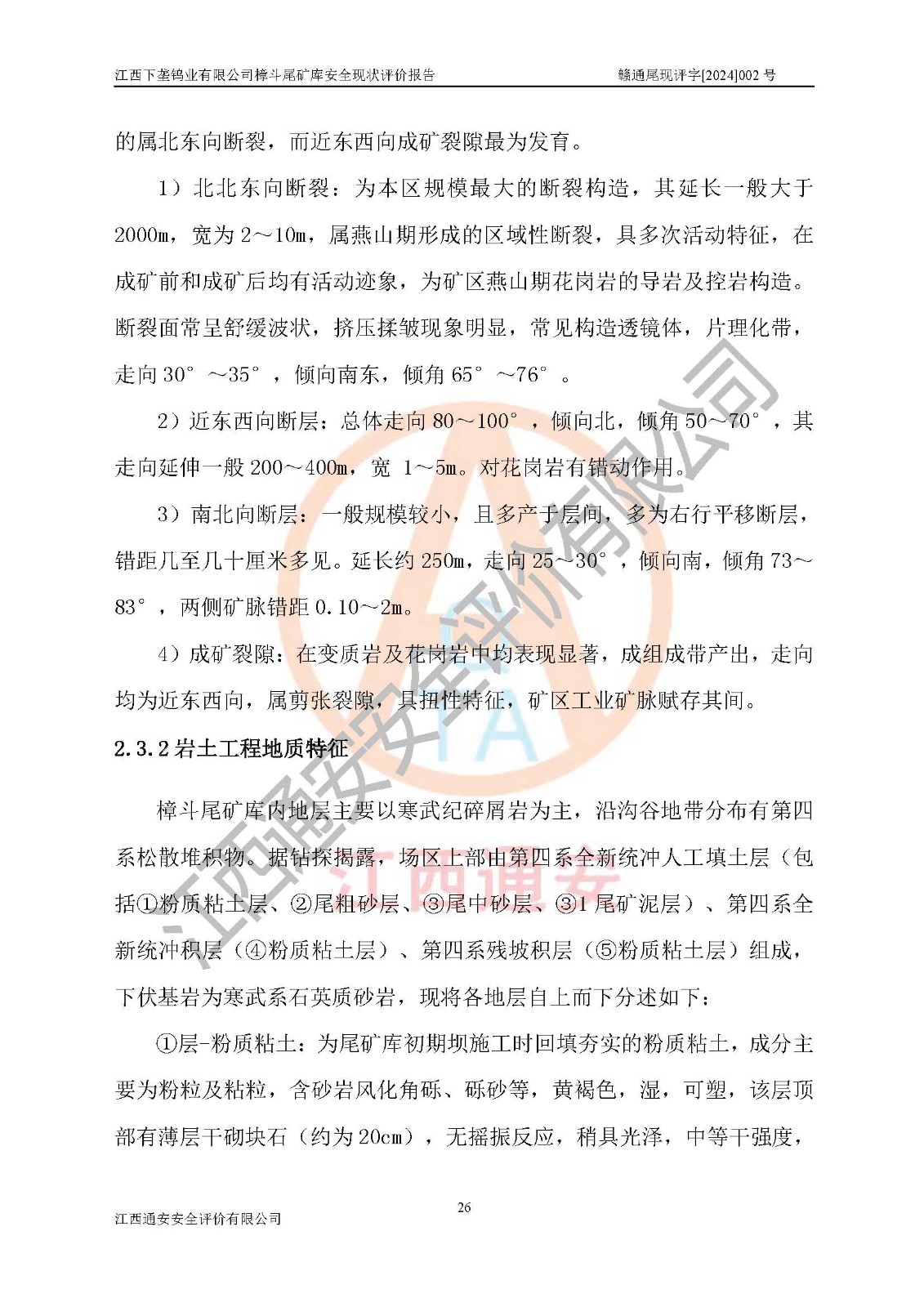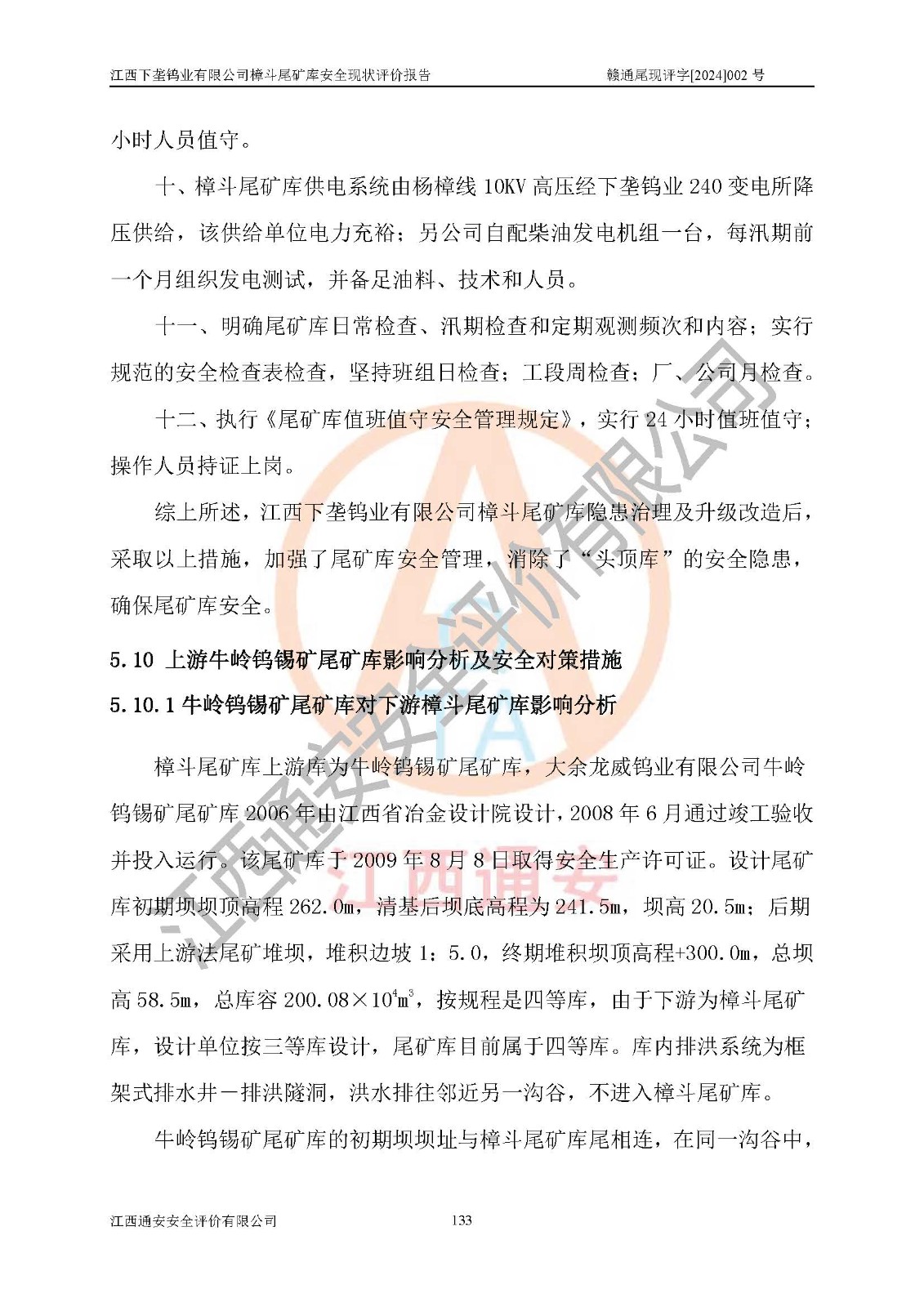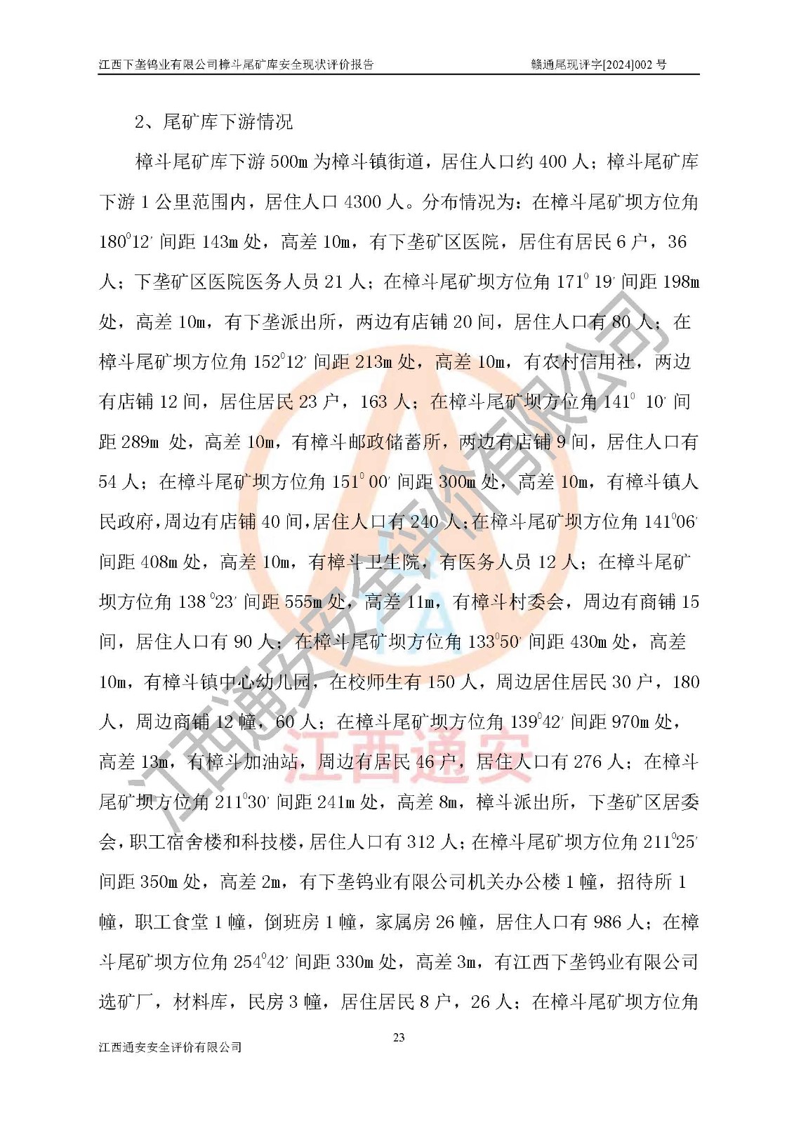评价报告名称 | 江西下垄钨业有限公司樟斗尾矿库安全现状评价报告 | |||