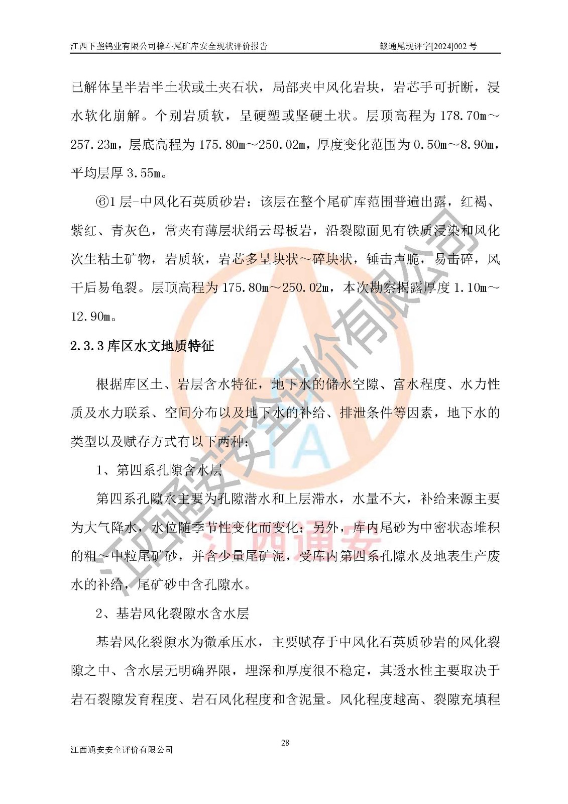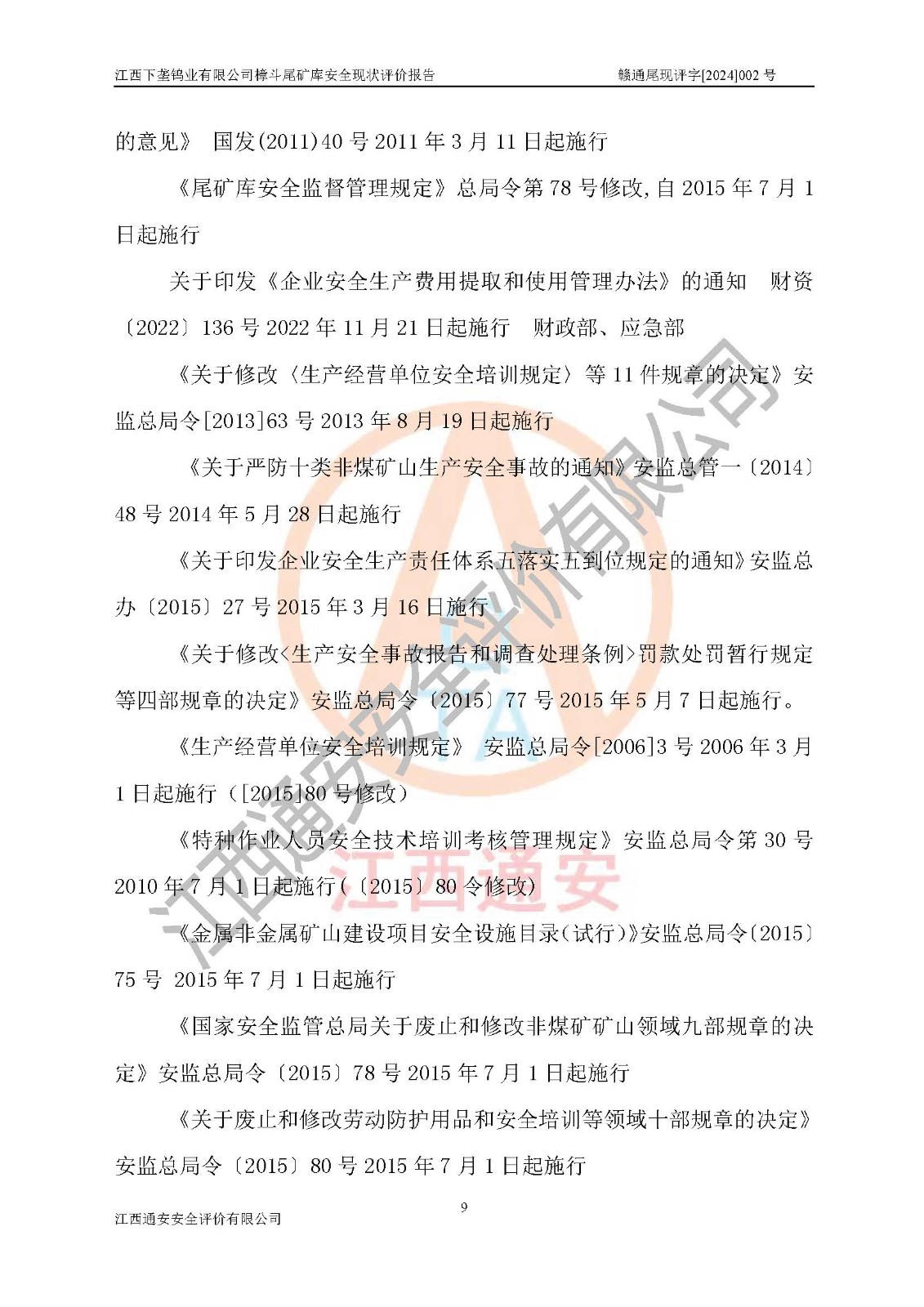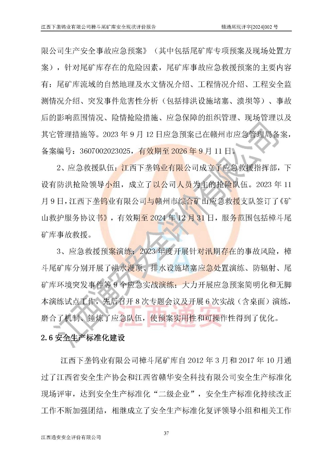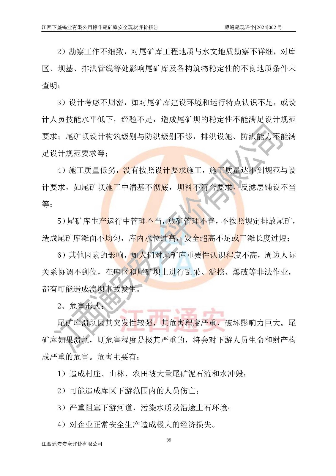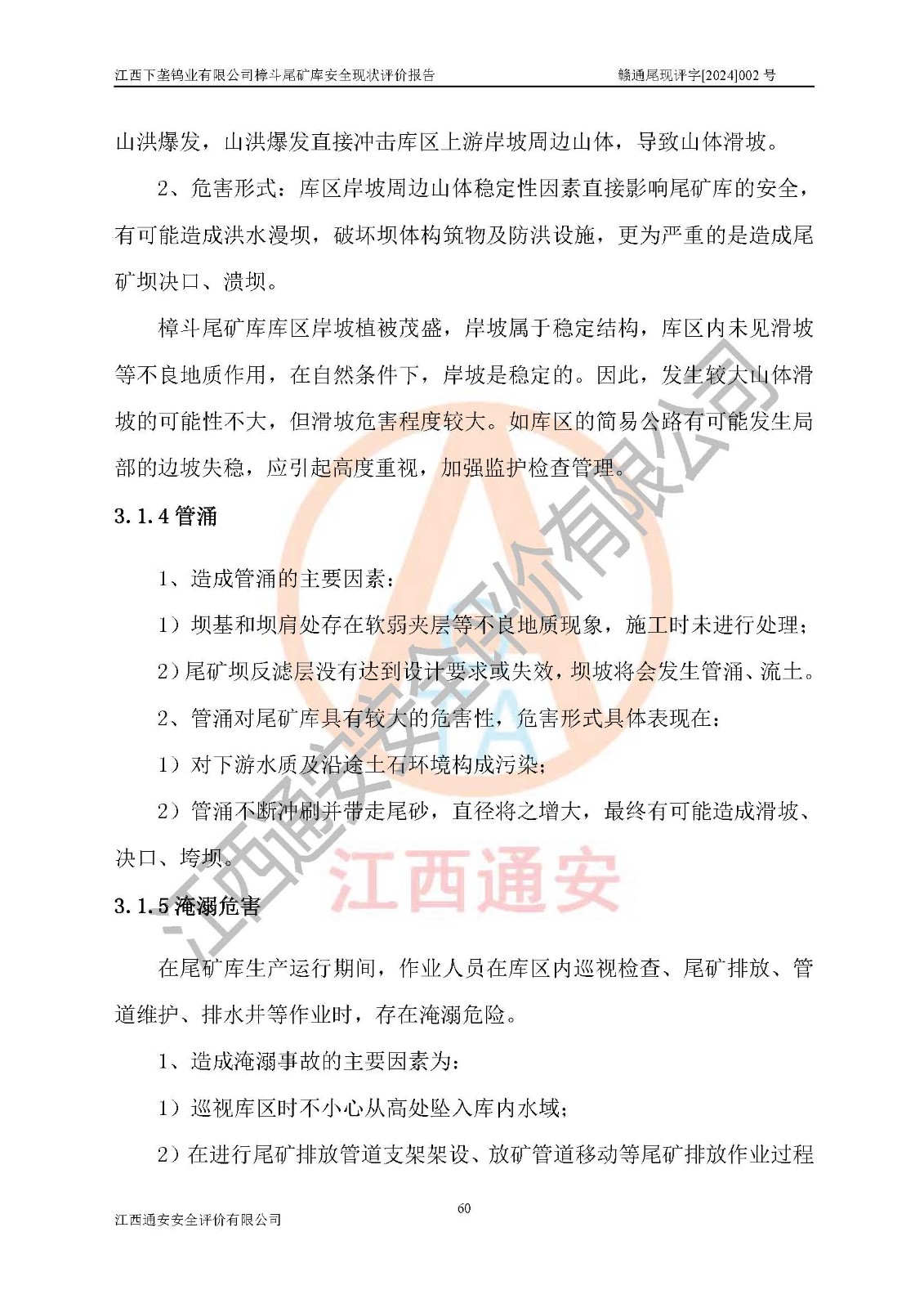 评价报告名称 | 江西下垄钨业有限公司樟斗尾矿库安全现状评价报告 | |||