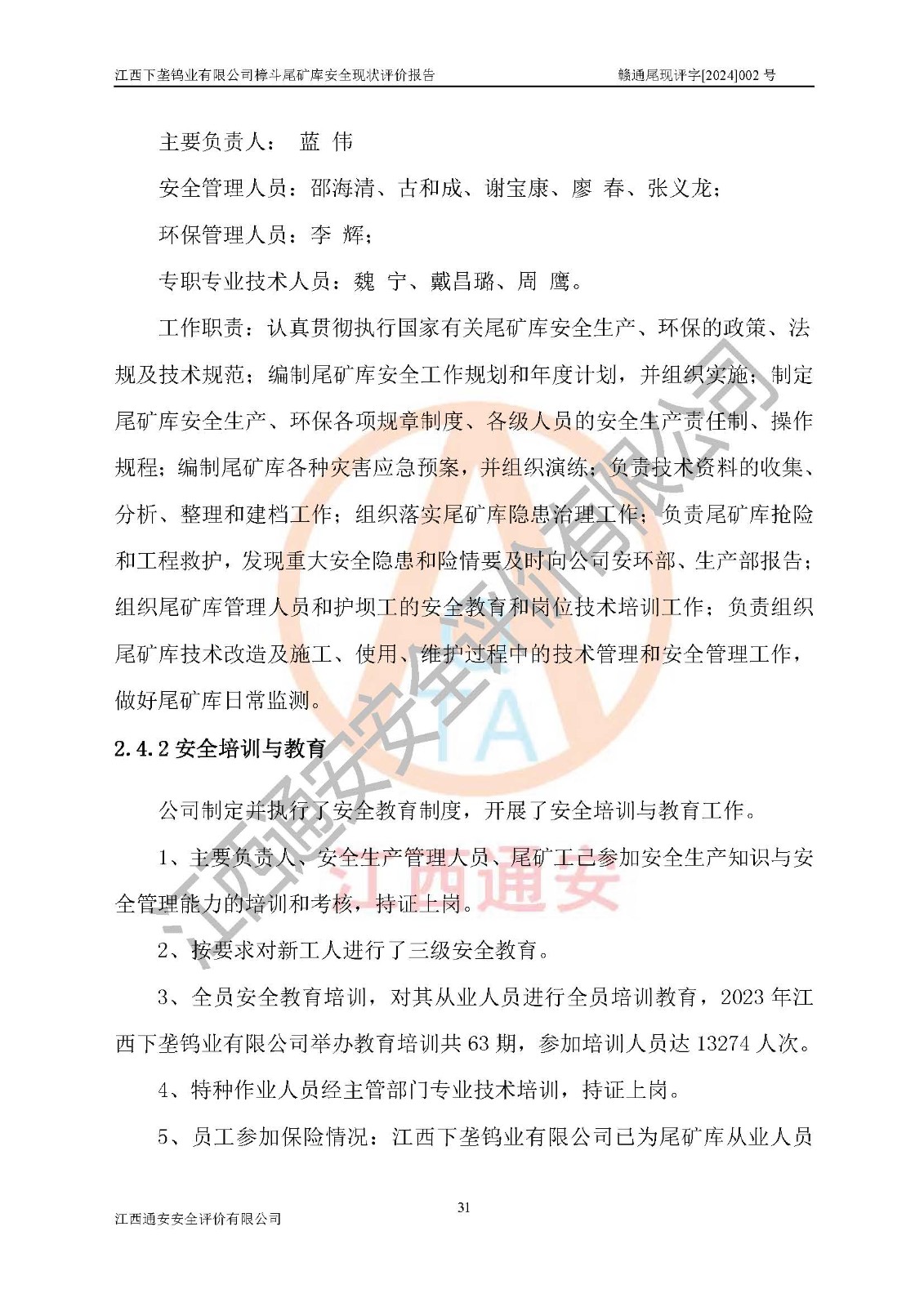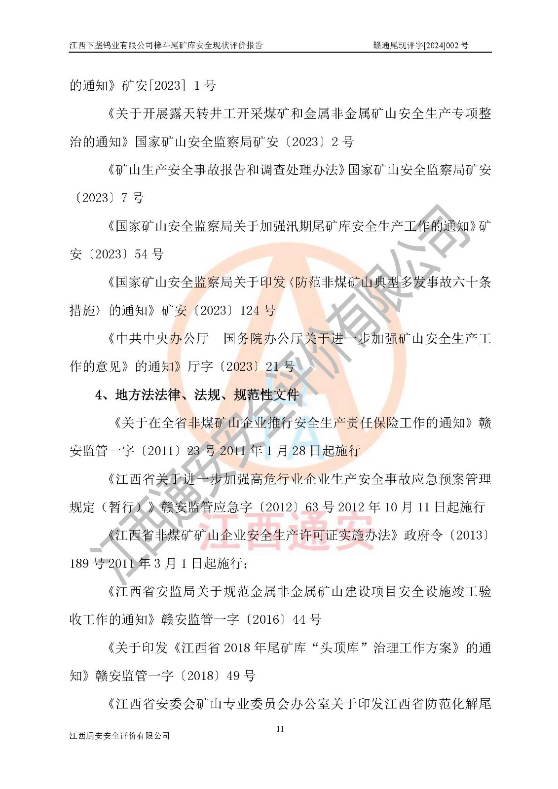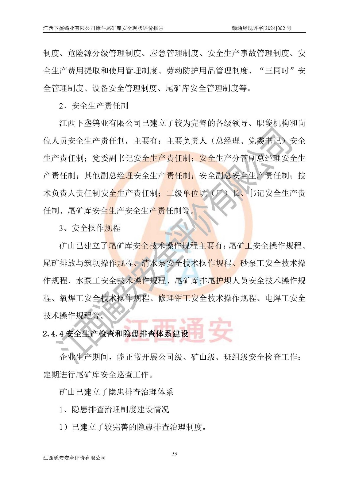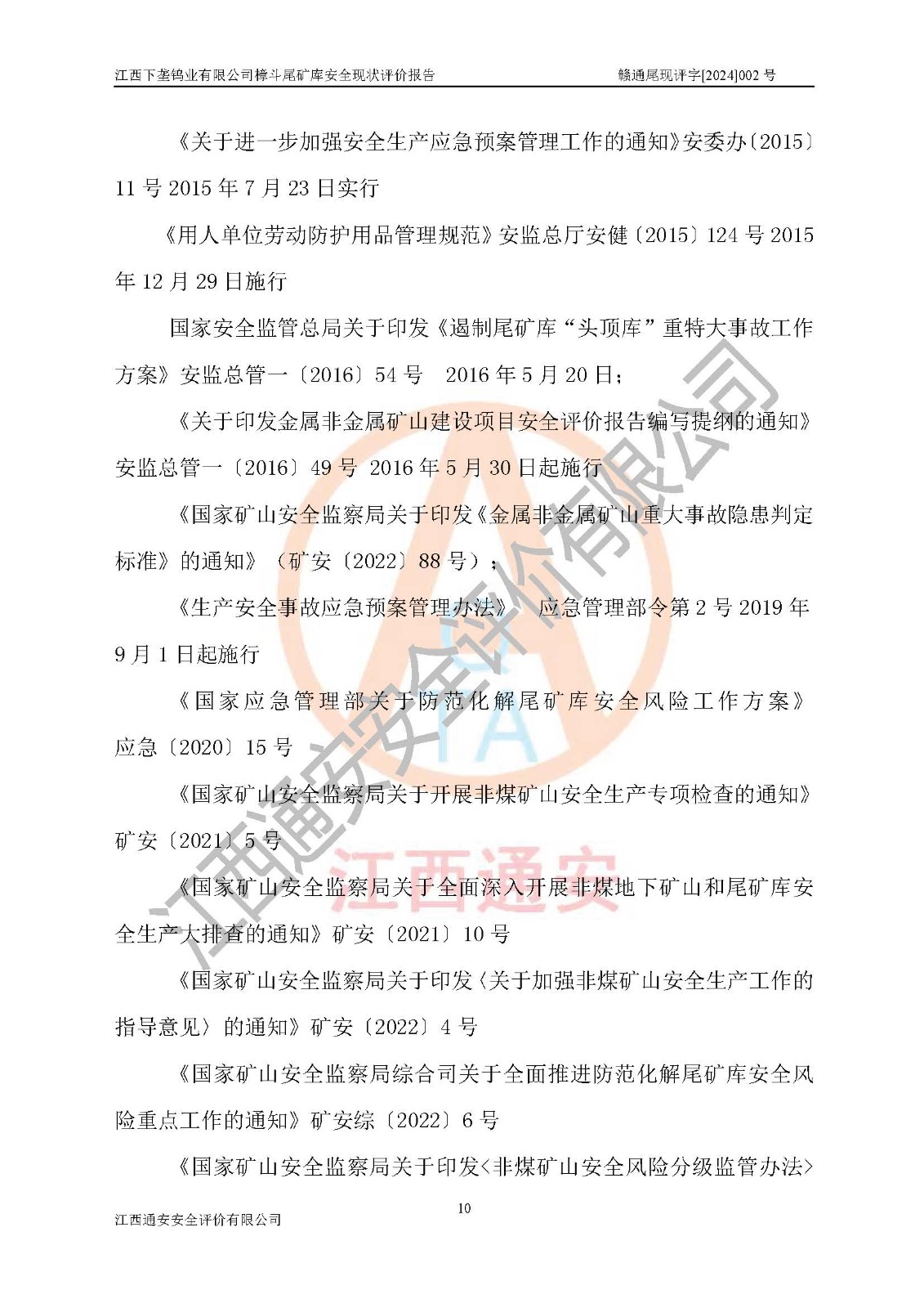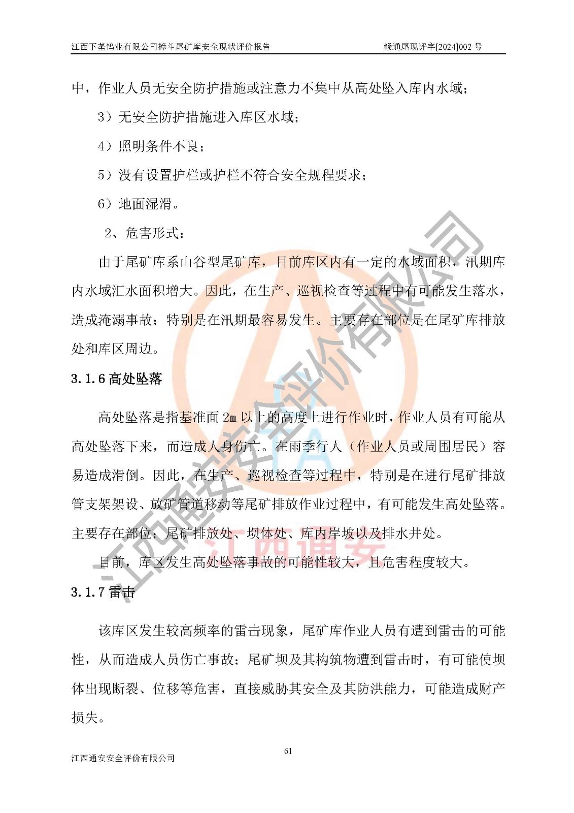 评价报告名称 | 江西下垄钨业有限公司樟斗尾矿库安全现状评价报告 | |||