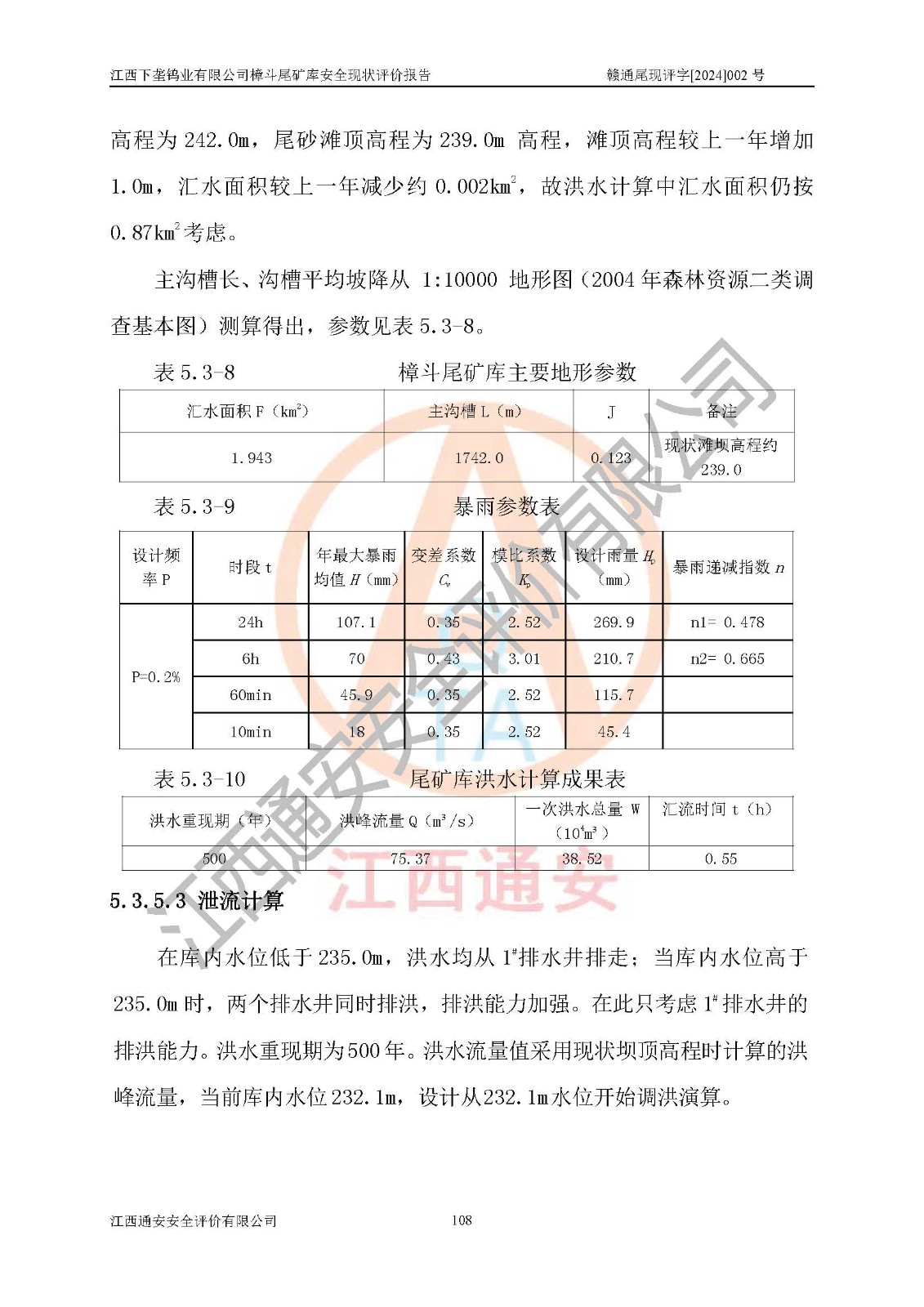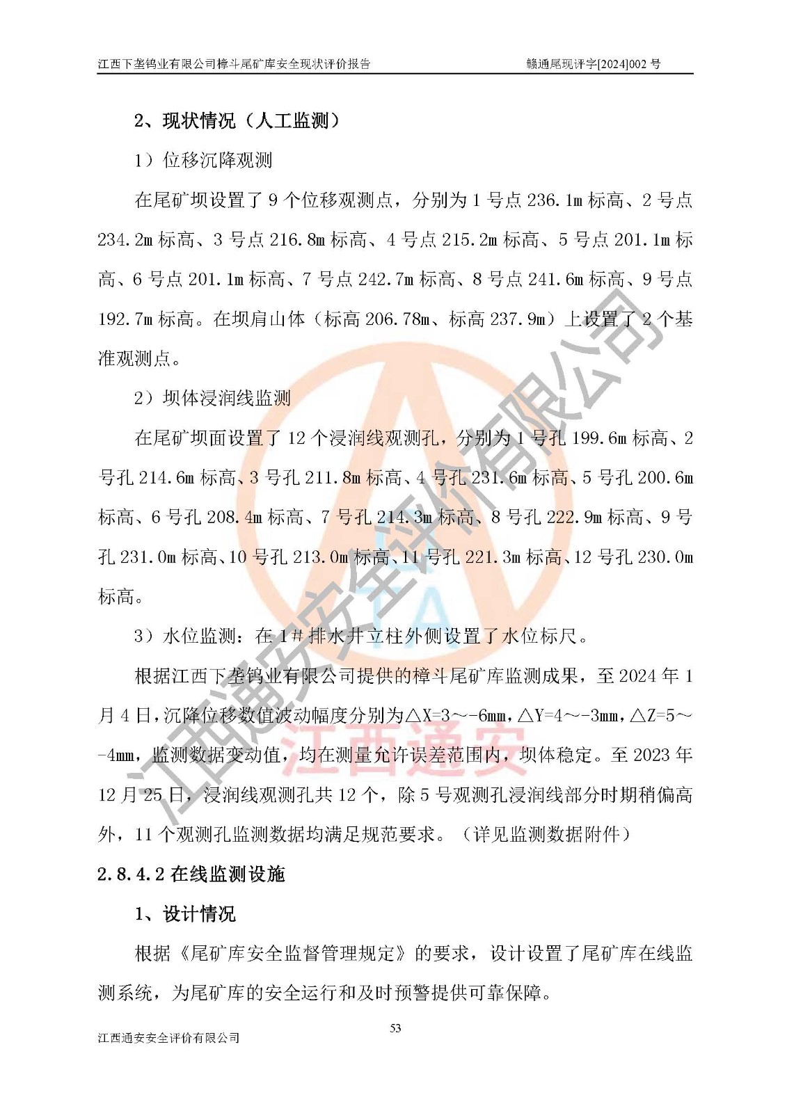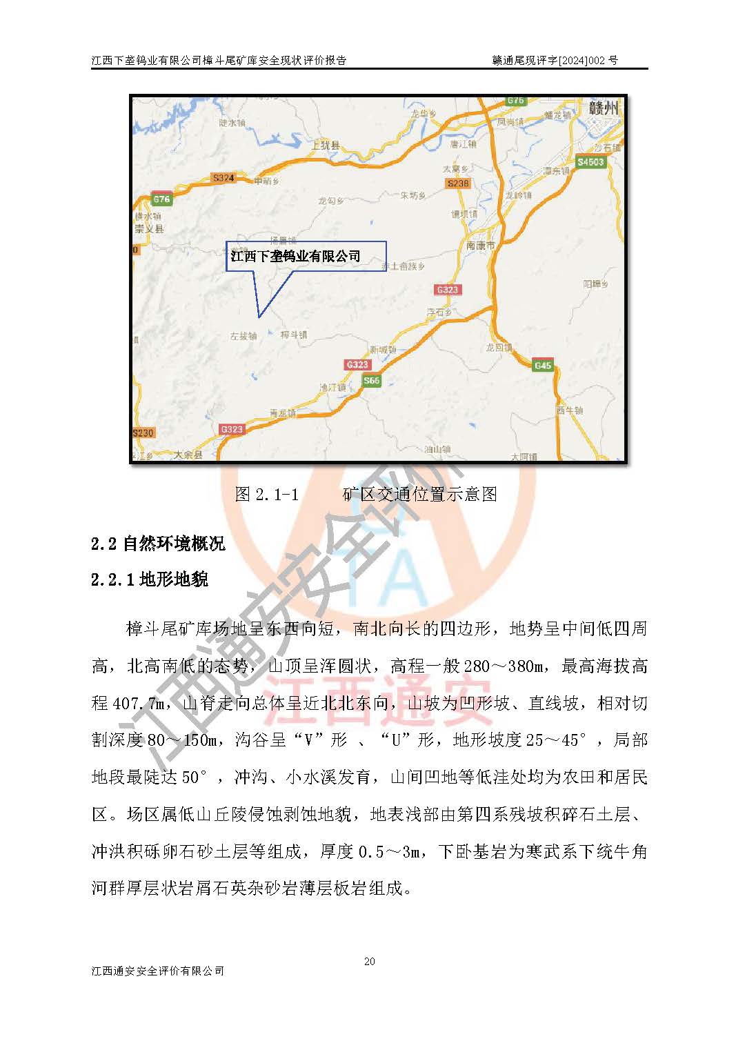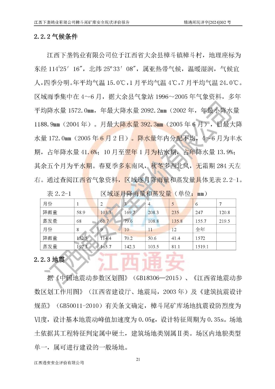 项目简介 | 江西下垄钨业有限公司的前身是下垄钨矿,1954年建成投产,现属江西钨业集团有限公司成员单位,2004年8月改制,成立公司。该公司现有两座尾矿库,大坪尾矿库已停用,樟斗尾矿库正在使用。 樟斗尾矿库位于该公司樟斗矿区,用于堆存该公司选矿厂的尾矿,现由公司选矿厂管理。其地理位置为江西省大余县樟斗镇樟斗村,地理座标为东经114025′16″,北纬25033′08″。樟斗矿区距大余县城25㎞,距京九铁路南康车站36㎞,距赣韶公路(323国道)新城车站15㎞,矿区有水泥公路与之相通,交通方便。 樟斗尾矿库始建于1963年,1982年进行改造,2012年进行隐患综合治理,采用上游式堆坝,属山谷型,因尾矿库下游有居民提等为二等尾矿库。总坝高69m,设计总库容730×104m3,**库容561.0×104m3,已入库尾矿总量258×104m3,尚剩余**库容303.0×104m3。2023年7月19日樟斗尾矿库取得了江西省应急管理厅变更换发的安全生产许可证,证书编号(赣)FM安许证字[2006]M0222号,**期从2021年03月16日到2024年03月15日,为三年期,依照《非煤矿矿山企业安全生产许可证延期换证工作》的通知,根据***《安全生产许可证条例》、《江西省安全生产条例》、《非煤矿山安全生产许可证实施办法》、《江西省非煤矿矿山企业安全生产许可证办法》规定及非煤矿山安全评价导则的要求,受江西下垄钨业有限公司委托,我公司承担樟斗尾矿库证延期换证的安全现状评价工作。 | |||