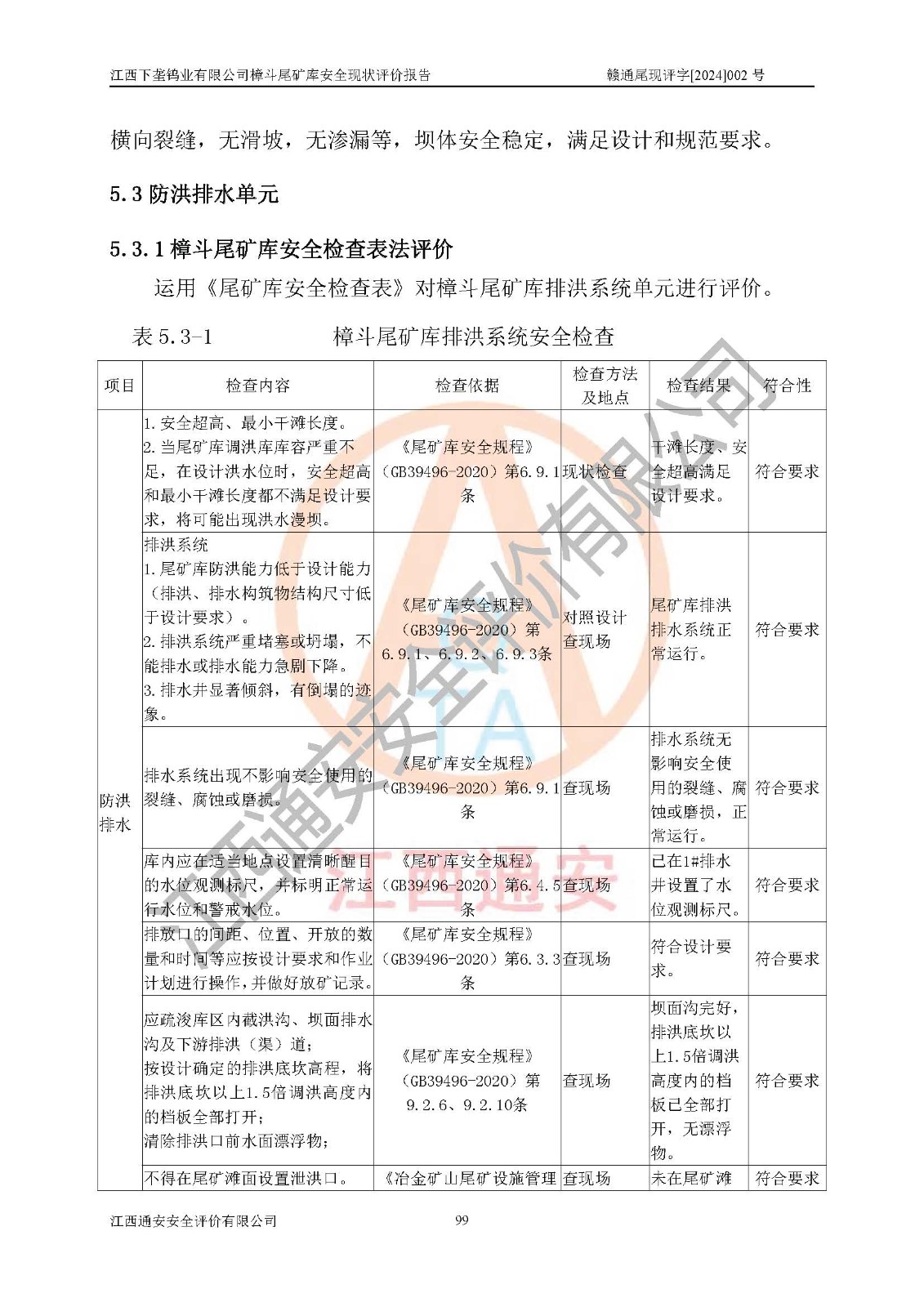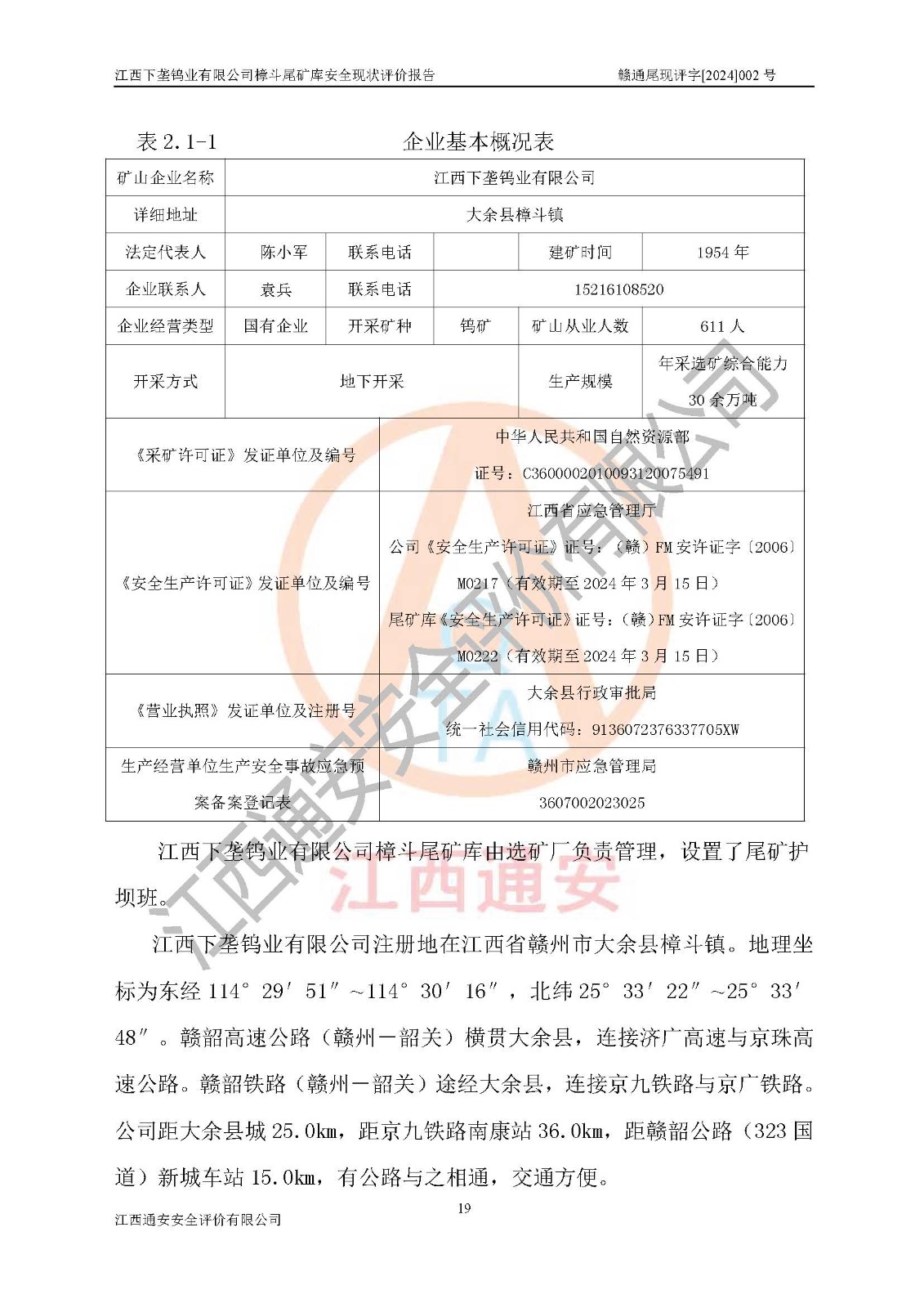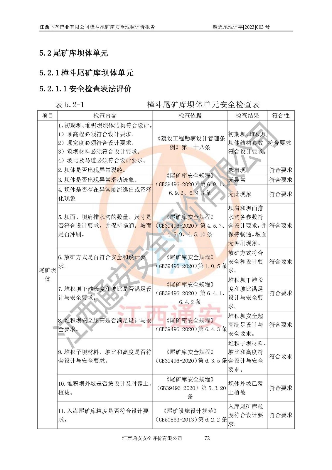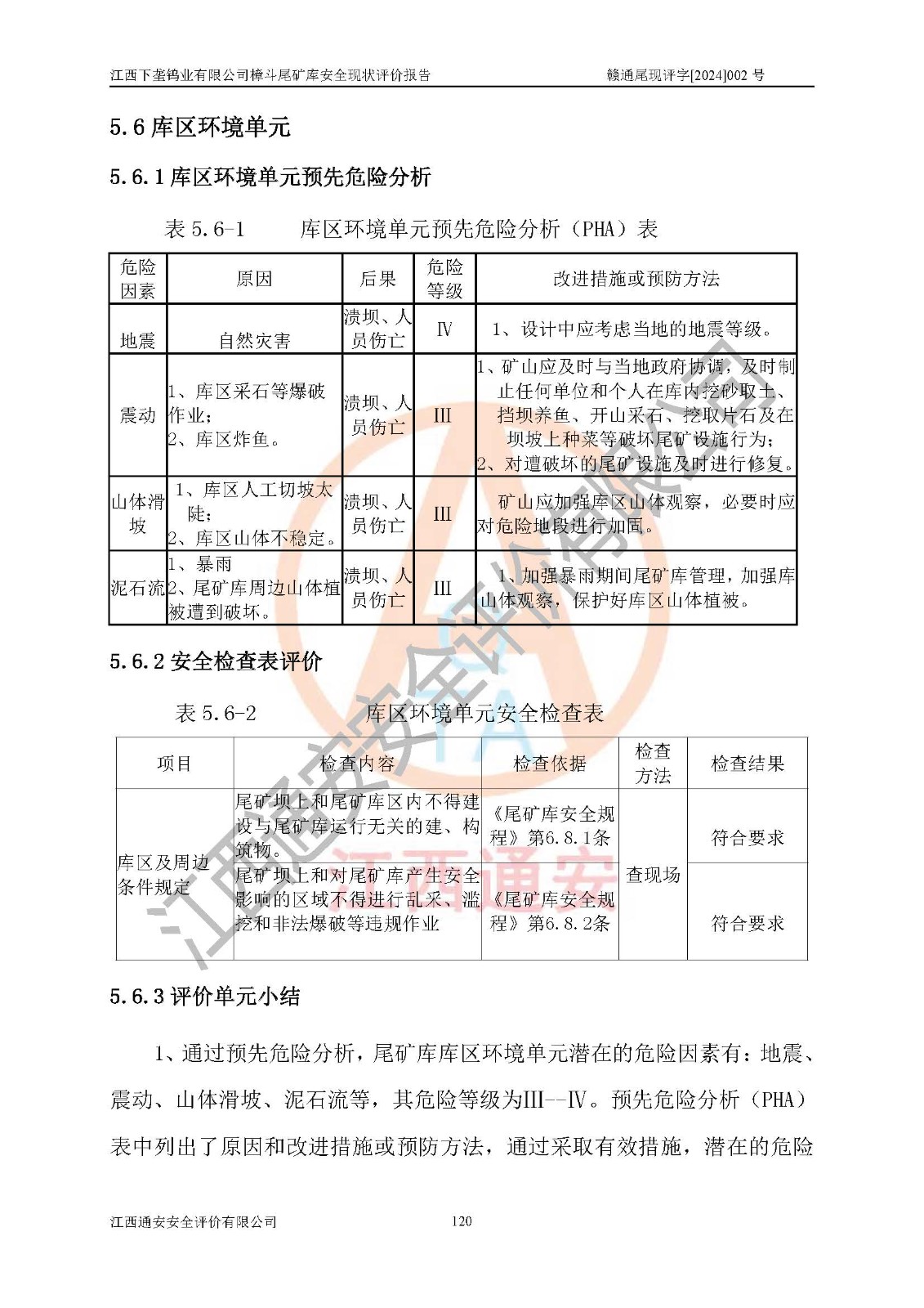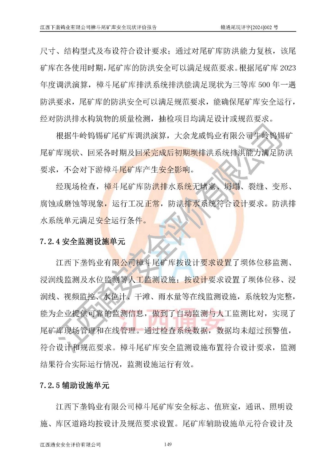 评价结论 | 江西下垄钨业有限公司樟斗尾矿库安全生产条件较好,为正常库,具备继续生产运行的安全生产条件。 | |||