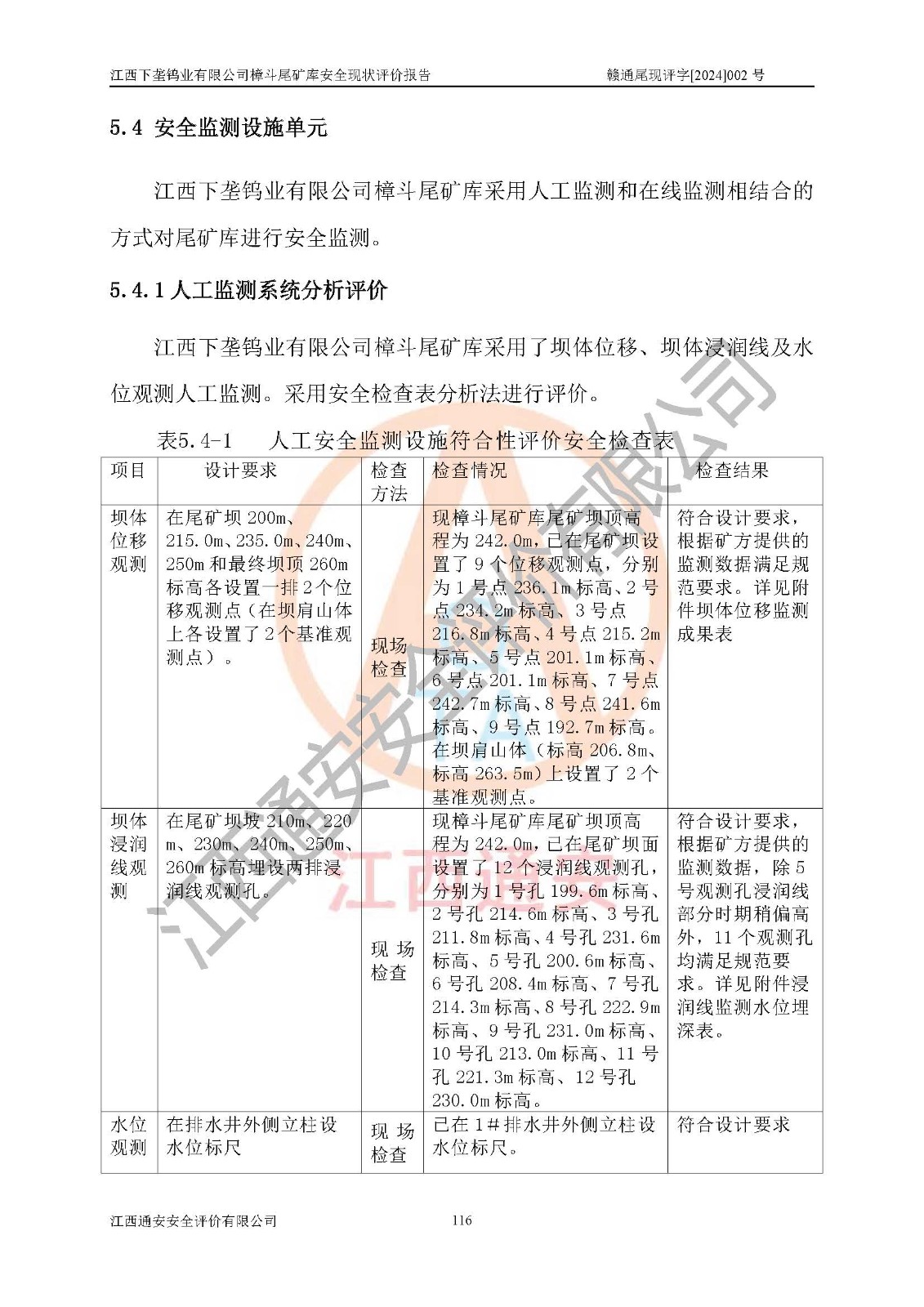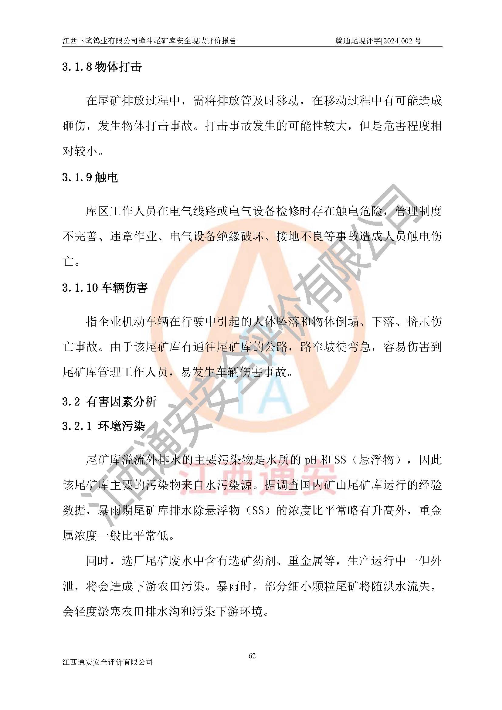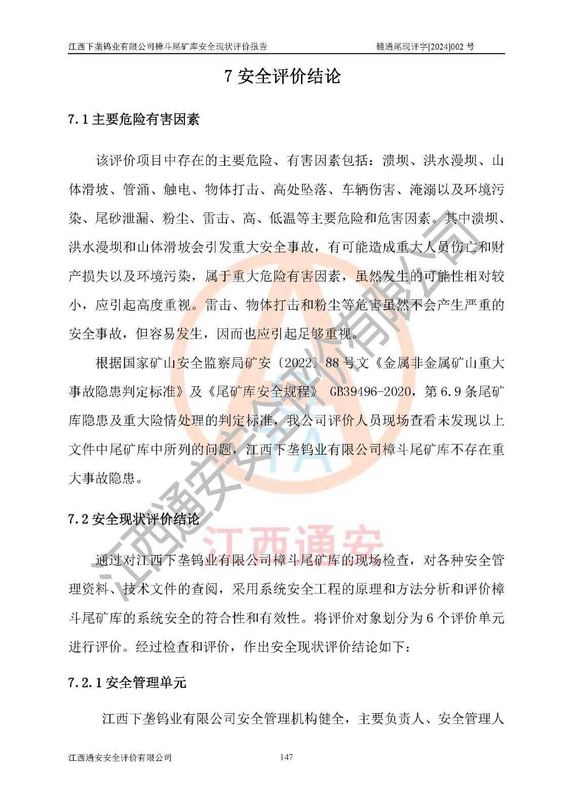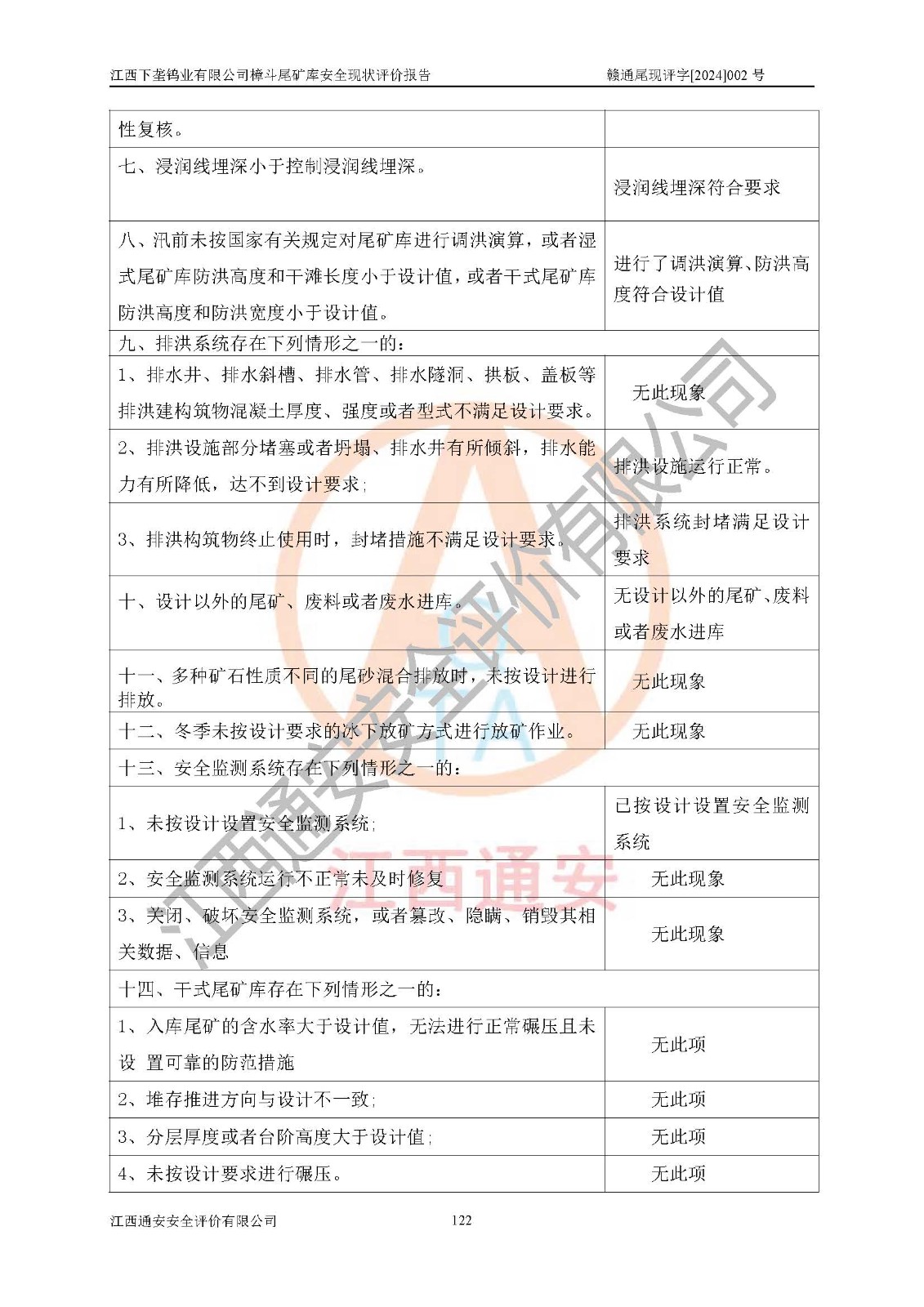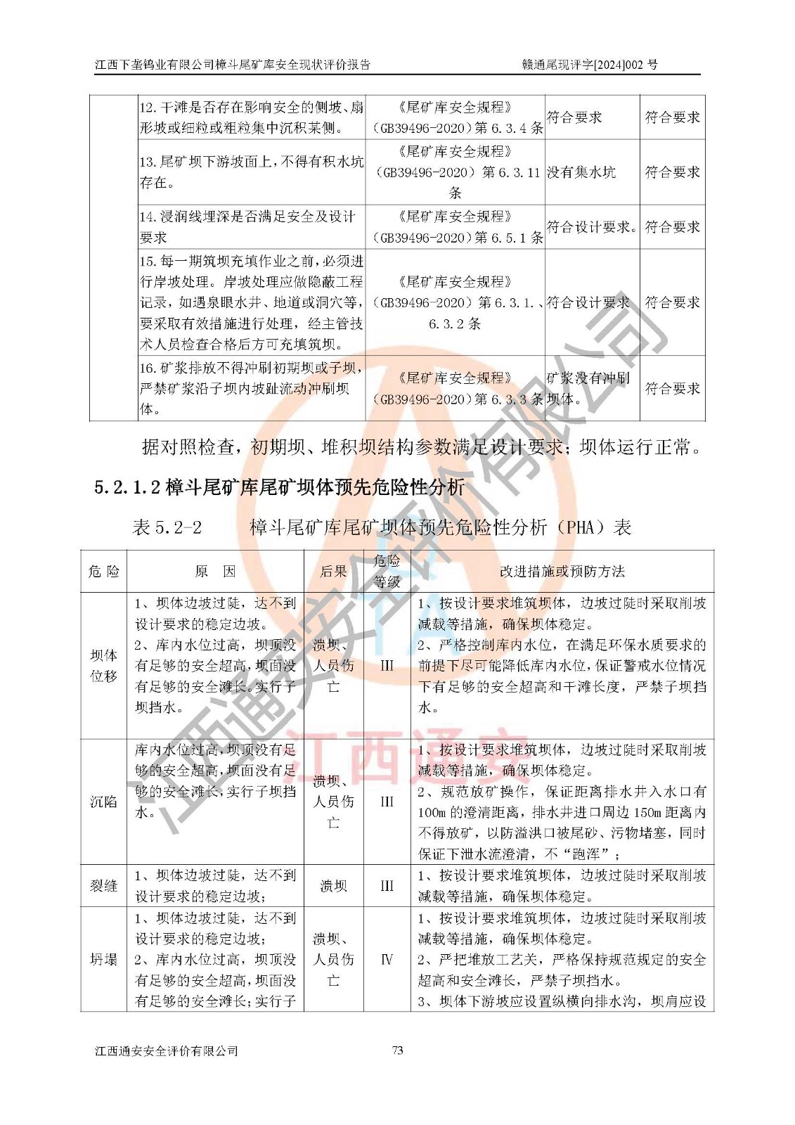 评价结论 | 江西下垄钨业有限公司樟斗尾矿库安全生产条件较好,为正常库,具备继续生产运行的安全生产条件。 | |||