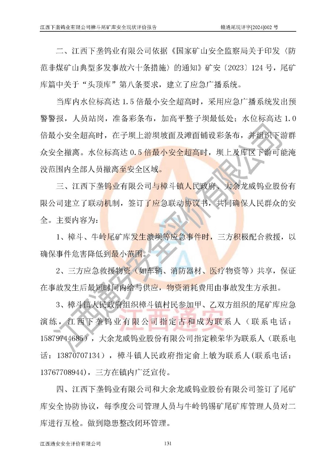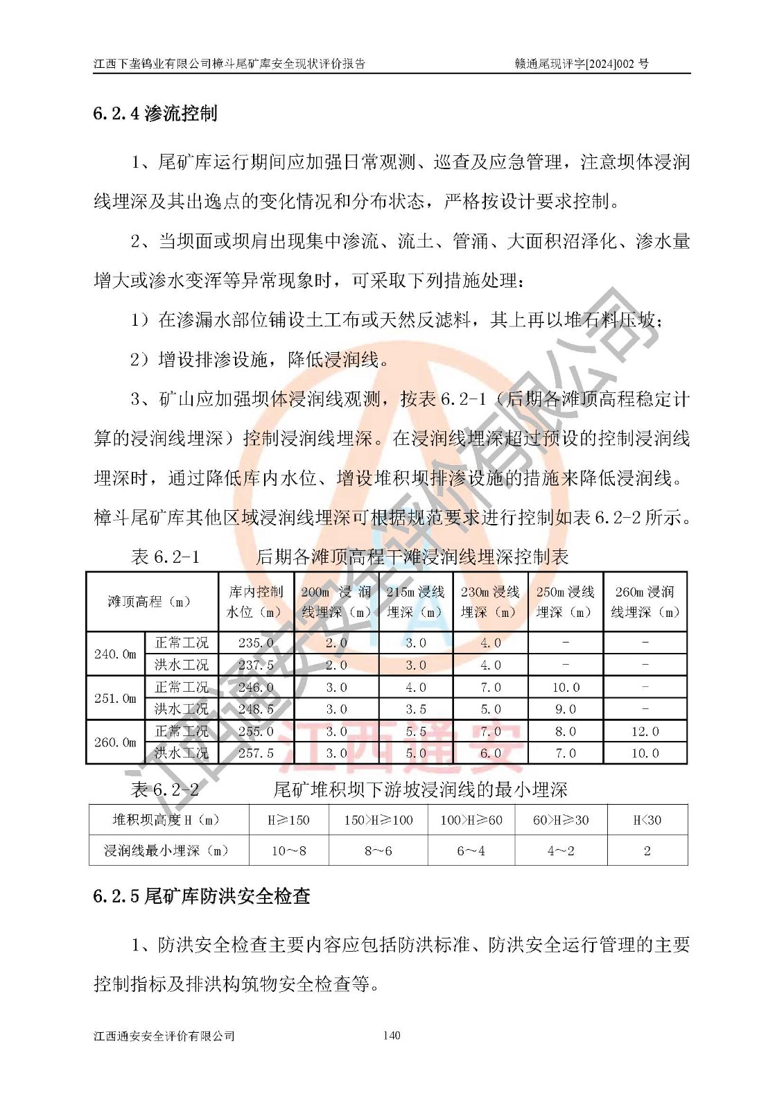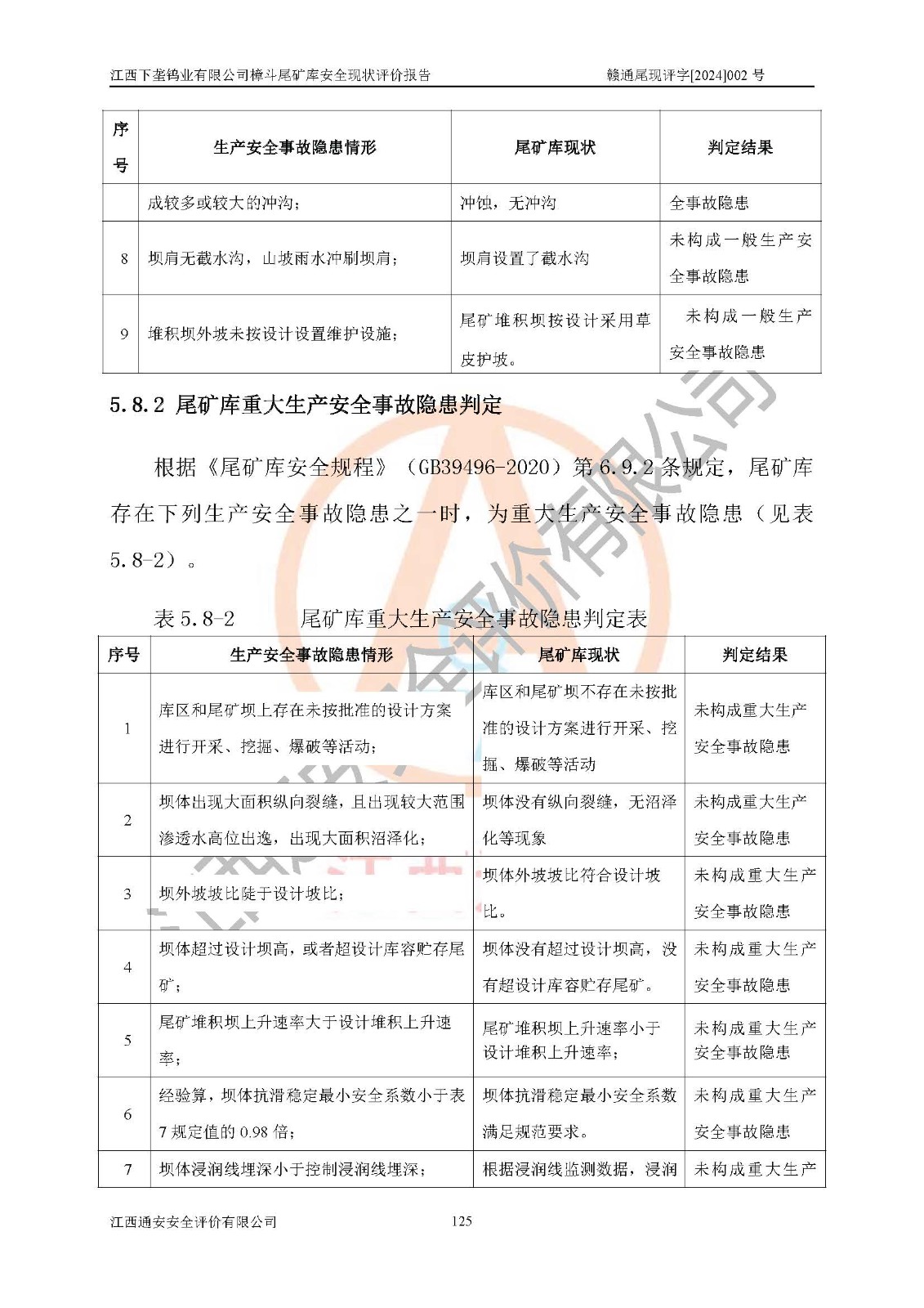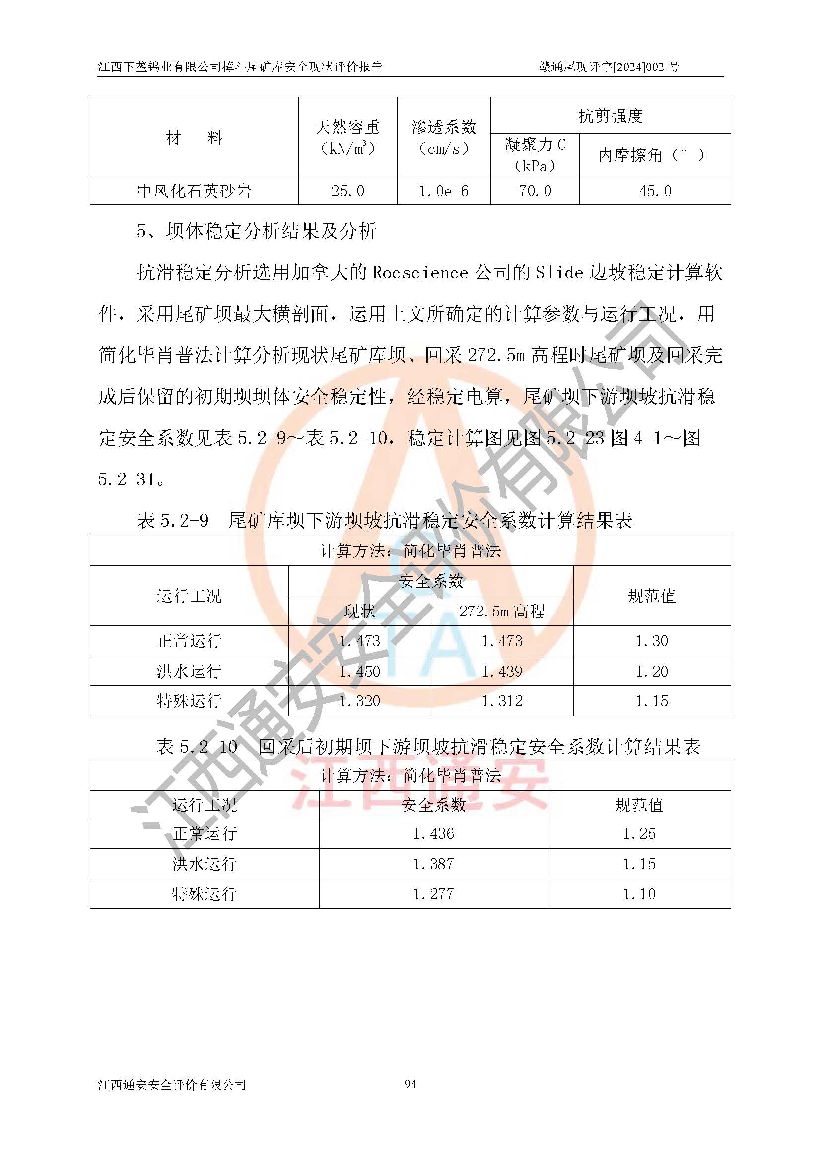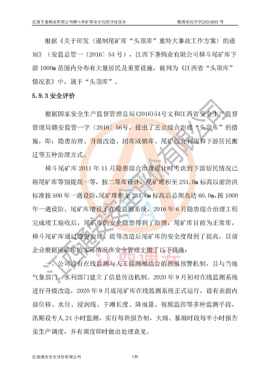 评价结论 | 江西下垄钨业有限公司樟斗尾矿库安全生产条件较好,为正常库,具备继续生产运行的安全生产条件。 | |||