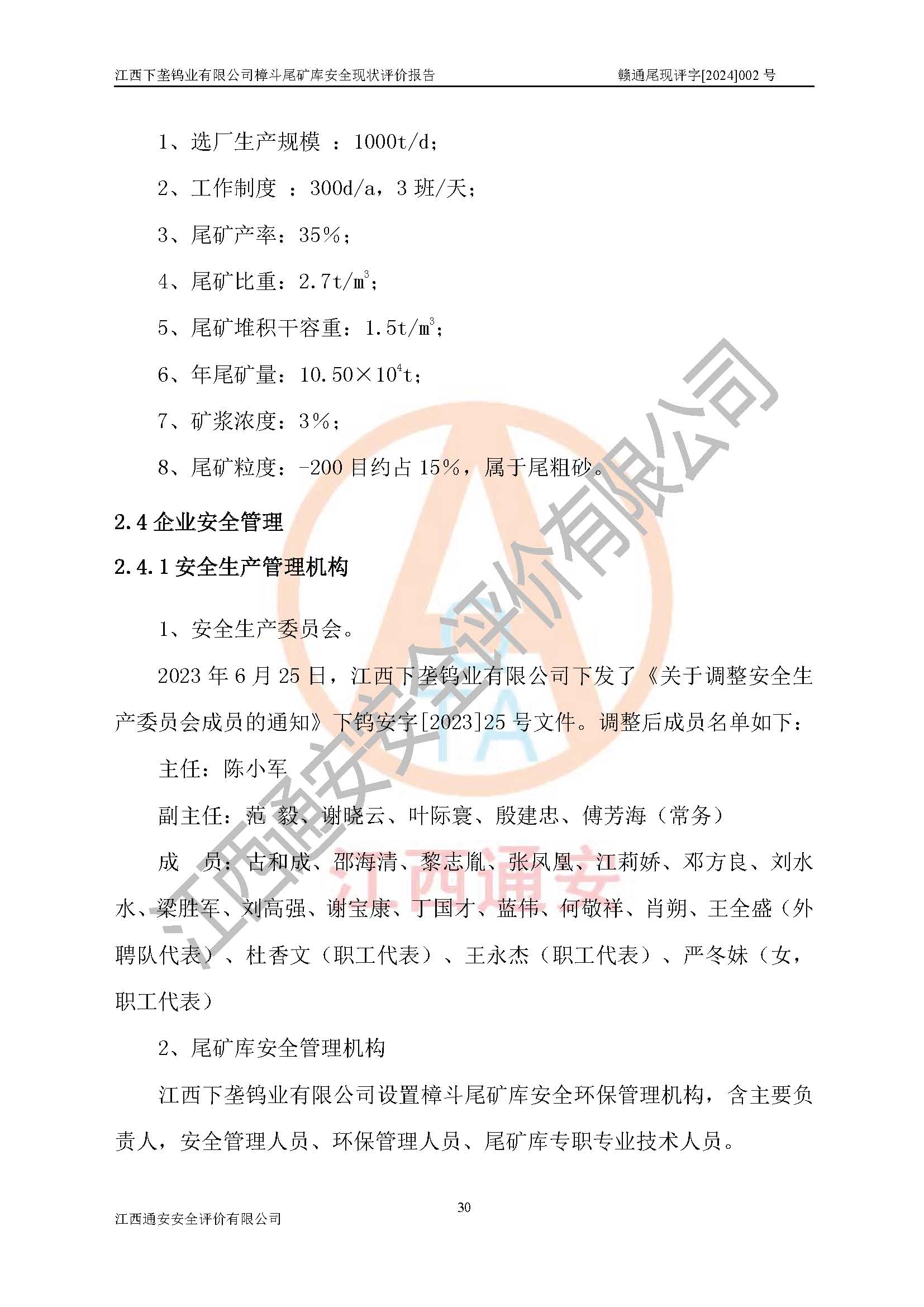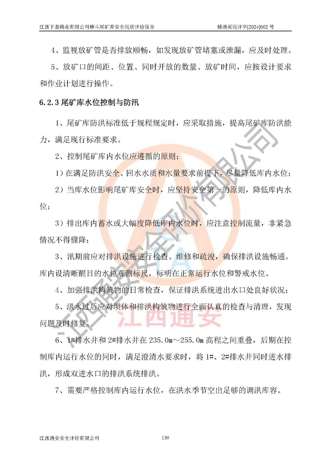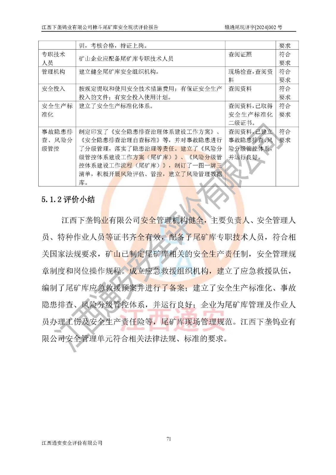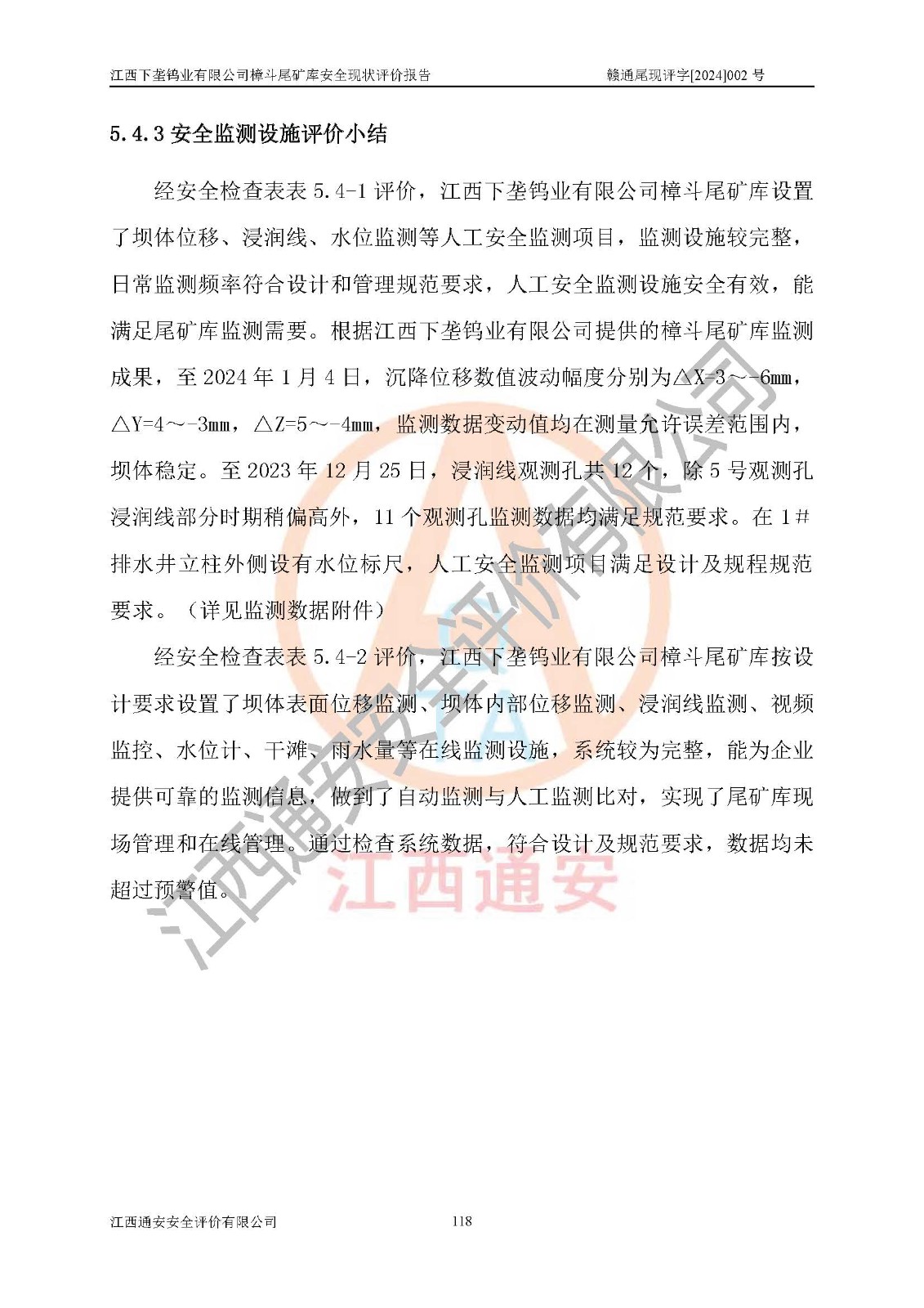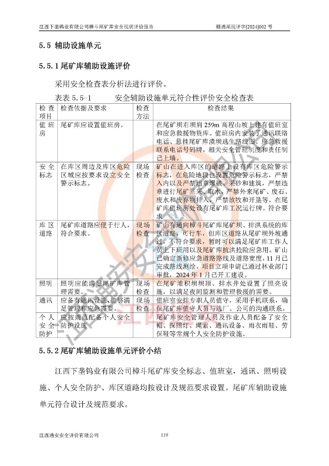 评价结论 | 江西下垄钨业有限公司樟斗尾矿库安全生产条件较好,为正常库,具备继续生产运行的安全生产条件。 | |||