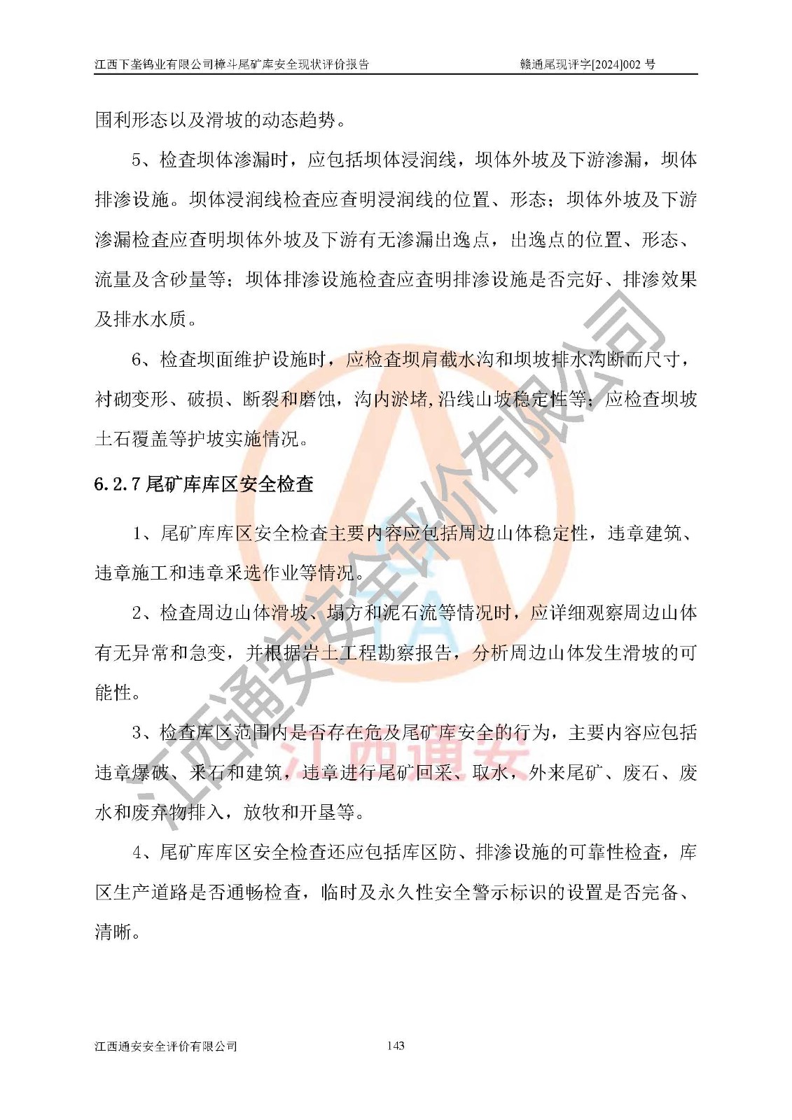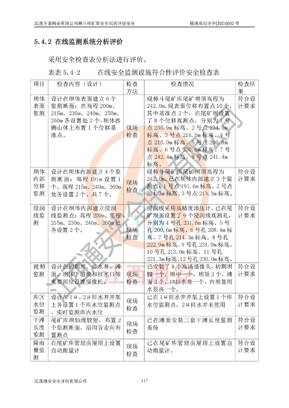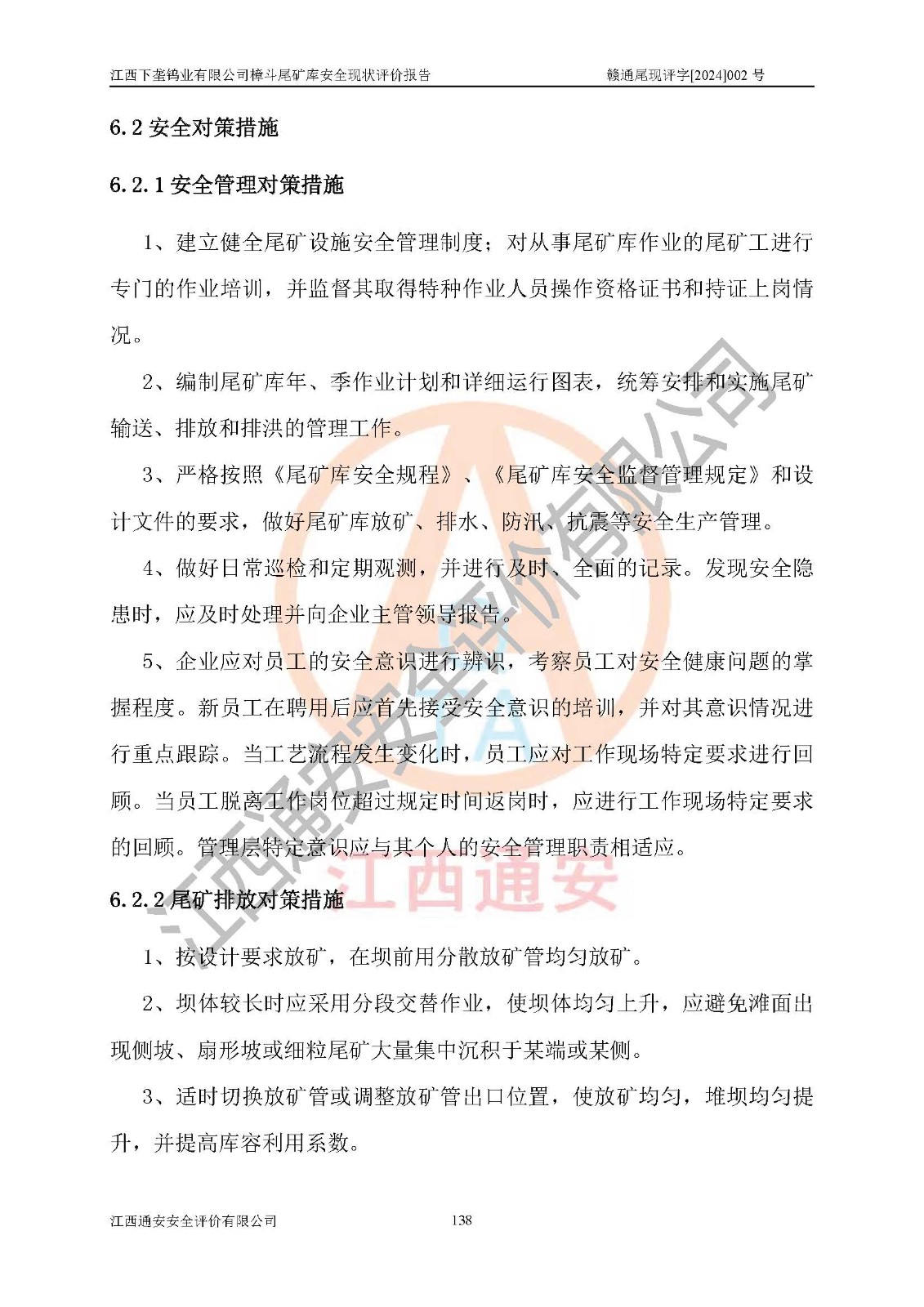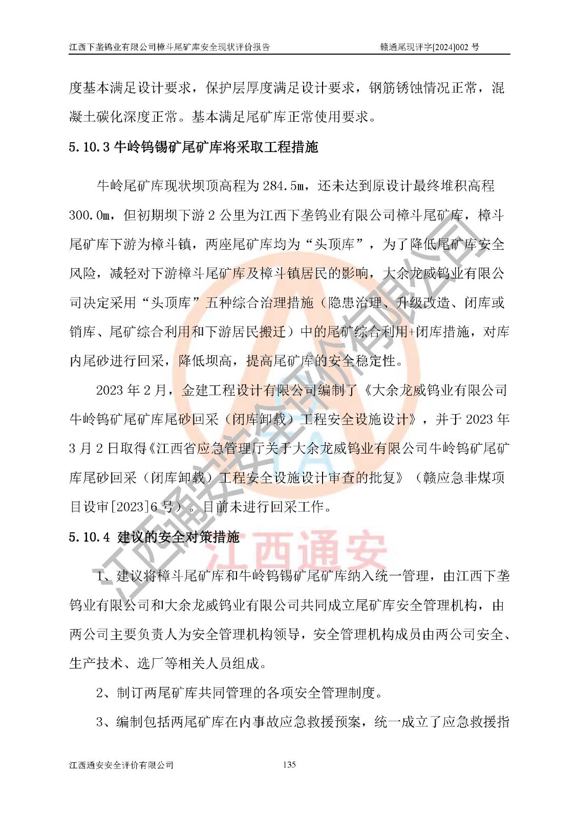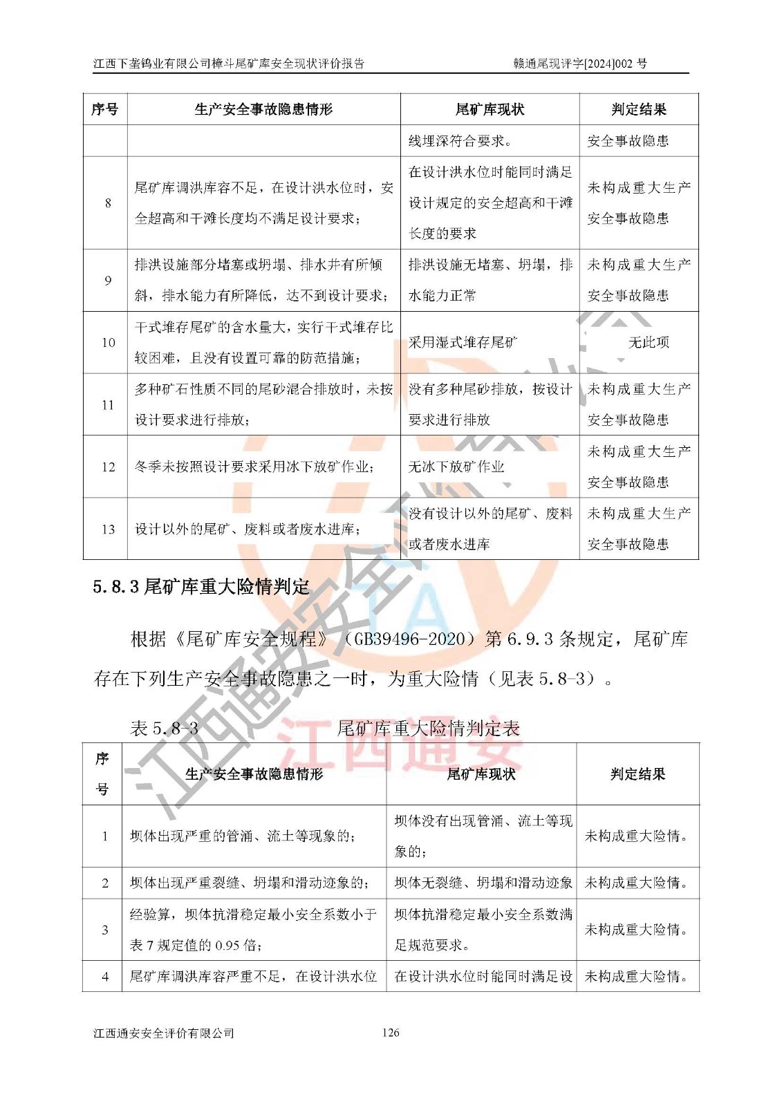 评价结论 | 江西下垄钨业有限公司樟斗尾矿库安全生产条件较好,为正常库,具备继续生产运行的安全生产条件。 | |||