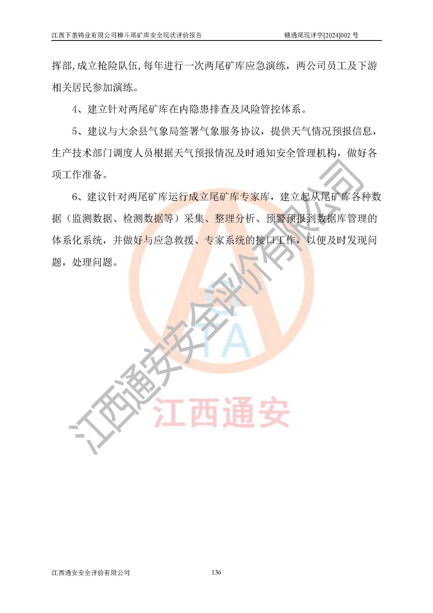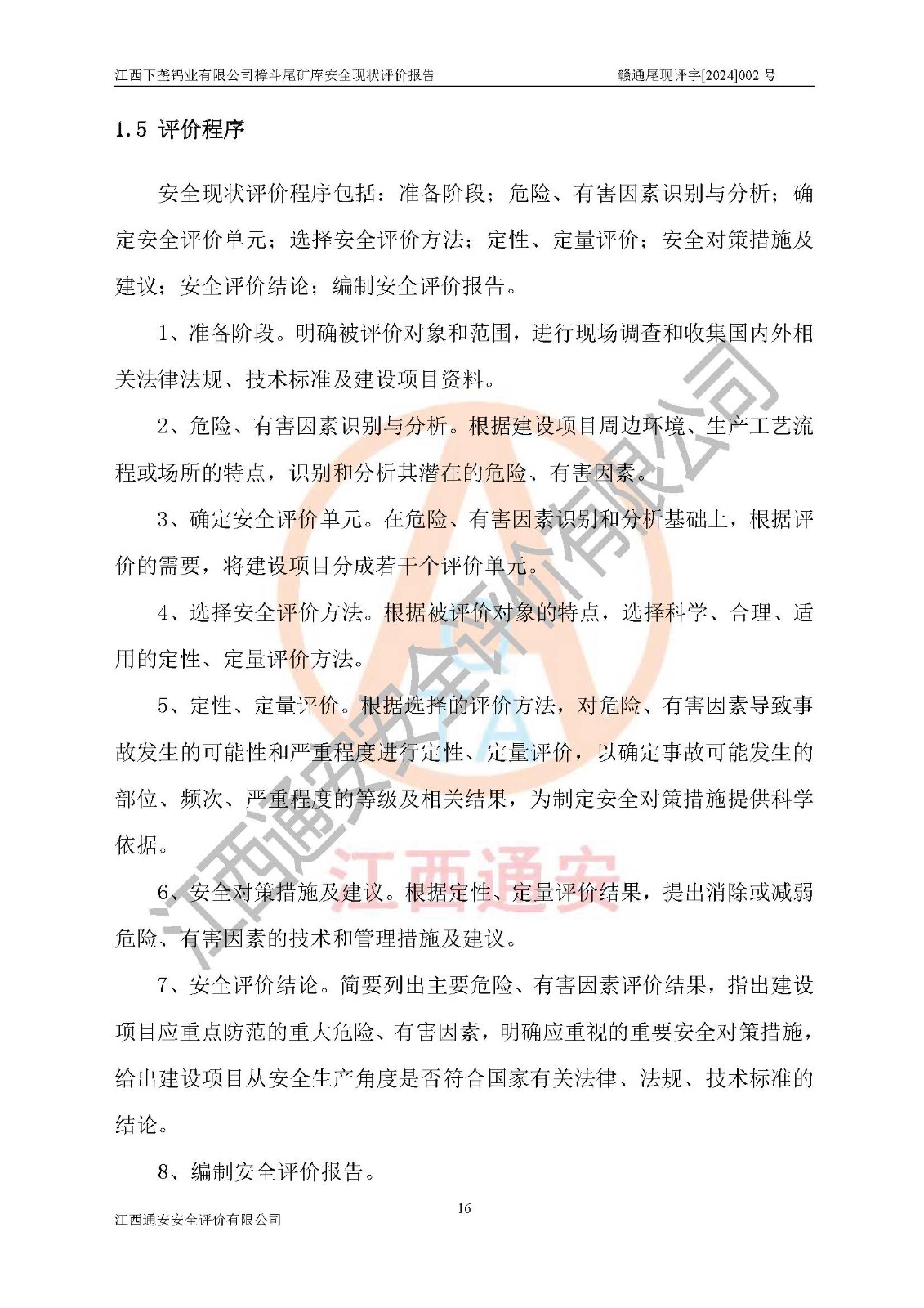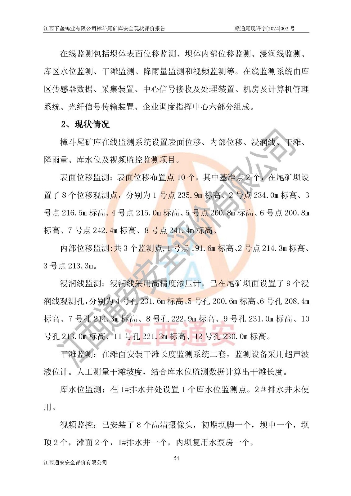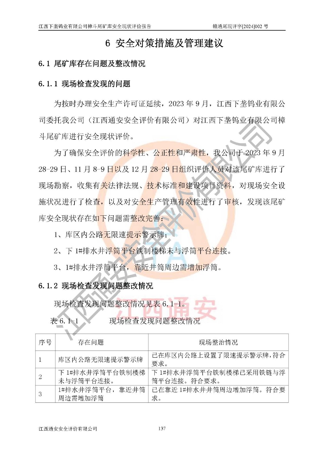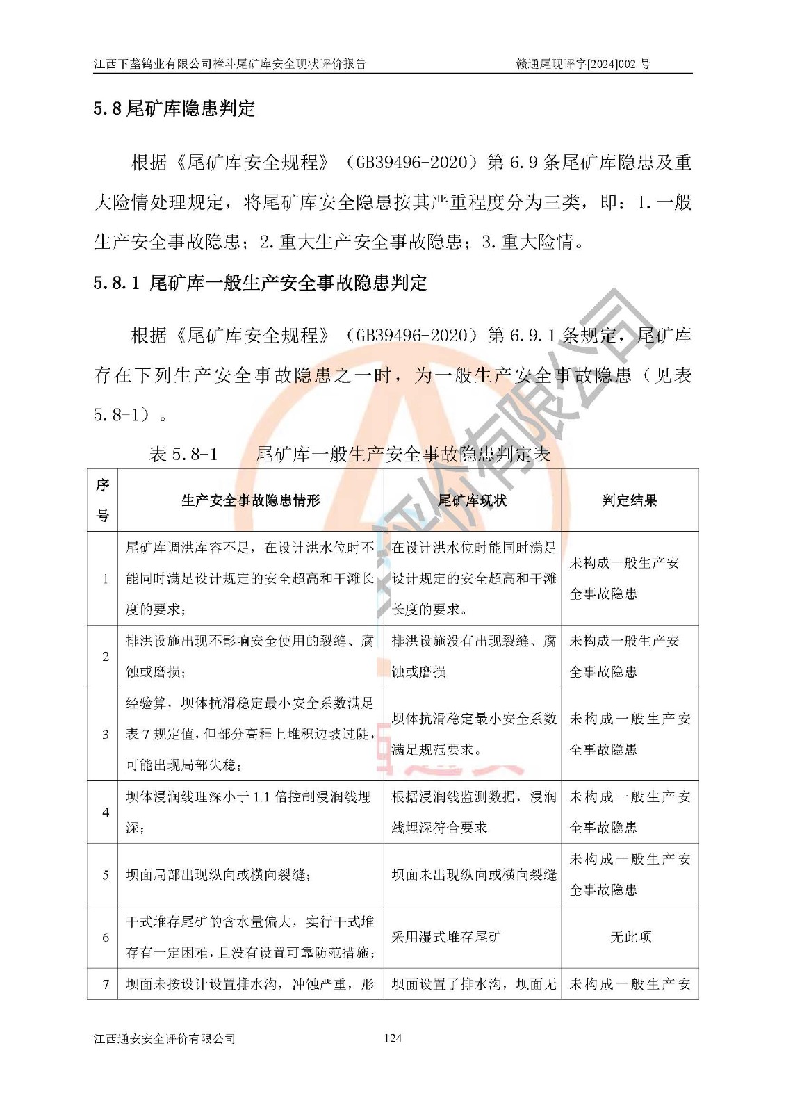 评价结论 | 江西下垄钨业有限公司樟斗尾矿库安全生产条件较好,为正常库,具备继续生产运行的安全生产条件。 | |||