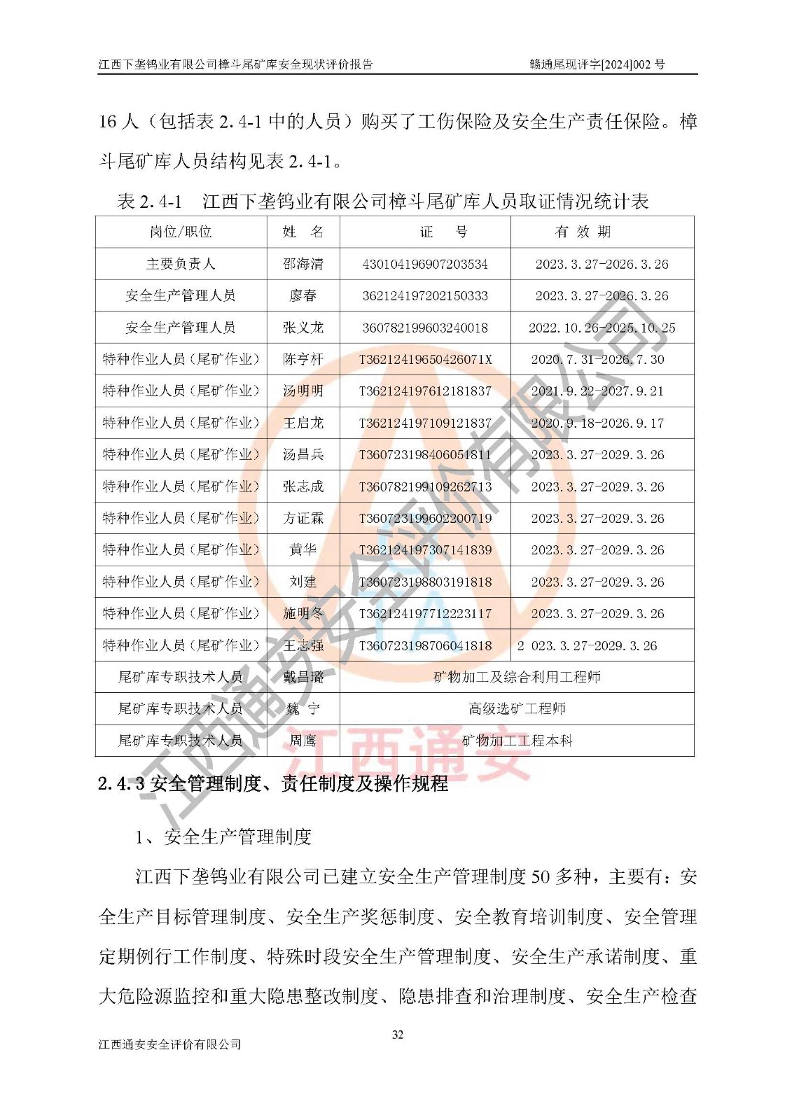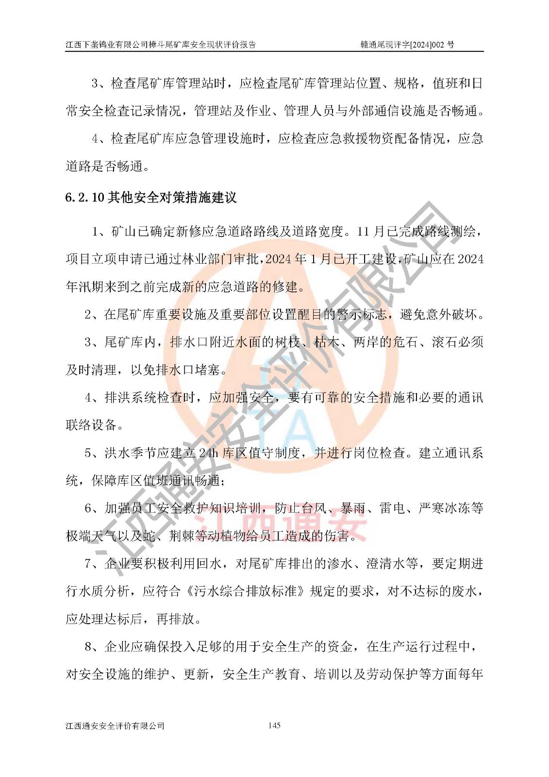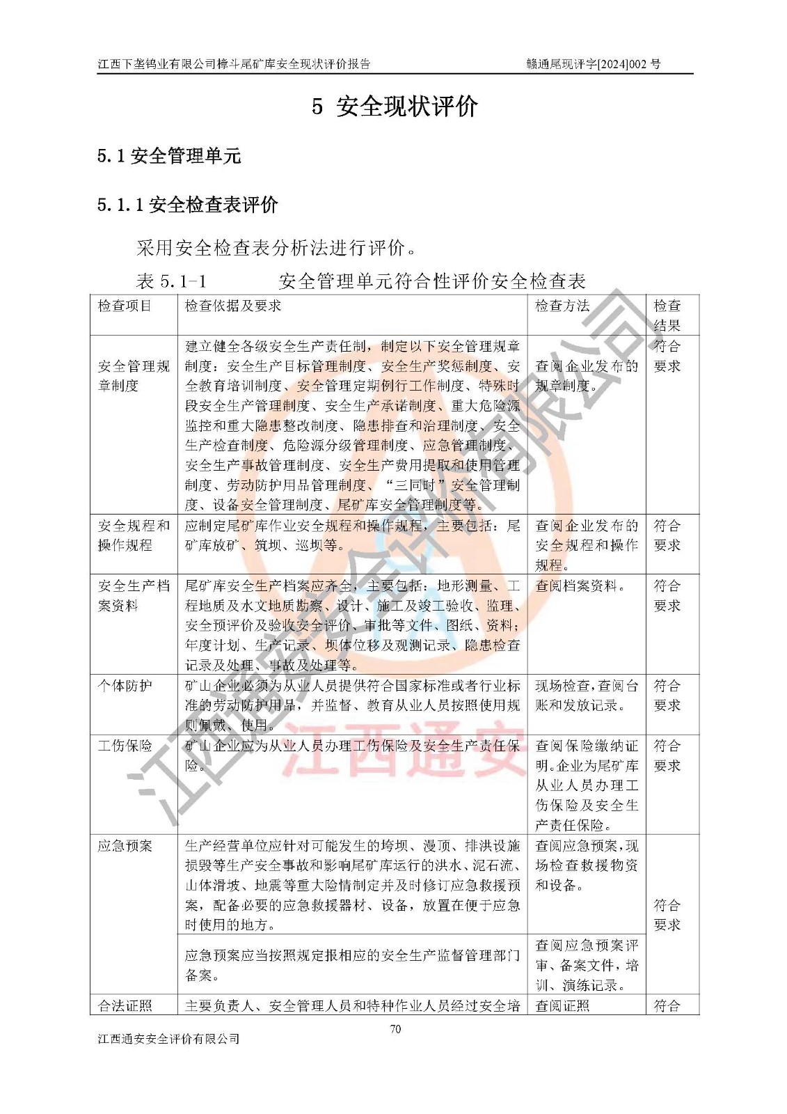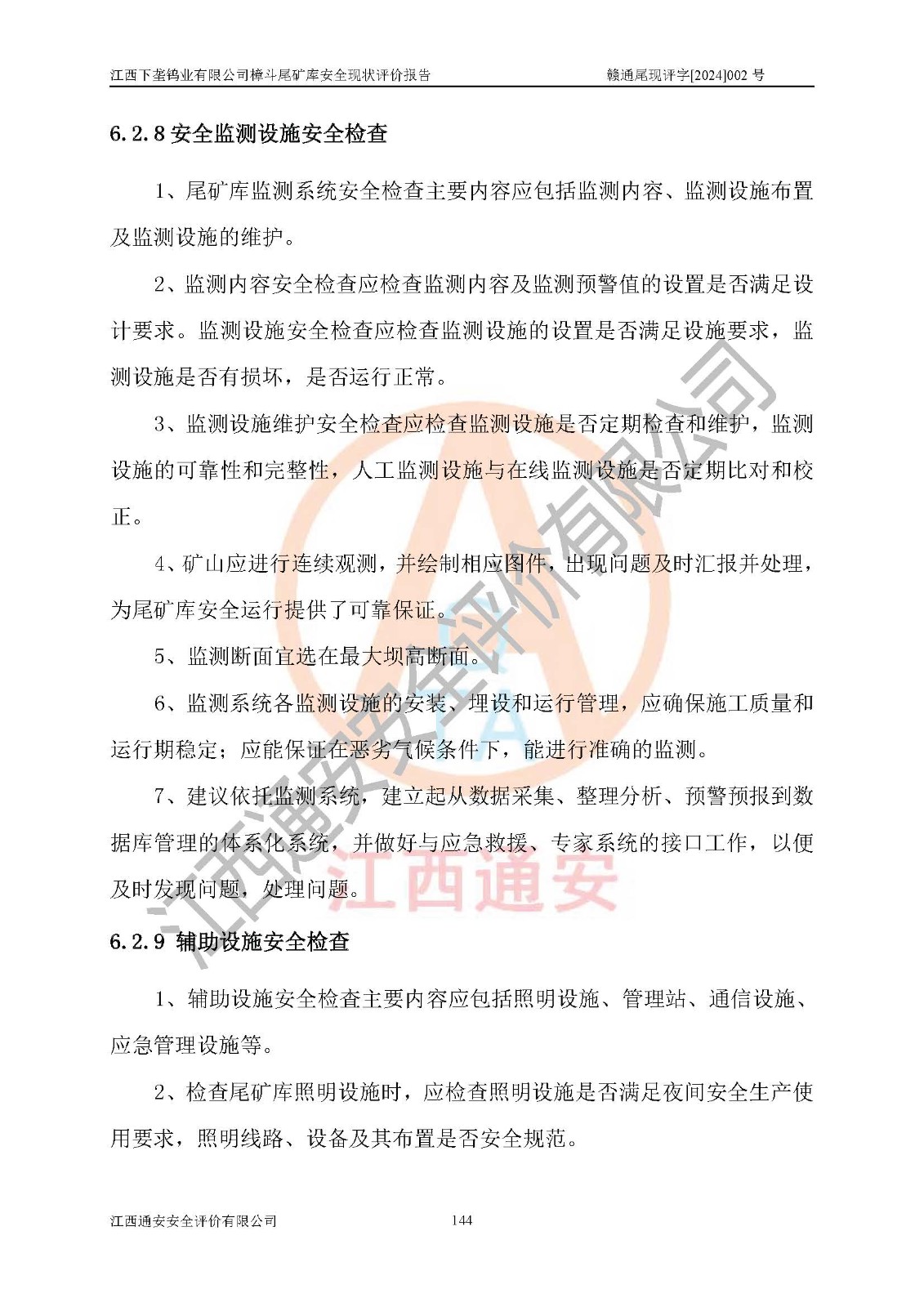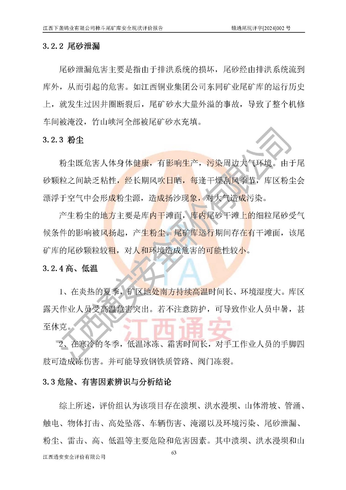 评价结论 | 江西下垄钨业有限公司樟斗尾矿库安全生产条件较好,为正常库,具备继续生产运行的安全生产条件。 | |||