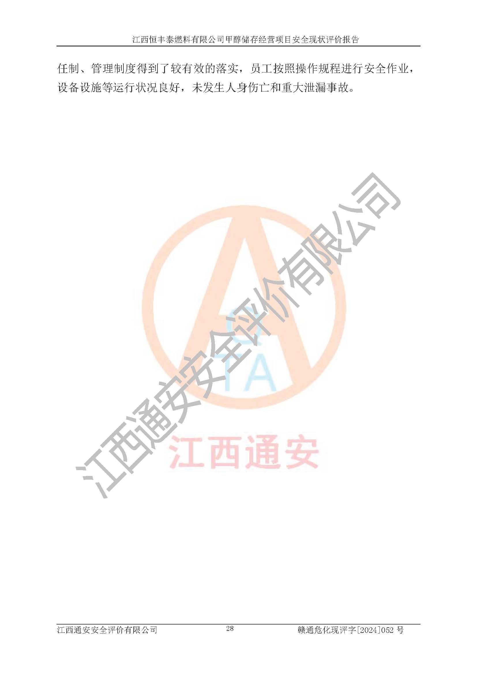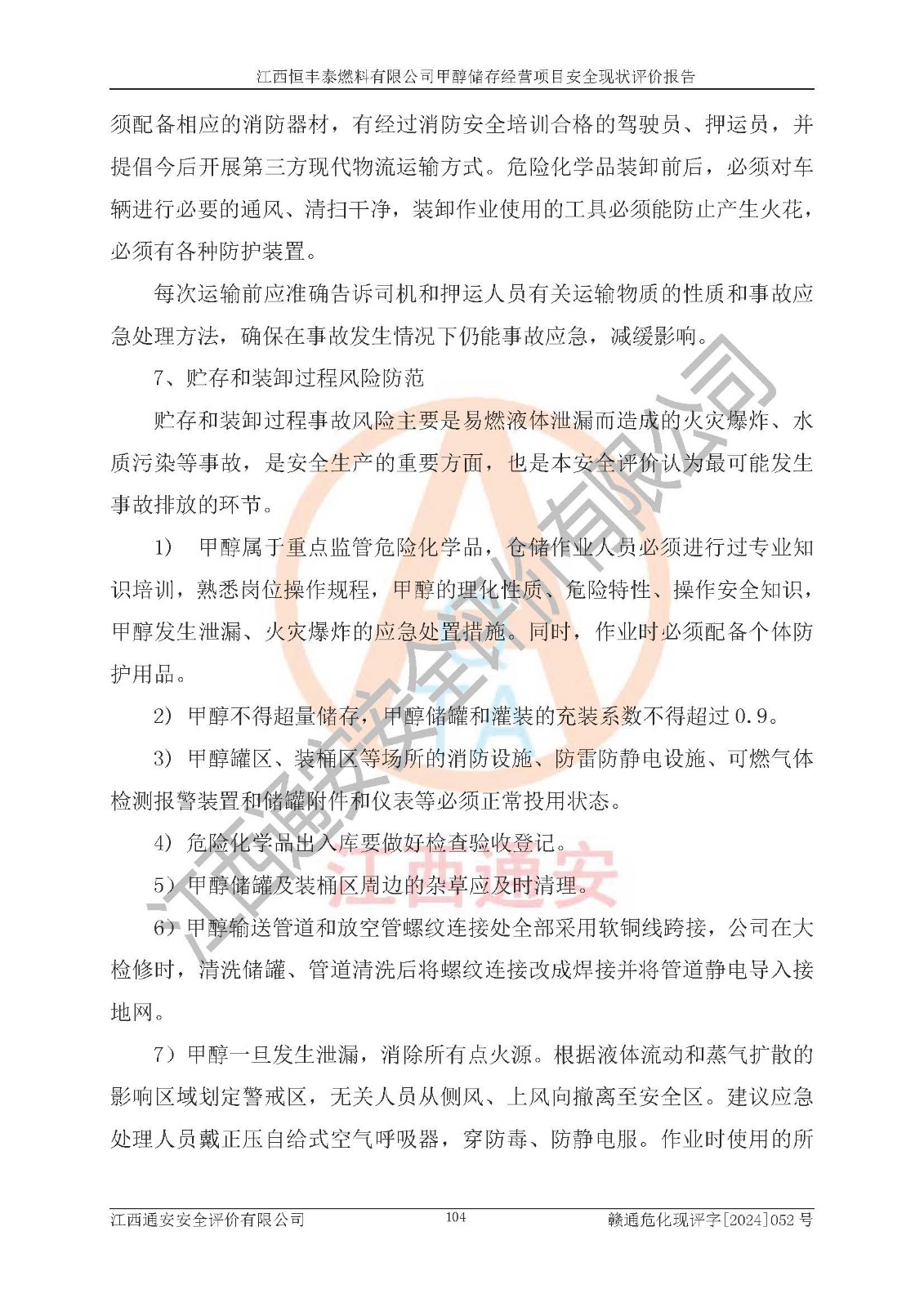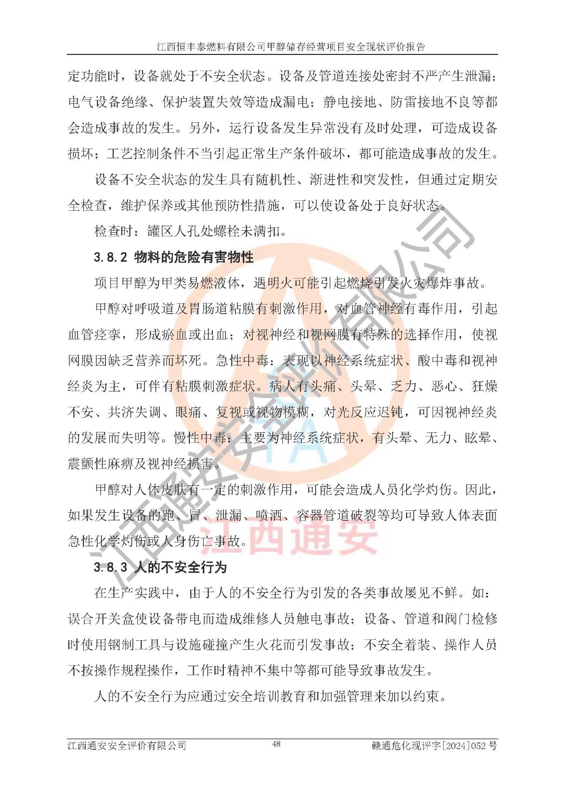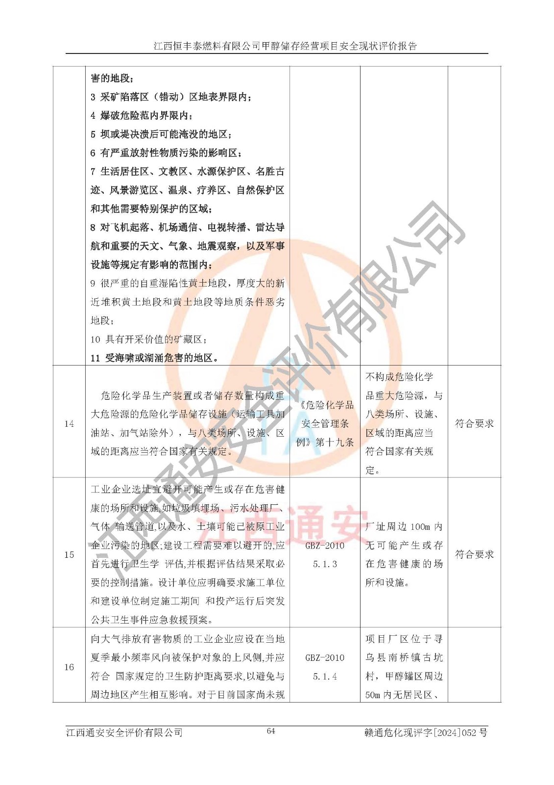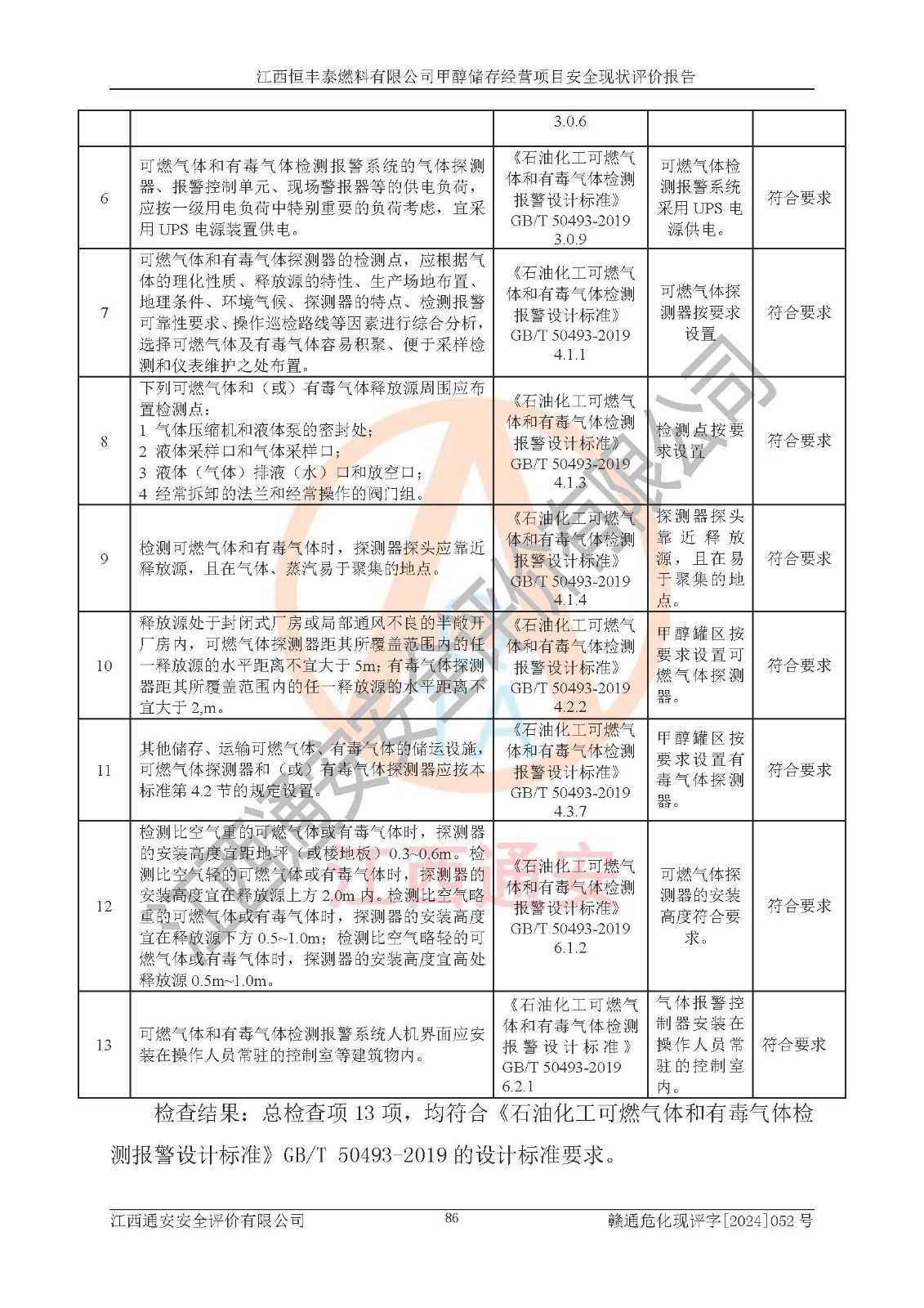 一、安全状况综合评述 通过对江西恒丰泰燃料有限公司甲醇储存经营项目的危险、有害因素辨识和定性、定量评价结果如下∶ 1、主要危险、危害因素辨识结果 项目在生产过程中存在的主要危险有:火灾爆炸、中毒窒息、触电、机械伤害、高处坠落、物体打击、**伤害、淹溺、灼烫等,存在的主要危害因素有:化学因素、物理因素(噪声、高温等)等,同时存在人为失误和管理缺陷。应重点防范的主要危险为火灾与爆炸。 2、危险化学品辨识结果 经辨识,该项目涉及的甲醇属于危险化学品,甲醇属于重点监管的危险化学品和特别管控危险化学品,项目不涉及监控化学品、易制毒化学品、易制爆危险化学品、剧毒化学品和高毒物品等危险化学品。 3、危险化学品重大危险源辨识结果 根据《危险化学品重大危险源辨识》(GB18218-2018)辨识,江西恒丰泰燃料有限公司甲醇储存经营项目不构成危险化学品重大危险源。 4、重点监管危险化工工艺辨识结果 根据《**安全监管总局关于公布首批重点监管的危险化学品名录的通知》安监总管三[2011] 95号、《**安全监管总局关于公布第二批重点监管危险化学品名录的通知》安监总管三[2013] 12号进行辨识,本项目不涉及重点监管的危险化工工艺。 5、作业条件危险性分析结果: 甲醇罐区卸车作业、装桶作业、检维修作业等单元危险程度均为“一般危险,需要注意”或“稍有危险,可以接受”级别。作业条件相对安全。 6、危险度评价结果: 甲醇储罐区属中度危险。 7、采用检查表评价法对项目外部安全条件、总图运输、危险化学品储运设施、采取的防火防爆措施、常规安全防护设施、“两重点一重大”安全措施及安全管理进行定性评价,评价结果如下: (1)该项目选址符合城乡总体规划和安全要求,甲醇经营和储存场所与库外建构筑物的距离符合有关标准、规范的要求。外部安全距离内无GB36894-2018中第3.1条所列的防护目标。 (2)总图布置分区明确,布局合理,满足规范要求。 (3)该项目无**明令淘汰的工艺,设备、设施与工艺条件、内部介质相适应,储罐的附件经整改后符合安全设施设计和规范的要求。 (4)该项目消防安全设施设置符合规范要求。 (5)该项目电气安全设施能满足安全要求,按要求设置了防雷接地设施,并经检测合格。防火防爆设施、液位监测措施、甲醇防泄漏设施、电气防爆措施等安全防护设施符合**法律法规、标准规范的要求。 (6)该项目公用工程能够满足安全经营的基本需要,符合安全经营的条件。 (7)该项目不涉及重大生产安全事故隐患,安全生产条件符合要求。 (8)公司成立了安全生产**小组,配备了安全管理人员,制定了安全管理制度、操作规程和事故应急预案,公司的安全管理机构工作有力,安全经营管理处于正常有序开展范围。 四、评价结论 江西恒丰泰燃料有限公司甲醇储存经营项目的安全设施及安全管理符合法律、法规、标准的要求,安全风险是受控制的,其风险程度是可以接受的,满足项目危险化学品储存和经营的安全条件。 |