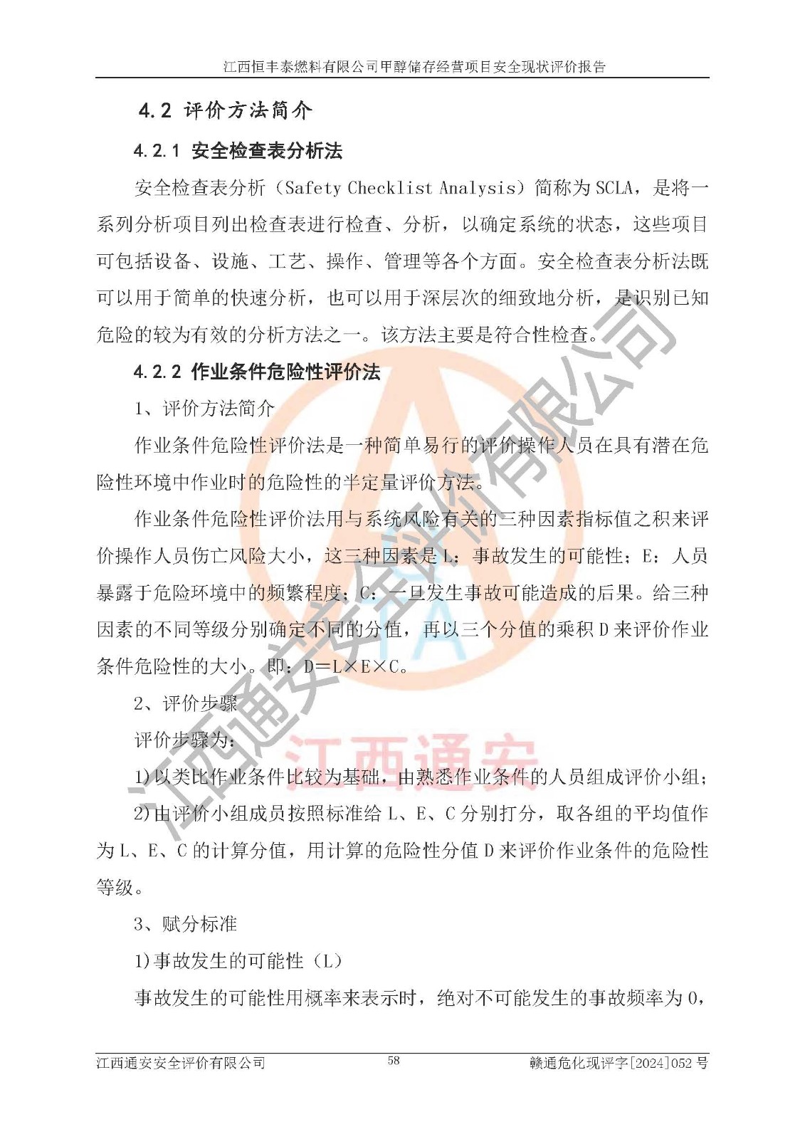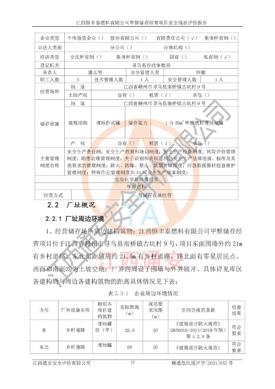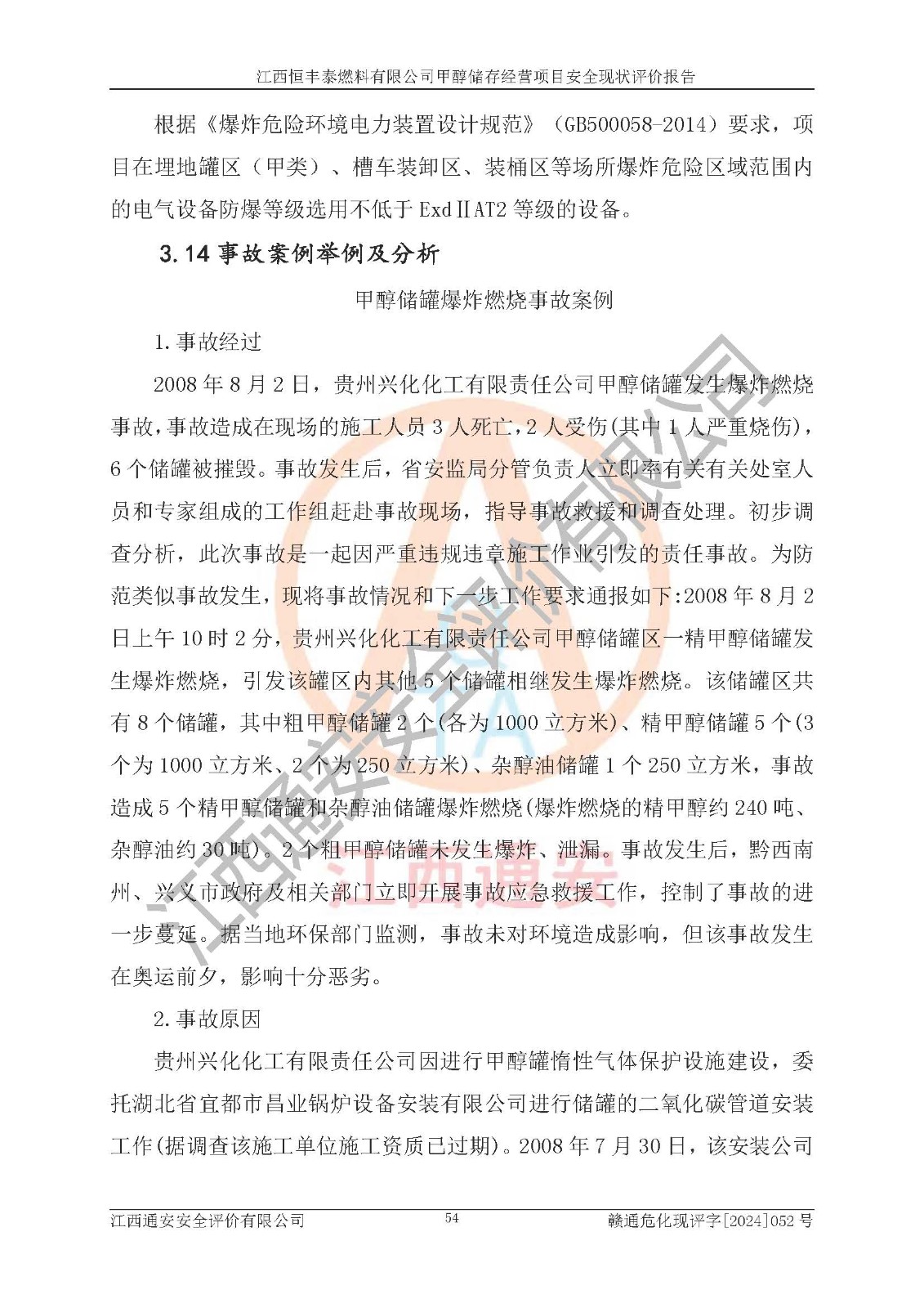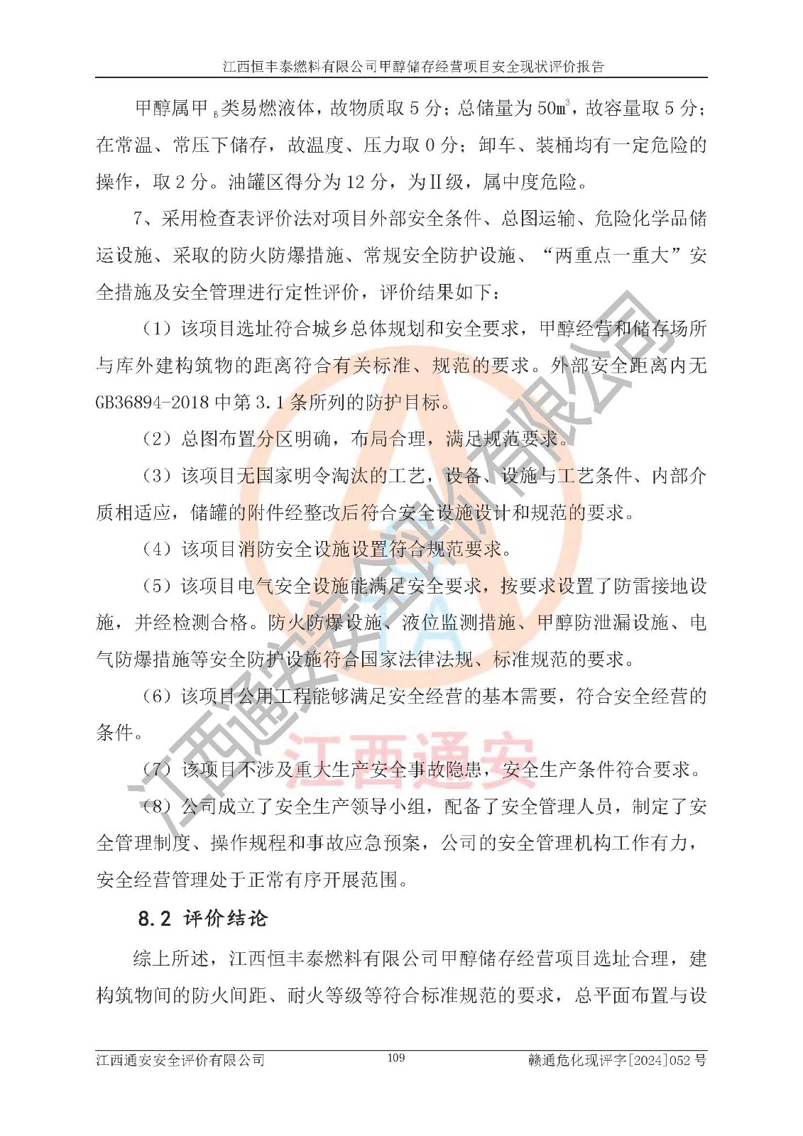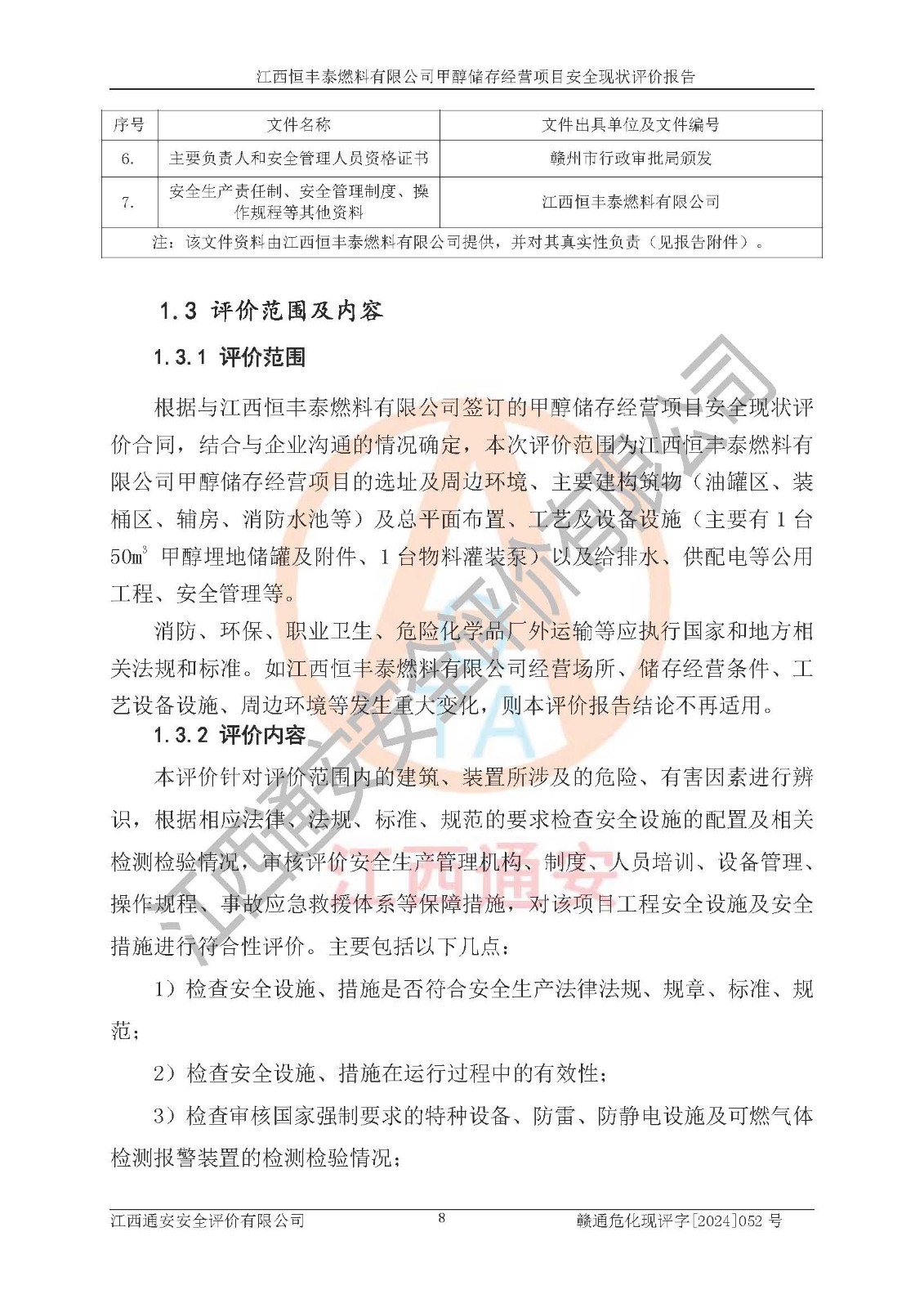 一、安全状况综合评述 通过对江西恒丰泰燃料有限公司甲醇储存经营项目的危险、有害因素辨识和定性、定量评价结果如下∶ 1、主要危险、危害因素辨识结果 项目在生产过程中存在的主要危险有:火灾爆炸、中毒窒息、触电、机械伤害、高处坠落、物体打击、**伤害、淹溺、灼烫等,存在的主要危害因素有:化学因素、物理因素(噪声、高温等)等,同时存在人为失误和管理缺陷。应重点防范的主要危险为火灾与爆炸。 2、危险化学品辨识结果 经辨识,该项目涉及的甲醇属于危险化学品,甲醇属于重点监管的危险化学品和特别管控危险化学品,项目不涉及监控化学品、易制毒化学品、易制爆危险化学品、剧毒化学品和高毒物品等危险化学品。 3、危险化学品重大危险源辨识结果 根据《危险化学品重大危险源辨识》(GB18218-2018)辨识,江西恒丰泰燃料有限公司甲醇储存经营项目不构成危险化学品重大危险源。 4、重点监管危险化工工艺辨识结果 根据《**安全监管总局关于公布首批重点监管的危险化学品名录的通知》安监总管三[2011] 95号、《**安全监管总局关于公布第二批重点监管危险化学品名录的通知》安监总管三[2013] 12号进行辨识,本项目不涉及重点监管的危险化工工艺。 5、作业条件危险性分析结果: 甲醇罐区卸车作业、装桶作业、检维修作业等单元危险程度均为“一般危险,需要注意”或“稍有危险,可以接受”级别。作业条件相对安全。 6、危险度评价结果: 甲醇储罐区属中度危险。 7、采用检查表评价法对项目外部安全条件、总图运输、危险化学品储运设施、采取的防火防爆措施、常规安全防护设施、“两重点一重大”安全措施及安全管理进行定性评价,评价结果如下: (1)该项目选址符合城乡总体规划和安全要求,甲醇经营和储存场所与库外建构筑物的距离符合有关标准、规范的要求。外部安全距离内无GB36894-2018中第3.1条所列的防护目标。 (2)总图布置分区明确,布局合理,满足规范要求。 (3)该项目无**明令淘汰的工艺,设备、设施与工艺条件、内部介质相适应,储罐的附件经整改后符合安全设施设计和规范的要求。 (4)该项目消防安全设施设置符合规范要求。 (5)该项目电气安全设施能满足安全要求,按要求设置了防雷接地设施,并经检测合格。防火防爆设施、液位监测措施、甲醇防泄漏设施、电气防爆措施等安全防护设施符合**法律法规、标准规范的要求。 (6)该项目公用工程能够满足安全经营的基本需要,符合安全经营的条件。 (7)该项目不涉及重大生产安全事故隐患,安全生产条件符合要求。 (8)公司成立了安全生产**小组,配备了安全管理人员,制定了安全管理制度、操作规程和事故应急预案,公司的安全管理机构工作有力,安全经营管理处于正常有序开展范围。 四、评价结论 江西恒丰泰燃料有限公司甲醇储存经营项目的安全设施及安全管理符合法律、法规、标准的要求,安全风险是受控制的,其风险程度是可以接受的,满足项目危险化学品储存和经营的安全条件。 |